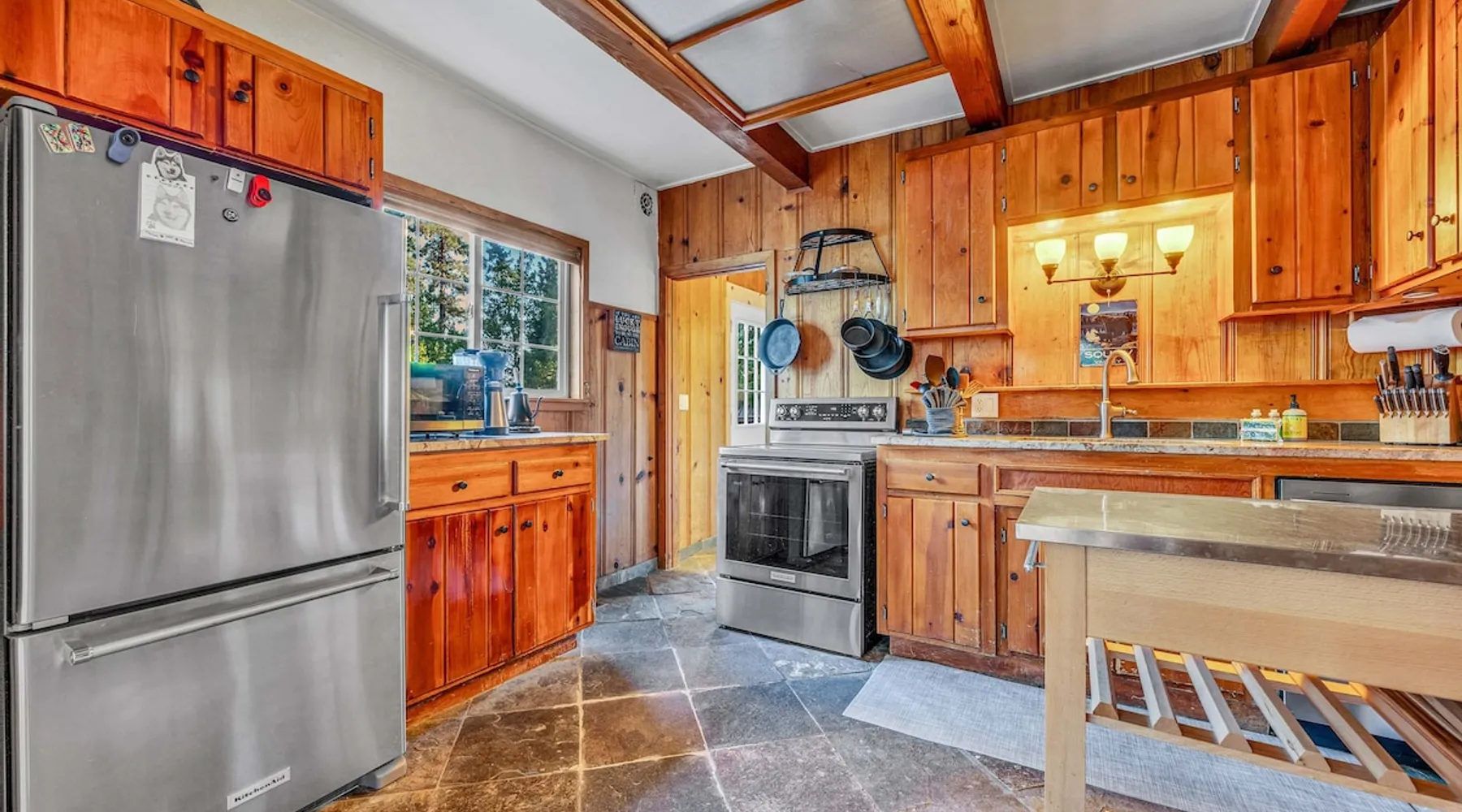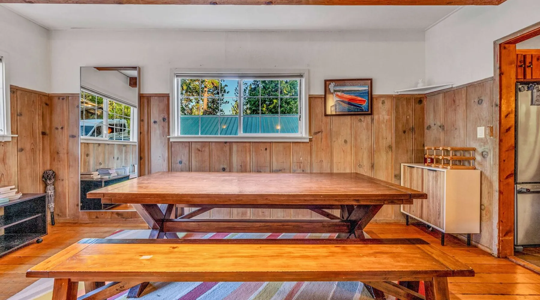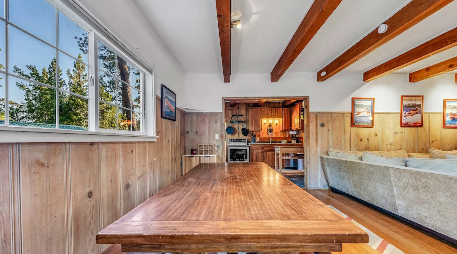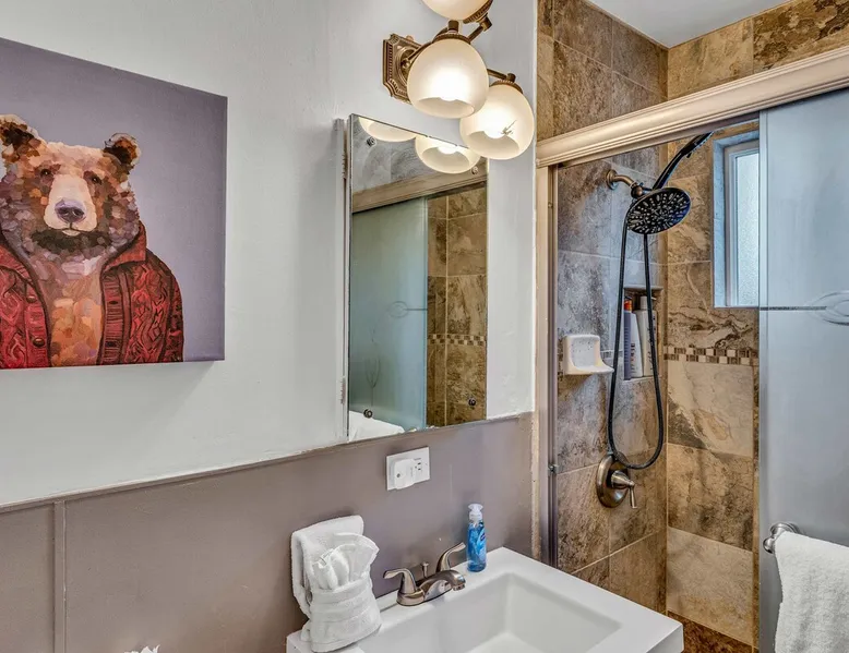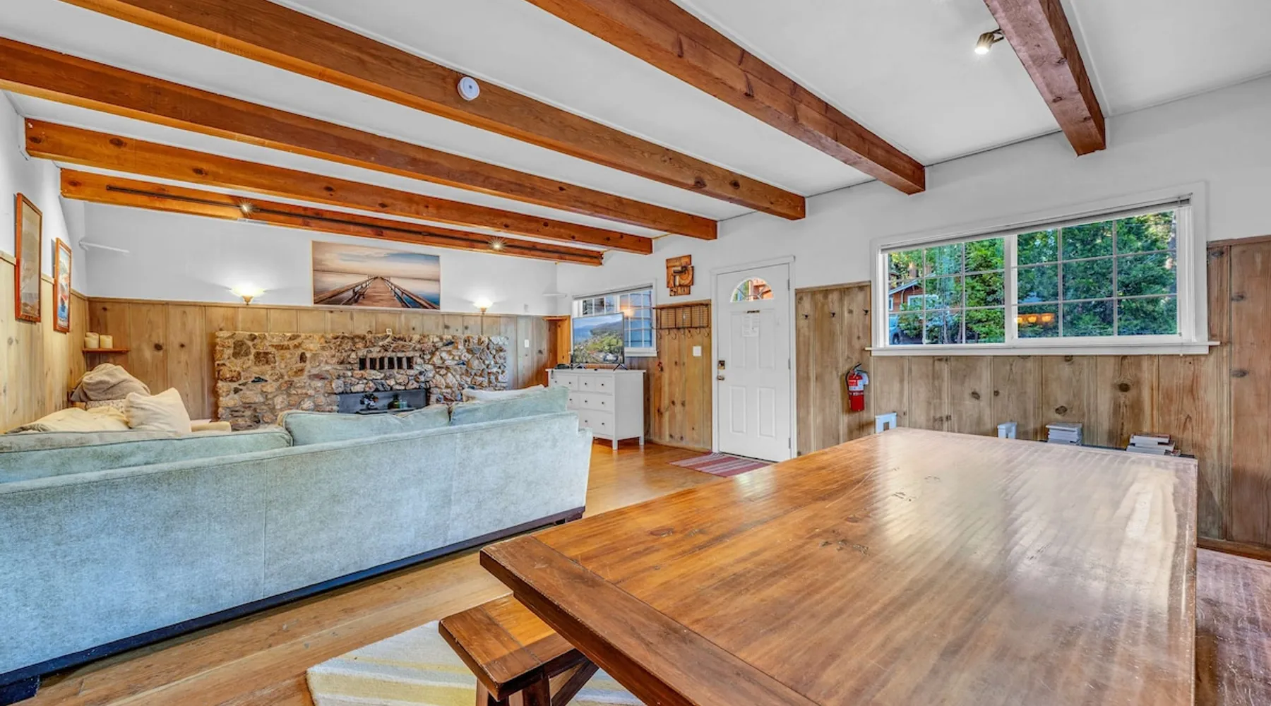 With a pet-friendly fenced yard, updated kitchen, and central Tahoe City location, this 4-bedroom vacation rental blends comfort and convenience. Enjoy work-from-home setups, fast WiFi, and outdoor living just steps from the marina and trails. The space Location perks: Tahoe City Marina (0.4 miles), Save Mart (0.6 miles), Commons Beach (0.6 miles), Tahoe Cross-Country Ski Area (3 miles), Palisades Tahoe (7.8 miles) Floor configuration: Main floor: Kitchen, dining area, living room, 2 bedrooms (each with queen bed and desk), 1 full bathroom (vanity in hallway) Upper floor: 2 bedrooms (each with king bed—1 with Smart TV, 1 with adjustable desk/monitor), 1 full bathroom, second living area Interior: — Kitchen (drip coffee maker, Crockpot, air fryer, waffle maker, cooking utensils, tableware) — Smart TV (50”) with Roku — Wood-burning fireplace (wood not provided) — 2 living rooms (one with L-shaped sectional, one with couch + coffee table) — In-unit washer and dryer — Free WiFi (157 Mbps) — Central heat and no A/C — 1,942 sq. ft. Exterior: — Gas grill — Fire pit (no wood provided) — Fenced backyard with patio — New composite deck — On-site parking for 4 cars in driveway (garage space not guest accessible) STR Permit Number: STR25-9497 Max Occupancy: 8 Parking Info: On-site parking for 4 cars in driveway (garage space not guest accessible) Guest access Guests have access to the full home, fenced backyard, grill, and both living spaces. Laundry is located in a private upstairs closet. Four parking spaces are available in the driveway; garage is not accessible. Other things to note Please keep in mind that if you plan to ski, you are responsible for verifying the ski resorts’ opening and closing dates. Please note that like most homes in the area, this home does not have A/C. 4-wheel drive or 2-wheel drive tires with snow chains may be necessary for safe travel to this property, even if it hasn’t snowed in a few days. Registration Details STR25-9497