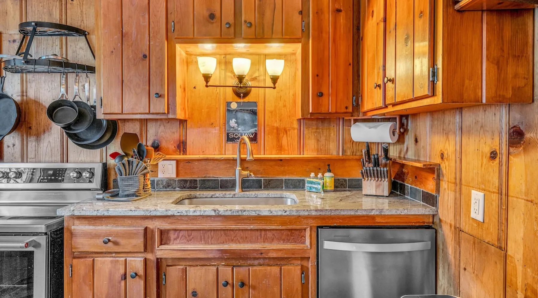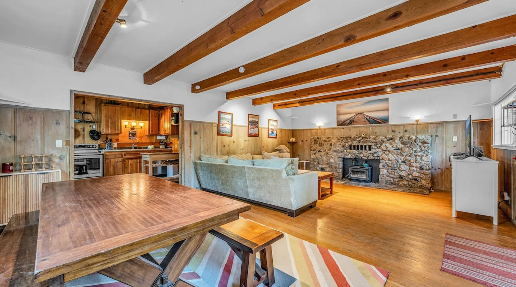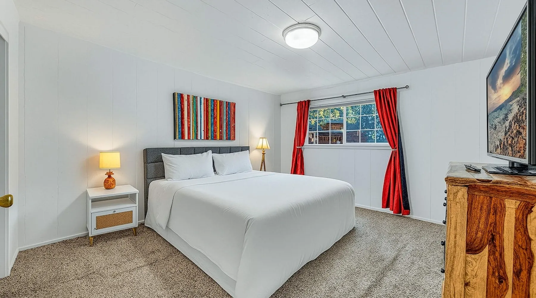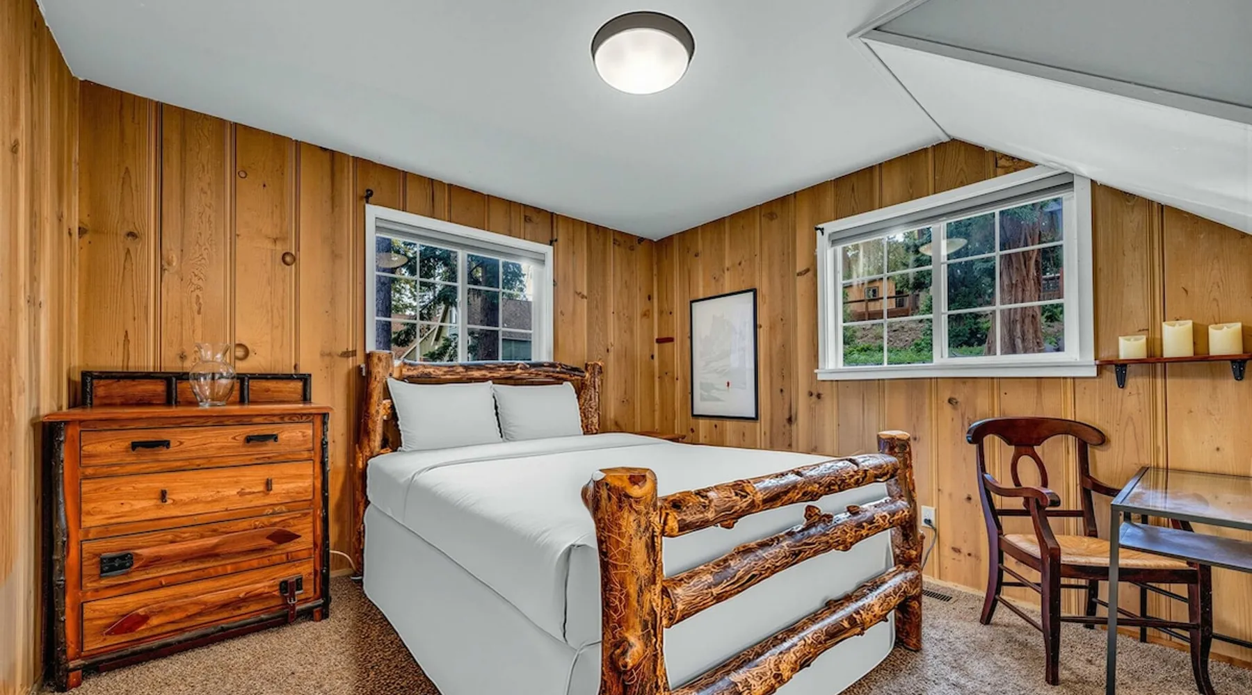 With a pet-friendly fenced yard, updated kitchen, and central Tahoe City location, this 4-bedroom vacation rental blends comfort and convenience. Enjoy work-from-home setups, fast WiFi, and outdoor living just steps from the marina and trails. The space Location perks: Tahoe City Marina (0.4 miles), Save Mart (0.6 miles), Commons Beach (0.6 miles), Tahoe Cross-Country Ski Area (3 miles), Palisades Tahoe (7.8 miles) Floor configuration: Main floor: Kitchen, dining area, living room, 2 bedrooms (each with queen bed and desk), 1 full bathroom (vanity in hallway) Upper floor: 2 bedrooms (each with king bed—1 with Smart TV, 1 with adjustable desk/monitor), 1 full bathroom, second living area Interior: — Kitchen (drip coffee maker, Crockpot, air fryer, waffle maker, cooking utensils, tableware) — Smart TV (50”) with Roku — Wood-burning fireplace (wood not provided) — 2 living rooms (one with L-shaped sectional, one with couch + coffee table) — In-unit washer and dryer — Free WiFi (157 Mbps) — Central heat and no A/C — 1,942 sq. ft. Exterior: — Gas grill — Fire pit (no wood provided) — Fenced backyard with patio — New composite deck — On-site parking for 4 cars in driveway (garage space not guest accessible) STR Permit Number: STR25-9497 Max Occupancy: 8 Parking Info: On-site parking for 4 cars in driveway (garage space not guest accessible) Guest access Guests have access to the full home, fenced backyard, grill, and both living spaces. Laundry is located in a private upstairs closet. Four parking spaces are available in the driveway; garage is not accessible. Other things to note Please keep in mind that if you plan to ski, you are responsible for verifying the ski resorts’ opening and closing dates. Please note that like most homes in the area, this home does not have A/C. 4-wheel drive or 2-wheel drive tires with snow chains may be necessary for safe travel to this property, even if it hasn’t snowed in a few days. Registration Details STR25-9497