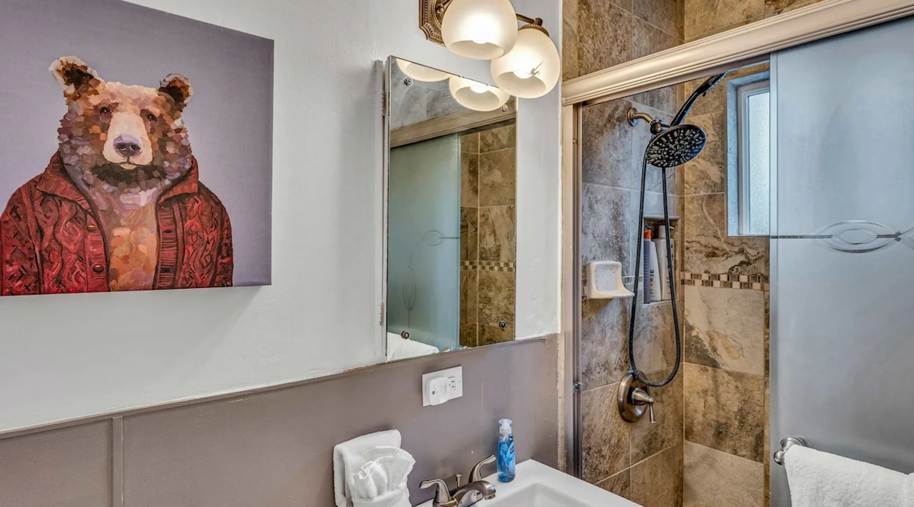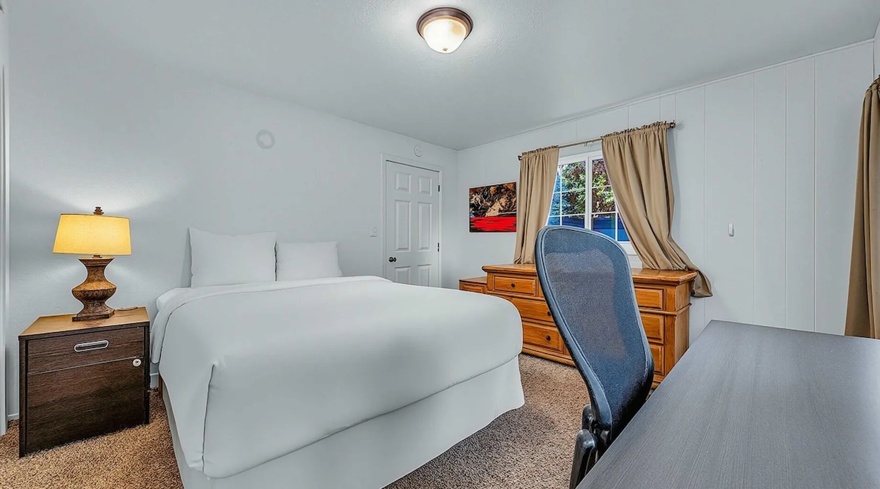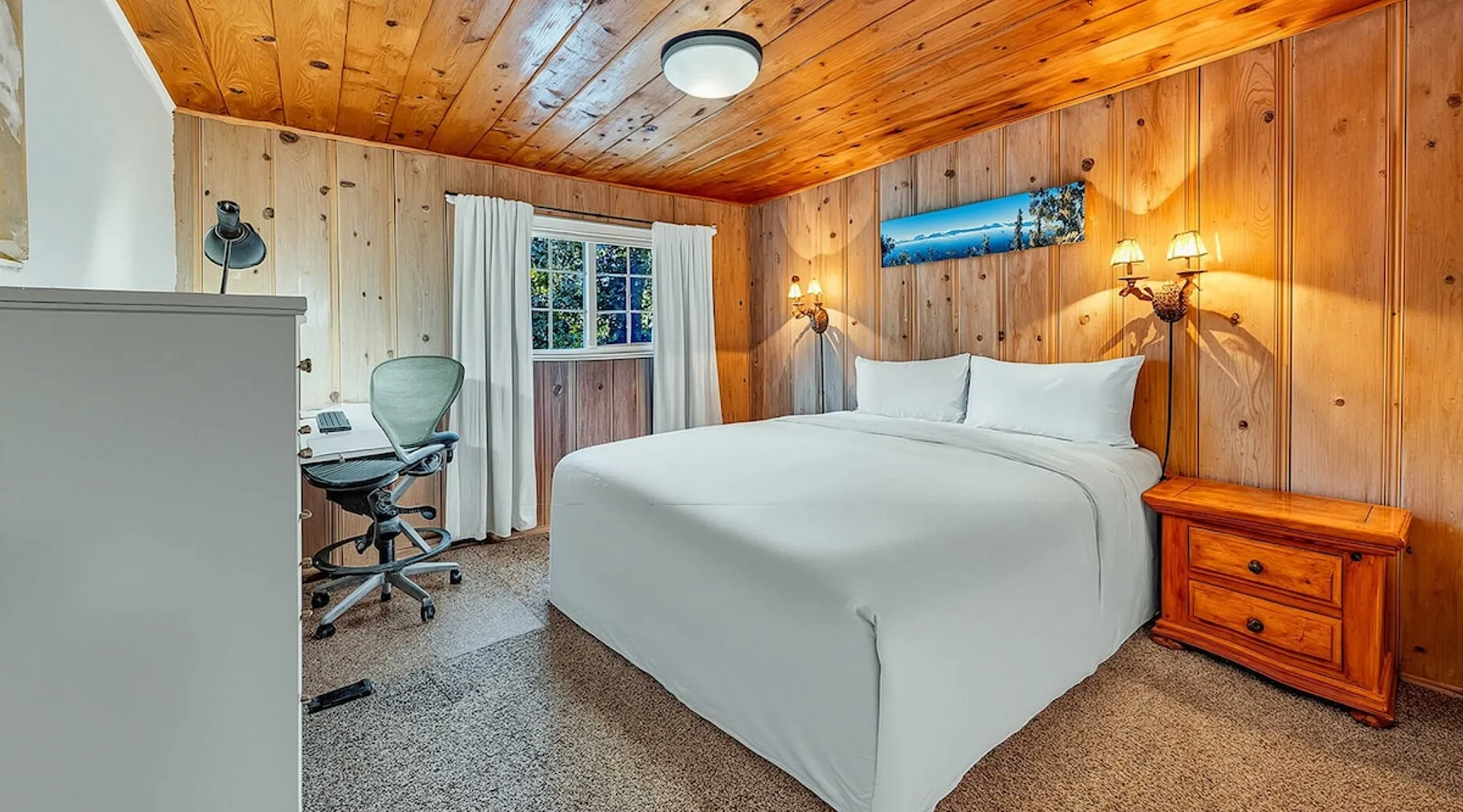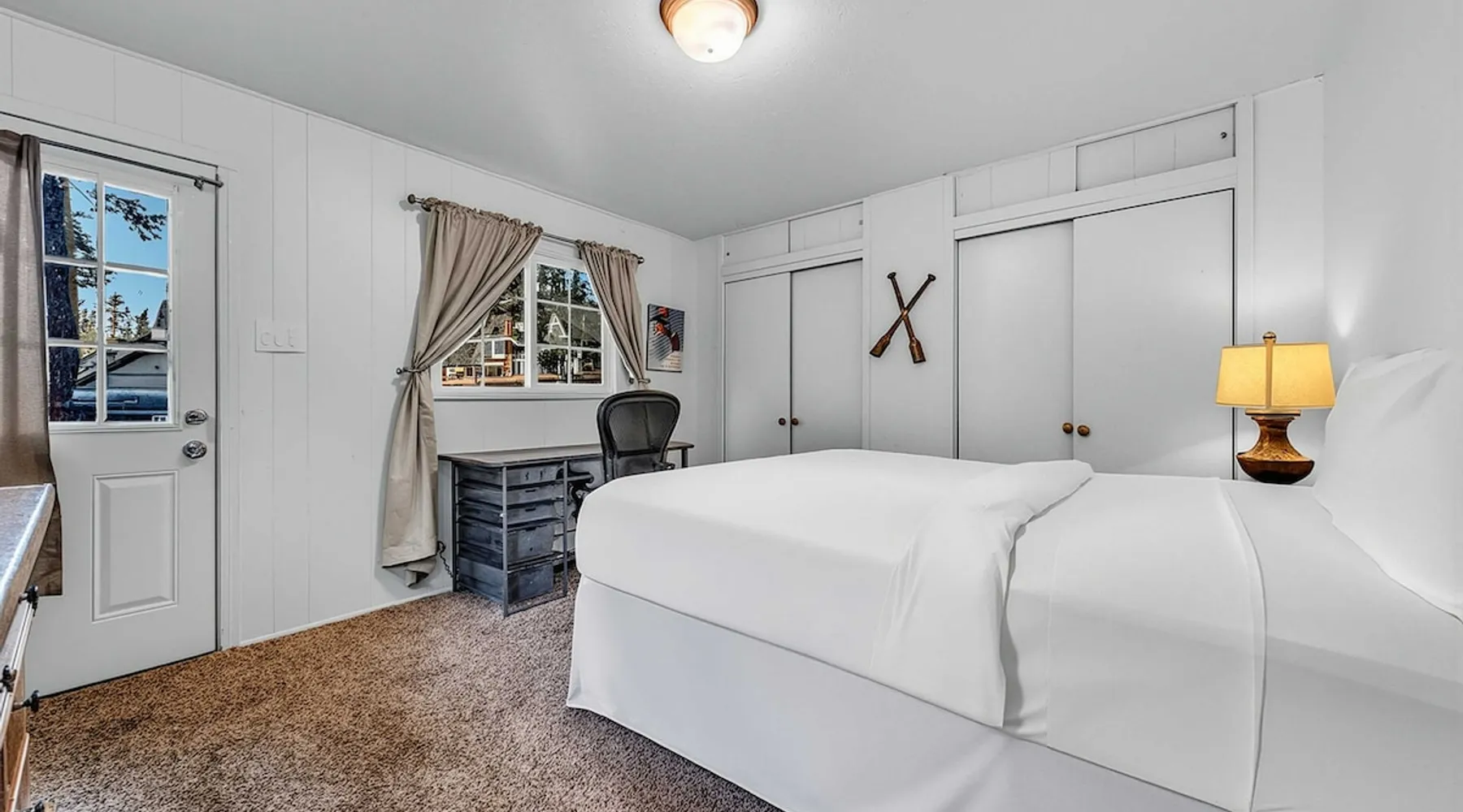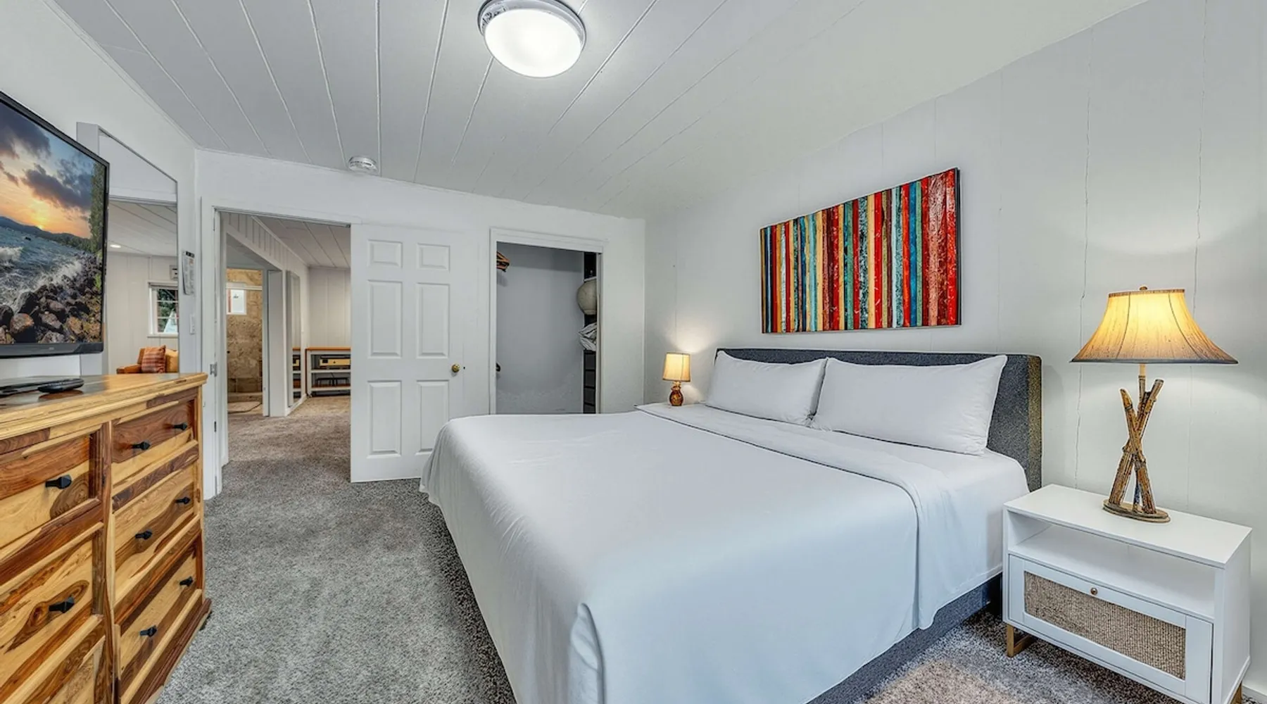 With a pet-friendly fenced yard, updated kitchen, and central Tahoe City location, this 4-bedroom vacation rental blends comfort and convenience. Enjoy work-from-home setups, fast WiFi, and outdoor living just steps from the marina and trails. The space Location perks: Tahoe City Marina (0.4 miles), Save Mart (0.6 miles), Commons Beach (0.6 miles), Tahoe Cross-Country Ski Area (3 miles), Palisades Tahoe (7.8 miles) Floor configuration: Main floor: Kitchen, dining area, living room, 2 bedrooms (each with queen bed and desk), 1 full bathroom (vanity in hallway) Upper floor: 2 bedrooms (each with king bed—1 with Smart TV, 1 with adjustable desk/monitor), 1 full bathroom, second living area Interior: — Kitchen (drip coffee maker, Crockpot, air fryer, waffle maker, cooking utensils, tableware) — Smart TV (50”) with Roku — Wood-burning fireplace (wood not provided) — 2 living rooms (one with L-shaped sectional, one with couch + coffee table) — In-unit washer and dryer — Free WiFi (157 Mbps) — Central heat and no A/C — 1,942 sq. ft. Exterior: — Gas grill — Fire pit (no wood provided) — Fenced backyard with patio — New composite deck — On-site parking for 4 cars in driveway (garage space not guest accessible) STR Permit Number: STR25-9497 Max Occupancy: 8 Parking Info: On-site parking for 4 cars in driveway (garage space not guest accessible) Guest access Guests have access to the full home, fenced backyard, grill, and both living spaces. Laundry is located in a private upstairs closet. Four parking spaces are available in the driveway; garage is not accessible. Other things to note Please keep in mind that if you plan to ski, you are responsible for verifying the ski resorts’ opening and closing dates. Please note that like most homes in the area, this home does not have A/C. 4-wheel drive or 2-wheel drive tires with snow chains may be necessary for safe travel to this property, even if it hasn’t snowed in a few days. Registration Details STR25-9497