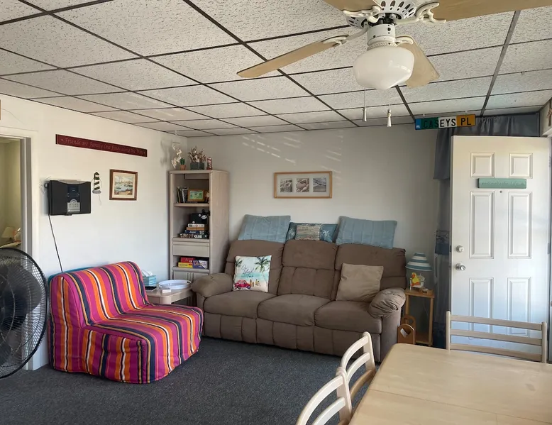 Now booking for 2026! Save 10% when you stay a week or more. Book now! Make some memories at this family-friendly place located one block from the beach and walking distance to NW bars & restaurants. Two bedrooms, sleeps 6 (double bed in each room plus a single bed and a trundle bed). Full kitchen and bathroom with all essentials included. 1 parking spot included. Everything you need for a fun-filled vacation at the Jersey Shore! The space This condo is located one block from the beach and walking distance to the bars and restaurants of North Wildwood. Family friendly, complete with a heated pool that has a love seat and baby area. There are 2 BBQ grills located conveniently on the shared deck on the same floor as the condo. Other things to note The condo is located on the second floor and there is no elevator available. Linens, towels and extra blankets are provided.