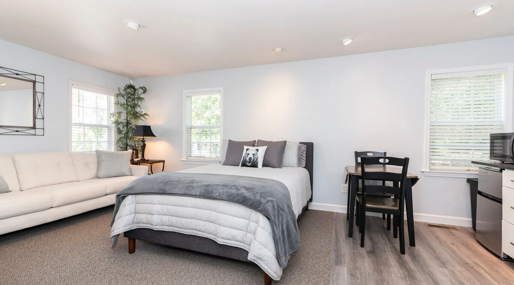 Enjoy your quiet stay and yet only 2 blocks from uptown Lexington, with all the restaurants, bars, and shops. The space Enjoy staying in the Historic District of Lexington, NC. The "Bear Cottage" is 2 blocks from uptown, where you will find quaint charm as you shop the stores along the main street. Lexington offers good dining, coffee shops, Bull city cider works, Brewers Kettle, and we can't forget about our famous Lexington BBQ; or you can order takeout and relax in our courtyard while enjoing the hummingbirds and butterflies as your sitting around the firepit. Our entire property is non-smoking. Lexington's beautiful amphitheater and the civic center offer many events throughout the year. While staying at the "Bear Cottage" you will enjoy a comfortable sitting area to relax and read a book or watch tv, a new plush queen bed, 2 seater table, and kitchenette with mini-fridge/freezer, microwave, toaster oven, Keurig coffee maker w/ pods and a full bathroom with all the amenities you need. Very convenient to Charlotte and less than 30 min from Salisbury, Winston-Salem and High Point. Off-street parking with private entrance to the cottage including a touchpad door locking system for your convenience. Other things to note We have two dogs and a electric fence around our yard. They are very friendly and like to be loved on. If you are not comfortable with dogs let us know we will do our best to accommodate you.