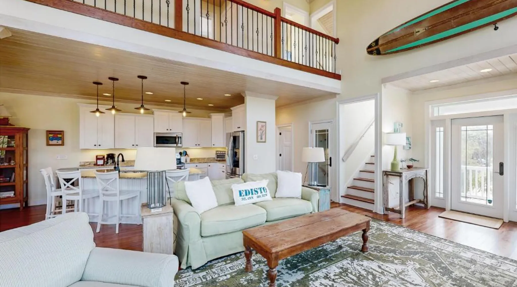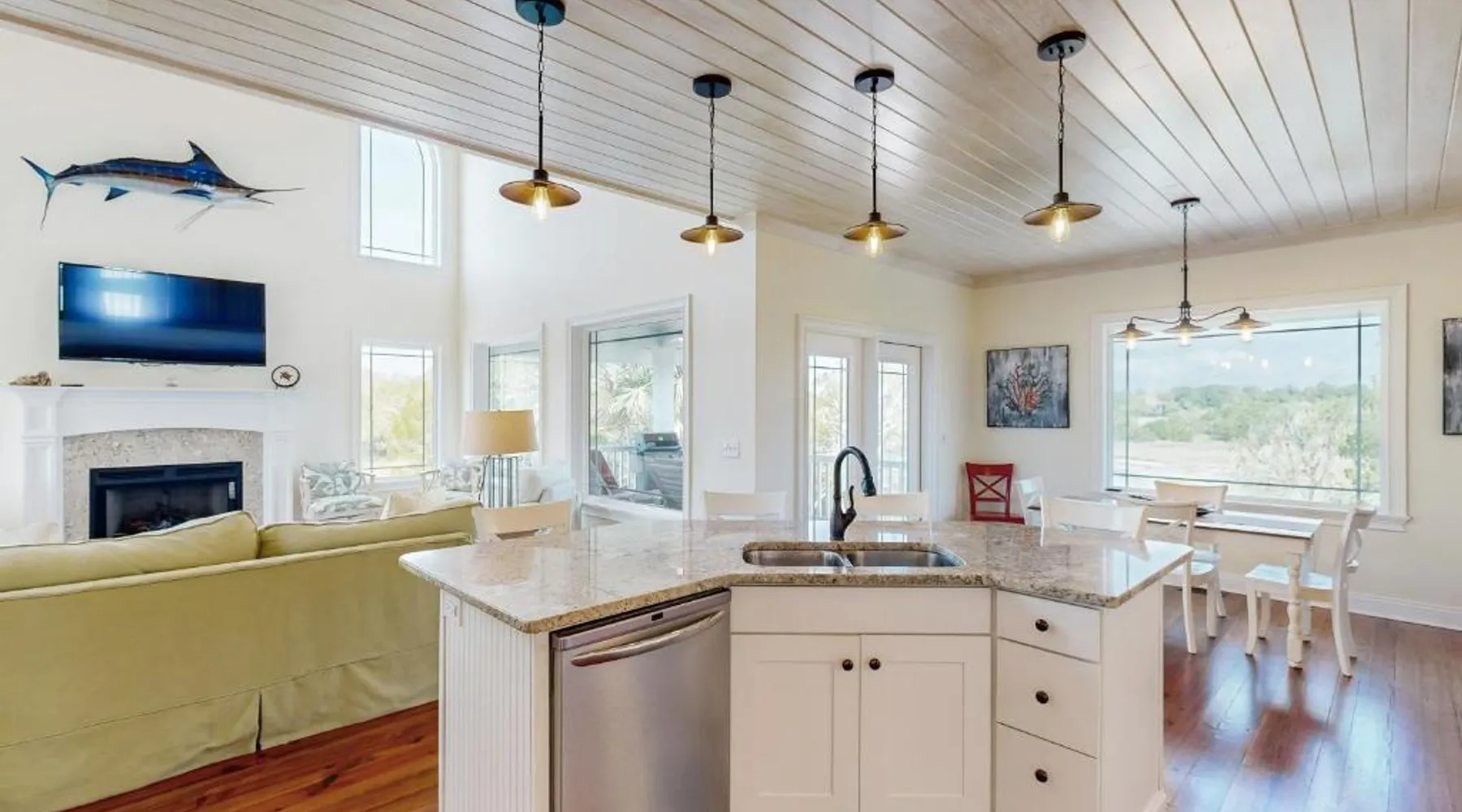 Spacious Holiday Home in Edisto Beach: Sweet Carolina offers a spacious holiday home in Edisto Beach, United States. The property features three bedrooms and two bathrooms, ensuring ample space for guests. Comfortable Amenities: The home includes air-conditioning, a spa bath, washing machine, patio, and a fully equipped kitchen with modern appliances. Guests can enjoy river views from the outdoor seating area and relax in the dining area. Dining and Leisure: A restaurant on-site provides convenient dining options. The outdoor seating area offers a pleasant setting for meals and leisure activities. Nearby Attractions: Edisto Beach is a 4-minute walk away, offering scenic coastal views. Charleston International Airport is 48 mi from the property, providing easy access for travelers. Guests will have a special experience as this holiday home offers a spa bath. The spacious holiday home features 3 bedrooms and 2 bathrooms with a hairdryer and free toiletries. Guests will find a stovetop, a refrigerator, a dishwasher and kitchenware in the well-fitted kitchen. The holiday home also has a barbecue. This holiday home is air-conditioned and has a seating area with a TV, a washing machine, a private entrance, a tea and coffee maker, as well as a dining area. The unit offers 3 beds.