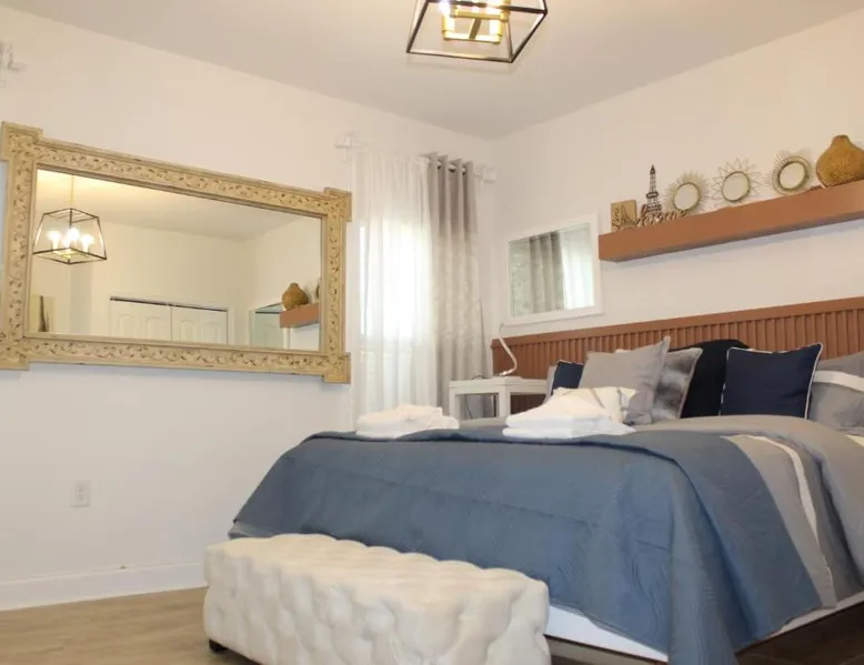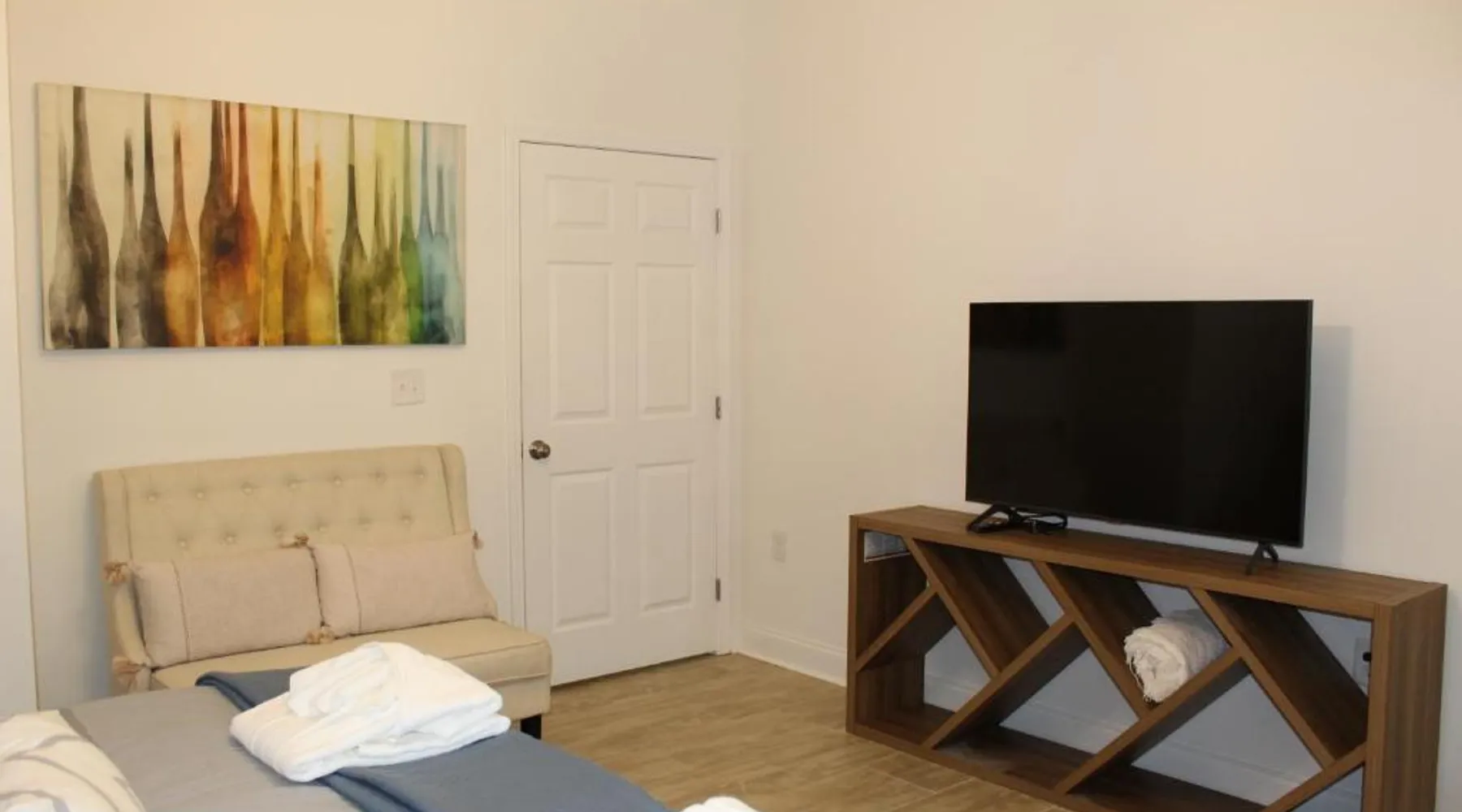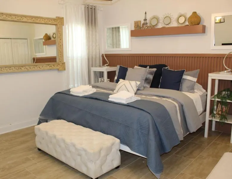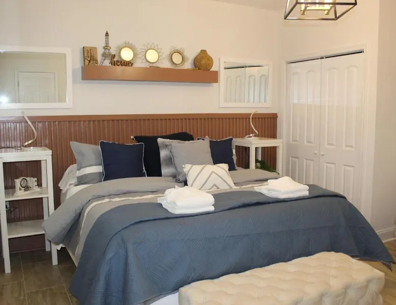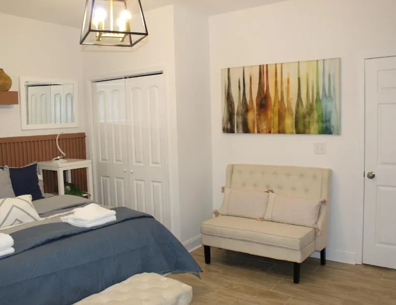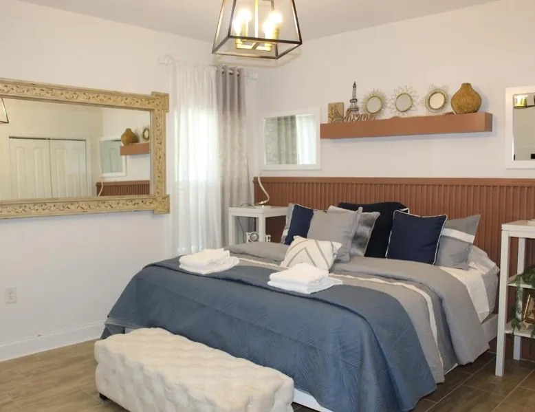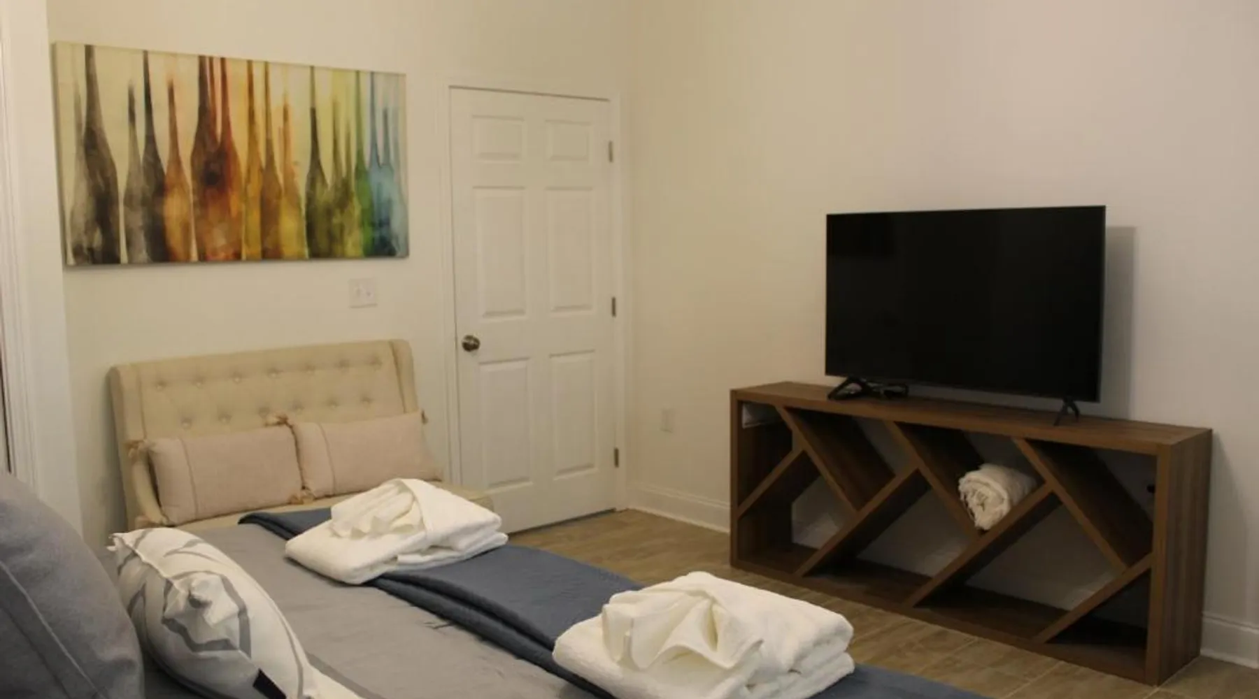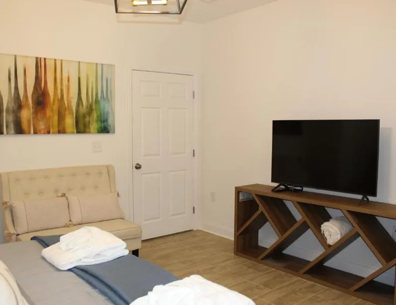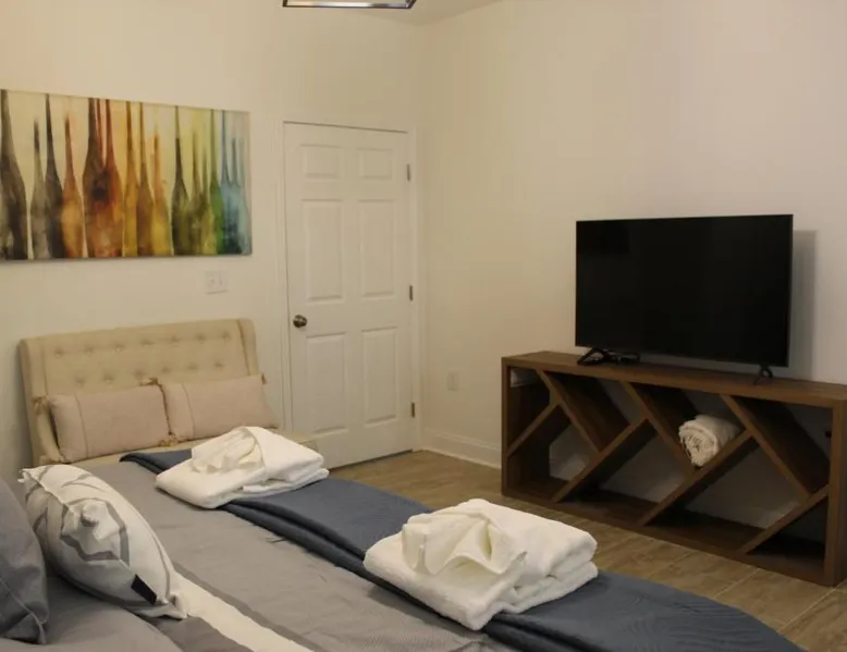 Elegant Accommodations: Casa Maria Bonita in McDonough offers a recently renovated villa with two bedrooms and two bathrooms. The property features a garden and free WiFi, ensuring a comfortable stay. Modern Amenities: Guests can enjoy air-conditioning, a kitchenette, washing machine, and a fully equipped kitchen. Additional amenities include a work desk, seating area, shower, dressing room, TV, private entrance, sofa, and tiled floors. Convenient Location: Located 19 mi from Hartsfield–Jackson Atlanta International Airport, the villa is close to attractions such as Zoo Atlanta (22 mi) and Atlanta Stadium (24 mi). Free on-site private parking is available. The villa's kitchen is available for cooking and storing food. This villa is air-conditioned and has a seating area with a flat-screen TV, a washing machine, a private entrance, a wardrobe, as well as tumble dryer. The unit has 2 beds.