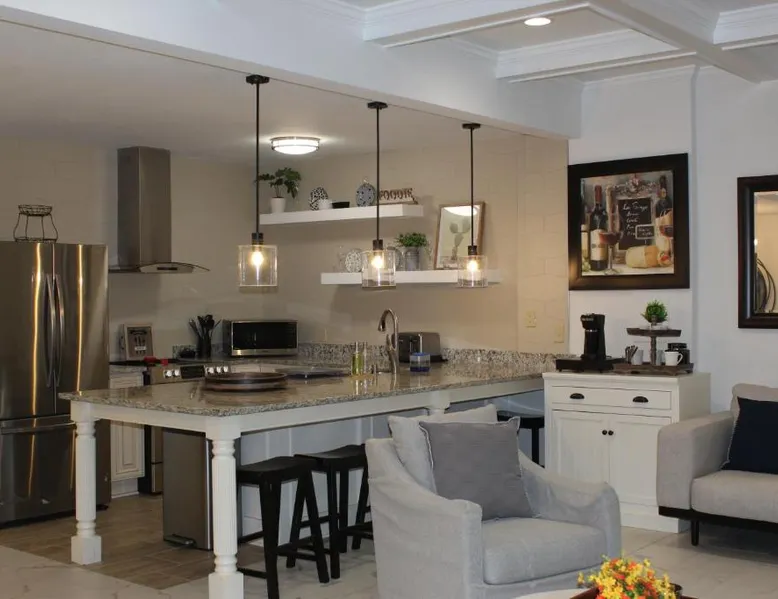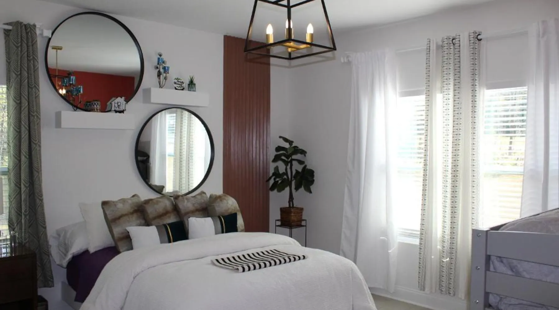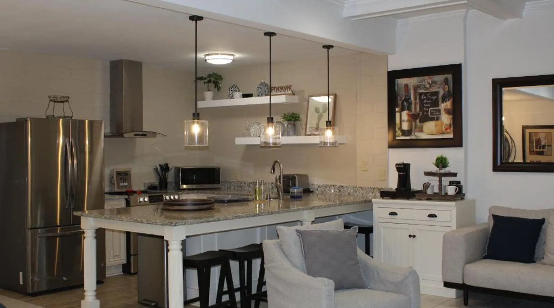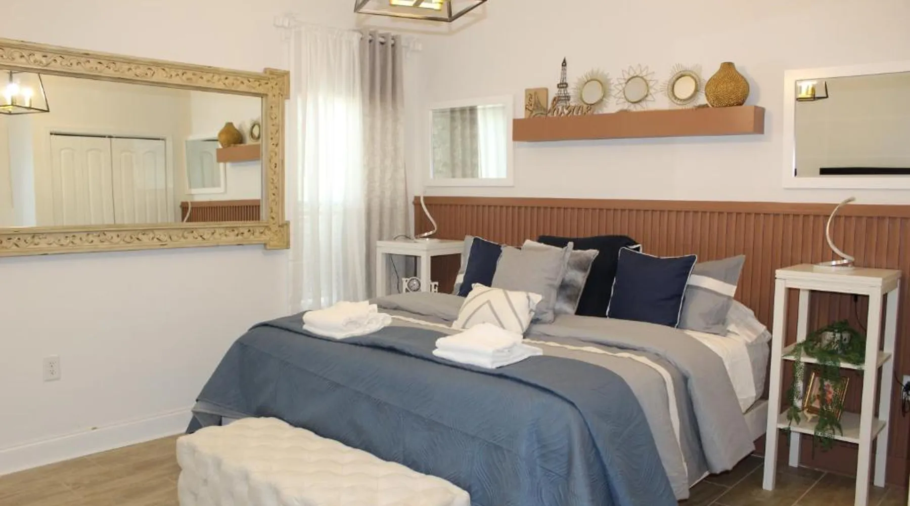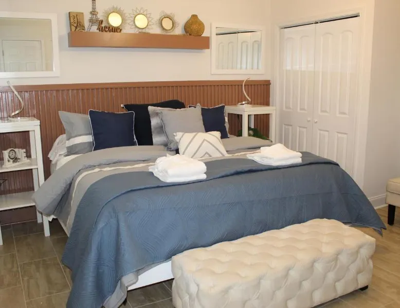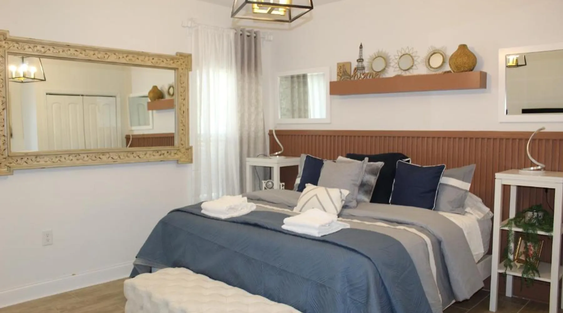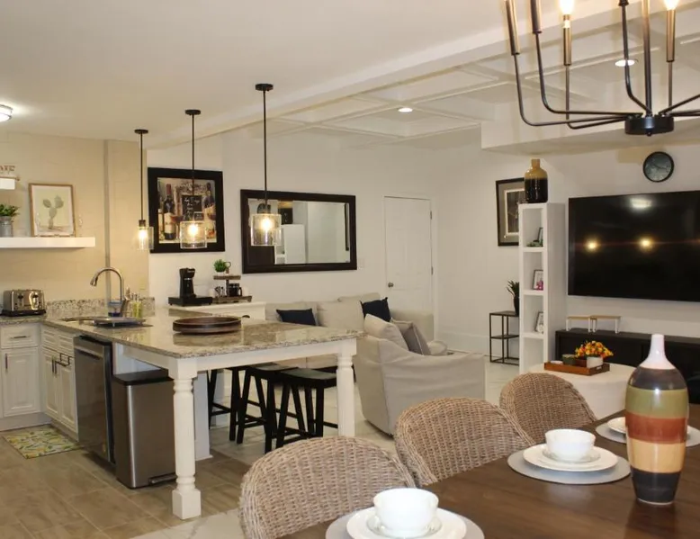 Elegant Accommodations: Casa Maria Bonita in McDonough offers a recently renovated villa with two bedrooms and two bathrooms. The property features a garden and free WiFi, ensuring a comfortable stay. Modern Amenities: Guests can enjoy air-conditioning, a kitchenette, washing machine, and a fully equipped kitchen. Additional amenities include a work desk, seating area, shower, dressing room, TV, private entrance, sofa, and tiled floors. Convenient Location: Located 19 mi from Hartsfield–Jackson Atlanta International Airport, the villa is close to attractions such as Zoo Atlanta (22 mi) and Atlanta Stadium (24 mi). Free on-site private parking is available. The villa's kitchen is available for cooking and storing food. This villa is air-conditioned and has a seating area with a flat-screen TV, a washing machine, a private entrance, a wardrobe, as well as tumble dryer. The unit has 2 beds.