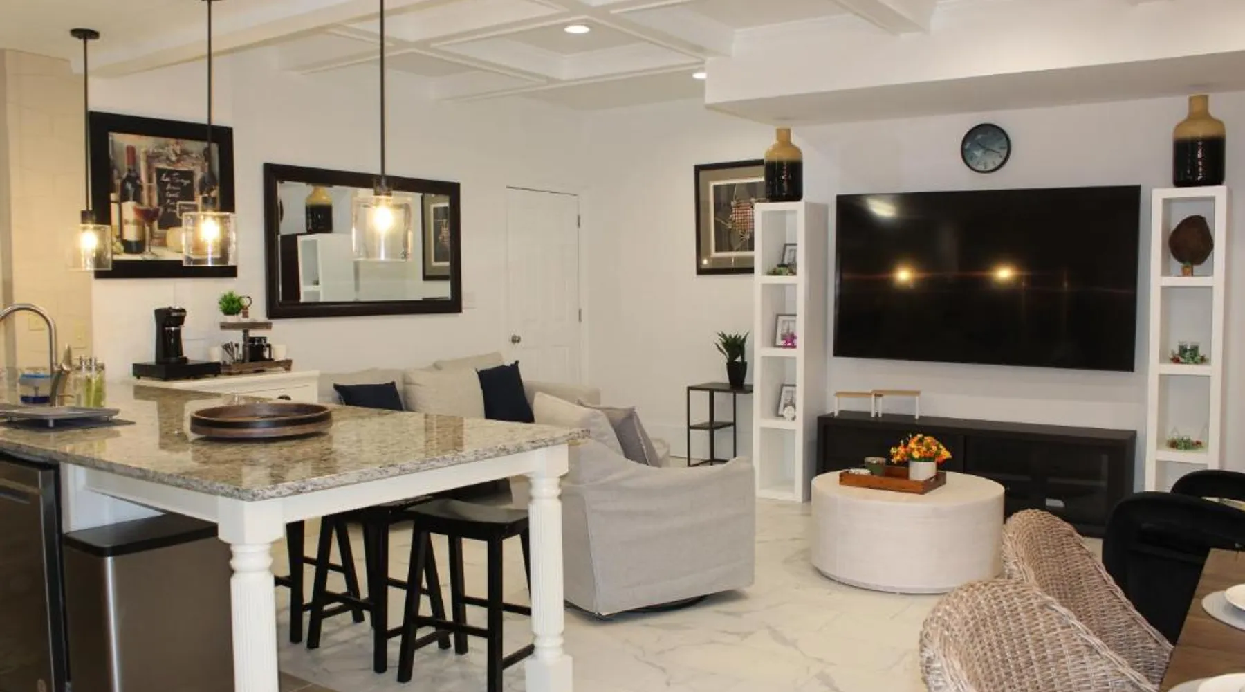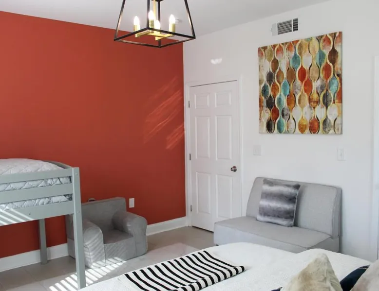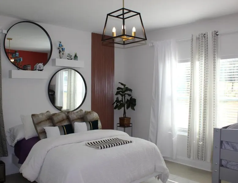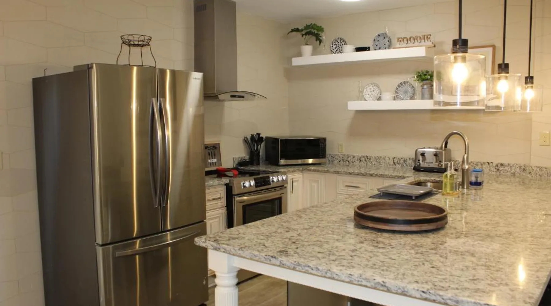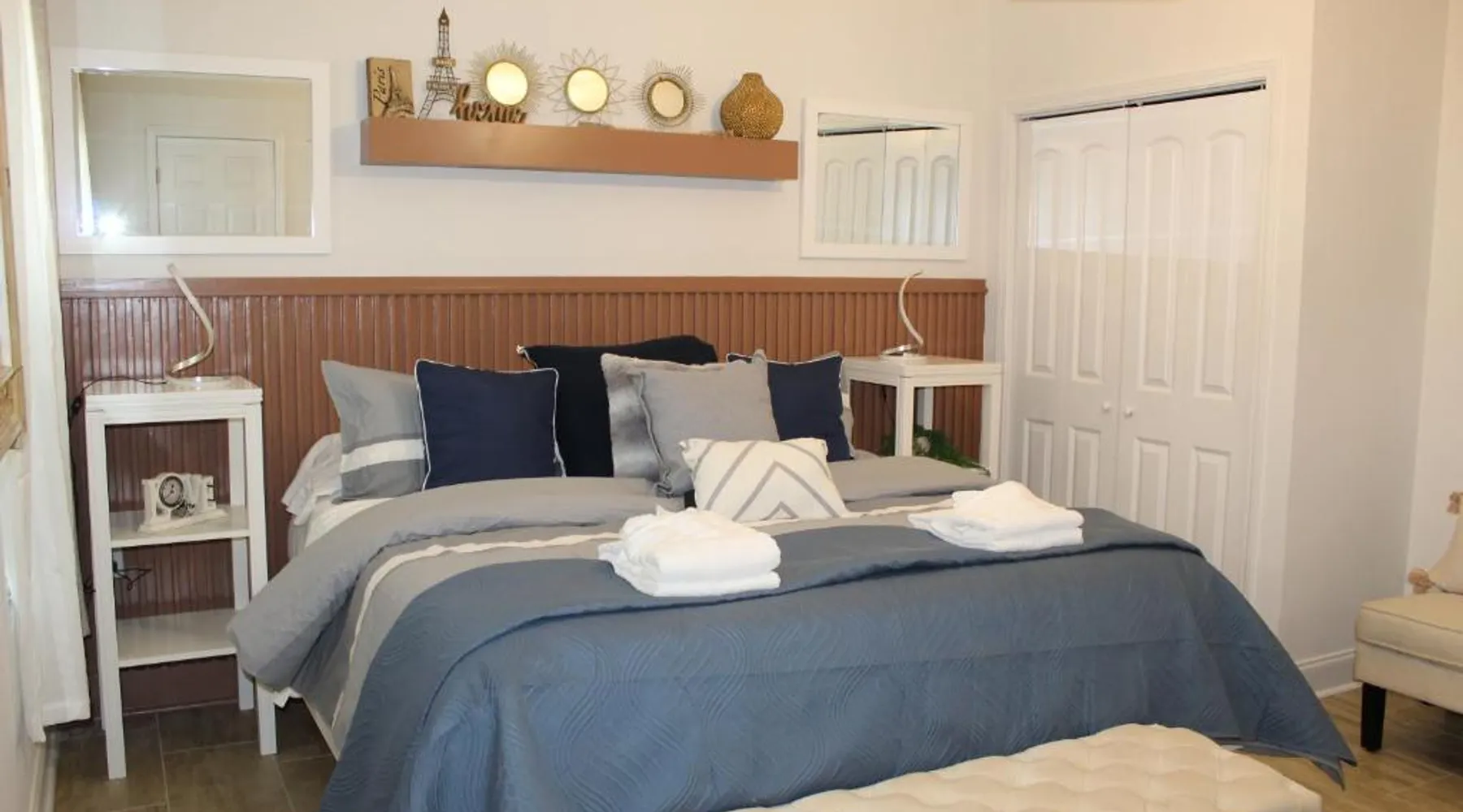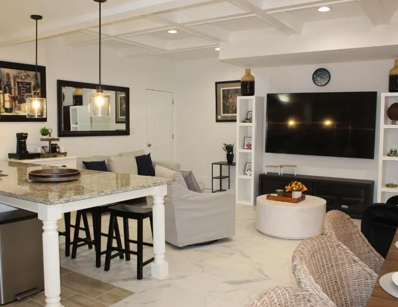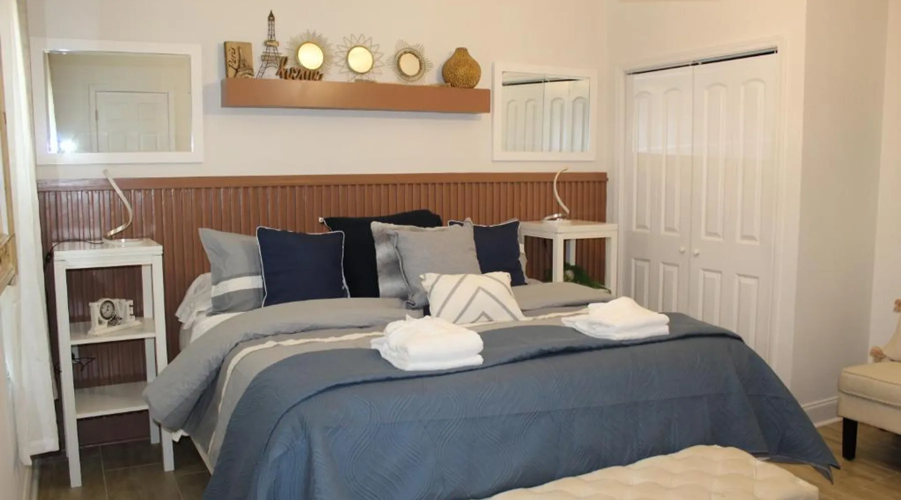 Elegant Accommodations: Casa Maria Bonita in McDonough offers a recently renovated villa with two bedrooms and two bathrooms. The property features a garden and free WiFi, ensuring a comfortable stay. Modern Amenities: Guests can enjoy air-conditioning, a kitchenette, washing machine, and a fully equipped kitchen. Additional amenities include a work desk, seating area, shower, dressing room, TV, private entrance, sofa, and tiled floors. Convenient Location: Located 19 mi from Hartsfield–Jackson Atlanta International Airport, the villa is close to attractions such as Zoo Atlanta (22 mi) and Atlanta Stadium (24 mi). Free on-site private parking is available. The villa's kitchen is available for cooking and storing food. This villa is air-conditioned and has a seating area with a flat-screen TV, a washing machine, a private entrance, a wardrobe, as well as tumble dryer. The unit has 2 beds.
