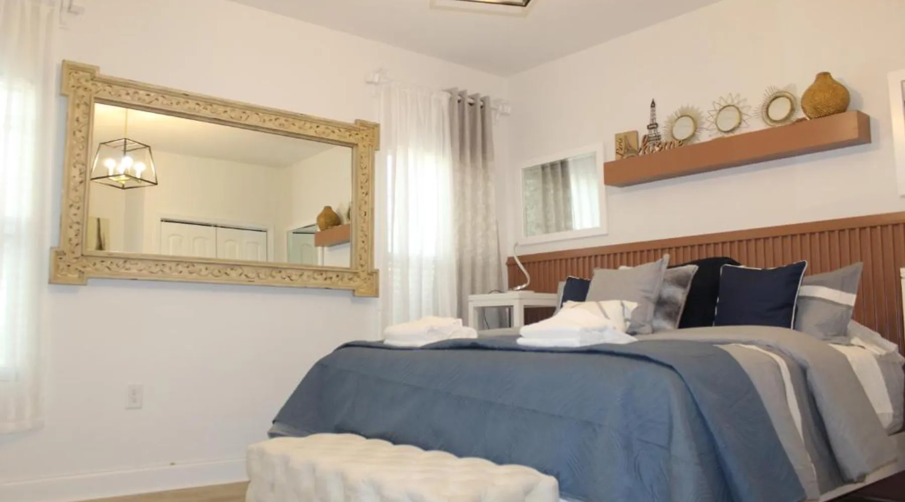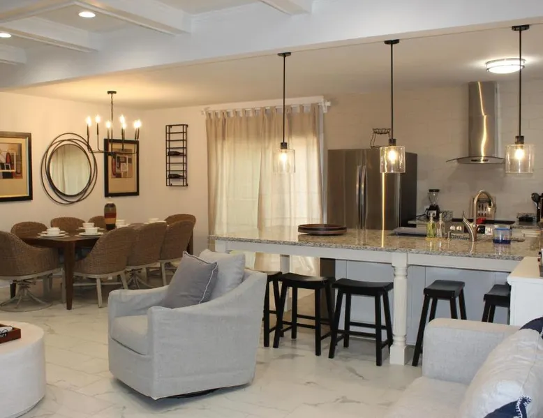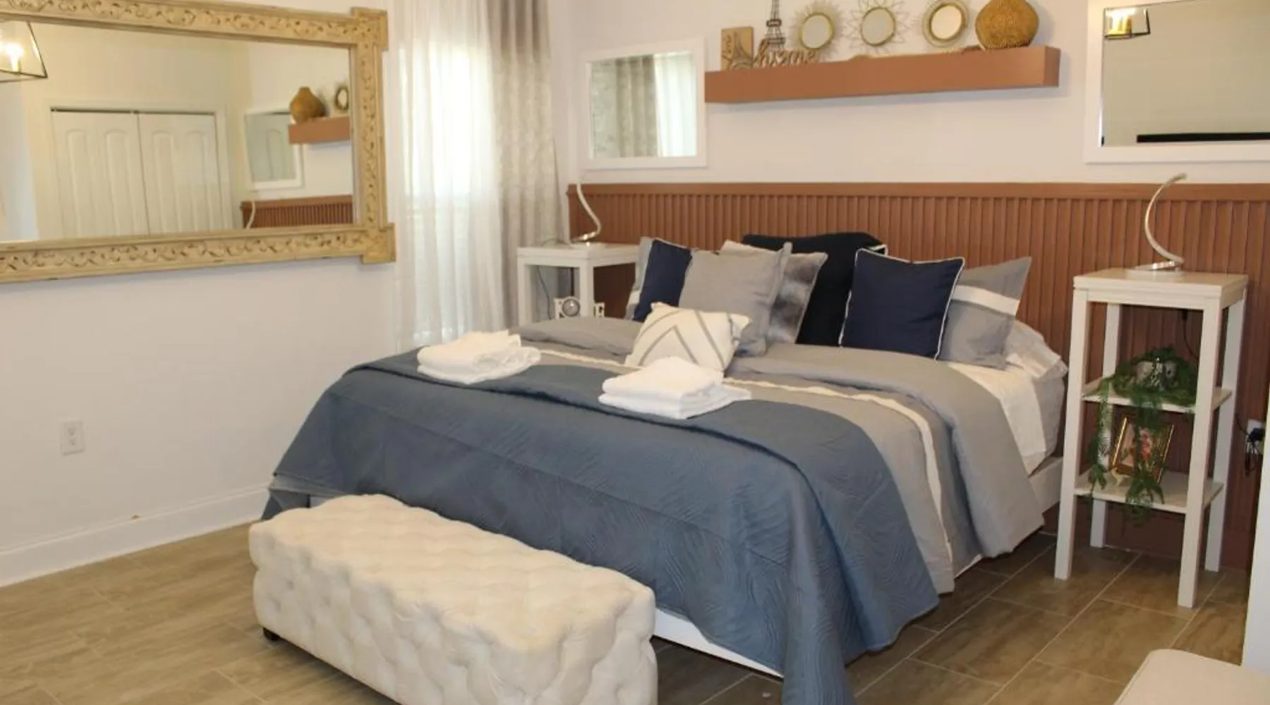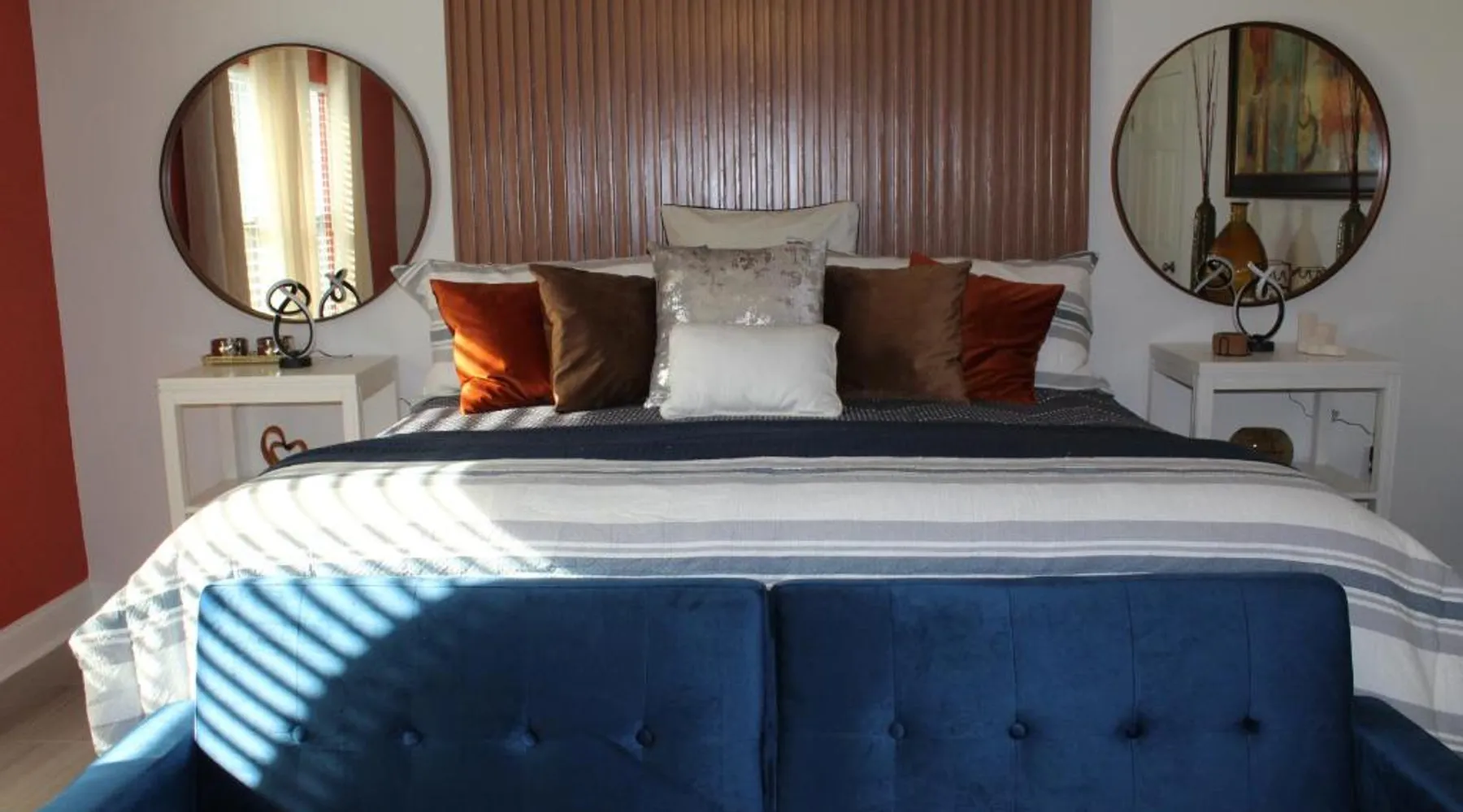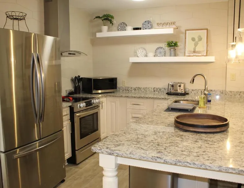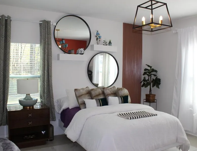 Elegant Accommodations: Casa Maria Bonita in McDonough offers a recently renovated villa with two bedrooms and two bathrooms. The property features a garden and free WiFi, ensuring a comfortable stay. Modern Amenities: Guests can enjoy air-conditioning, a kitchenette, washing machine, and a fully equipped kitchen. Additional amenities include a work desk, seating area, shower, dressing room, TV, private entrance, sofa, and tiled floors. Convenient Location: Located 19 mi from Hartsfield–Jackson Atlanta International Airport, the villa is close to attractions such as Zoo Atlanta (22 mi) and Atlanta Stadium (24 mi). Free on-site private parking is available. The villa's kitchen is available for cooking and storing food. This villa is air-conditioned and has a seating area with a flat-screen TV, a washing machine, a private entrance, a wardrobe, as well as tumble dryer. The unit has 2 beds.