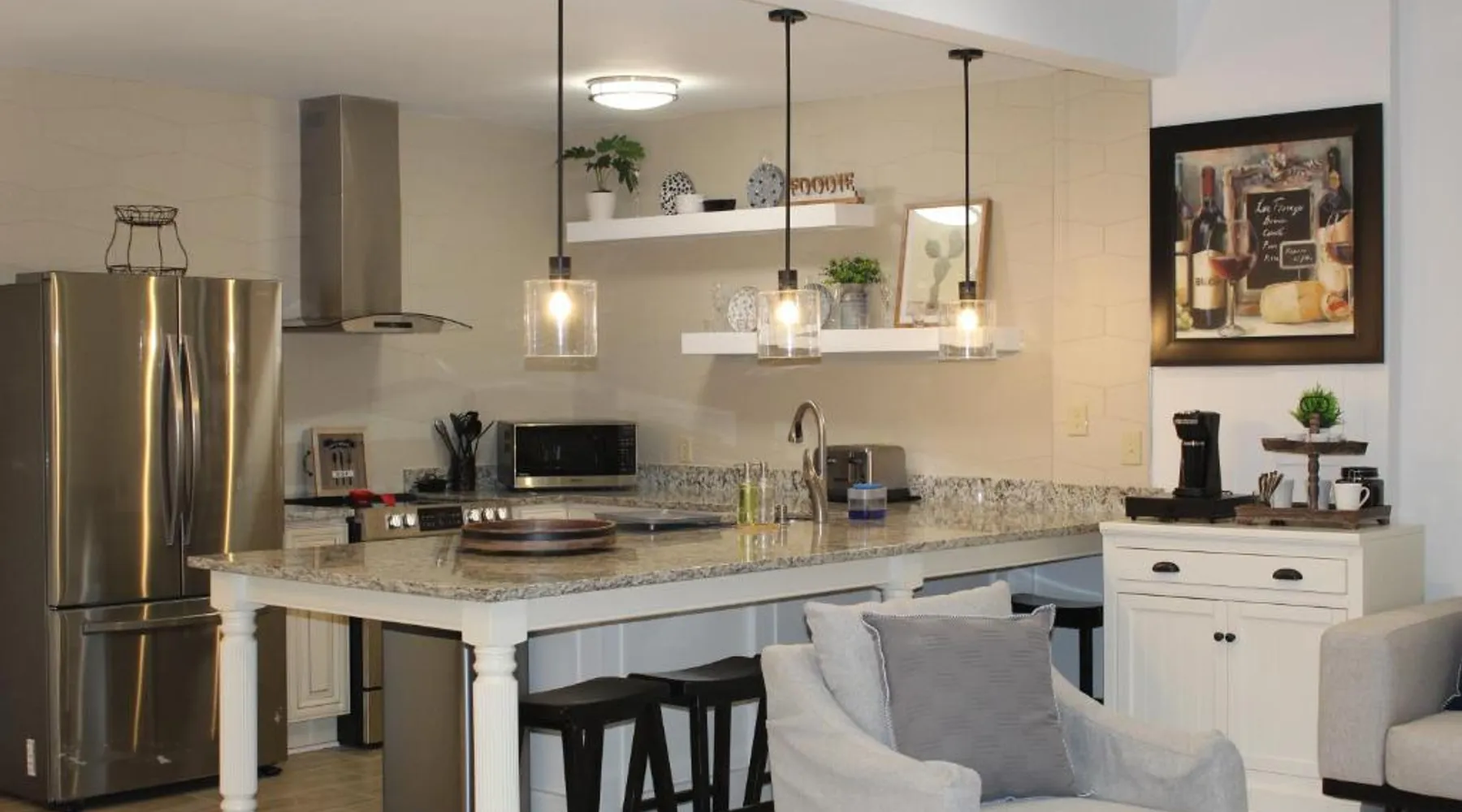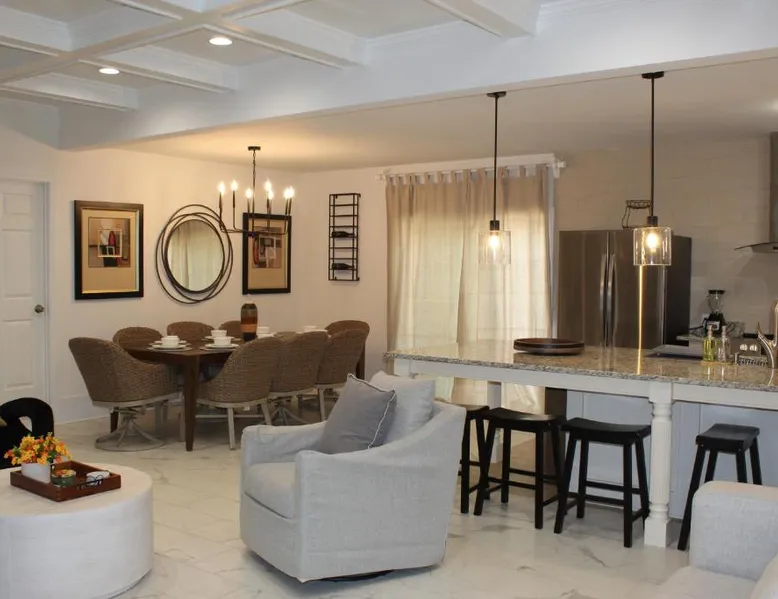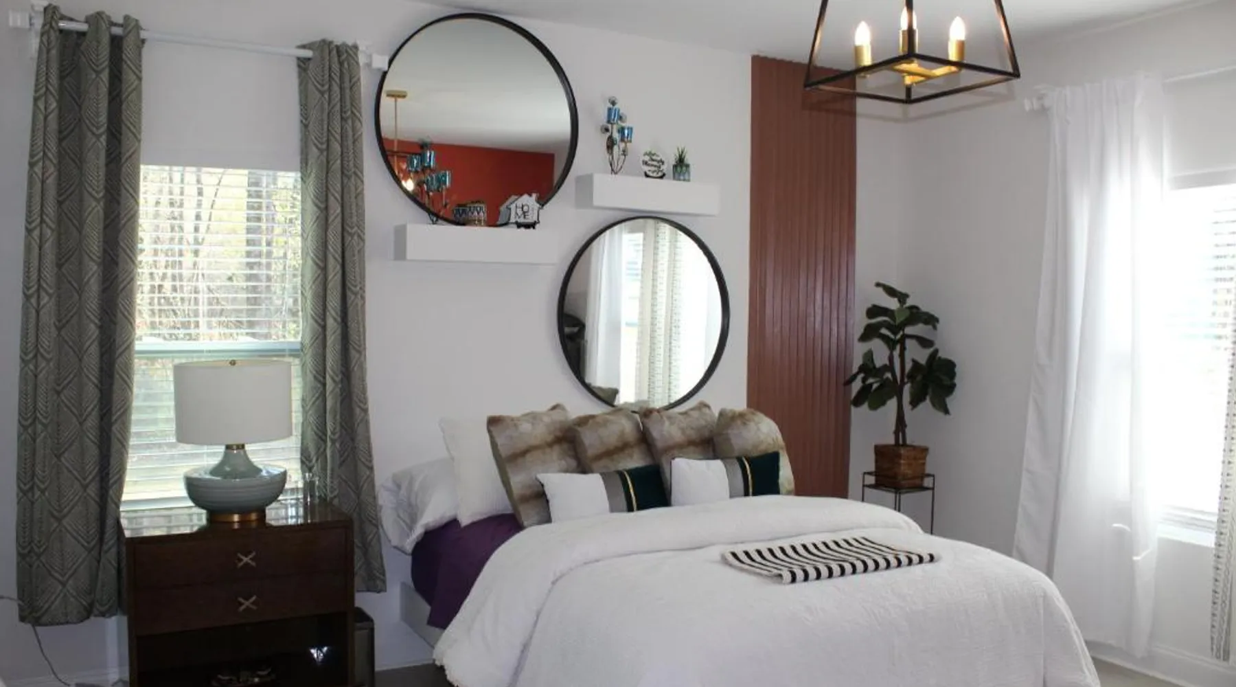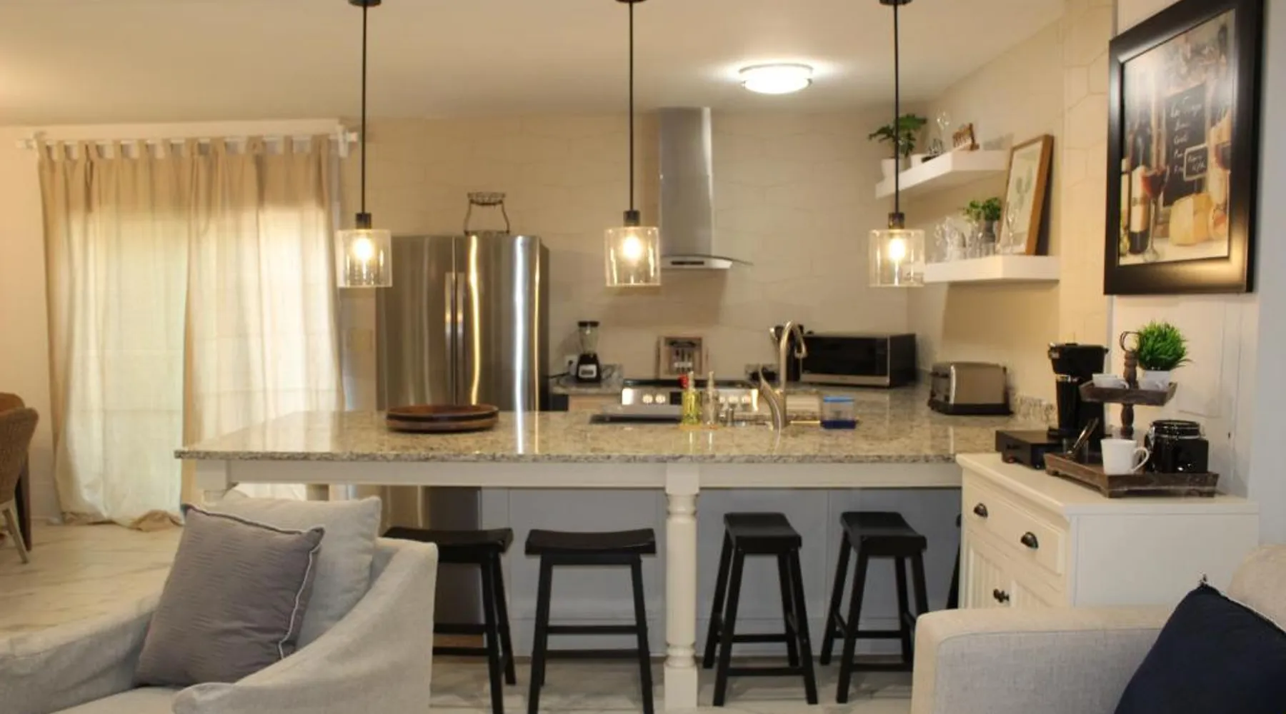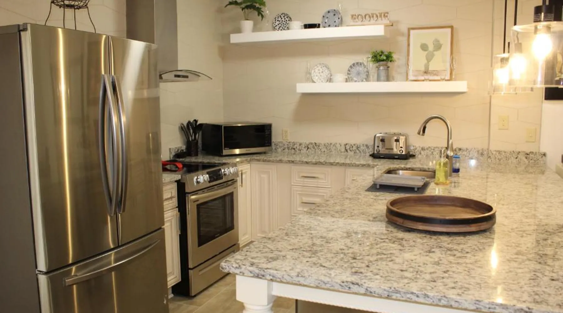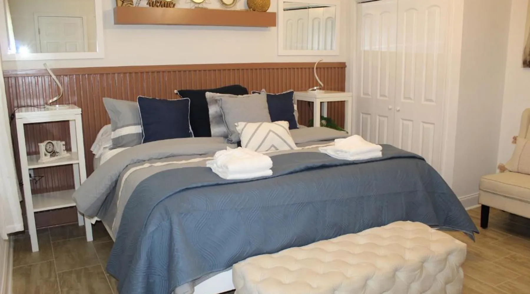 Elegant Accommodations: Casa Maria Bonita in McDonough offers a recently renovated villa with two bedrooms and two bathrooms. The property features a garden and free WiFi, ensuring a comfortable stay. Modern Amenities: Guests can enjoy air-conditioning, a kitchenette, washing machine, and a fully equipped kitchen. Additional amenities include a work desk, seating area, shower, dressing room, TV, private entrance, sofa, and tiled floors. Convenient Location: Located 19 mi from Hartsfield–Jackson Atlanta International Airport, the villa is close to attractions such as Zoo Atlanta (22 mi) and Atlanta Stadium (24 mi). Free on-site private parking is available. The villa's kitchen is available for cooking and storing food. This villa is air-conditioned and has a seating area with a flat-screen TV, a washing machine, a private entrance, a wardrobe, as well as tumble dryer. The unit has 2 beds.