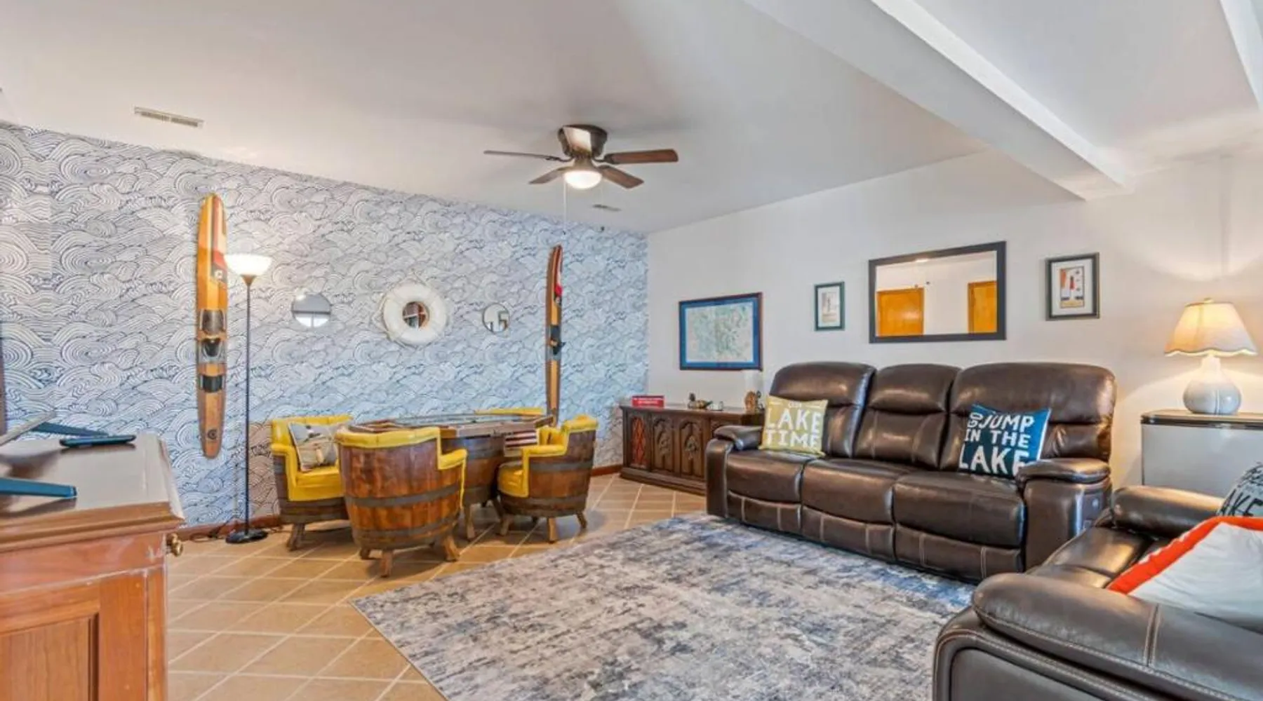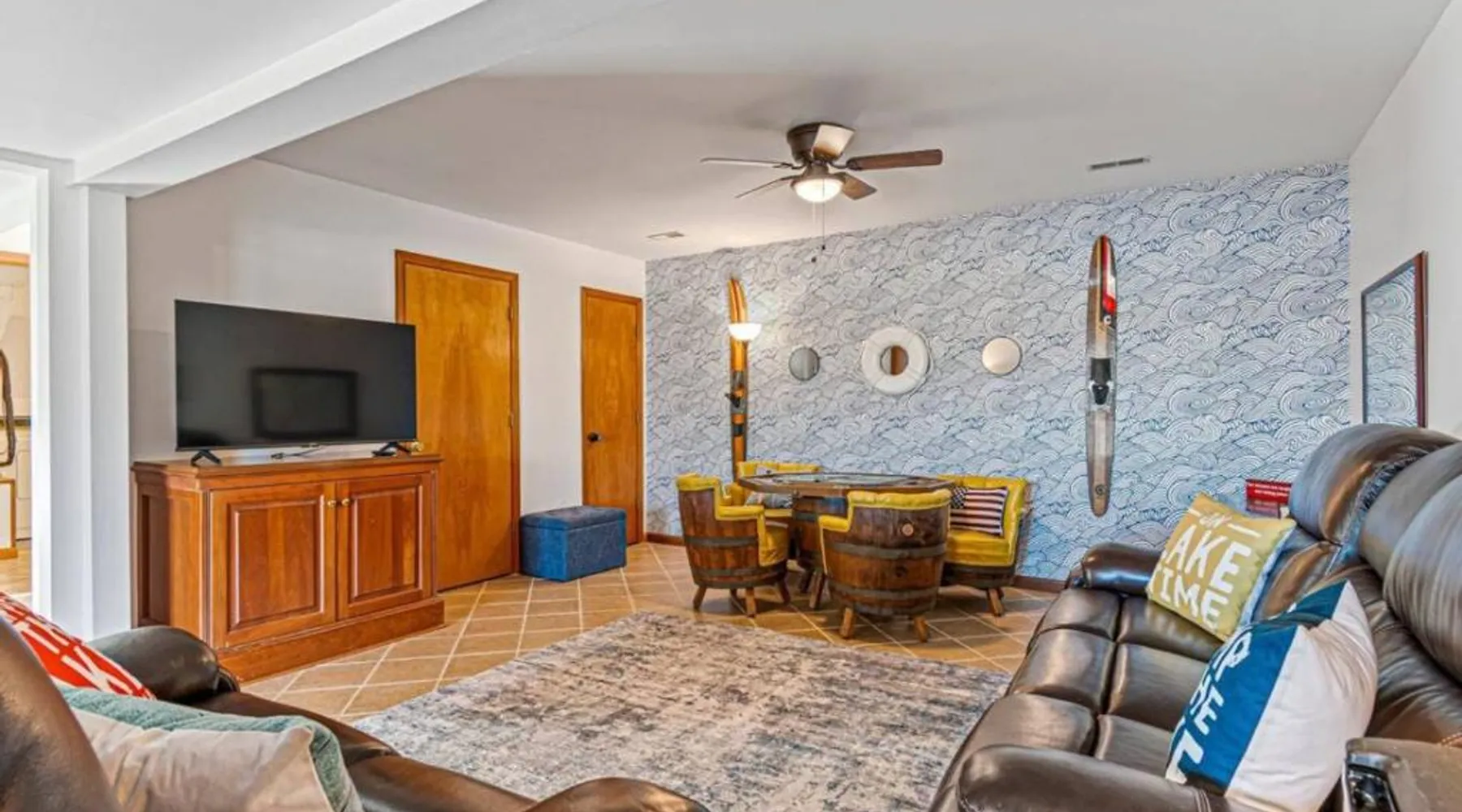 Spacious Accommodations: Lucky Dozen Lakehouse in Winchester offers a spacious holiday home with three bedrooms and two bathrooms. The living room provides ample space for relaxation. Modern Amenities: Guests enjoy free WiFi, air-conditioning, a fully equipped kitchen, washing machine, and a fireplace. Additional amenities include a games room, barbecue, and a dining area. Convenient Location: Located 56 mi from Huntsville International Airport, the property is located on Cline Ridge Road. Reception staff speak English, ensuring smooth communication. This holiday home features a fireplace. This spacious holiday home features 1 living room, 3 separate bedrooms and 2 bathrooms with a bath and free toiletries. Guests will find a stovetop, a refrigerator, kitchenware and a microwave in the fully equipped kitchen. The holiday home also comes with a barbecue. The holiday home features air conditioning, a washing machine, a tea and coffee maker, a dining area, as well as a TV. The unit has 5 beds.