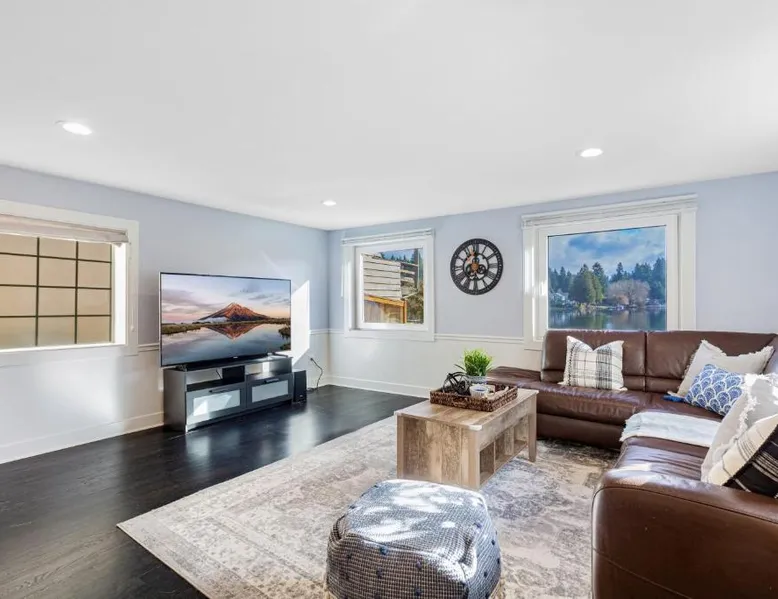 Spacious Accommodations: Lakefront cottage with AC in Federal Way offers a spacious holiday home with two bedrooms and two bathrooms. The living room provides ample space for relaxation. Modern Amenities: Guests enjoy free WiFi, air-conditioning, and a fully equipped kitchen with a refrigerator, microwave, dishwasher, and oven. Additional amenities include a washing machine, patio, and barbecue. Outdoor Spaces: The property features a garden and lake views, ideal for relaxation. A private entrance ensures privacy and comfort. Convenient Location: Located 9.3 mi from Seattle–Tacoma International Airport, the cottage is close to attractions such as the Museum of Glass (13 mi) and Seward Park (19 mi). Boasting a private entrance, this air-conditioned holiday home features 1 living room, 2 separate bedrooms and 2 bathrooms with a bath and a hairdryer. Guests will find a stovetop, a refrigerator, a dishwasher and kitchenware in the well-fitted kitchen. The holiday home also comes with a barbecue. The spacious holiday home features a washing machine, a tea and coffee maker, tumble dryer, a TV, as well as lake views. The unit has 3 beds.