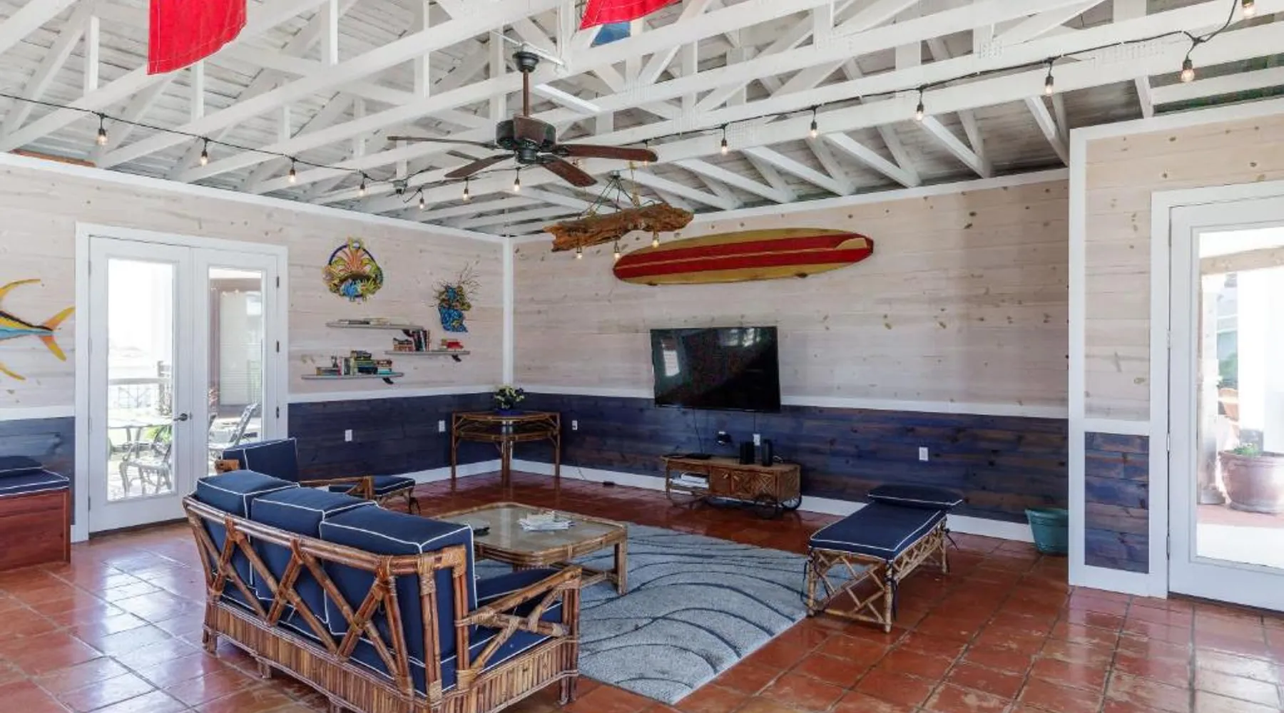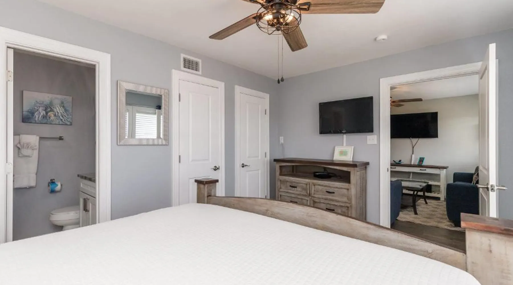 Beachfront Location: Ocean Views - Sleeps 6 Resort Pool in Port Aransas offers direct beachfront access and stunning ocean views. Guests can relax by the outdoor swimming pool and enjoy free WiFi throughout the property. Comfortable Accommodations: The holiday home features two bedrooms and two bathrooms, equipped with air-conditioning, a washing machine, and a fully fitted kitchen. Additional amenities include a patio, barbecue, and a games room, ensuring a comfortable stay. Local Attractions: Port Aransas Beach is a 6-minute walk away, while Port Aransas Art Center lies 1 mi from the property. Corpus Christi International Airport is 38 mi distant, providing convenient travel options. Boasting a private entrance, this air-conditioned holiday home comes with 2 bedrooms and 2 bathrooms with a hairdryer. Guests will find a stovetop, a refrigerator, a dishwasher and kitchenware in the well-equipped kitchen. The holiday home also includes a barbecue. This holiday home has a washing machine, a tea and coffee maker, a TV and a patio. The unit has 3 beds.