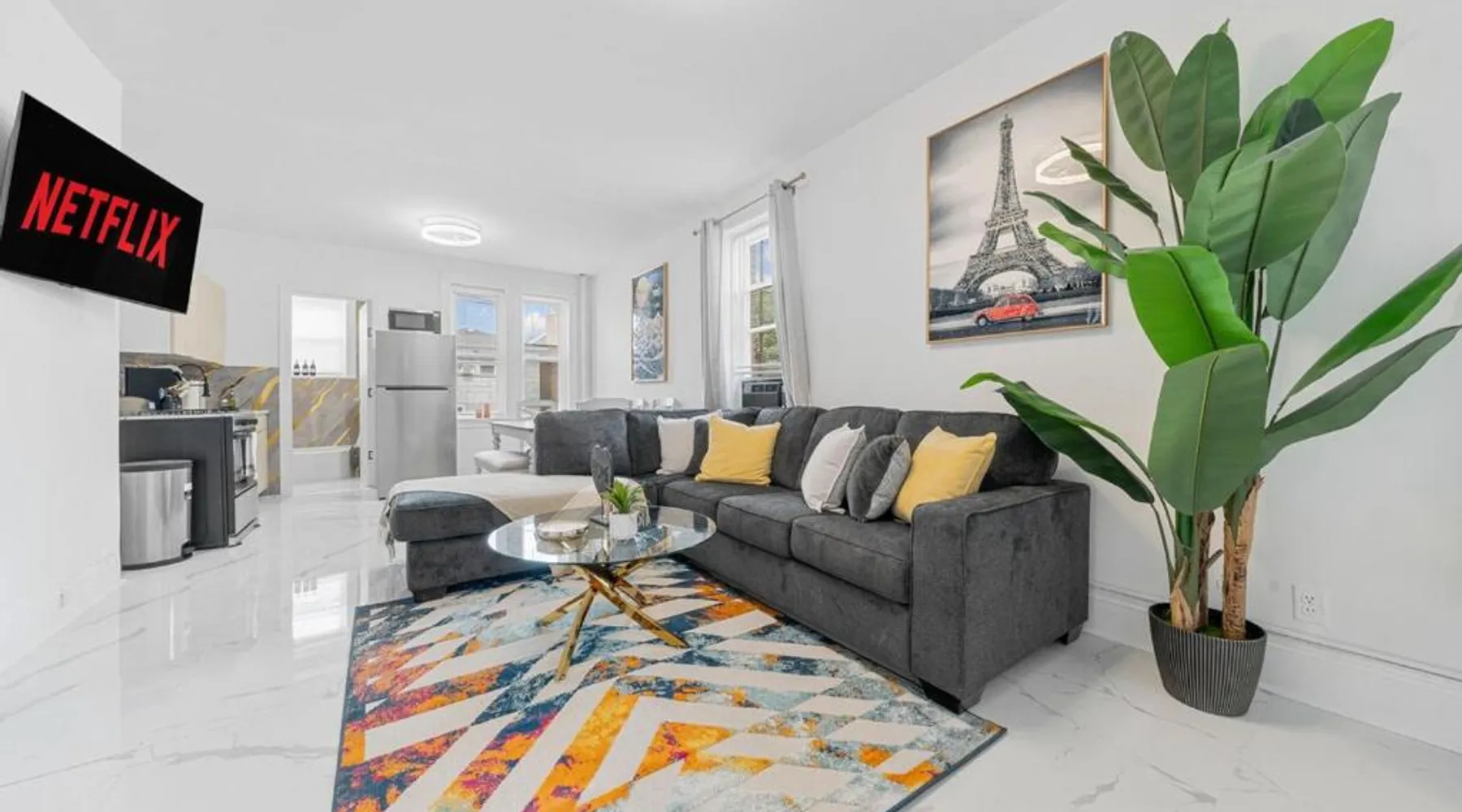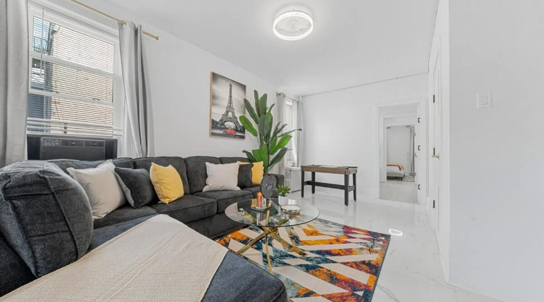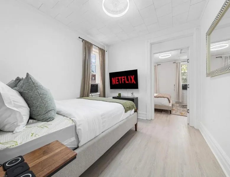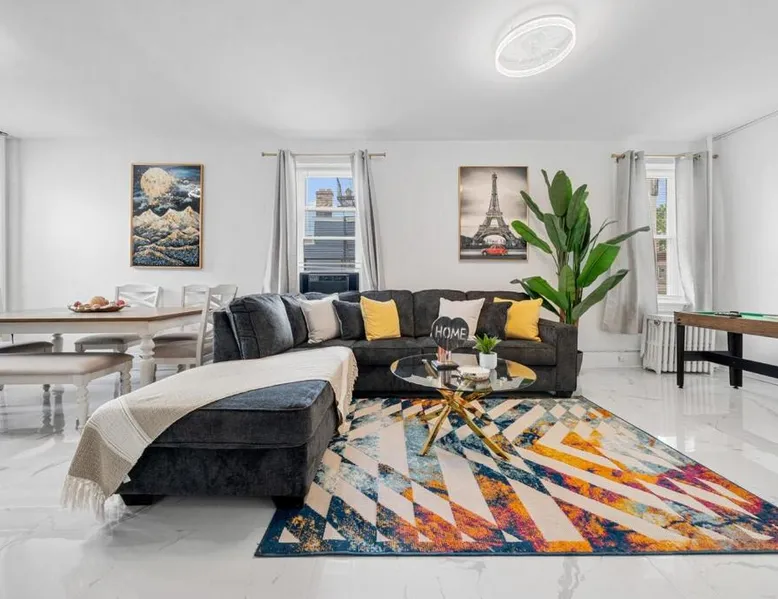 Comfortable Living: Close to PATH -Games -Parking lot - NYC in 15 min offers a two-bedroom apartment in Jersey City. The property features a living room, kitchenette, and patio with river views. Modern Amenities: Guests enjoy free WiFi, air-conditioning, and a fully equipped kitchen with a coffee machine, microwave, and oven. Additional amenities include a dining area, sofa bed, and free toiletries. Convenient Location: Located 7.5 mi from Teterboro Airport, the apartment is near attractions such as Jacob K. Javits Convention Center (5.6 mi) and Times Square (5.6 mi). An ice-skating rink and boating are available in the surroundings. Offering free toiletries, this apartment includes a shared bathroom with a bath, a shower and a hairdryer. In the kitchen, guests will find a stovetop, a refrigerator, kitchenware and an oven. The air-conditioned apartment offers a flat-screen TV with cable channels, a private entrance, a tea and coffee maker, a seating area as well as river views. The unit has 3 beds.