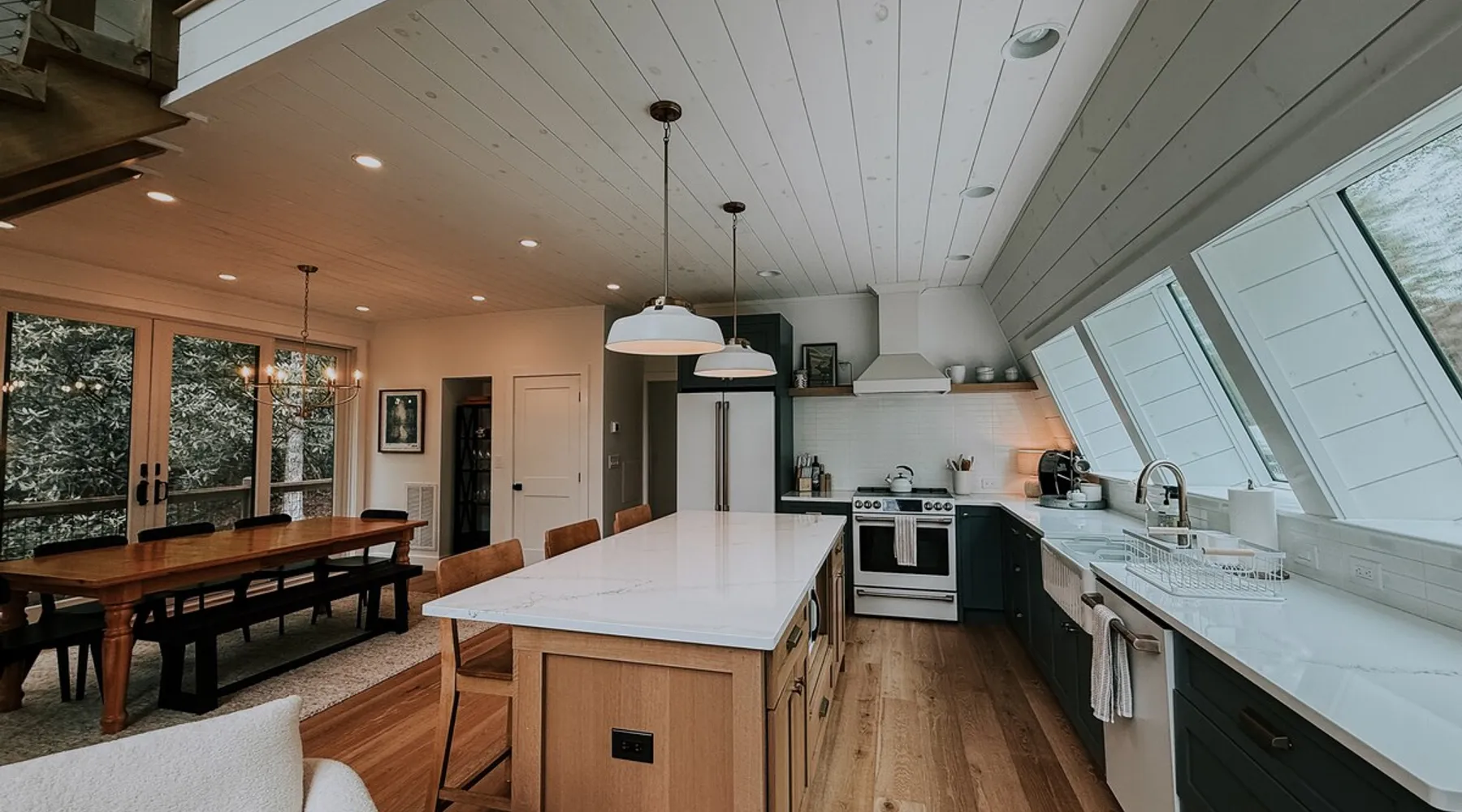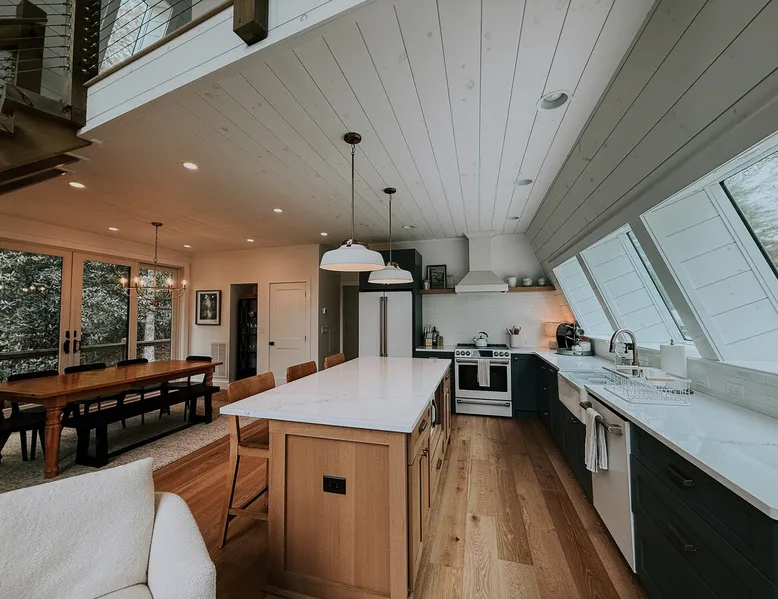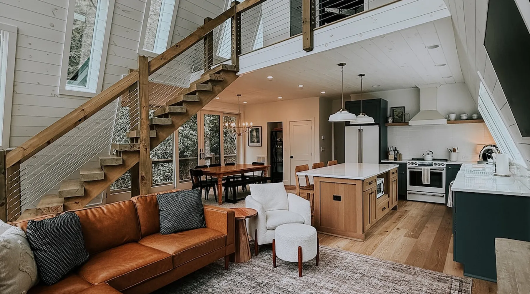 Nestled less than a mile from downtown Banner Elk and a half mile from Lees McRae College, this A-frame cabin offers the perfect blend of mountain charm, convenience, and contemporary design. With an open-concept layout, the cabin’s skylights create an airy, sunlit retreat. It provides a cozy escape, perfect for unwinding after a day of exploring the hiking trails, skiing the slopes of Sugar and Beech Mountains, or enjoying the nearby wineries. Relax and get away to the Hemlock Chalet! The space This AFrame is complete with 3 full bedrooms and a roomy loft. It sits behind Lees McRae College, minutes from downtown. Guest access Three stories connected by open and spiral stairwells are available for you to enjoy. A wrap around porch and expansive backyard are accessible outside. The basement is a private space for owners and cannot be accessed.