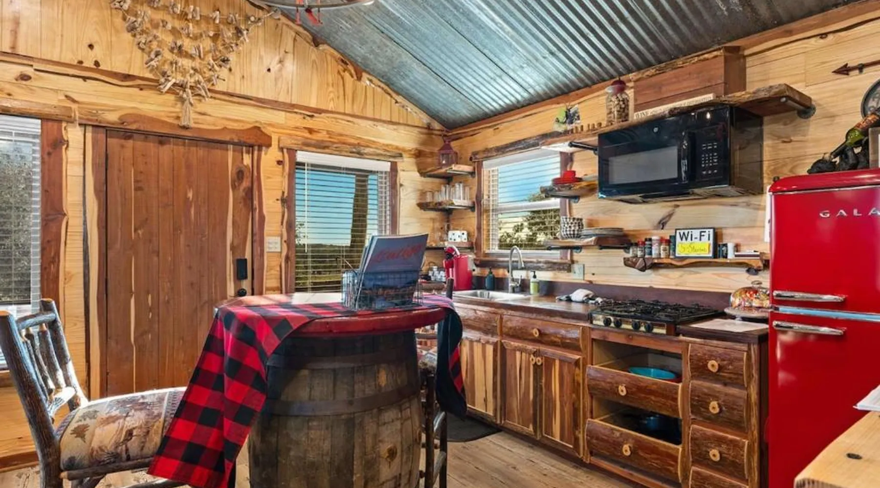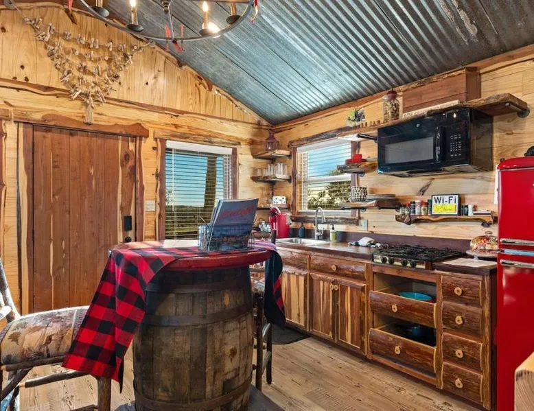 Comfortable Living: Rockin' R - Shining Star Cabin in Fredericksburg offers a cozy holiday home with one bedroom and one bathroom. Guests enjoy free WiFi, air-conditioning, and a private entrance. Modern Amenities: The property features a fully equipped kitchen with a stovetop, microwave, and kitchenware. Additional amenities include a hot tub, patio, barbecue, and a TV. Free on-site parking is available. Local Attractions: Enchanted Rock State Natural Area lies 27 mi away, while San Antonio International Airport is 78 mi from the property. Reception staff speak English. The hot tub is the standout feature of this holiday home. Boasting a private entrance, this air-conditioned holiday home comes with a kitchen, 1 bedroom and 1 bathroom with a bath and a hairdryer. Guests will find a stovetop, a refrigerator, kitchenware and a microwave in the well-fitted kitchen. The holiday home also includes a barbecue. This holiday home has a tea and coffee maker, heating, a TV and a patio. The unit has 1 bed.