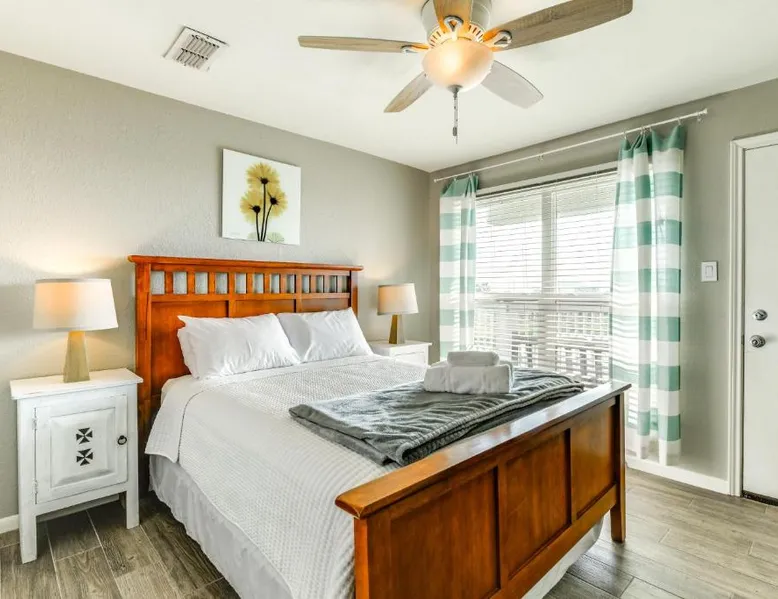 Beachfront Location: Balcony, Pool and Beach Access Port Aransas Condo! in Port Aransas offers direct beachfront access, an outdoor swimming pool, and free WiFi. Mustang Beach is 31 mi from Corpus Christi International Airport. Spacious Accommodations: The apartment features two bedrooms, two bathrooms, and a living room. Amenities include air-conditioning, a balcony, washing machine, fully equipped kitchen, and free toiletries. Leisure Facilities: Guests can enjoy a hot tub, games room, and outdoor dining area. Paid on-site parking is available. Nearby attractions include Bob Hall Pier (14 mi), Palmilla Beach Golf Club (4.3 mi), and Mustang Island State Park (6.2 mi). Boasting a private entrance, this air-conditioned apartment includes 1 living room, 2 separate bedrooms and 2 bathrooms with a bath and a shower. In the kitchen, guests will find a stovetop, a refrigerator, a dishwasher and kitchenware. The spacious apartment offers a washing machine, a coffee machine, tumble dryer, heating, as well as a flat-screen TV with cable channels. The unit has 4 beds.