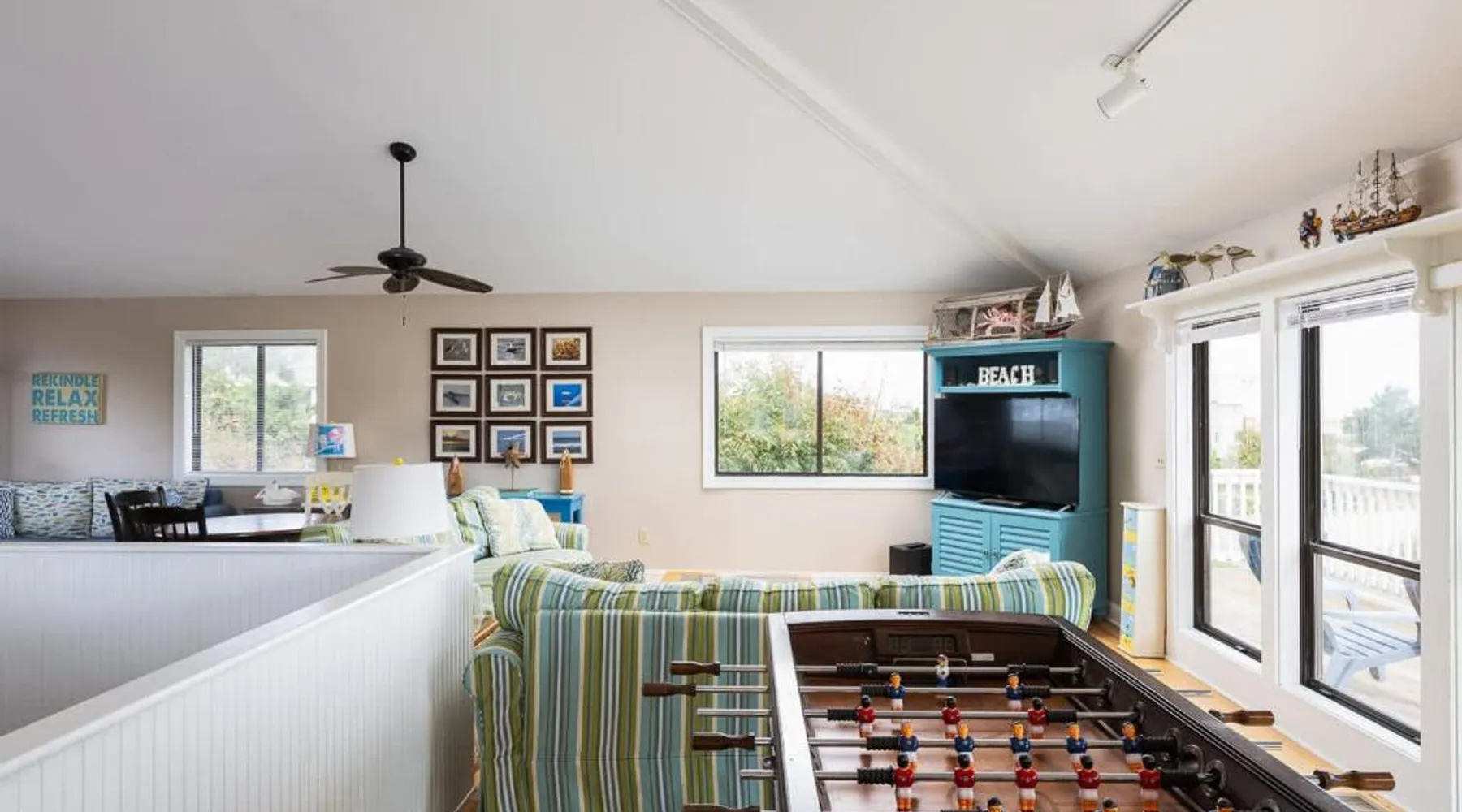 Beachfront Location: Semi-Oceanfront with Heated Pool Cabana Ocean Views in Corolla offers direct beachfront access. Guests enjoy stunning sea views and a private pool. Spa and Wellness Center: The holiday home features a spa and wellness center, providing relaxation and rejuvenation. Outdoor Amenities: An outdoor swimming pool and hot tub enhance the beachfront experience. Free WiFi is available throughout the property. Comfortable Accommodations: The spacious home includes four bedrooms and three bathrooms, equipped with air-conditioning, a fully fitted kitchen, and a washing machine. Nearby Attractions: Currituck Beach is just a few steps away, while Norfolk International Airport is 93 mi from the property. The private pool and hot tub are the special features of this apartment. The spacious apartment has 4 bedrooms and 3 bathrooms with a bath and free toiletries. Guests will find a stovetop, a refrigerator, a dishwasher and kitchenware in the well-fitted kitchen. The apartment also includes a barbecue. The air-conditioned apartment features a TV, a washing machine, a private entrance, a tea and coffee maker as well as sea views. The unit has 6 beds.
