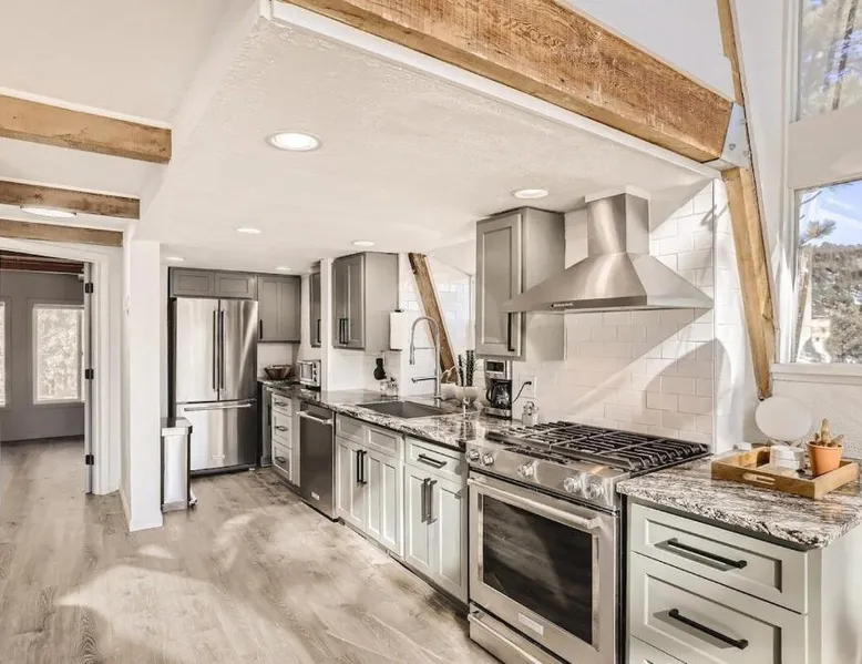 Spacious Accommodations: Beautiful A Frame Near Hiking And Red Rocks And Evergreen in Morrison offers a spacious holiday home with three bedrooms and three bathrooms. The property includes a living room and family rooms, ensuring comfort for all guests. Outdoor Amenities: Guests can enjoy a sun terrace and a garden, perfect for relaxation. The outdoor seating area provides a pleasant space to unwind, while the barbecue facilities allow for outdoor dining. Convenient Facilities: The holiday home features free WiFi, a fully equipped kitchen, and a washing machine. Additional amenities include a fireplace, balcony with garden and mountain views, and free on-site parking. Local Attractions: Located 14 mi from Dinosaur Ridge and 15 mi from Red Rocks Park and Amphitheater, the property is also close to other attractions such as Ball Arena and the Denver Performing Arts Complex. Rocky Mountain Metropolitan Airport is 33 mi away. This holiday home features a fireplace. This spacious holiday home features 1 living room, 3 separate bedrooms and 3 bathrooms with a bath and free toiletries. Guests will find a stovetop, a refrigerator, a dishwasher and kitchenware in the well-equipped kitchen. The holiday home also comes with a barbecue. The holiday home features a TV, a washing machine, a private entrance, a tea and coffee maker as well as garden views. The unit has 3 beds.