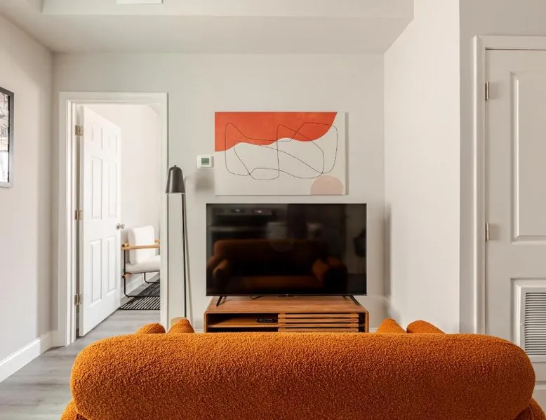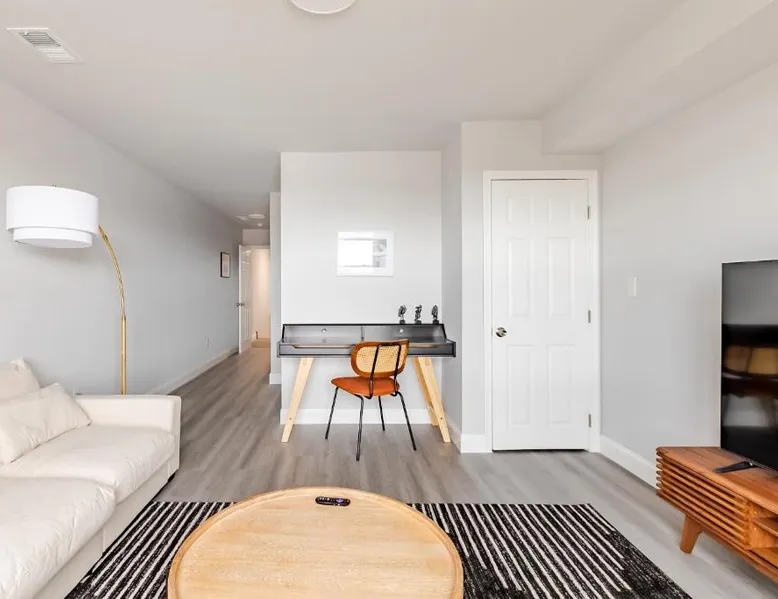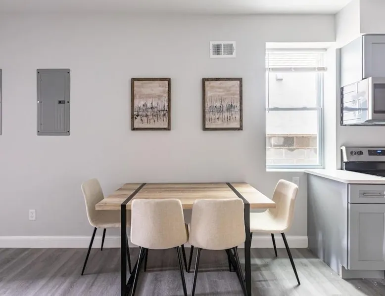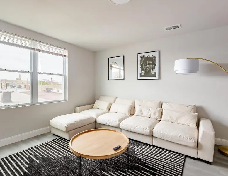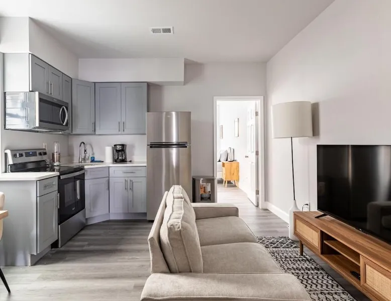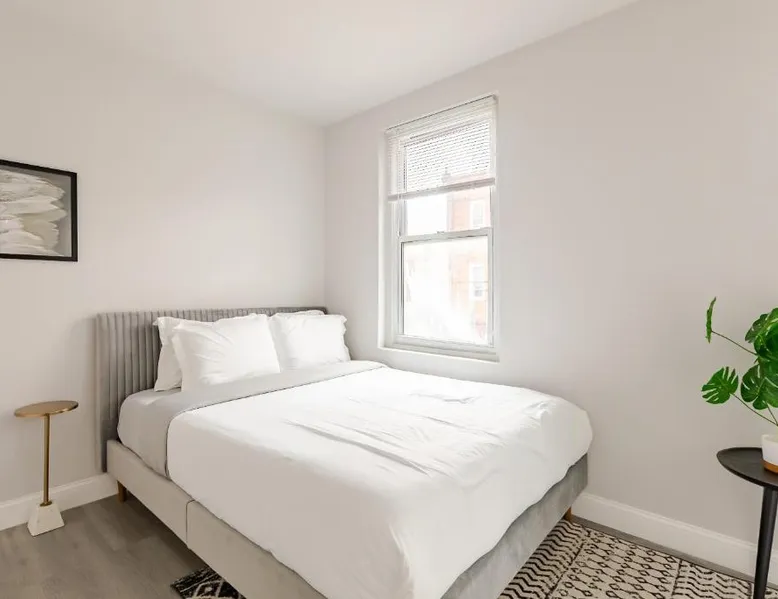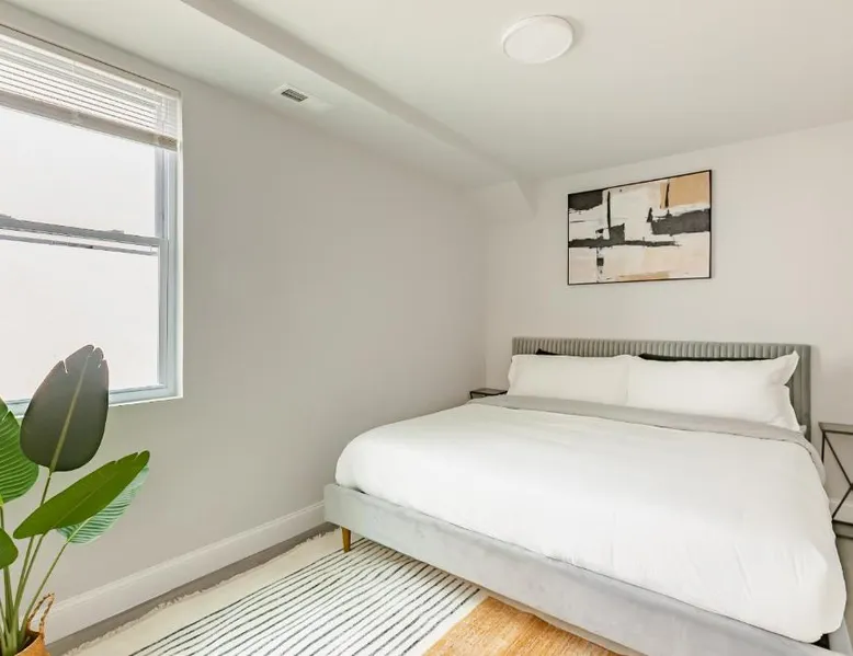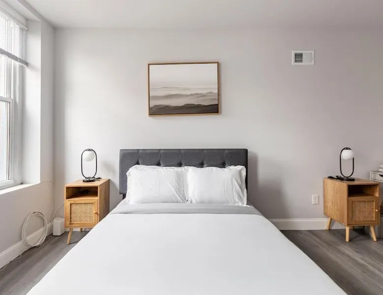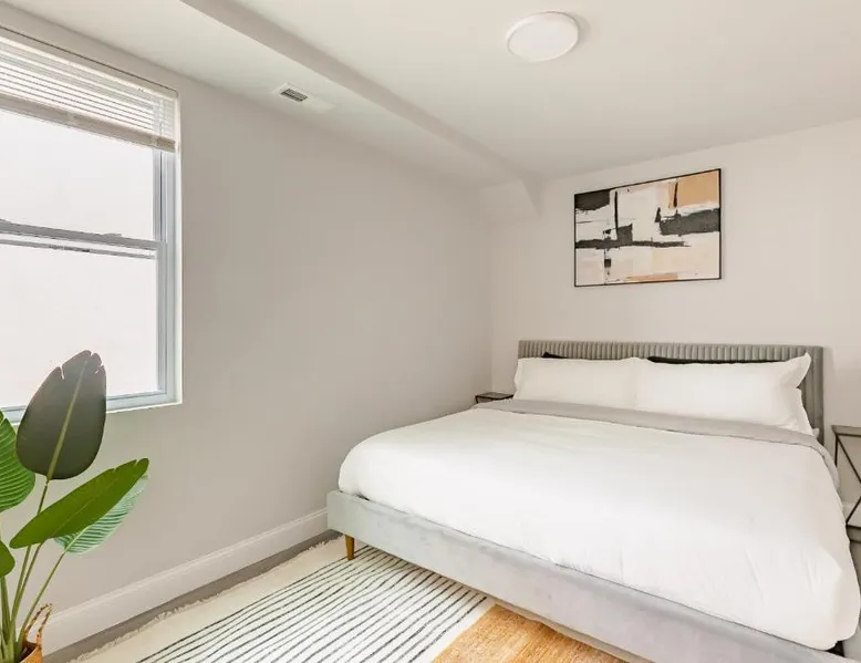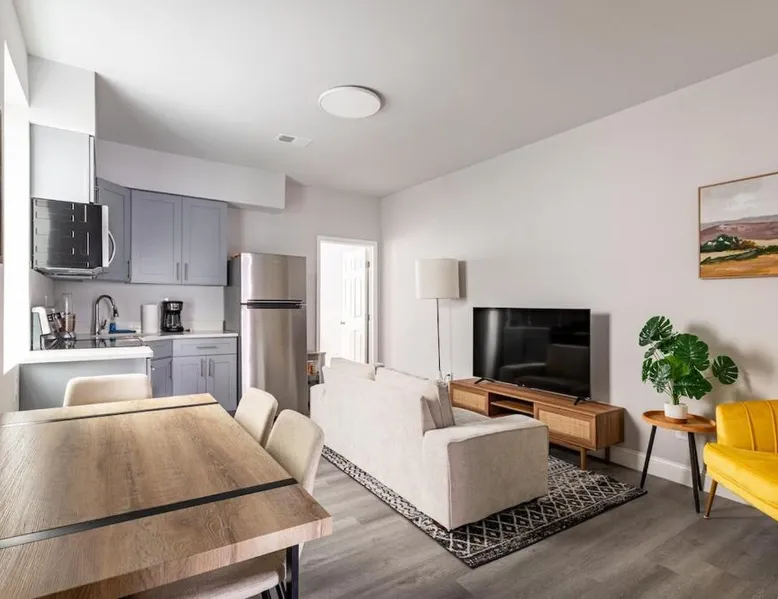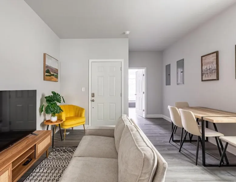 Comfortable Accommodations: Philly Getaway - Chic Stay Near Center City in Philadelphia offers a ground-floor apartment with a private bathroom, air-conditioning, and a fully equipped kitchen. Guests enjoy free WiFi, a dining area, and a TV. Modern Amenities: The apartment includes a tea and coffee maker, refrigerator, microwave, and kitchenware. Additional features include a dining table and a comfortable seating area. Convenient Location: Located 6.2 mi from Philadelphia International Airport, the property is close to attractions such as the National Liberty Museum (1.5 mi), Liberty Bell (1.7 mi), and Philadelphia Museum of Art (3.7 mi). An ice-skating rink is also nearby. This spacious apartment includes 1 living room, 2 separate bedrooms and 2 bathrooms with a bath. The fully equipped kitchen has a refrigerator, kitchenware and a microwave. The apartment is fitted with a flat-screen TV, air conditioning, a tea and coffee maker, as well as a dining area. The unit has 3 beds.