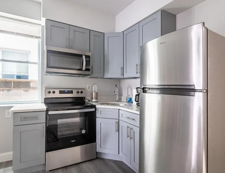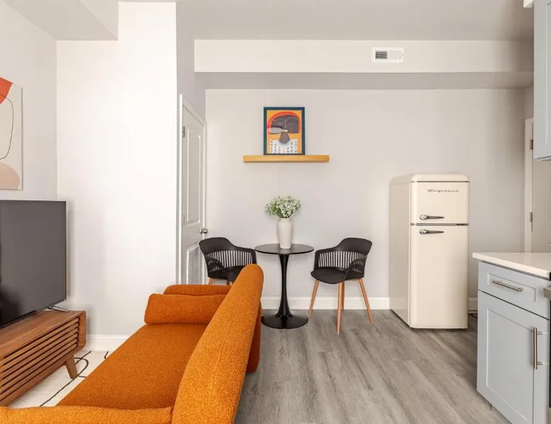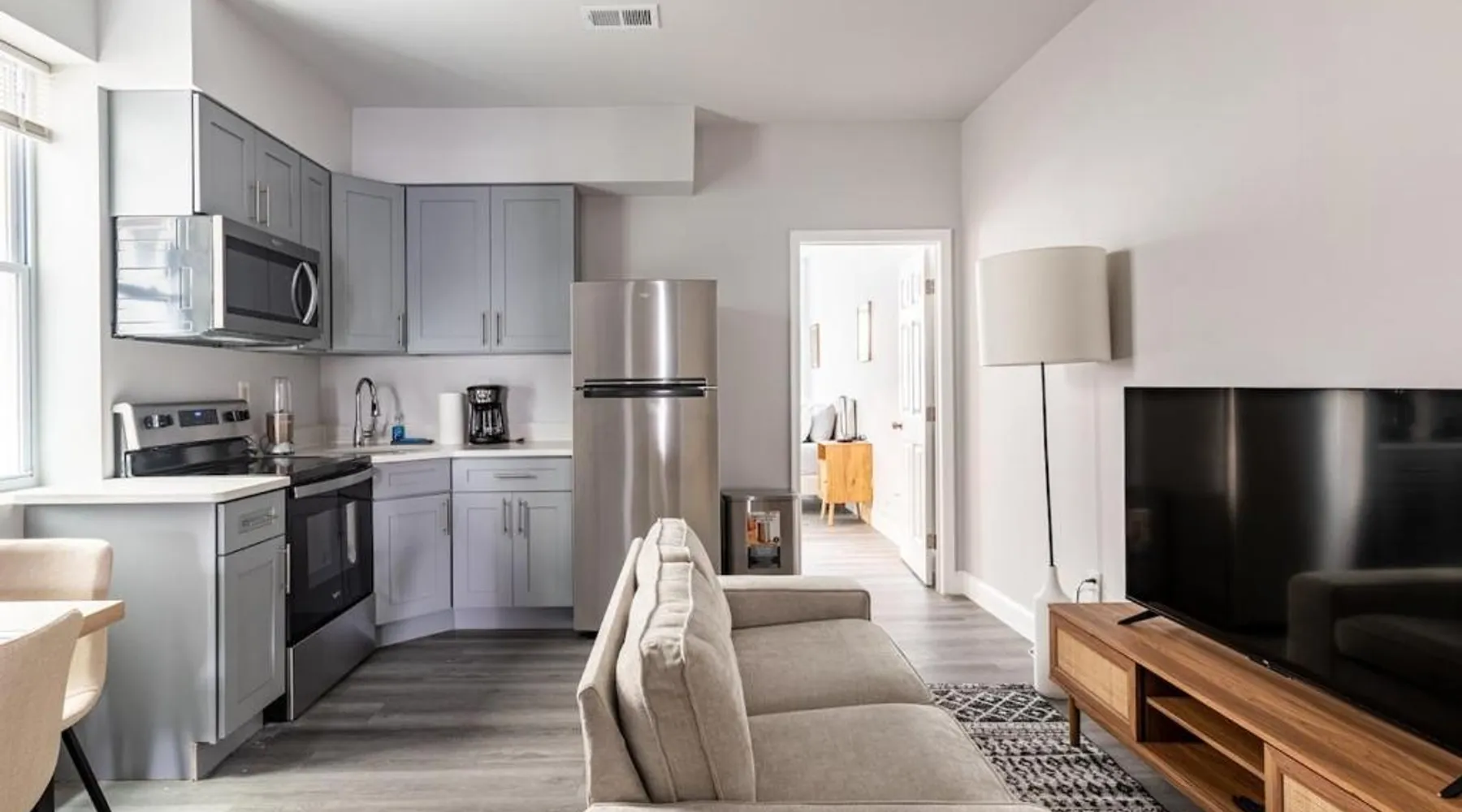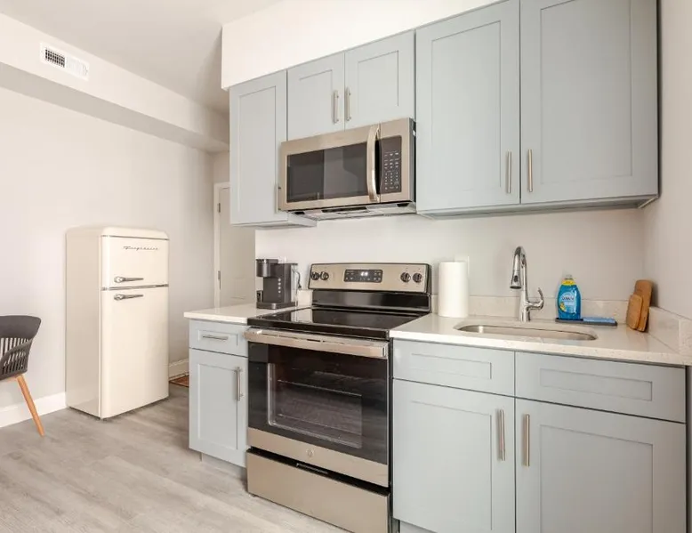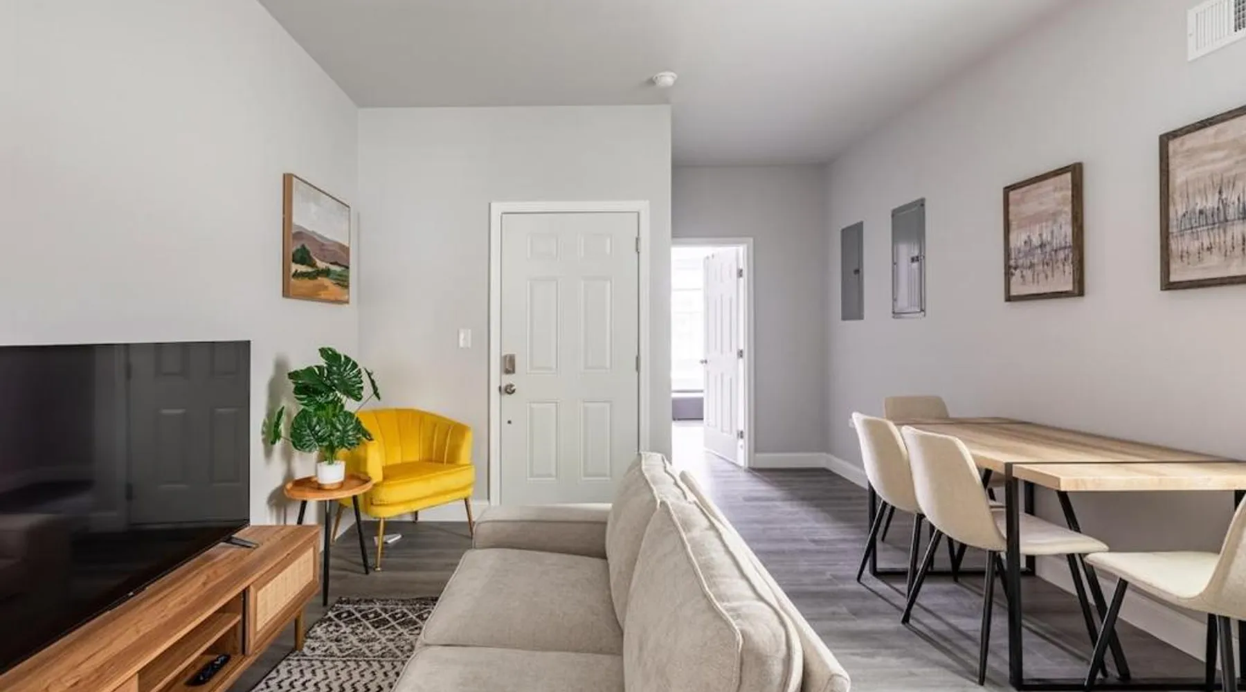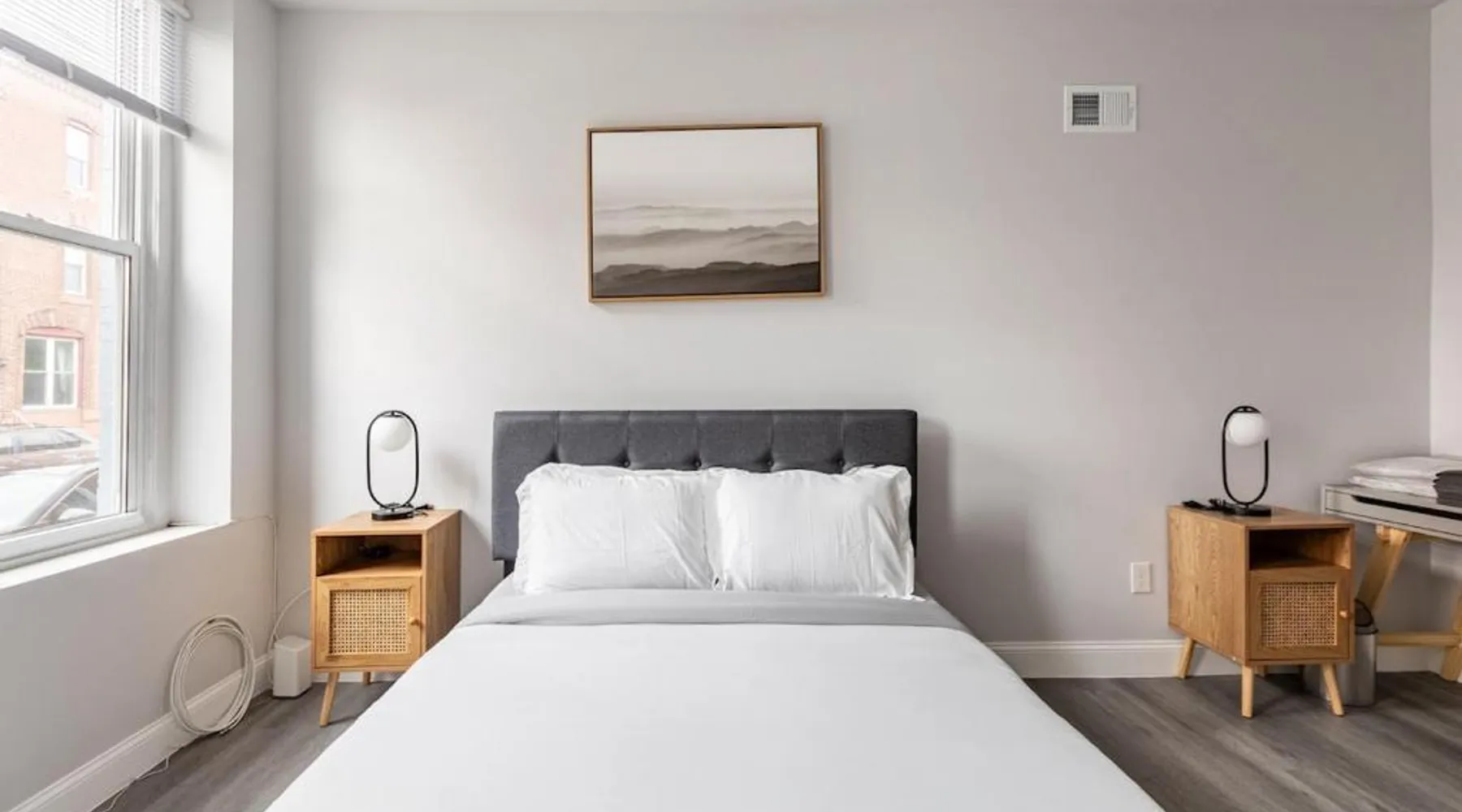Comfortable Accommodations: Philly Getaway - Chic Stay Near Center City in Philadelphia offers a ground-floor apartment with a private bathroom, air-conditioning, and a fully equipped kitchen. Guests enjoy free WiFi, a dining area, and a TV. Modern Amenities: The apartment includes a tea and coffee maker, refrigerator, microwave, and kitchenware. Additional features include a dining table and a comfortable seating area. Convenient Location: Located 6.2 mi from Philadelphia International Airport, the property is close to attractions such as the National Liberty Museum (1.5 mi), Liberty Bell (1.7 mi), and Philadelphia Museum of Art (3.7 mi). An ice-skating rink is also nearby. This spacious apartment includes 1 living room, 2 separate bedrooms and 2 bathrooms with a bath. The fully equipped kitchen has a refrigerator, kitchenware and a microwave. The apartment is fitted with a flat-screen TV, air conditioning, a tea and coffee maker, as well as a dining area. The unit has 3 beds.