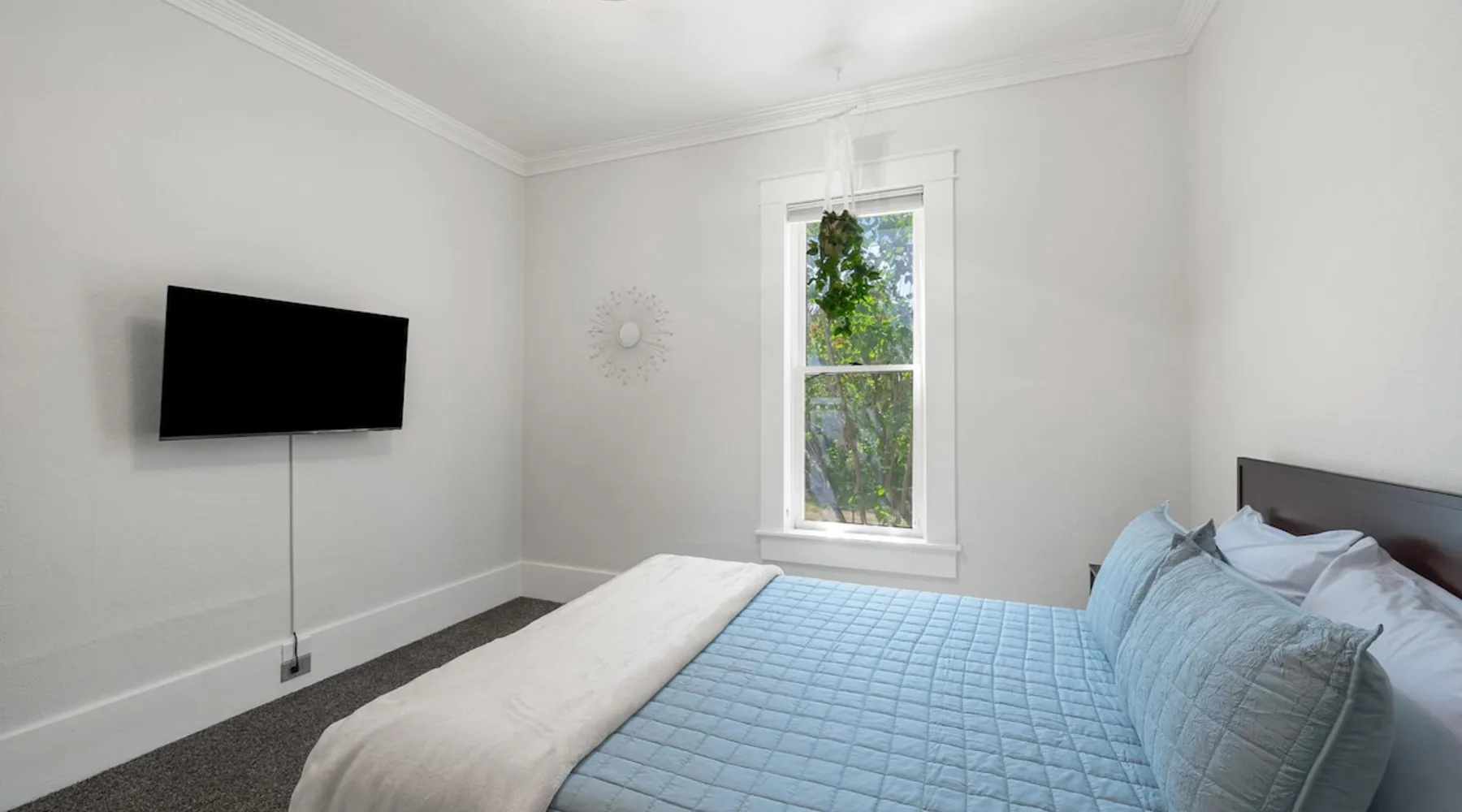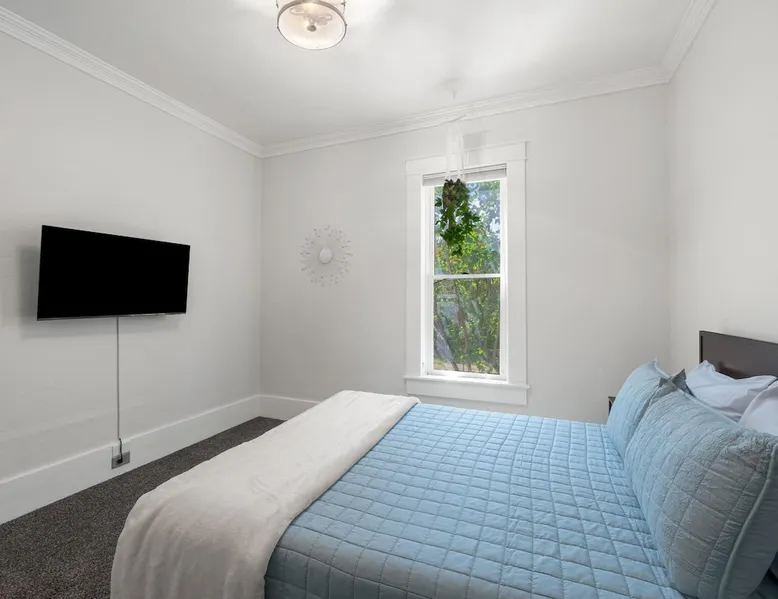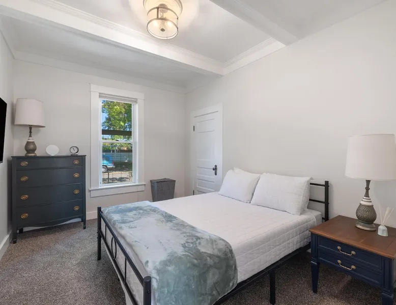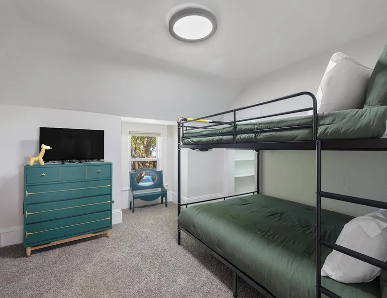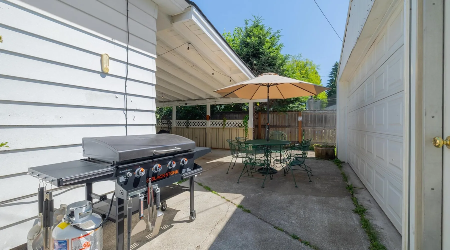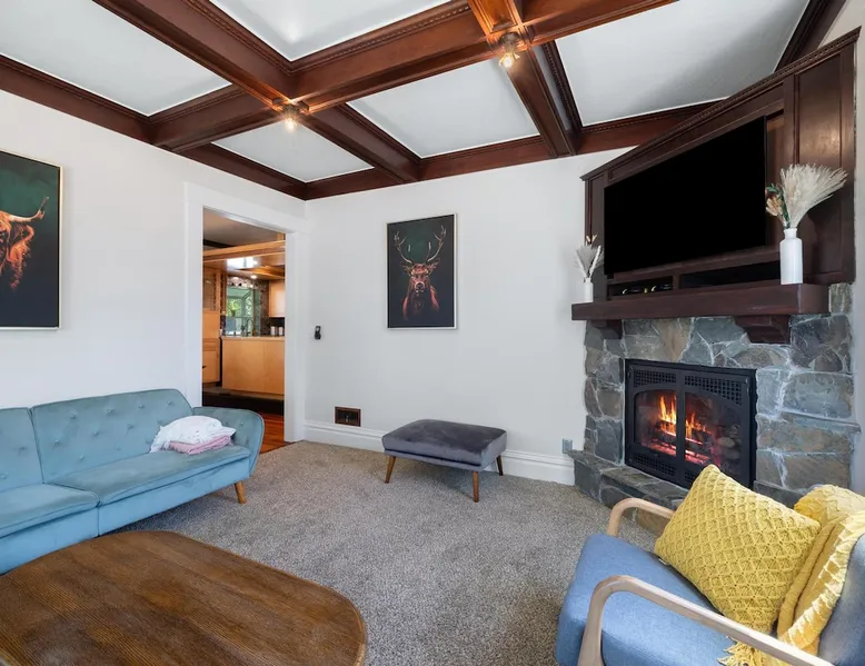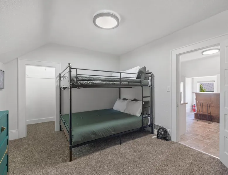 The Landing at Coeur d’Alene blends Craftsman charm with mid-century style just blocks from downtown. This 4BR, 2BA home features two private-entry units, smart TVs, fast Wi-Fi, a full kitchen, kitchenette, and central A/C. Outside, enjoy a fenced yard, 7-person hot tub, Blackstone grill, and outdoor dining. Pet friendly and ideal for families or groups. Walk to Midtown shops, breweries, coffee, and Downtown CDA’s parks, restaurants, and lakefront beach. The space The Landing at Coeur d’Alene features two fully separate units with private entrances, offering flexibility and privacy for families or groups. The main-level unit includes a full kitchen with stainless steel appliances, a dining area, and a living room with a smart TV and video games. Down the hall are two bedrooms with queen beds and smart TVs, a full bathroom with a shower/tub combo, and a laundry room. From the laundry room, step out to the covered back patio, where you'll find a fully fenced yard great for kids and pets, a Blackstone grill, outdoor dining table, and a private 7-person hot tub—perfect for relaxing in every season. Just off the patio is a private entrance leading to the upstairs unit. This space includes a kitchenette with a bar area, a bedroom with a California King bed, and a second bedroom with a Queen-over-Queen bunk bed. Both bedrooms feature smart TVs, and the bunk room also includes video games. A full bathroom with a shower/tub combo completes the upper level. With central A/C, fast Wi-Fi, and a pet-friendly setup, The Landing offers a practical and comfortable home base. It’s ideal for groups who want to stay together but still enjoy personal space—perfect for splitting up adults and kids, or two families traveling together. Enjoy walkable access to Midtown’s markets, breweries, stores, and coffee shops, and take a short stroll or drive to Downtown CDA’s restaurants, parks, boutiques, and the famous Lake Coeur d’Alene with its expansive beach. Guest access Guests have full access to the entire home, including both private-entry units, the fenced backyard, covered patio, hot tub, and all interior amenities. Check-in is a breeze with keyless smart locks on both entrances—no keys to keep track of, and no need to coordinate arrival times. Other things to note - Quiet hours: 10 PM to 8AM - Pet friendly (1 dog per reservation) - 1 Exterior security camera for guest safety - Garage is NOT available to guests Distances to local highlights: - 5 min walk to Midtown shops and breweries - 15 min walk to Downtown CDA, Tubbs Hill, City Beach, McEuen Park - 25 min drive to Silverwood Theme Park