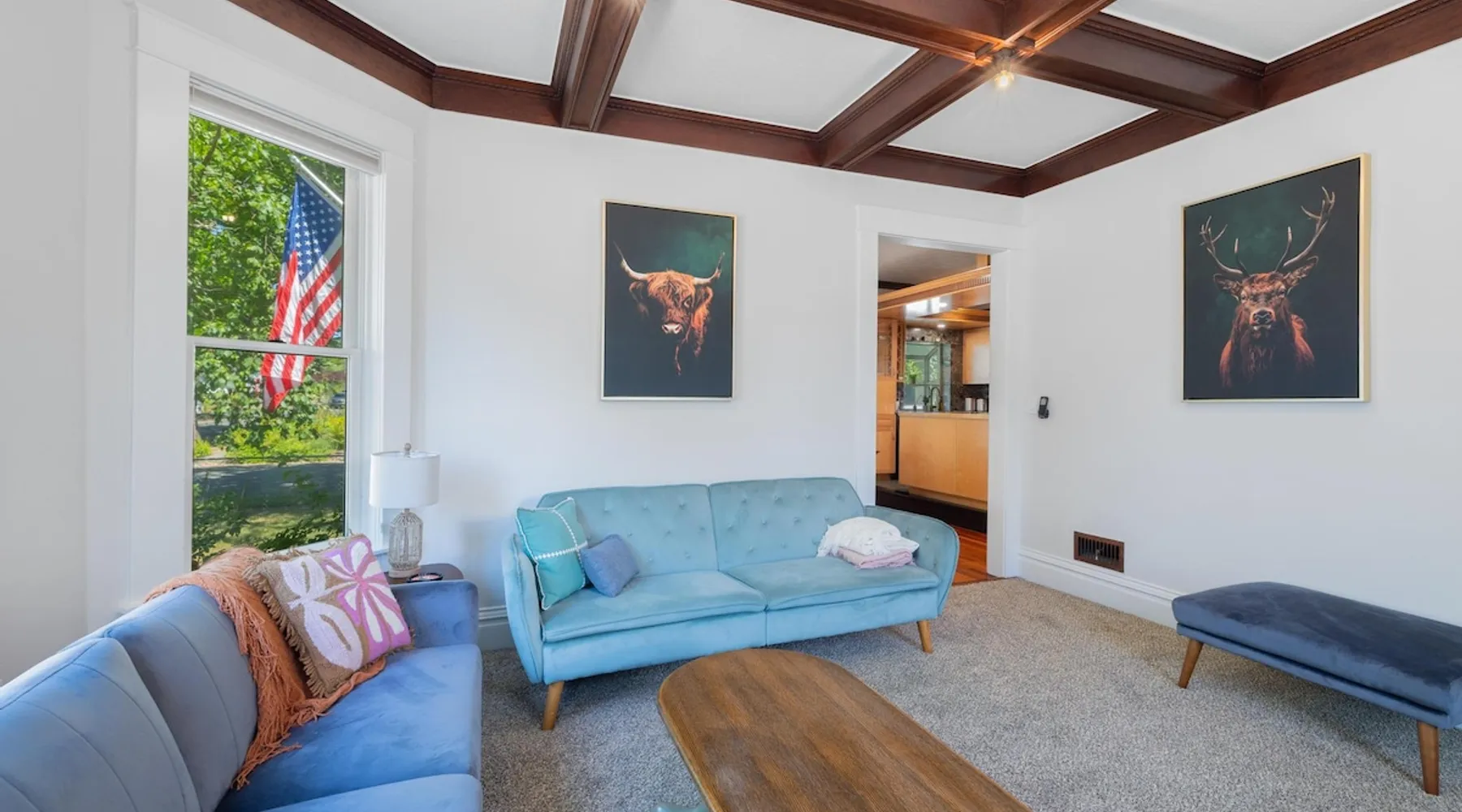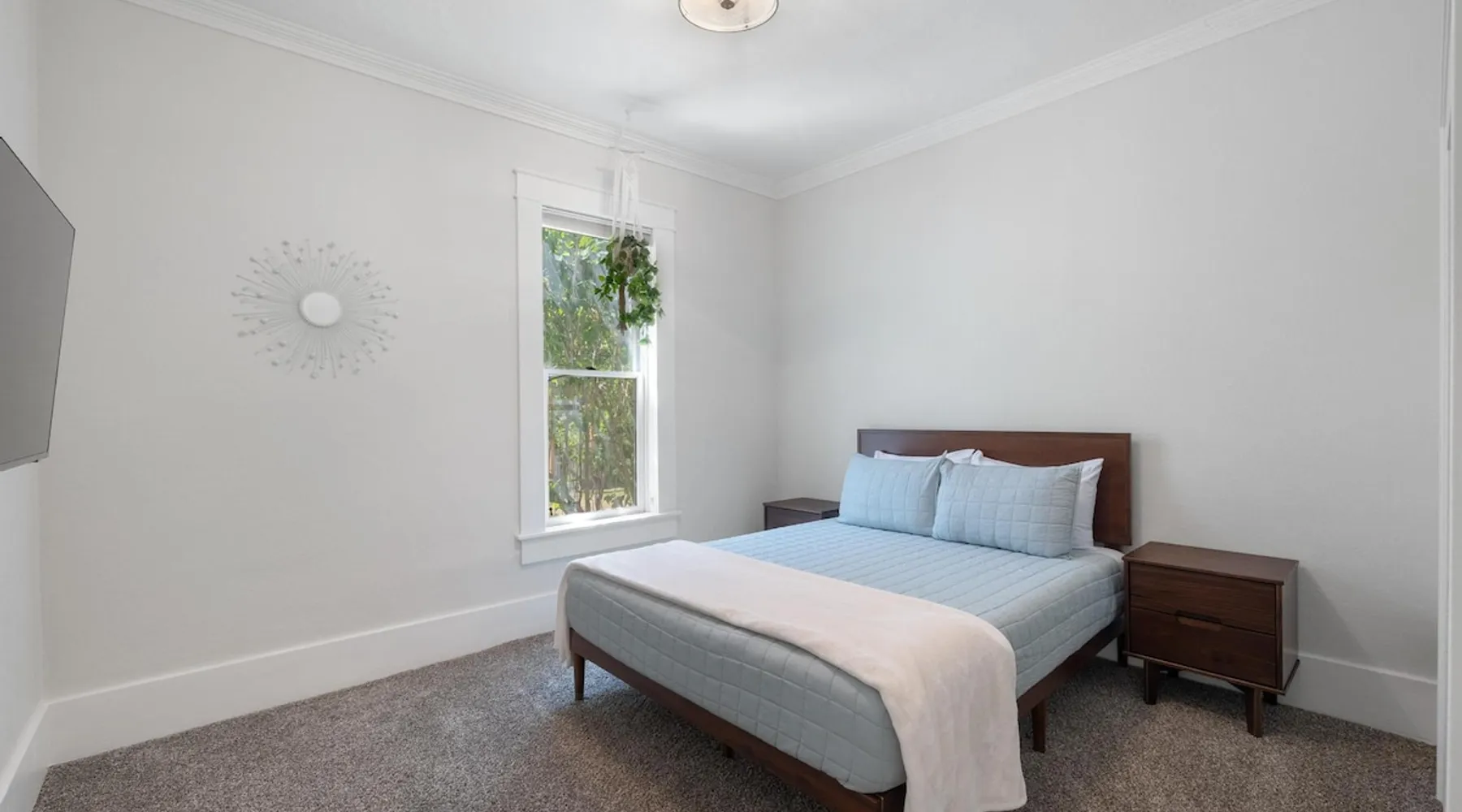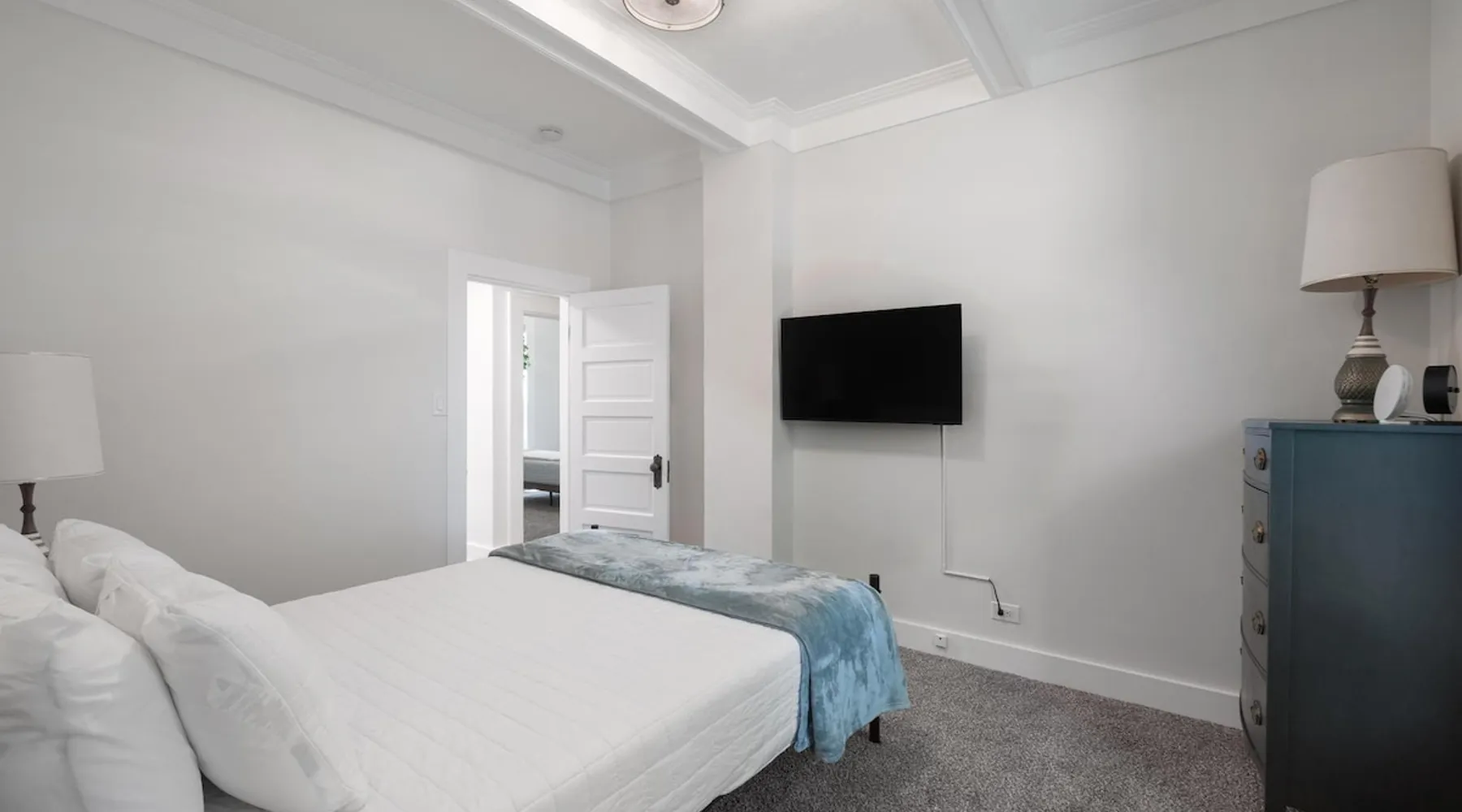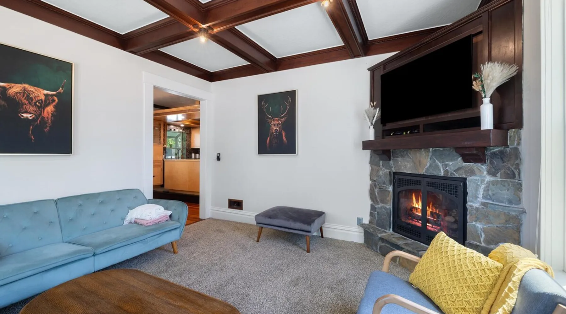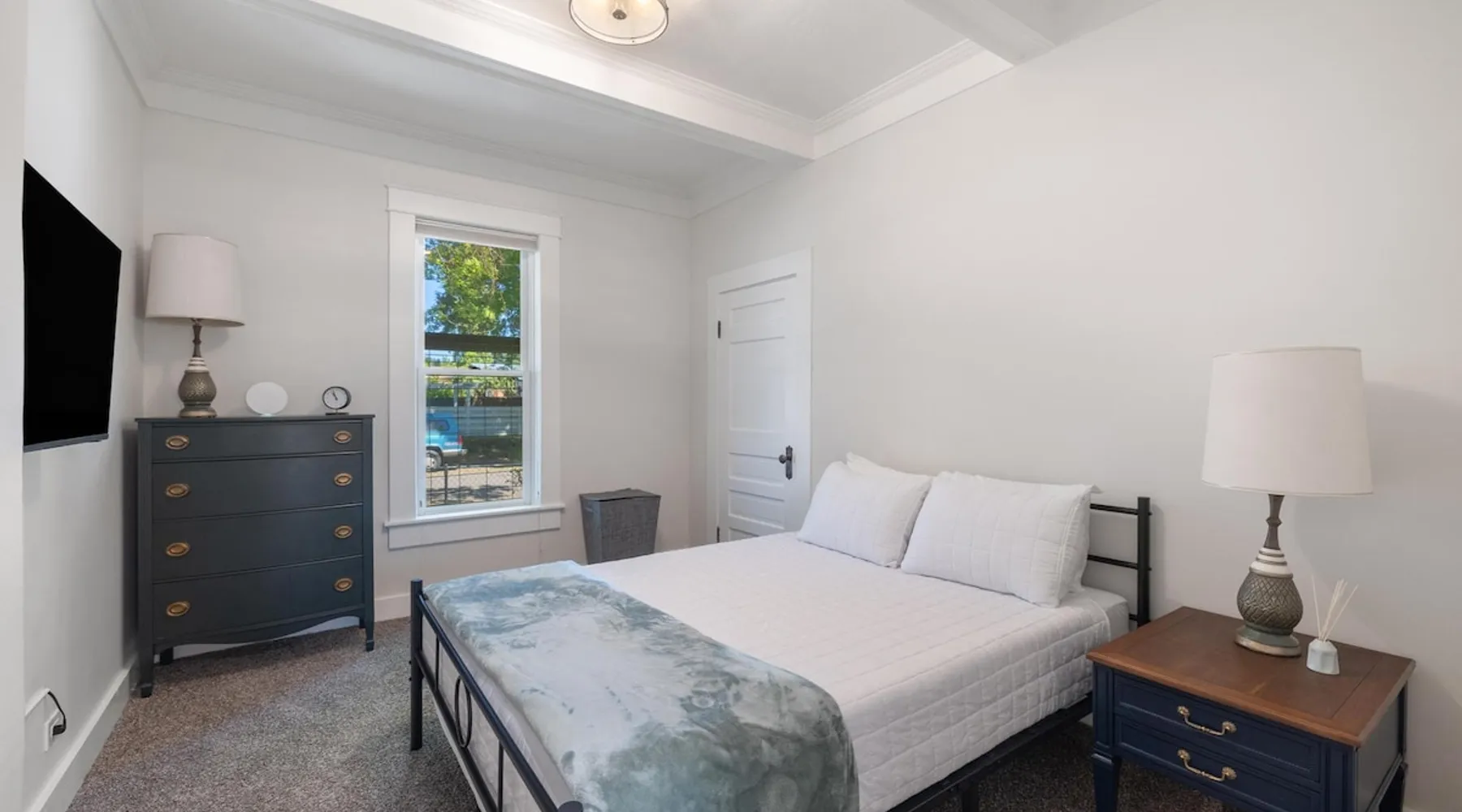 The Landing at Coeur d’Alene blends Craftsman charm with mid-century style just blocks from downtown. This 4BR, 2BA home features two private-entry units, smart TVs, fast Wi-Fi, a full kitchen, kitchenette, and central A/C. Outside, enjoy a fenced yard, 7-person hot tub, Blackstone grill, and outdoor dining. Pet friendly and ideal for families or groups. Walk to Midtown shops, breweries, coffee, and Downtown CDA’s parks, restaurants, and lakefront beach. The space The Landing at Coeur d’Alene features two fully separate units with private entrances, offering flexibility and privacy for families or groups. The main-level unit includes a full kitchen with stainless steel appliances, a dining area, and a living room with a smart TV and video games. Down the hall are two bedrooms with queen beds and smart TVs, a full bathroom with a shower/tub combo, and a laundry room. From the laundry room, step out to the covered back patio, where you'll find a fully fenced yard great for kids and pets, a Blackstone grill, outdoor dining table, and a private 7-person hot tub—perfect for relaxing in every season. Just off the patio is a private entrance leading to the upstairs unit. This space includes a kitchenette with a bar area, a bedroom with a California King bed, and a second bedroom with a Queen-over-Queen bunk bed. Both bedrooms feature smart TVs, and the bunk room also includes video games. A full bathroom with a shower/tub combo completes the upper level. With central A/C, fast Wi-Fi, and a pet-friendly setup, The Landing offers a practical and comfortable home base. It’s ideal for groups who want to stay together but still enjoy personal space—perfect for splitting up adults and kids, or two families traveling together. Enjoy walkable access to Midtown’s markets, breweries, stores, and coffee shops, and take a short stroll or drive to Downtown CDA’s restaurants, parks, boutiques, and the famous Lake Coeur d’Alene with its expansive beach. Guest access Guests have full access to the entire home, including both private-entry units, the fenced backyard, covered patio, hot tub, and all interior amenities. Check-in is a breeze with keyless smart locks on both entrances—no keys to keep track of, and no need to coordinate arrival times. Other things to note - Quiet hours: 10 PM to 8AM - Pet friendly (1 dog per reservation) - 1 Exterior security camera for guest safety - Garage is NOT available to guests Distances to local highlights: - 5 min walk to Midtown shops and breweries - 15 min walk to Downtown CDA, Tubbs Hill, City Beach, McEuen Park - 25 min drive to Silverwood Theme Park