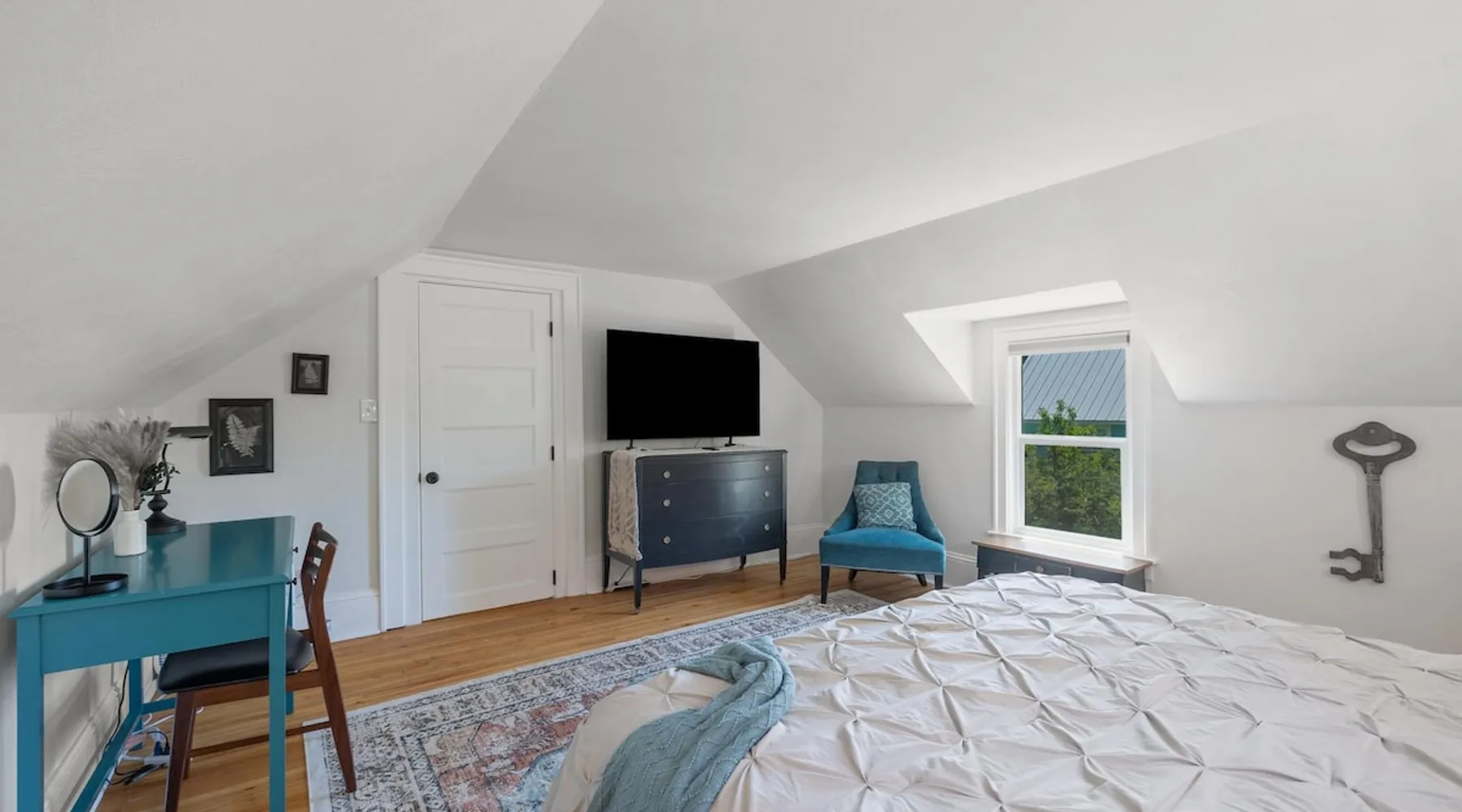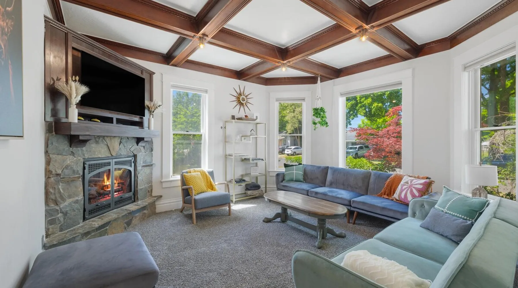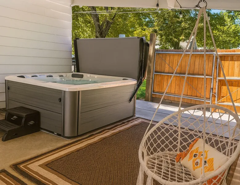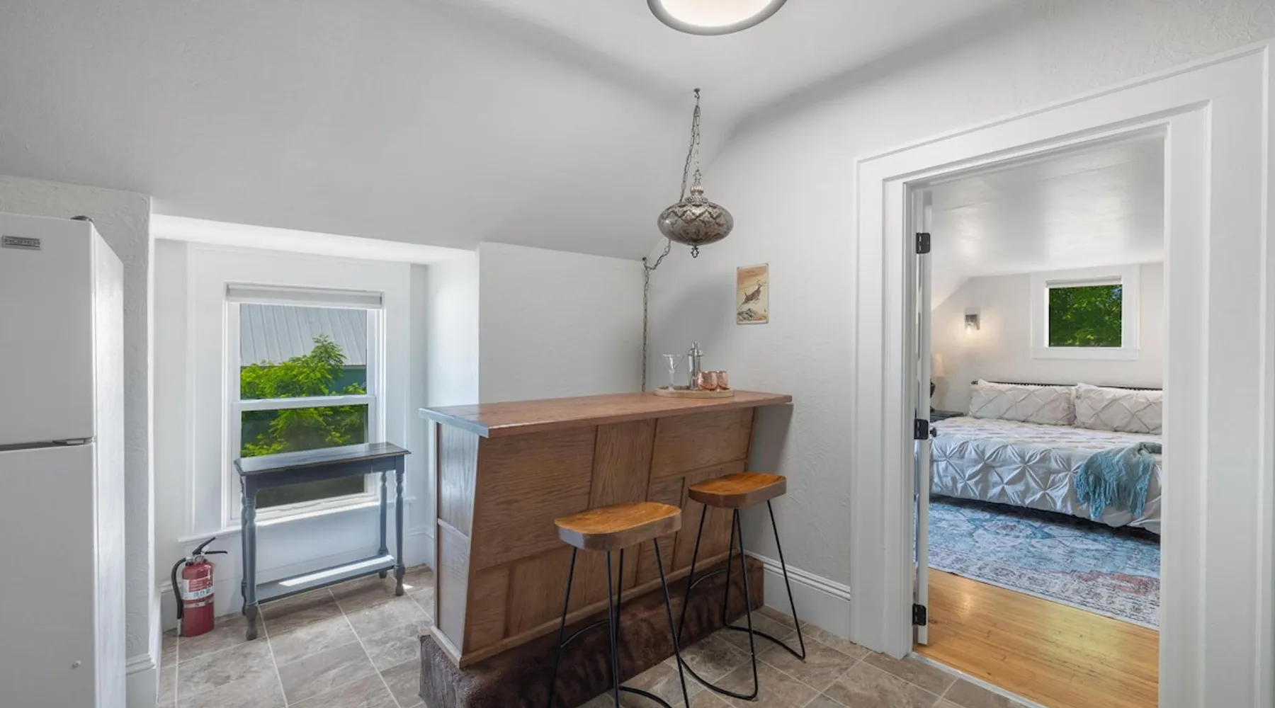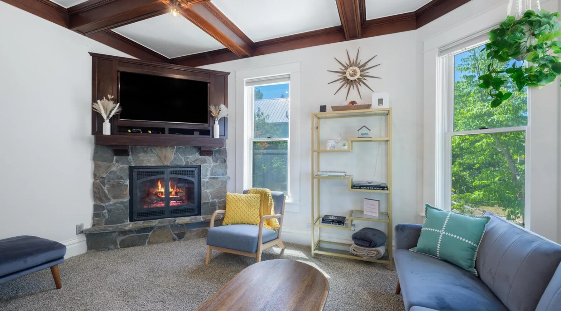 The Landing at Coeur d’Alene blends Craftsman charm with mid-century style just blocks from downtown. This 4BR, 2BA home features two private-entry units, smart TVs, fast Wi-Fi, a full kitchen, kitchenette, and central A/C. Outside, enjoy a fenced yard, 7-person hot tub, Blackstone grill, and outdoor dining. Pet friendly and ideal for families or groups. Walk to Midtown shops, breweries, coffee, and Downtown CDA’s parks, restaurants, and lakefront beach. The space The Landing at Coeur d’Alene features two fully separate units with private entrances, offering flexibility and privacy for families or groups. The main-level unit includes a full kitchen with stainless steel appliances, a dining area, and a living room with a smart TV and video games. Down the hall are two bedrooms with queen beds and smart TVs, a full bathroom with a shower/tub combo, and a laundry room. From the laundry room, step out to the covered back patio, where you'll find a fully fenced yard great for kids and pets, a Blackstone grill, outdoor dining table, and a private 7-person hot tub—perfect for relaxing in every season. Just off the patio is a private entrance leading to the upstairs unit. This space includes a kitchenette with a bar area, a bedroom with a California King bed, and a second bedroom with a Queen-over-Queen bunk bed. Both bedrooms feature smart TVs, and the bunk room also includes video games. A full bathroom with a shower/tub combo completes the upper level. With central A/C, fast Wi-Fi, and a pet-friendly setup, The Landing offers a practical and comfortable home base. It’s ideal for groups who want to stay together but still enjoy personal space—perfect for splitting up adults and kids, or two families traveling together. Enjoy walkable access to Midtown’s markets, breweries, stores, and coffee shops, and take a short stroll or drive to Downtown CDA’s restaurants, parks, boutiques, and the famous Lake Coeur d’Alene with its expansive beach. Guest access Guests have full access to the entire home, including both private-entry units, the fenced backyard, covered patio, hot tub, and all interior amenities. Check-in is a breeze with keyless smart locks on both entrances—no keys to keep track of, and no need to coordinate arrival times. Other things to note - Quiet hours: 10 PM to 8AM - Pet friendly (1 dog per reservation) - 1 Exterior security camera for guest safety - Garage is NOT available to guests Distances to local highlights: - 5 min walk to Midtown shops and breweries - 15 min walk to Downtown CDA, Tubbs Hill, City Beach, McEuen Park - 25 min drive to Silverwood Theme Park