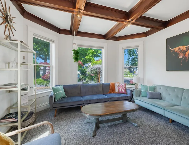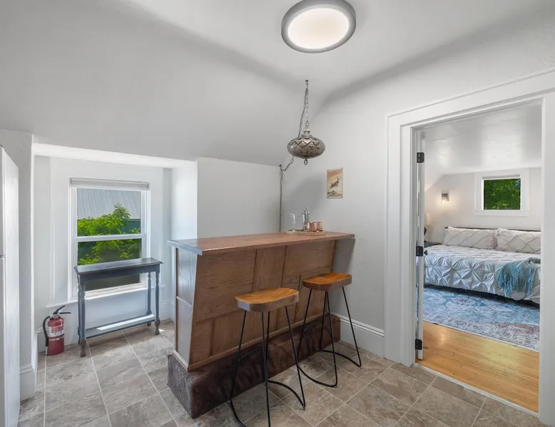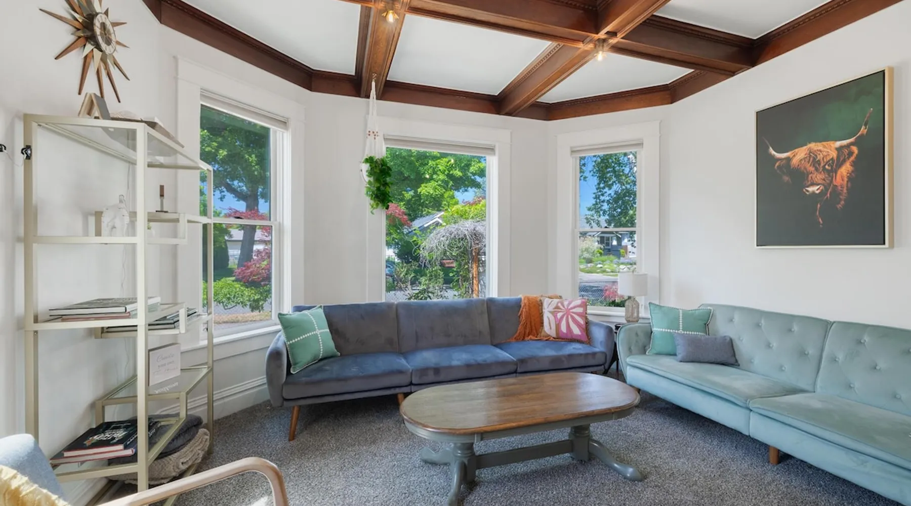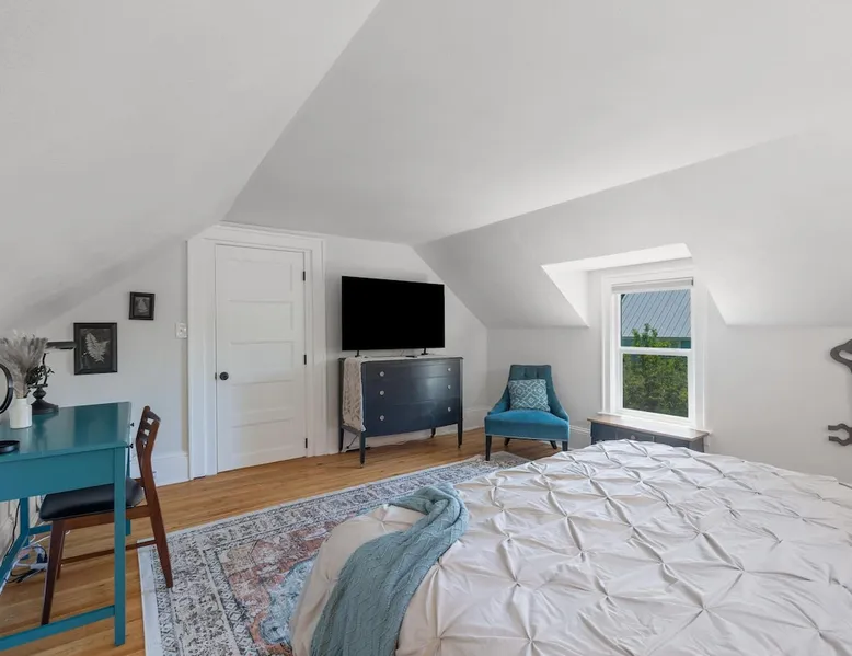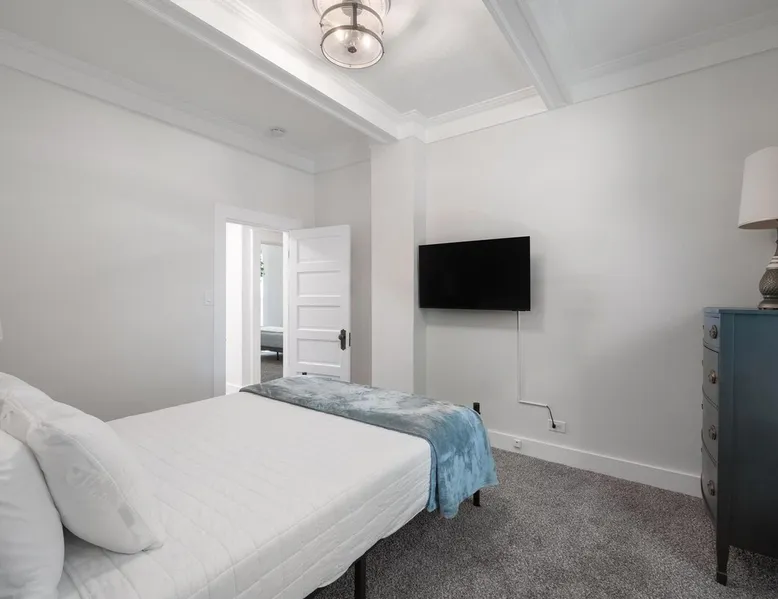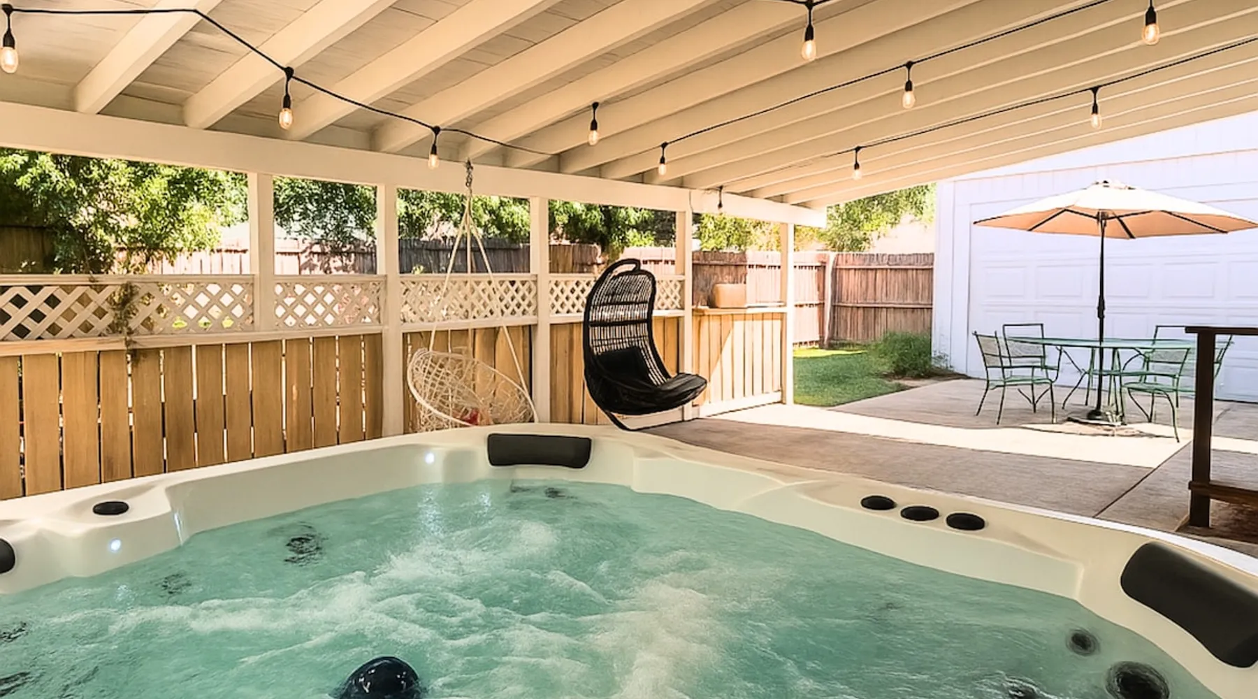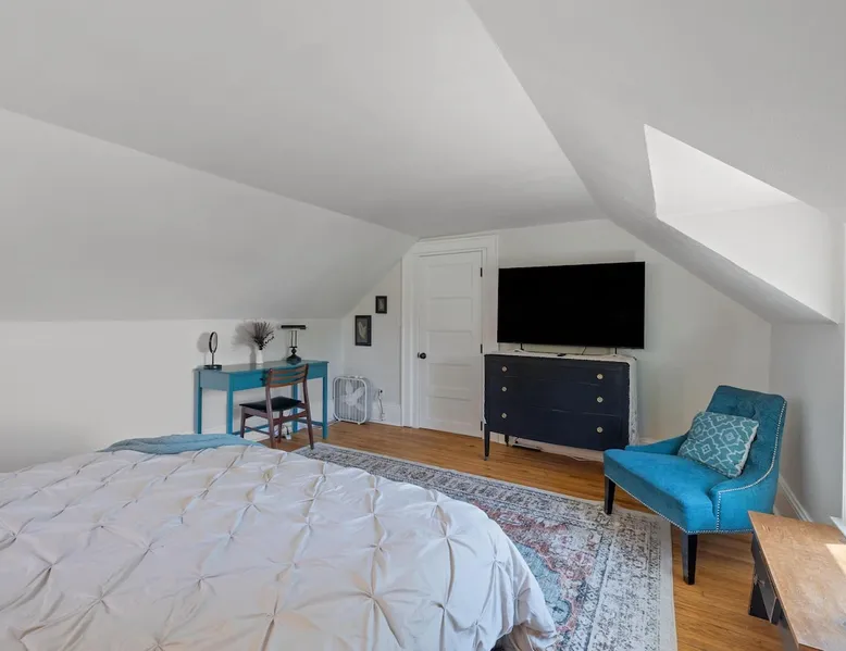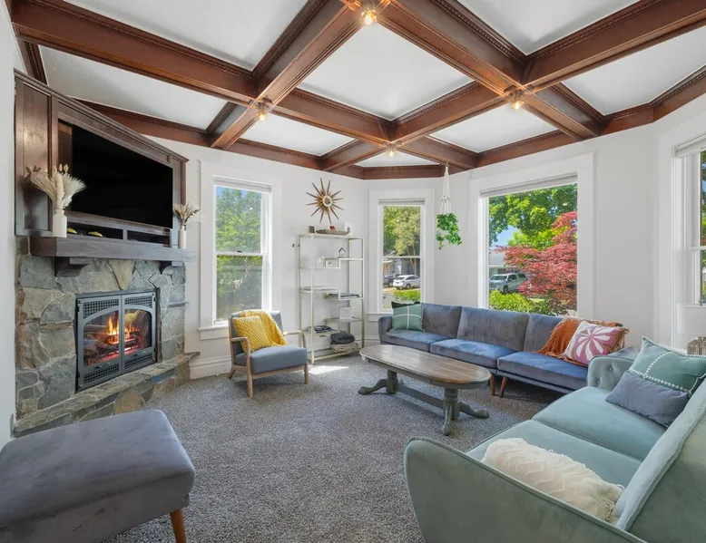 The Landing at Coeur d’Alene blends Craftsman charm with mid-century style just blocks from downtown. This 4BR, 2BA home features two private-entry units, smart TVs, fast Wi-Fi, a full kitchen, kitchenette, and central A/C. Outside, enjoy a fenced yard, 7-person hot tub, Blackstone grill, and outdoor dining. Pet friendly and ideal for families or groups. Walk to Midtown shops, breweries, coffee, and Downtown CDA’s parks, restaurants, and lakefront beach. The space The Landing at Coeur d’Alene features two fully separate units with private entrances, offering flexibility and privacy for families or groups. The main-level unit includes a full kitchen with stainless steel appliances, a dining area, and a living room with a smart TV and video games. Down the hall are two bedrooms with queen beds and smart TVs, a full bathroom with a shower/tub combo, and a laundry room. From the laundry room, step out to the covered back patio, where you'll find a fully fenced yard great for kids and pets, a Blackstone grill, outdoor dining table, and a private 7-person hot tub—perfect for relaxing in every season. Just off the patio is a private entrance leading to the upstairs unit. This space includes a kitchenette with a bar area, a bedroom with a California King bed, and a second bedroom with a Queen-over-Queen bunk bed. Both bedrooms feature smart TVs, and the bunk room also includes video games. A full bathroom with a shower/tub combo completes the upper level. With central A/C, fast Wi-Fi, and a pet-friendly setup, The Landing offers a practical and comfortable home base. It’s ideal for groups who want to stay together but still enjoy personal space—perfect for splitting up adults and kids, or two families traveling together. Enjoy walkable access to Midtown’s markets, breweries, stores, and coffee shops, and take a short stroll or drive to Downtown CDA’s restaurants, parks, boutiques, and the famous Lake Coeur d’Alene with its expansive beach. Guest access Guests have full access to the entire home, including both private-entry units, the fenced backyard, covered patio, hot tub, and all interior amenities. Check-in is a breeze with keyless smart locks on both entrances—no keys to keep track of, and no need to coordinate arrival times. Other things to note - Quiet hours: 10 PM to 8AM - Pet friendly (1 dog per reservation) - 1 Exterior security camera for guest safety - Garage is NOT available to guests Distances to local highlights: - 5 min walk to Midtown shops and breweries - 15 min walk to Downtown CDA, Tubbs Hill, City Beach, McEuen Park - 25 min drive to Silverwood Theme Park