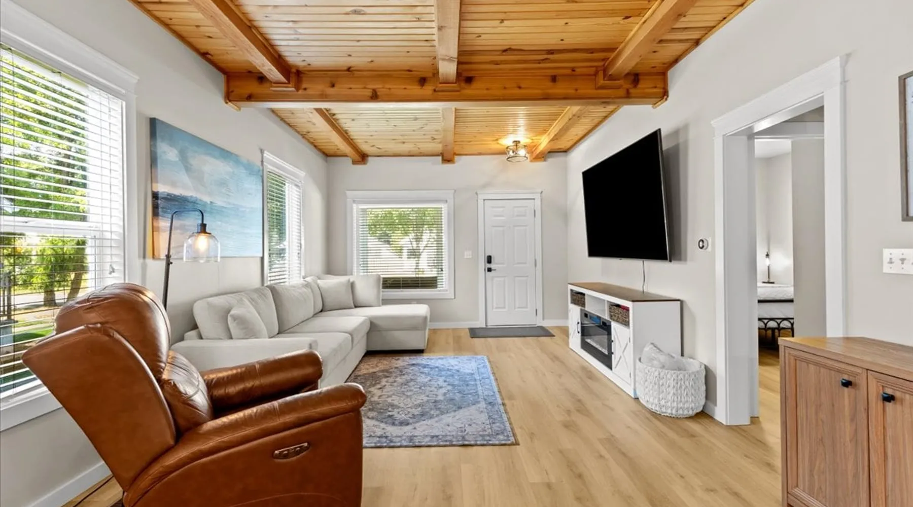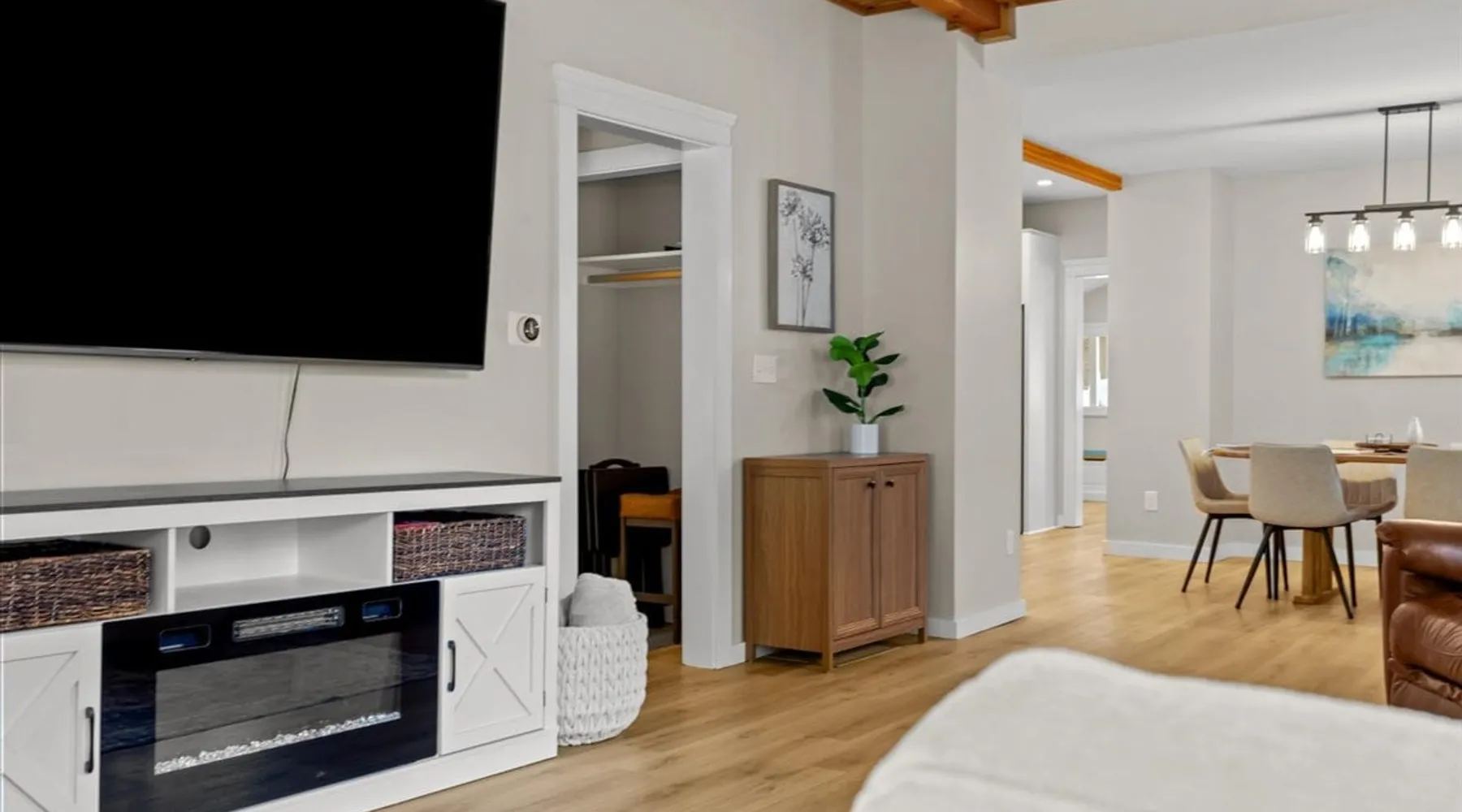 Stylish 3BR, 2BA home in the heart of downtown CDA! Walk to shops, pubs, dining, ice cream, and the beach! Features include a fully stocked kitchen, coffee bar, wine fridge, fenced yard with fire pit, and outside dining. We’ve got beach towels, blanket, toys, wagon, and coolers for lake days. Perfect for families or groups year-round, just steps from all downtown fun! The space This beautifully remodeled home blends upscale comfort with unbeatable location: -3 bedrooms + 2 bathrooms, sleeps up to 9 guests -Main-level bedroom + full bath; two upstairs bedrooms + full bath -Spacious living room with smart TV & sectional sleeper sofa -Fully stocked kitchen for home-cooked meals -Stylish mudroom with laundry, coffee bar, wine fridge & mini fridge -Backyard with outdoor dining, BBQ grill, gas fire pit & cornhole -Beach towels, blanket, toys, wagon & coolers provided -Parking for 3 cars + free public lot 2 houses away -Central AC on main level & window AC upstairs for comfort year-round Guest access Guests have full access to the entire home, fenced backyard, outdoor dining area, BBQ grill, and fire pit. Beach gear- including towels, blanket, toys, wagon, and coolers; is provided for your convenience. Enjoy the fully stocked kitchen, coffee bar, wine fridge, and laundry area. Walk to the lake, shops, pubs, ice cream, and restaurants, or take a short drive to nearby parks, trails, and attractions. Other things to note Year-round fun: lake days, downtown events, Silverwood in summer, Scarywood in fall, winter festivals -Walking distance to shops, dining, pubs, ice cream, parks & beach -Beach gear included: towels, blanket, toys, wagon & coolers -Central AC on main level; window AC upstairs -Parking for 3 cars + free public lot nearby -Family-friendly with spacious living room & games -No pets allowed to maintain home’s cleanliness