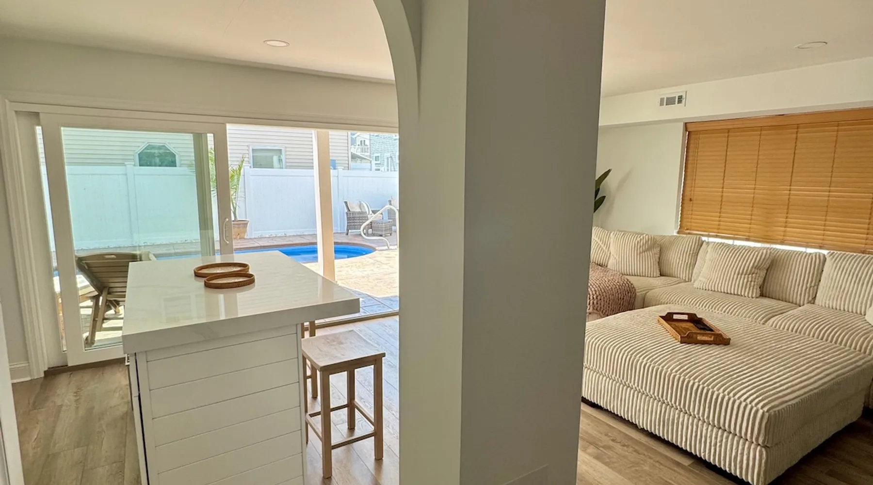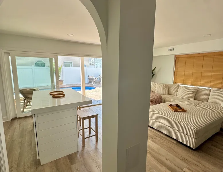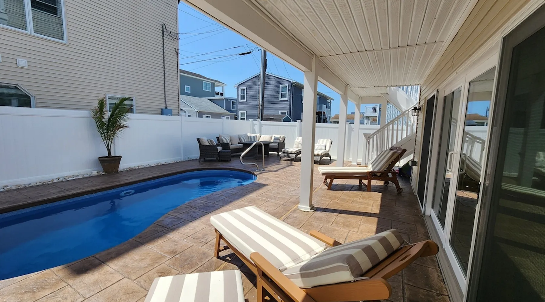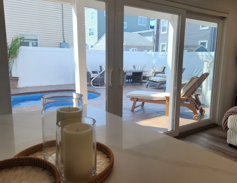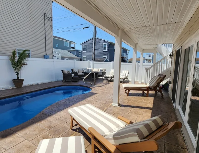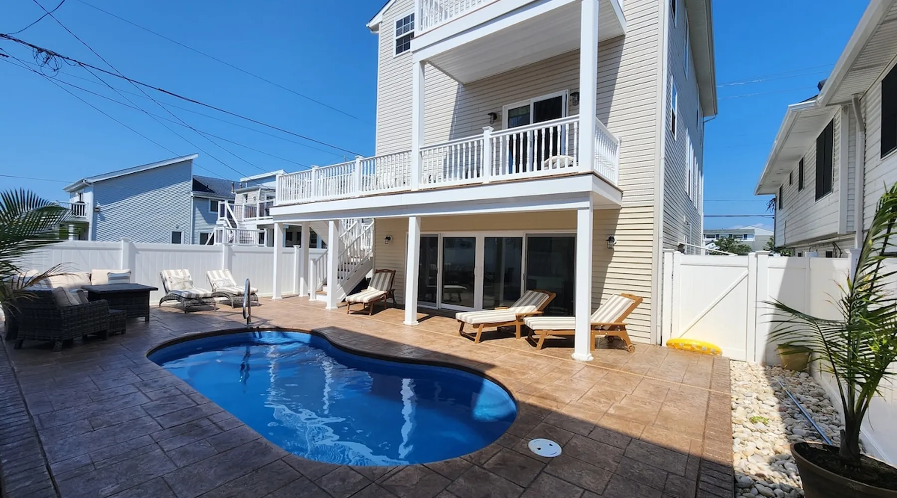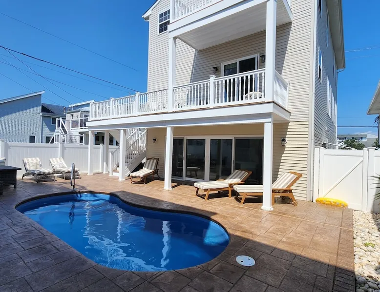 Escape to coastal luxury in this stunning 5BR, 3.5BA Brigantine beach home! Just a short stroll to the sand, enjoy a private in-ground pool, outdoor shower, 4 breezy balconies, and a spacious patio perfect for sunbathing, grilling, or gathering with friends. With spacious living areas, modern amenities, and a 2-car driveway, this home is the ultimate retreat for families or groups seeking the perfect blend of comfort and seaside adventure. Book your stay now & make unforgettable memories! The space Welcome to your dream beach getaway in beautiful Brigantine, NJ! This spacious and stylish home is designed for comfort, relaxation, and fun. Perfect for families or groups looking to unwind by the ocean! You must be 25 or over to book this property. PROPERTY LAYOUT 1ST LEVEL: - 2 bedrooms (1 twin bed with twin trundle and 1 full bed) - 1 newly renovated full bathroom with a stand up shower and double vanity - Indoor lounge area with a wet bar, 2 TV's and comfortable seating overlooking the pool and patio - Access to the pool through beautiful full glass sliders 2ND LEVEL: - Spacious and comfortable living room with a TV and sectional sofa - Dining table with seating for 10 - Full Kitchen with stainless steel appliances, basic kitchenware, dish ware, flatware, coffee maker, kitchen island with seating and a TV - Laundry Room - Half Bathroom 3RD LEVEL: - 3 beautifully appointed bedrooms (which includes the master suite with a king bed, and 3 other full beds) - 1 full bathroom in the hallway accessible by all bedrooms - 1 full bathroom in the master suite BEDROOM DESCRIPTIONS AND SLEEPING ARRANGEMENTS: BEDROOM 1 - King bed w/ en suite full bath, Smart TV, Balcony Access (3rd floor) BEDROOM 2 - Two Full beds, Smart TV, Balcony Access (3rd floor) BEDROOM 3 - Full bed, Smart TV, Balcony Access (3rd floor) BEDROOM 4- Twin bed w/ Twin trundle, Smart TV (1st level) BEDROOM 5- Full bed, Smart TV (1st level) BATHROOM LOCATIONS: -There are 3 full bathrooms- 1 on the lower level, 1 in the master bedroom suite, 1 in the top floor hallway -There is a half bathroom off of the kitchen. OUTDOOR SPACES/BEACH ACCESS: -Back yard patio with seating and a private in-ground pool -The In-ground pool is open from Memorial Day to Labor Day -Children must be monitored at all times. -There is no smoking permitted on the patio or around the pool. -Usage of the pool is at the guests own risk. -Propane Grill- guests are responsible for cleaning the grill after use. There are propane tanks that guests may use, but if they run out guests can refill. -Outdoor shower on the side of the house -4 outdoor balconies provide the perfect setting for morning coffee or evening cocktails -Pool/Beach towels are provided -Beach tags are provided. Any lost/missing beach tags that are not returned will result in a $50 fee per tag. -There are beach chairs, boogie boards, and bikes for the guests to use at their own risk. -5 minute walk to the Beach Access point at 38th Street and Ocean Avenue OTHER AMENITIES: -The home is also equipped wifi, several TV's, beverage fridge, Keurig coffee maker, an iron, ironing board, hair dryer, and much more! -The house has central forced air for heating and cooling with separate thermostats on level 1 and level 3. -There is parking for 2 vehicles in the driveway BOOK WITH US and unlock discounts and special offers exclusive to Cozy Cohost guests. Take advantage of all that the area has to offer and enjoy savings at top local spots including famous restaurants, night clubs, spas, coffee shops, distilleries, breweries, boat tours, bike rentals, mini golf, and more... Guest access PLEASE NOTE: -You must be 25 or over to reserve this property. -The living rooms has a non operational fireplace, it is decorative and cannot be used. -Please be respectful to the neighbors and the surrounding homes. Keep noise down and do not create any disturbances. Do not block entrances, garages or driveways. -Brigantine has a noise ordinance of 10pm-8am. -There are no parties, events or large gatherings permitted. -Please review all house rules, failure to comply can result in cancellation of reservation with no refund. ACCESS & ENTRY: -There is keyless entry. Your host will provide you with the door code approximately one hour prior to check in the day of your trip. -Guests will have access the entire home. Which includes the driveway, private pool and private patio. -This property has stairs. There are stairs to the 2nd and 3rd levels. -Please note that the check in time is 4:00 PM. The check-out time is promptly by 11:00 AM. Failure to check out by this time may result in a $100 fee per hour. We appreciate your cooperation in ensuring a smooth transition for our next guests. Thank you for your understanding! PARKING: -Guests may use the driveway in the front of the home that can fit 2 vehicles. ADDITIONAL PARKING: -You can on street park on the street where available. -Please be courteous to the neighbors when parking, do not block driveways or sidewalks. -Guests are responsible for city street parking compliance; read & follow signage to avoid parking tickets. -We are not responsible for parking tickets due to negligence. MAIL: -Please do not ship items to the property. -If there is something of priority that you need shipped please reach out to us directly for alternative options. -We are not responsible for any items shipped to the property. ENVIRONMENTAL NOTES: -Property located in tourist beach town environment; potential for noise from cars or foot traffic. SECURITY: -The home is protected by exterior ring camera security at the front and back of the property. Other things to note HONESTY & EXPECTATIONS: At "The Brigantine Beach House", we want our guests to have a clear understanding of the distinctions between vacation rentals and hotels. While we diligently maintain our properties, wear and tear are inherent aspects of vacation rentals. Although we address issues promptly, the high volume of guests may result in occa