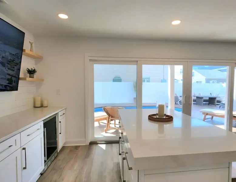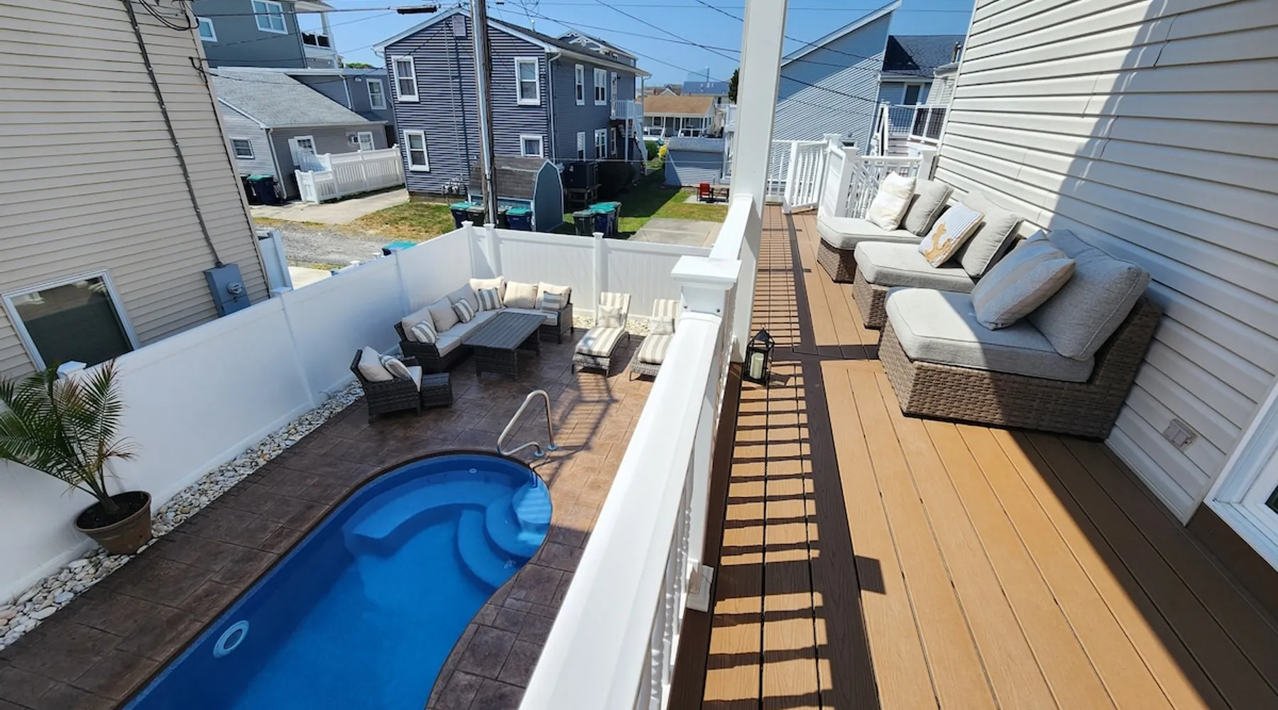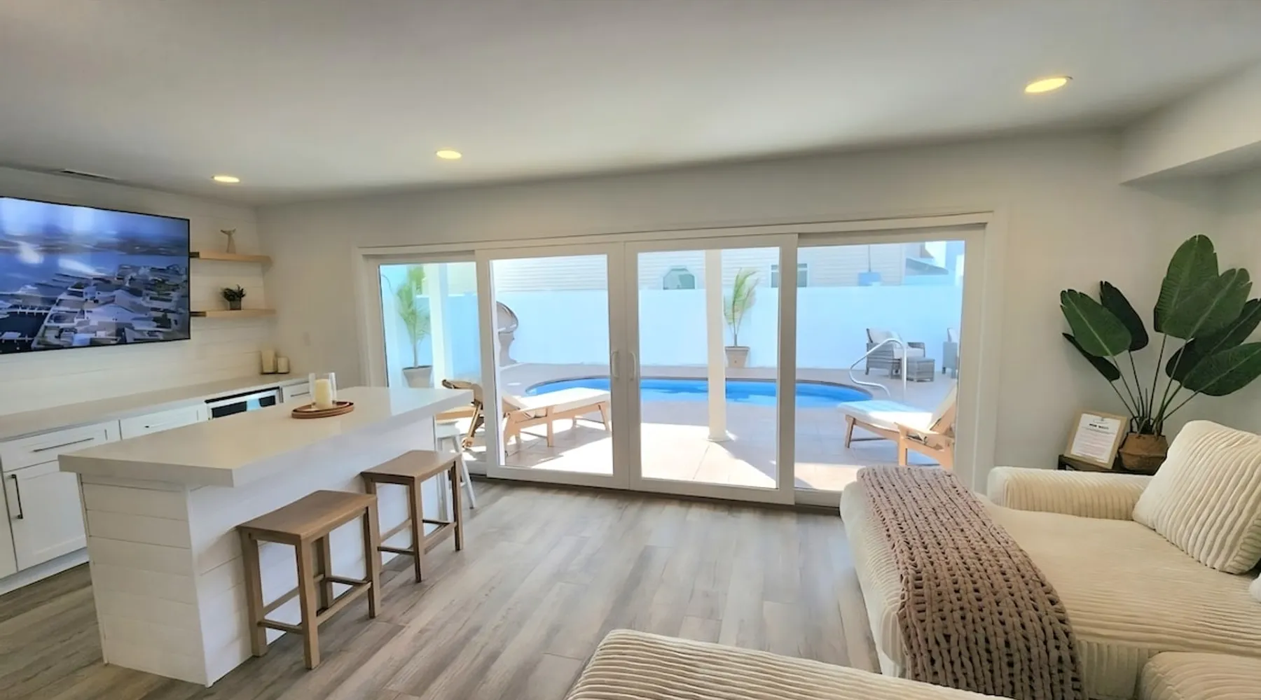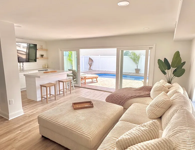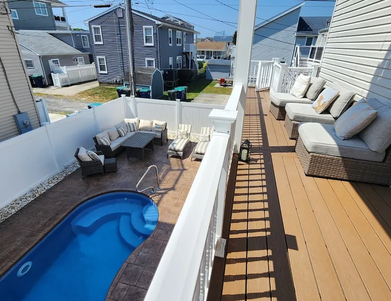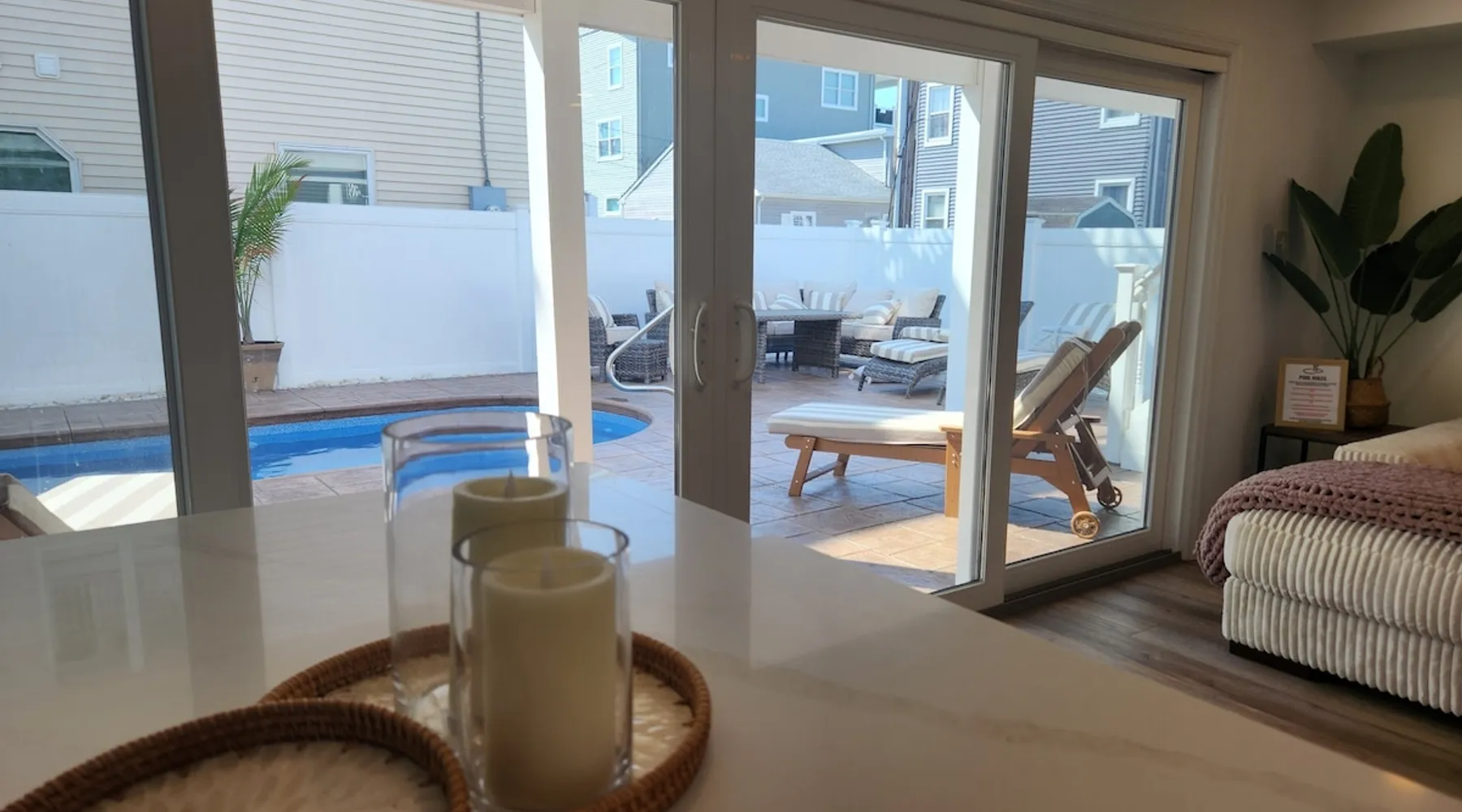 Escape to coastal luxury in this stunning 5BR, 3.5BA Brigantine beach home! Just a short stroll to the sand, enjoy a private in-ground pool, outdoor shower, 4 breezy balconies, and a spacious patio perfect for sunbathing, grilling, or gathering with friends. With spacious living areas, modern amenities, and a 2-car driveway, this home is the ultimate retreat for families or groups seeking the perfect blend of comfort and seaside adventure. Book your stay now & make unforgettable memories! The space Welcome to your dream beach getaway in beautiful Brigantine, NJ! This spacious and stylish home is designed for comfort, relaxation, and fun. Perfect for families or groups looking to unwind by the ocean! You must be 25 or over to book this property. PROPERTY LAYOUT 1ST LEVEL: - 2 bedrooms (1 twin bed with twin trundle and 1 full bed) - 1 newly renovated full bathroom with a stand up shower and double vanity - Indoor lounge area with a wet bar, 2 TV's and comfortable seating overlooking the pool and patio - Access to the pool through beautiful full glass sliders 2ND LEVEL: - Spacious and comfortable living room with a TV and sectional sofa - Dining table with seating for 10 - Full Kitchen with stainless steel appliances, basic kitchenware, dish ware, flatware, coffee maker, kitchen island with seating and a TV - Laundry Room - Half Bathroom 3RD LEVEL: - 3 beautifully appointed bedrooms (which includes the master suite with a king bed, and 3 other full beds) - 1 full bathroom in the hallway accessible by all bedrooms - 1 full bathroom in the master suite BEDROOM DESCRIPTIONS AND SLEEPING ARRANGEMENTS: BEDROOM 1 - King bed w/ en suite full bath, Smart TV, Balcony Access (3rd floor) BEDROOM 2 - Two Full beds, Smart TV, Balcony Access (3rd floor) BEDROOM 3 - Full bed, Smart TV, Balcony Access (3rd floor) BEDROOM 4- Twin bed w/ Twin trundle, Smart TV (1st level) BEDROOM 5- Full bed, Smart TV (1st level) BATHROOM LOCATIONS: -There are 3 full bathrooms- 1 on the lower level, 1 in the master bedroom suite, 1 in the top floor hallway -There is a half bathroom off of the kitchen. OUTDOOR SPACES/BEACH ACCESS: -Back yard patio with seating and a private in-ground pool -The In-ground pool is open from Memorial Day to Labor Day -Children must be monitored at all times. -There is no smoking permitted on the patio or around the pool. -Usage of the pool is at the guests own risk. -Propane Grill- guests are responsible for cleaning the grill after use. There are propane tanks that guests may use, but if they run out guests can refill. -Outdoor shower on the side of the house -4 outdoor balconies provide the perfect setting for morning coffee or evening cocktails -Pool/Beach towels are provided -Beach tags are provided. Any lost/missing beach tags that are not returned will result in a $50 fee per tag. -There are beach chairs, boogie boards, and bikes for the guests to use at their own risk. -5 minute walk to the Beach Access point at 38th Street and Ocean Avenue OTHER AMENITIES: -The home is also equipped wifi, several TV's, beverage fridge, Keurig coffee maker, an iron, ironing board, hair dryer, and much more! -The house has central forced air for heating and cooling with separate thermostats on level 1 and level 3. -There is parking for 2 vehicles in the driveway BOOK WITH US and unlock discounts and special offers exclusive to Cozy Cohost guests. Take advantage of all that the area has to offer and enjoy savings at top local spots including famous restaurants, night clubs, spas, coffee shops, distilleries, breweries, boat tours, bike rentals, mini golf, and more... Guest access PLEASE NOTE: -You must be 25 or over to reserve this property. -The living rooms has a non operational fireplace, it is decorative and cannot be used. -Please be respectful to the neighbors and the surrounding homes. Keep noise down and do not create any disturbances. Do not block entrances, garages or driveways. -Brigantine has a noise ordinance of 10pm-8am. -There are no parties, events or large gatherings permitted. -Please review all house rules, failure to comply can result in cancellation of reservation with no refund. ACCESS & ENTRY: -There is keyless entry. Your host will provide you with the door code approximately one hour prior to check in the day of your trip. -Guests will have access the entire home. Which includes the driveway, private pool and private patio. -This property has stairs. There are stairs to the 2nd and 3rd levels. -Please note that the check in time is 4:00 PM. The check-out time is promptly by 11:00 AM. Failure to check out by this time may result in a $100 fee per hour. We appreciate your cooperation in ensuring a smooth transition for our next guests. Thank you for your understanding! PARKING: -Guests may use the driveway in the front of the home that can fit 2 vehicles. ADDITIONAL PARKING: -You can on street park on the street where available. -Please be courteous to the neighbors when parking, do not block driveways or sidewalks. -Guests are responsible for city street parking compliance; read & follow signage to avoid parking tickets. -We are not responsible for parking tickets due to negligence. MAIL: -Please do not ship items to the property. -If there is something of priority that you need shipped please reach out to us directly for alternative options. -We are not responsible for any items shipped to the property. ENVIRONMENTAL NOTES: -Property located in tourist beach town environment; potential for noise from cars or foot traffic. SECURITY: -The home is protected by exterior ring camera security at the front and back of the property. Other things to note HONESTY & EXPECTATIONS: At "The Brigantine Beach House", we want our guests to have a clear understanding of the distinctions between vacation rentals and hotels. While we diligently maintain our properties, wear and tear are inherent aspects of vacation rentals. Although we address issues promptly, the high volume of guests may result in occa