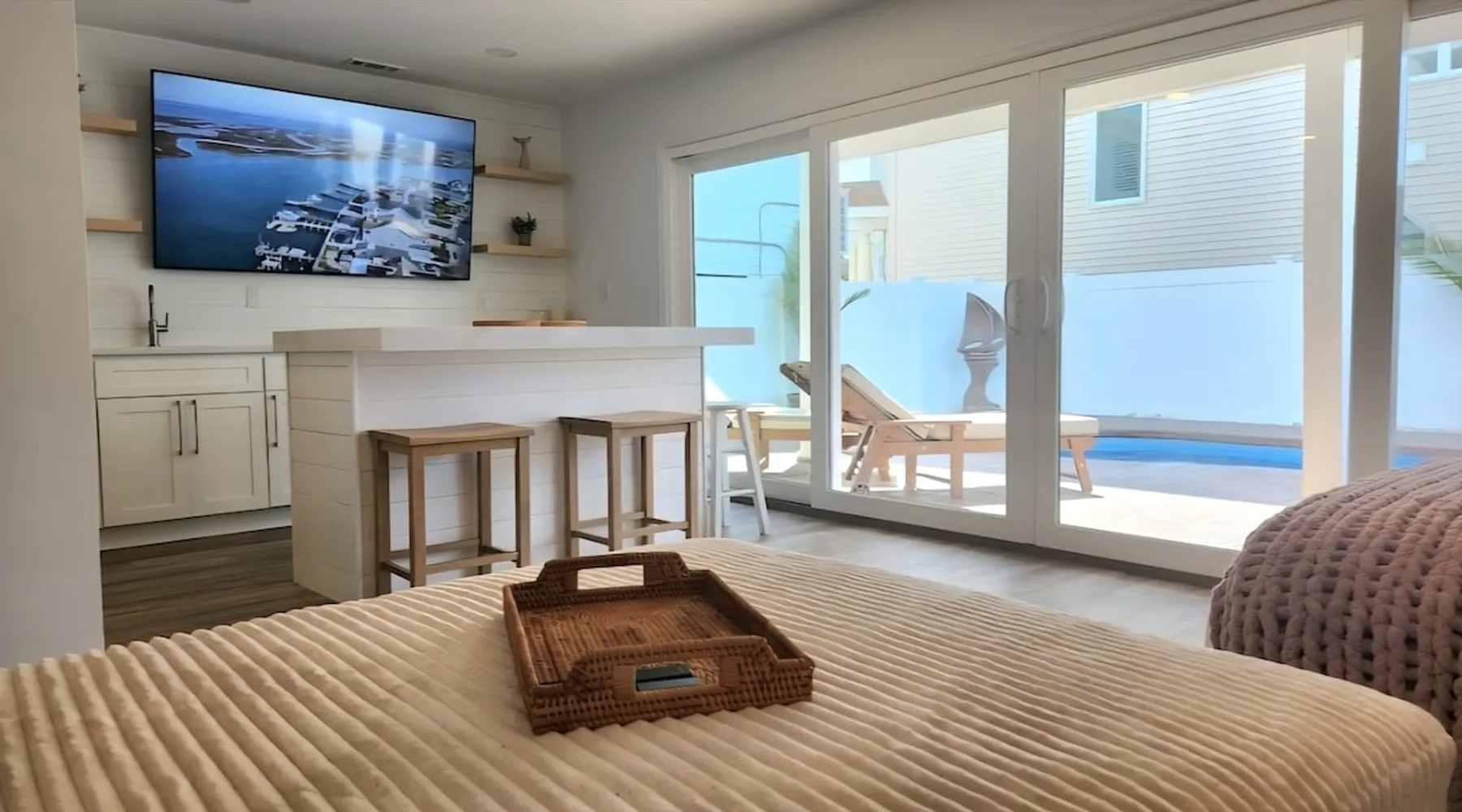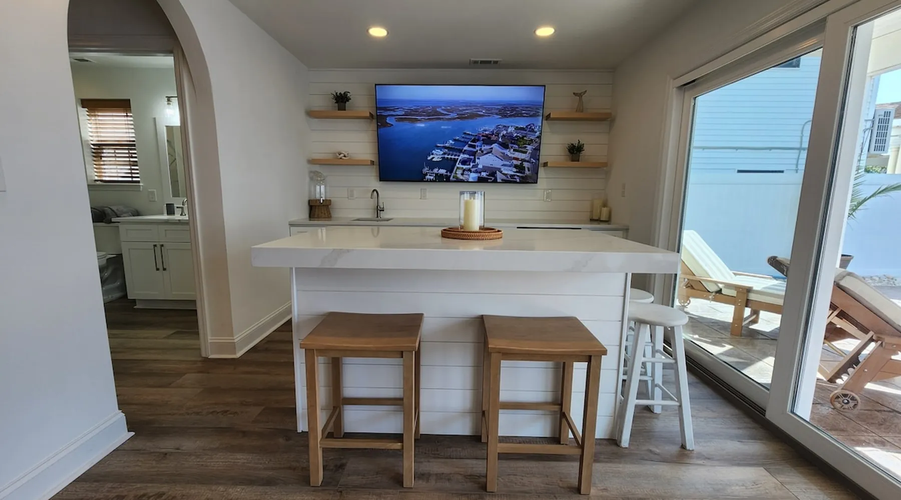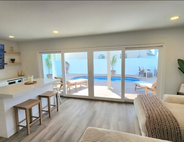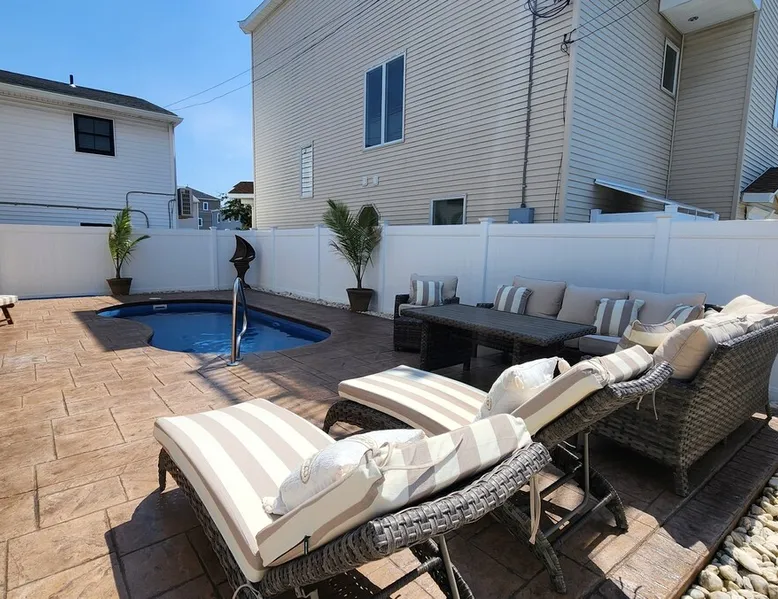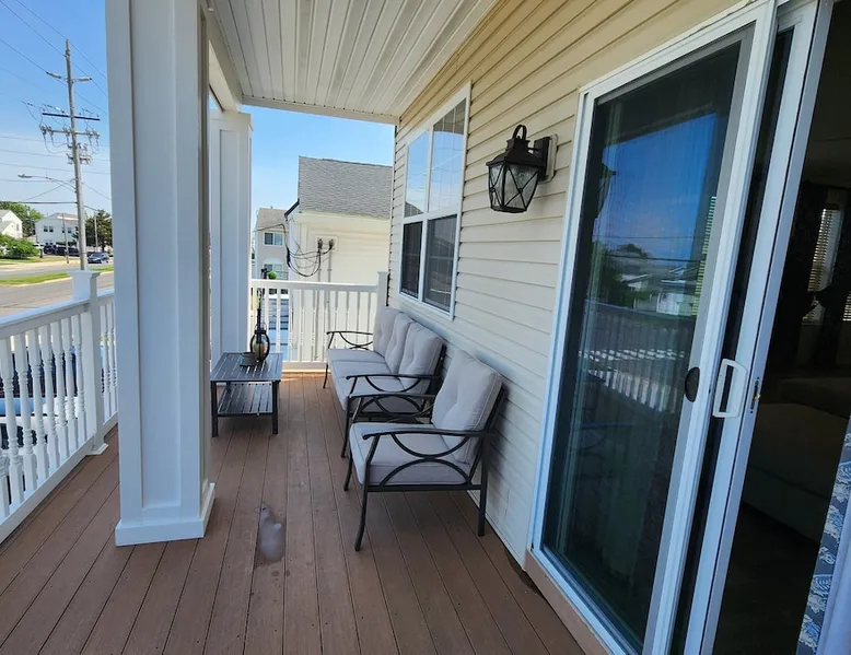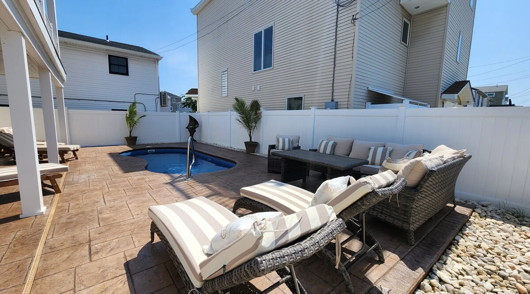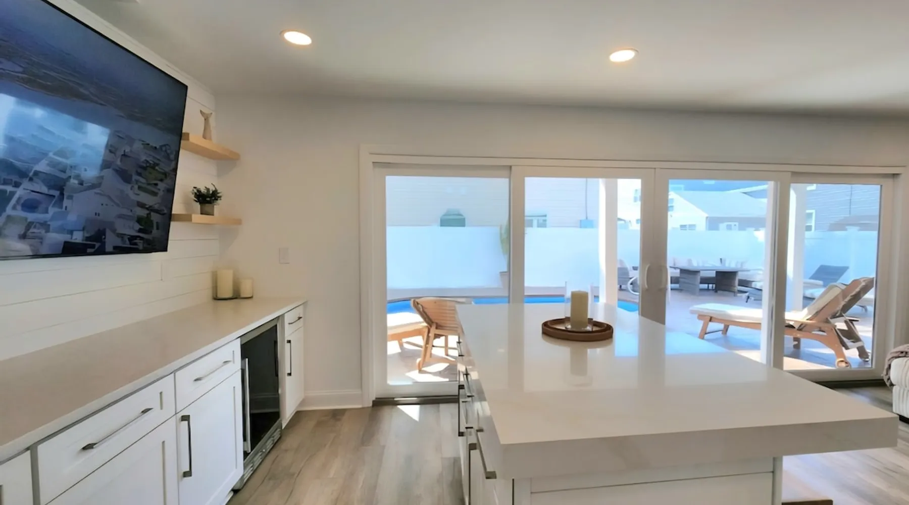 Escape to coastal luxury in this stunning 5BR, 3.5BA Brigantine beach home! Just a short stroll to the sand, enjoy a private in-ground pool, outdoor shower, 4 breezy balconies, and a spacious patio perfect for sunbathing, grilling, or gathering with friends. With spacious living areas, modern amenities, and a 2-car driveway, this home is the ultimate retreat for families or groups seeking the perfect blend of comfort and seaside adventure. Book your stay now & make unforgettable memories! The space Welcome to your dream beach getaway in beautiful Brigantine, NJ! This spacious and stylish home is designed for comfort, relaxation, and fun. Perfect for families or groups looking to unwind by the ocean! You must be 25 or over to book this property. PROPERTY LAYOUT 1ST LEVEL: - 2 bedrooms (1 twin bed with twin trundle and 1 full bed) - 1 newly renovated full bathroom with a stand up shower and double vanity - Indoor lounge area with a wet bar, 2 TV's and comfortable seating overlooking the pool and patio - Access to the pool through beautiful full glass sliders 2ND LEVEL: - Spacious and comfortable living room with a TV and sectional sofa - Dining table with seating for 10 - Full Kitchen with stainless steel appliances, basic kitchenware, dish ware, flatware, coffee maker, kitchen island with seating and a TV - Laundry Room - Half Bathroom 3RD LEVEL: - 3 beautifully appointed bedrooms (which includes the master suite with a king bed, and 3 other full beds) - 1 full bathroom in the hallway accessible by all bedrooms - 1 full bathroom in the master suite BEDROOM DESCRIPTIONS AND SLEEPING ARRANGEMENTS: BEDROOM 1 - King bed w/ en suite full bath, Smart TV, Balcony Access (3rd floor) BEDROOM 2 - Two Full beds, Smart TV, Balcony Access (3rd floor) BEDROOM 3 - Full bed, Smart TV, Balcony Access (3rd floor) BEDROOM 4- Twin bed w/ Twin trundle, Smart TV (1st level) BEDROOM 5- Full bed, Smart TV (1st level) BATHROOM LOCATIONS: -There are 3 full bathrooms- 1 on the lower level, 1 in the master bedroom suite, 1 in the top floor hallway -There is a half bathroom off of the kitchen. OUTDOOR SPACES/BEACH ACCESS: -Back yard patio with seating and a private in-ground pool -The In-ground pool is open from Memorial Day to Labor Day -Children must be monitored at all times. -There is no smoking permitted on the patio or around the pool. -Usage of the pool is at the guests own risk. -Propane Grill- guests are responsible for cleaning the grill after use. There are propane tanks that guests may use, but if they run out guests can refill. -Outdoor shower on the side of the house -4 outdoor balconies provide the perfect setting for morning coffee or evening cocktails -Pool/Beach towels are provided -Beach tags are provided. Any lost/missing beach tags that are not returned will result in a $50 fee per tag. -There are beach chairs, boogie boards, and bikes for the guests to use at their own risk. -5 minute walk to the Beach Access point at 38th Street and Ocean Avenue OTHER AMENITIES: -The home is also equipped wifi, several TV's, beverage fridge, Keurig coffee maker, an iron, ironing board, hair dryer, and much more! -The house has central forced air for heating and cooling with separate thermostats on level 1 and level 3. -There is parking for 2 vehicles in the driveway BOOK WITH US and unlock discounts and special offers exclusive to Cozy Cohost guests. Take advantage of all that the area has to offer and enjoy savings at top local spots including famous restaurants, night clubs, spas, coffee shops, distilleries, breweries, boat tours, bike rentals, mini golf, and more... Guest access PLEASE NOTE: -You must be 25 or over to reserve this property. -The living rooms has a non operational fireplace, it is decorative and cannot be used. -Please be respectful to the neighbors and the surrounding homes. Keep noise down and do not create any disturbances. Do not block entrances, garages or driveways. -Brigantine has a noise ordinance of 10pm-8am. -There are no parties, events or large gatherings permitted. -Please review all house rules, failure to comply can result in cancellation of reservation with no refund. ACCESS & ENTRY: -There is keyless entry. Your host will provide you with the door code approximately one hour prior to check in the day of your trip. -Guests will have access the entire home. Which includes the driveway, private pool and private patio. -This property has stairs. There are stairs to the 2nd and 3rd levels. -Please note that the check in time is 4:00 PM. The check-out time is promptly by 11:00 AM. Failure to check out by this time may result in a $100 fee per hour. We appreciate your cooperation in ensuring a smooth transition for our next guests. Thank you for your understanding! PARKING: -Guests may use the driveway in the front of the home that can fit 2 vehicles. ADDITIONAL PARKING: -You can on street park on the street where available. -Please be courteous to the neighbors when parking, do not block driveways or sidewalks. -Guests are responsible for city street parking compliance; read & follow signage to avoid parking tickets. -We are not responsible for parking tickets due to negligence. MAIL: -Please do not ship items to the property. -If there is something of priority that you need shipped please reach out to us directly for alternative options. -We are not responsible for any items shipped to the property. ENVIRONMENTAL NOTES: -Property located in tourist beach town environment; potential for noise from cars or foot traffic. SECURITY: -The home is protected by exterior ring camera security at the front and back of the property. Other things to note HONESTY & EXPECTATIONS: At "The Brigantine Beach House", we want our guests to have a clear understanding of the distinctions between vacation rentals and hotels. While we diligently maintain our properties, wear and tear are inherent aspects of vacation rentals. Although we address issues promptly, the high volume of guests may result in occa