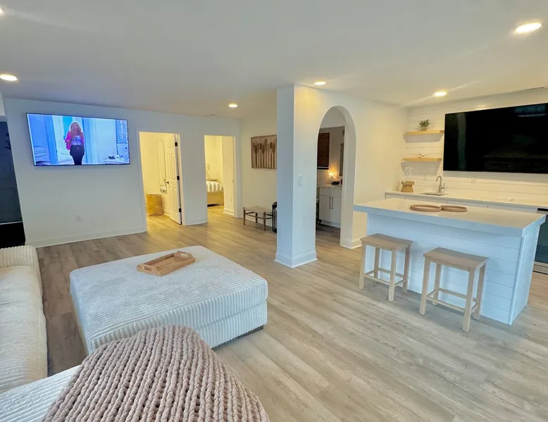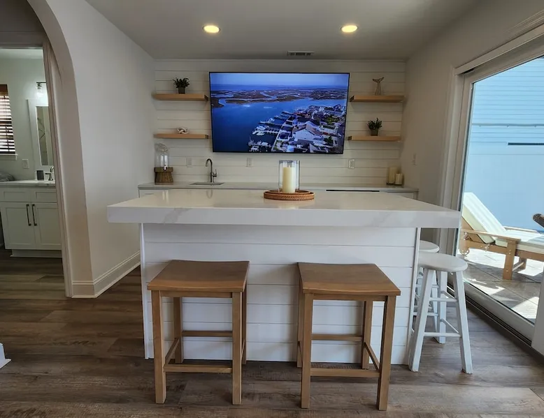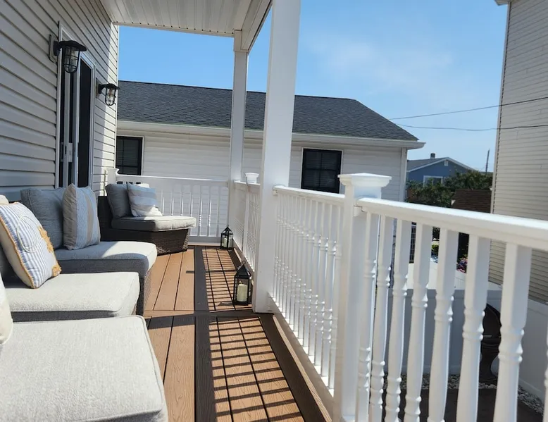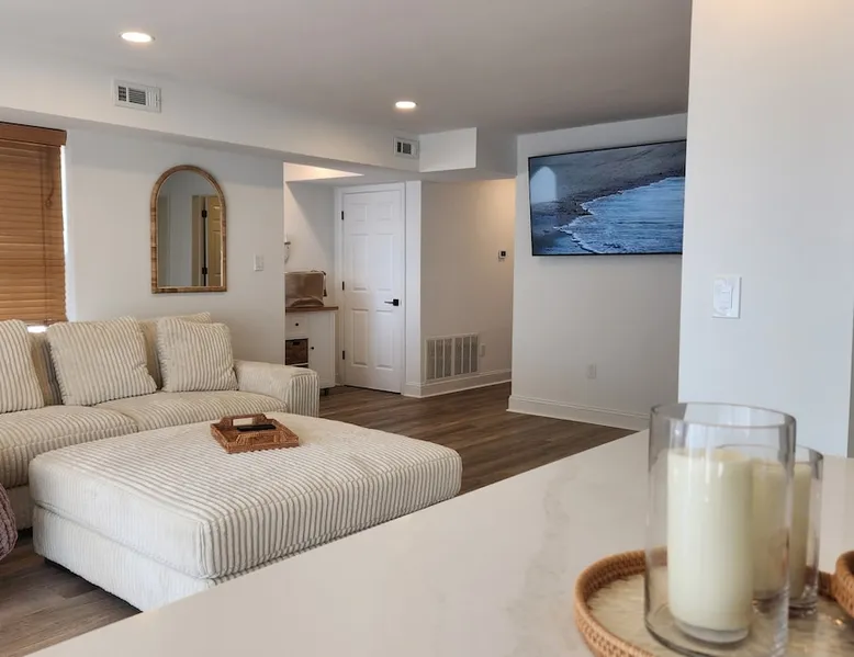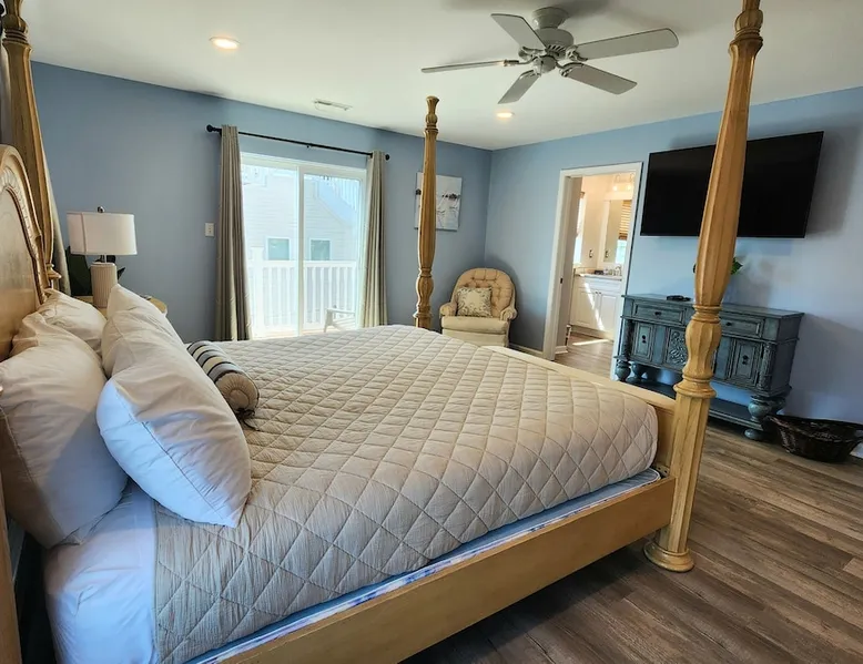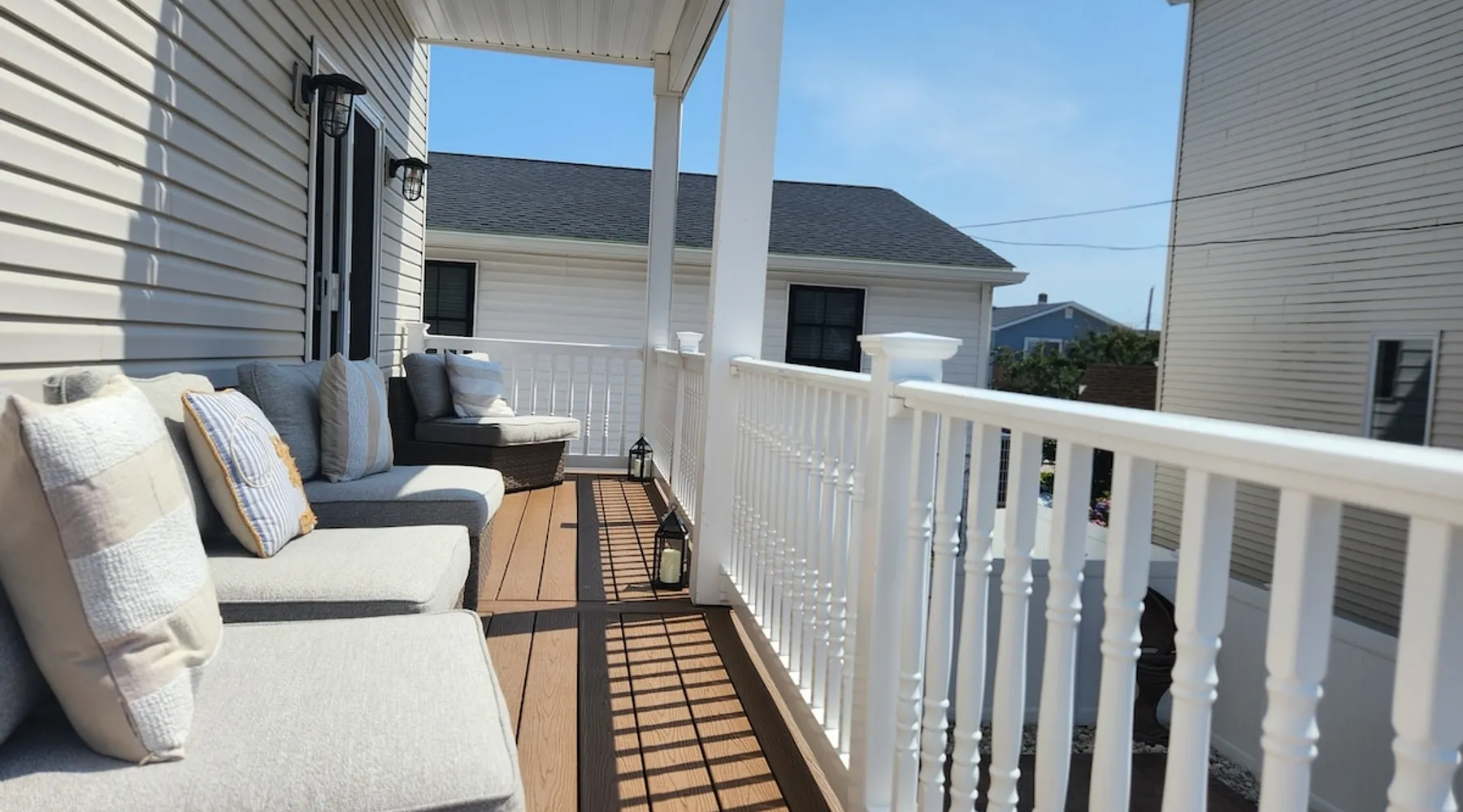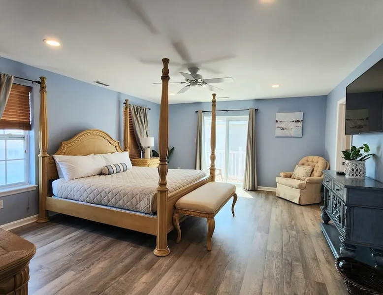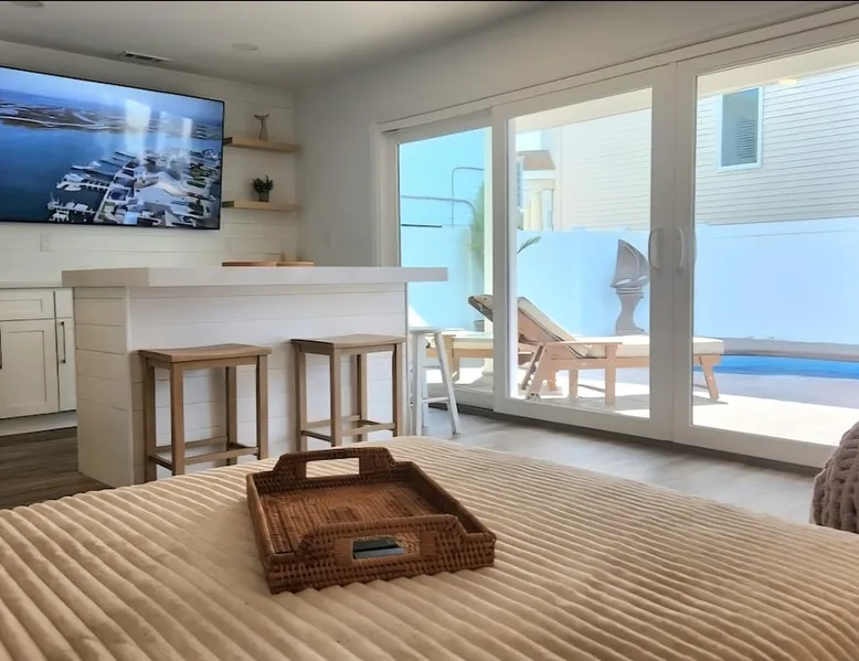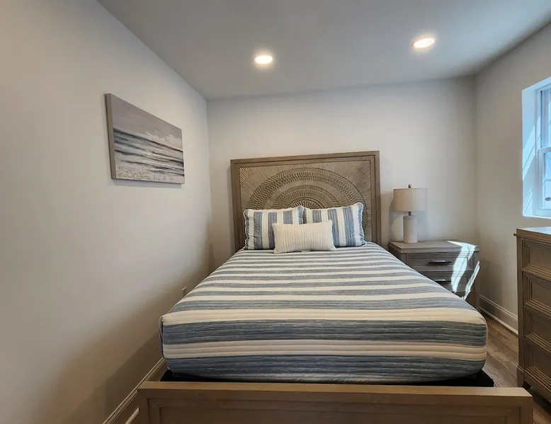 Escape to coastal luxury in this stunning 5BR, 3.5BA Brigantine beach home! Just a short stroll to the sand, enjoy a private in-ground pool, outdoor shower, 4 breezy balconies, and a spacious patio perfect for sunbathing, grilling, or gathering with friends. With spacious living areas, modern amenities, and a 2-car driveway, this home is the ultimate retreat for families or groups seeking the perfect blend of comfort and seaside adventure. Book your stay now & make unforgettable memories! The space Welcome to your dream beach getaway in beautiful Brigantine, NJ! This spacious and stylish home is designed for comfort, relaxation, and fun. Perfect for families or groups looking to unwind by the ocean! You must be 25 or over to book this property. PROPERTY LAYOUT 1ST LEVEL: - 2 bedrooms (1 twin bed with twin trundle and 1 full bed) - 1 newly renovated full bathroom with a stand up shower and double vanity - Indoor lounge area with a wet bar, 2 TV's and comfortable seating overlooking the pool and patio - Access to the pool through beautiful full glass sliders 2ND LEVEL: - Spacious and comfortable living room with a TV and sectional sofa - Dining table with seating for 10 - Full Kitchen with stainless steel appliances, basic kitchenware, dish ware, flatware, coffee maker, kitchen island with seating and a TV - Laundry Room - Half Bathroom 3RD LEVEL: - 3 beautifully appointed bedrooms (which includes the master suite with a king bed, and 3 other full beds) - 1 full bathroom in the hallway accessible by all bedrooms - 1 full bathroom in the master suite BEDROOM DESCRIPTIONS AND SLEEPING ARRANGEMENTS: BEDROOM 1 - King bed w/ en suite full bath, Smart TV, Balcony Access (3rd floor) BEDROOM 2 - Two Full beds, Smart TV, Balcony Access (3rd floor) BEDROOM 3 - Full bed, Smart TV, Balcony Access (3rd floor) BEDROOM 4- Twin bed w/ Twin trundle, Smart TV (1st level) BEDROOM 5- Full bed, Smart TV (1st level) BATHROOM LOCATIONS: -There are 3 full bathrooms- 1 on the lower level, 1 in the master bedroom suite, 1 in the top floor hallway -There is a half bathroom off of the kitchen. OUTDOOR SPACES/BEACH ACCESS: -Back yard patio with seating and a private in-ground pool -The In-ground pool is open from Memorial Day to Labor Day -Children must be monitored at all times. -There is no smoking permitted on the patio or around the pool. -Usage of the pool is at the guests own risk. -Propane Grill- guests are responsible for cleaning the grill after use. There are propane tanks that guests may use, but if they run out guests can refill. -Outdoor shower on the side of the house -4 outdoor balconies provide the perfect setting for morning coffee or evening cocktails -Pool/Beach towels are provided -Beach tags are provided. Any lost/missing beach tags that are not returned will result in a $50 fee per tag. -There are beach chairs, boogie boards, and bikes for the guests to use at their own risk. -5 minute walk to the Beach Access point at 38th Street and Ocean Avenue OTHER AMENITIES: -The home is also equipped wifi, several TV's, beverage fridge, Keurig coffee maker, an iron, ironing board, hair dryer, and much more! -The house has central forced air for heating and cooling with separate thermostats on level 1 and level 3. -There is parking for 2 vehicles in the driveway BOOK WITH US and unlock discounts and special offers exclusive to Cozy Cohost guests. Take advantage of all that the area has to offer and enjoy savings at top local spots including famous restaurants, night clubs, spas, coffee shops, distilleries, breweries, boat tours, bike rentals, mini golf, and more... Guest access PLEASE NOTE: -You must be 25 or over to reserve this property. -The living rooms has a non operational fireplace, it is decorative and cannot be used. -Please be respectful to the neighbors and the surrounding homes. Keep noise down and do not create any disturbances. Do not block entrances, garages or driveways. -Brigantine has a noise ordinance of 10pm-8am. -There are no parties, events or large gatherings permitted. -Please review all house rules, failure to comply can result in cancellation of reservation with no refund. ACCESS & ENTRY: -There is keyless entry. Your host will provide you with the door code approximately one hour prior to check in the day of your trip. -Guests will have access the entire home. Which includes the driveway, private pool and private patio. -This property has stairs. There are stairs to the 2nd and 3rd levels. -Please note that the check in time is 4:00 PM. The check-out time is promptly by 11:00 AM. Failure to check out by this time may result in a $100 fee per hour. We appreciate your cooperation in ensuring a smooth transition for our next guests. Thank you for your understanding! PARKING: -Guests may use the driveway in the front of the home that can fit 2 vehicles. ADDITIONAL PARKING: -You can on street park on the street where available. -Please be courteous to the neighbors when parking, do not block driveways or sidewalks. -Guests are responsible for city street parking compliance; read & follow signage to avoid parking tickets. -We are not responsible for parking tickets due to negligence. MAIL: -Please do not ship items to the property. -If there is something of priority that you need shipped please reach out to us directly for alternative options. -We are not responsible for any items shipped to the property. ENVIRONMENTAL NOTES: -Property located in tourist beach town environment; potential for noise from cars or foot traffic. SECURITY: -The home is protected by exterior ring camera security at the front and back of the property. Other things to note HONESTY & EXPECTATIONS: At "The Brigantine Beach House", we want our guests to have a clear understanding of the distinctions between vacation rentals and hotels. While we diligently maintain our properties, wear and tear are inherent aspects of vacation rentals. Although we address issues promptly, the high volume of guests may result in occa