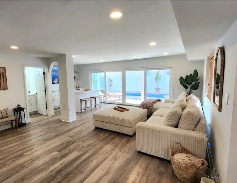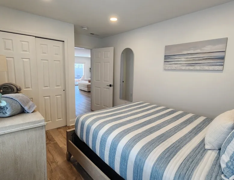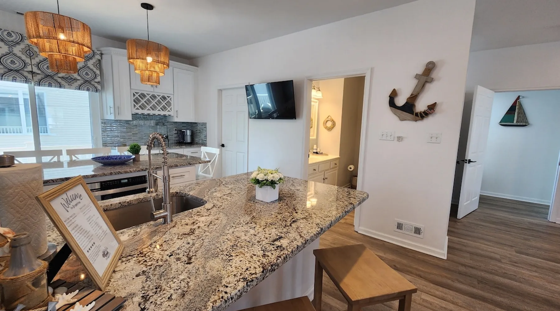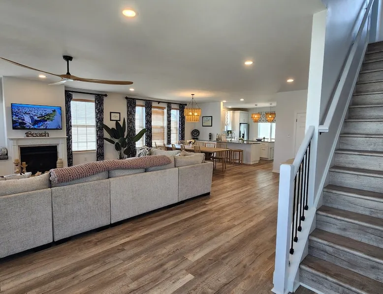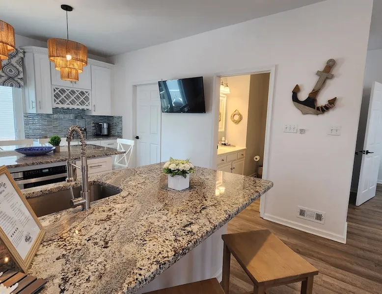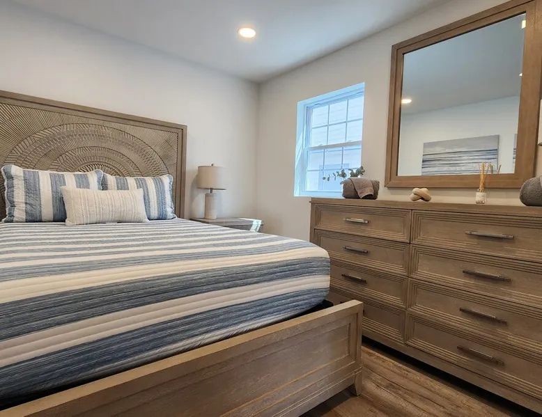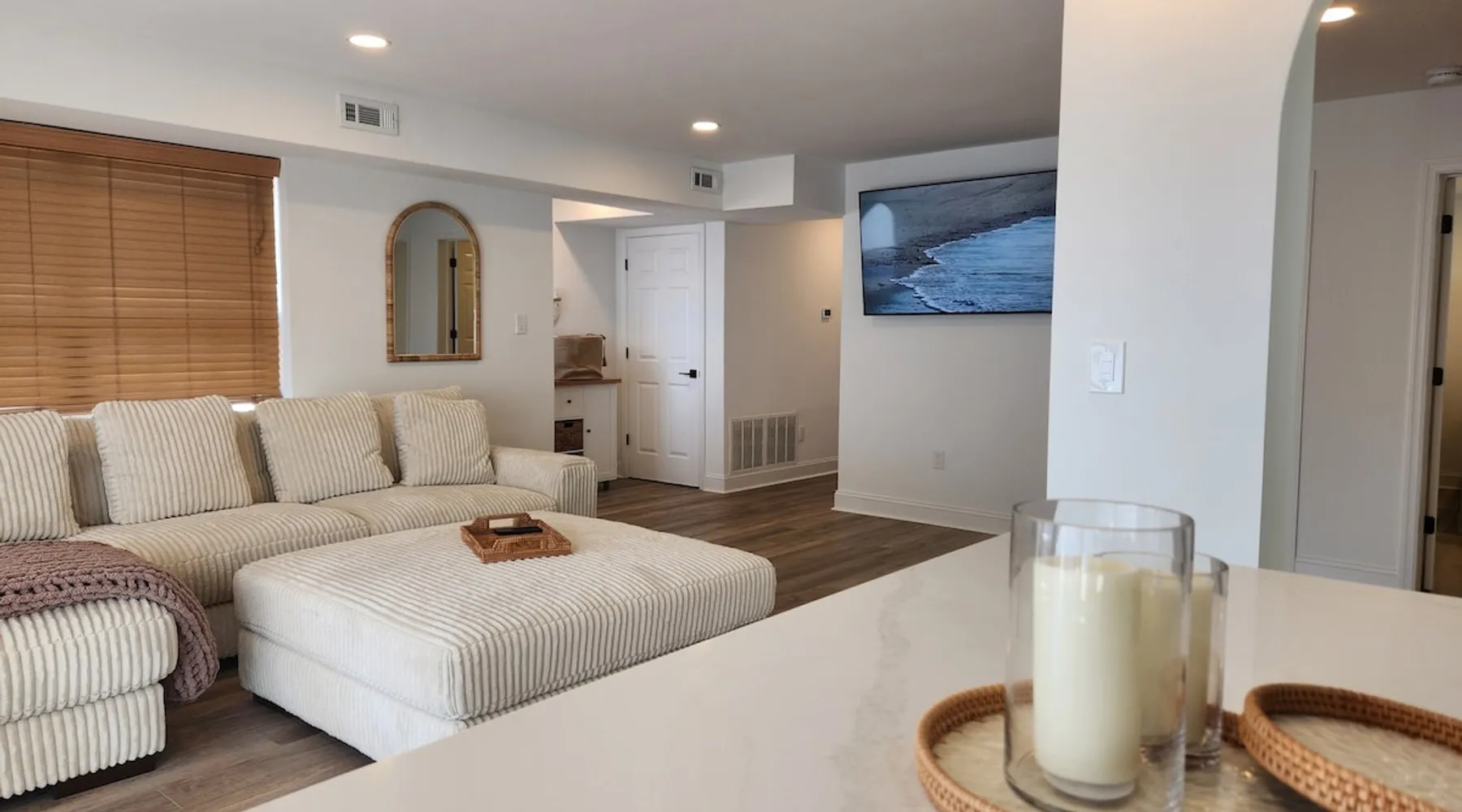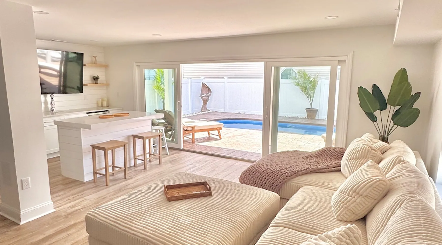 Escape to coastal luxury in this stunning 5BR, 3.5BA Brigantine beach home! Just a short stroll to the sand, enjoy a private in-ground pool, outdoor shower, 4 breezy balconies, and a spacious patio perfect for sunbathing, grilling, or gathering with friends. With spacious living areas, modern amenities, and a 2-car driveway, this home is the ultimate retreat for families or groups seeking the perfect blend of comfort and seaside adventure. Book your stay now & make unforgettable memories! The space Welcome to your dream beach getaway in beautiful Brigantine, NJ! This spacious and stylish home is designed for comfort, relaxation, and fun. Perfect for families or groups looking to unwind by the ocean! You must be 25 or over to book this property. PROPERTY LAYOUT 1ST LEVEL: - 2 bedrooms (1 twin bed with twin trundle and 1 full bed) - 1 newly renovated full bathroom with a stand up shower and double vanity - Indoor lounge area with a wet bar, 2 TV's and comfortable seating overlooking the pool and patio - Access to the pool through beautiful full glass sliders 2ND LEVEL: - Spacious and comfortable living room with a TV and sectional sofa - Dining table with seating for 10 - Full Kitchen with stainless steel appliances, basic kitchenware, dish ware, flatware, coffee maker, kitchen island with seating and a TV - Laundry Room - Half Bathroom 3RD LEVEL: - 3 beautifully appointed bedrooms (which includes the master suite with a king bed, and 3 other full beds) - 1 full bathroom in the hallway accessible by all bedrooms - 1 full bathroom in the master suite BEDROOM DESCRIPTIONS AND SLEEPING ARRANGEMENTS: BEDROOM 1 - King bed w/ en suite full bath, Smart TV, Balcony Access (3rd floor) BEDROOM 2 - Two Full beds, Smart TV, Balcony Access (3rd floor) BEDROOM 3 - Full bed, Smart TV, Balcony Access (3rd floor) BEDROOM 4- Twin bed w/ Twin trundle, Smart TV (1st level) BEDROOM 5- Full bed, Smart TV (1st level) BATHROOM LOCATIONS: -There are 3 full bathrooms- 1 on the lower level, 1 in the master bedroom suite, 1 in the top floor hallway -There is a half bathroom off of the kitchen. OUTDOOR SPACES/BEACH ACCESS: -Back yard patio with seating and a private in-ground pool -The In-ground pool is open from Memorial Day to Labor Day -Children must be monitored at all times. -There is no smoking permitted on the patio or around the pool. -Usage of the pool is at the guests own risk. -Propane Grill- guests are responsible for cleaning the grill after use. There are propane tanks that guests may use, but if they run out guests can refill. -Outdoor shower on the side of the house -4 outdoor balconies provide the perfect setting for morning coffee or evening cocktails -Pool/Beach towels are provided -Beach tags are provided. Any lost/missing beach tags that are not returned will result in a $50 fee per tag. -There are beach chairs, boogie boards, and bikes for the guests to use at their own risk. -5 minute walk to the Beach Access point at 38th Street and Ocean Avenue OTHER AMENITIES: -The home is also equipped wifi, several TV's, beverage fridge, Keurig coffee maker, an iron, ironing board, hair dryer, and much more! -The house has central forced air for heating and cooling with separate thermostats on level 1 and level 3. -There is parking for 2 vehicles in the driveway BOOK WITH US and unlock discounts and special offers exclusive to Cozy Cohost guests. Take advantage of all that the area has to offer and enjoy savings at top local spots including famous restaurants, night clubs, spas, coffee shops, distilleries, breweries, boat tours, bike rentals, mini golf, and more... Guest access PLEASE NOTE: -You must be 25 or over to reserve this property. -The living rooms has a non operational fireplace, it is decorative and cannot be used. -Please be respectful to the neighbors and the surrounding homes. Keep noise down and do not create any disturbances. Do not block entrances, garages or driveways. -Brigantine has a noise ordinance of 10pm-8am. -There are no parties, events or large gatherings permitted. -Please review all house rules, failure to comply can result in cancellation of reservation with no refund. ACCESS & ENTRY: -There is keyless entry. Your host will provide you with the door code approximately one hour prior to check in the day of your trip. -Guests will have access the entire home. Which includes the driveway, private pool and private patio. -This property has stairs. There are stairs to the 2nd and 3rd levels. -Please note that the check in time is 4:00 PM. The check-out time is promptly by 11:00 AM. Failure to check out by this time may result in a $100 fee per hour. We appreciate your cooperation in ensuring a smooth transition for our next guests. Thank you for your understanding! PARKING: -Guests may use the driveway in the front of the home that can fit 2 vehicles. ADDITIONAL PARKING: -You can on street park on the street where available. -Please be courteous to the neighbors when parking, do not block driveways or sidewalks. -Guests are responsible for city street parking compliance; read & follow signage to avoid parking tickets. -We are not responsible for parking tickets due to negligence. MAIL: -Please do not ship items to the property. -If there is something of priority that you need shipped please reach out to us directly for alternative options. -We are not responsible for any items shipped to the property. ENVIRONMENTAL NOTES: -Property located in tourist beach town environment; potential for noise from cars or foot traffic. SECURITY: -The home is protected by exterior ring camera security at the front and back of the property. Other things to note HONESTY & EXPECTATIONS: At "The Brigantine Beach House", we want our guests to have a clear understanding of the distinctions between vacation rentals and hotels. While we diligently maintain our properties, wear and tear are inherent aspects of vacation rentals. Although we address issues promptly, the high volume of guests may result in occa