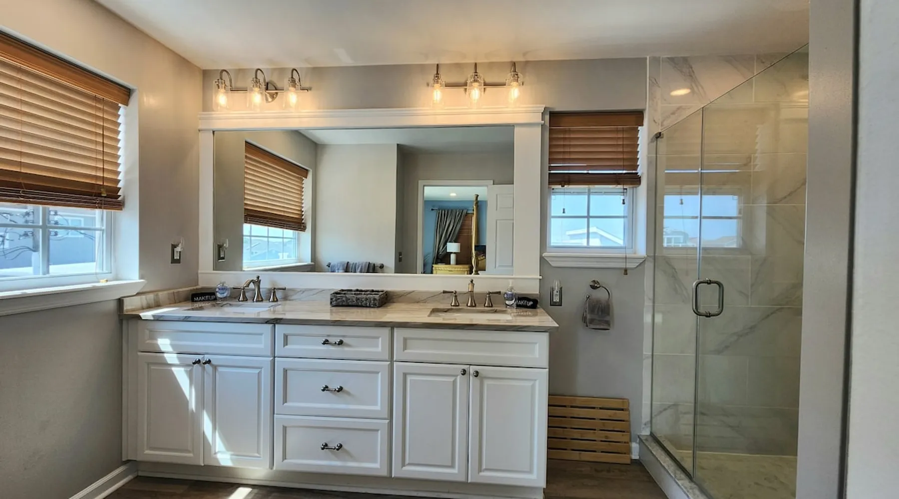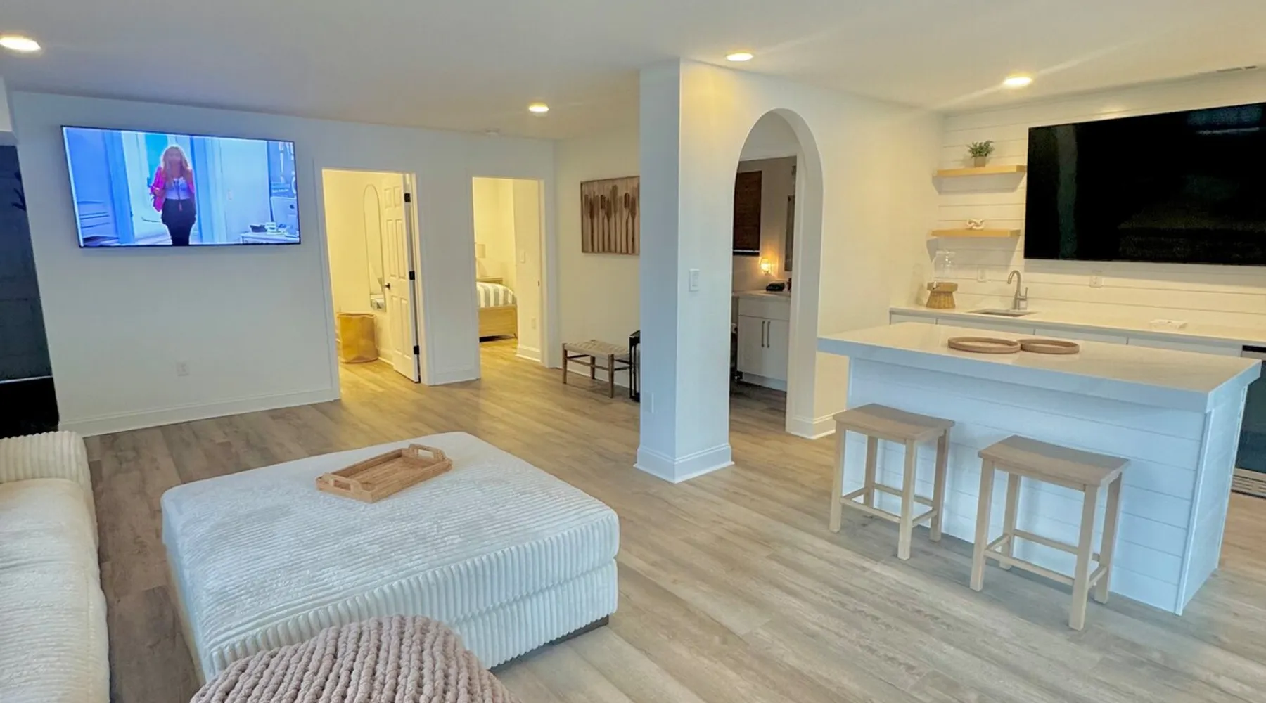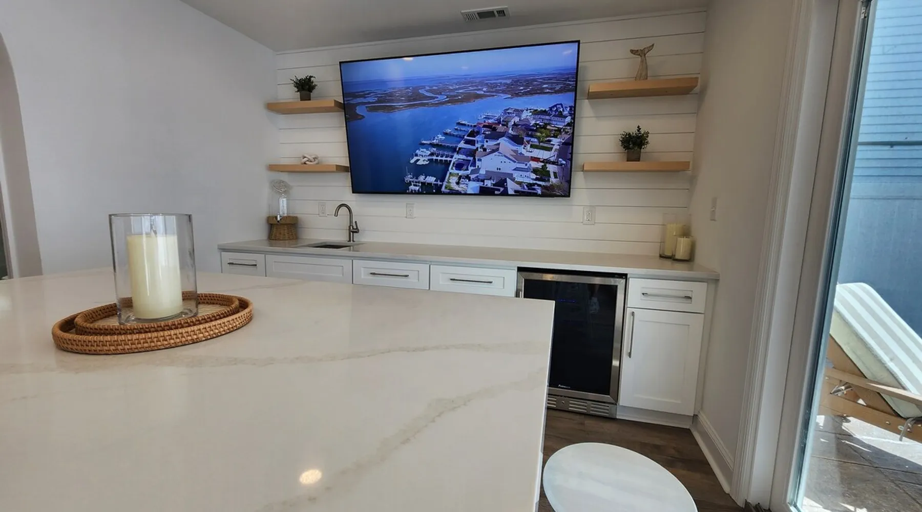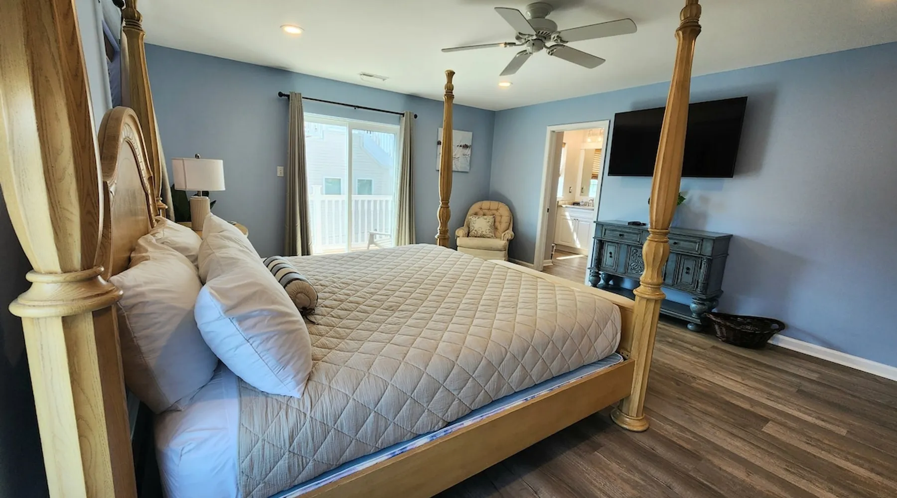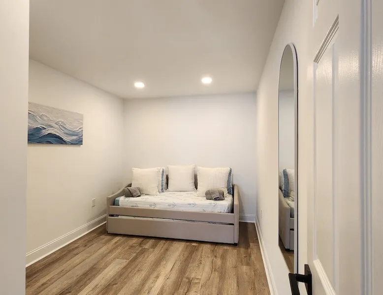 Escape to coastal luxury in this stunning 5BR, 3.5BA Brigantine beach home! Just a short stroll to the sand, enjoy a private in-ground pool, outdoor shower, 4 breezy balconies, and a spacious patio perfect for sunbathing, grilling, or gathering with friends. With spacious living areas, modern amenities, and a 2-car driveway, this home is the ultimate retreat for families or groups seeking the perfect blend of comfort and seaside adventure. Book your stay now & make unforgettable memories! The space Welcome to your dream beach getaway in beautiful Brigantine, NJ! This spacious and stylish home is designed for comfort, relaxation, and fun. Perfect for families or groups looking to unwind by the ocean! You must be 25 or over to book this property. PROPERTY LAYOUT 1ST LEVEL: - 2 bedrooms (1 twin bed with twin trundle and 1 full bed) - 1 newly renovated full bathroom with a stand up shower and double vanity - Indoor lounge area with a wet bar, 2 TV's and comfortable seating overlooking the pool and patio - Access to the pool through beautiful full glass sliders 2ND LEVEL: - Spacious and comfortable living room with a TV and sectional sofa - Dining table with seating for 10 - Full Kitchen with stainless steel appliances, basic kitchenware, dish ware, flatware, coffee maker, kitchen island with seating and a TV - Laundry Room - Half Bathroom 3RD LEVEL: - 3 beautifully appointed bedrooms (which includes the master suite with a king bed, and 3 other full beds) - 1 full bathroom in the hallway accessible by all bedrooms - 1 full bathroom in the master suite BEDROOM DESCRIPTIONS AND SLEEPING ARRANGEMENTS: BEDROOM 1 - King bed w/ en suite full bath, Smart TV, Balcony Access (3rd floor) BEDROOM 2 - Two Full beds, Smart TV, Balcony Access (3rd floor) BEDROOM 3 - Full bed, Smart TV, Balcony Access (3rd floor) BEDROOM 4- Twin bed w/ Twin trundle, Smart TV (1st level) BEDROOM 5- Full bed, Smart TV (1st level) BATHROOM LOCATIONS: -There are 3 full bathrooms- 1 on the lower level, 1 in the master bedroom suite, 1 in the top floor hallway -There is a half bathroom off of the kitchen. OUTDOOR SPACES/BEACH ACCESS: -Back yard patio with seating and a private in-ground pool -The In-ground pool is open from Memorial Day to Labor Day -Children must be monitored at all times. -There is no smoking permitted on the patio or around the pool. -Usage of the pool is at the guests own risk. -Propane Grill- guests are responsible for cleaning the grill after use. There are propane tanks that guests may use, but if they run out guests can refill. -Outdoor shower on the side of the house -4 outdoor balconies provide the perfect setting for morning coffee or evening cocktails -Pool/Beach towels are provided -Beach tags are provided. Any lost/missing beach tags that are not returned will result in a $50 fee per tag. -There are beach chairs, boogie boards, and bikes for the guests to use at their own risk. -5 minute walk to the Beach Access point at 38th Street and Ocean Avenue OTHER AMENITIES: -The home is also equipped wifi, several TV's, beverage fridge, Keurig coffee maker, an iron, ironing board, hair dryer, and much more! -The house has central forced air for heating and cooling with separate thermostats on level 1 and level 3. -There is parking for 2 vehicles in the driveway BOOK WITH US and unlock discounts and special offers exclusive to Cozy Cohost guests. Take advantage of all that the area has to offer and enjoy savings at top local spots including famous restaurants, night clubs, spas, coffee shops, distilleries, breweries, boat tours, bike rentals, mini golf, and more... Guest access PLEASE NOTE: -You must be 25 or over to reserve this property. -The living rooms has a non operational fireplace, it is decorative and cannot be used. -Please be respectful to the neighbors and the surrounding homes. Keep noise down and do not create any disturbances. Do not block entrances, garages or driveways. -Brigantine has a noise ordinance of 10pm-8am. -There are no parties, events or large gatherings permitted. -Please review all house rules, failure to comply can result in cancellation of reservation with no refund. ACCESS & ENTRY: -There is keyless entry. Your host will provide you with the door code approximately one hour prior to check in the day of your trip. -Guests will have access the entire home. Which includes the driveway, private pool and private patio. -This property has stairs. There are stairs to the 2nd and 3rd levels. -Please note that the check in time is 4:00 PM. The check-out time is promptly by 11:00 AM. Failure to check out by this time may result in a $100 fee per hour. We appreciate your cooperation in ensuring a smooth transition for our next guests. Thank you for your understanding! PARKING: -Guests may use the driveway in the front of the home that can fit 2 vehicles. ADDITIONAL PARKING: -You can on street park on the street where available. -Please be courteous to the neighbors when parking, do not block driveways or sidewalks. -Guests are responsible for city street parking compliance; read & follow signage to avoid parking tickets. -We are not responsible for parking tickets due to negligence. MAIL: -Please do not ship items to the property. -If there is something of priority that you need shipped please reach out to us directly for alternative options. -We are not responsible for any items shipped to the property. ENVIRONMENTAL NOTES: -Property located in tourist beach town environment; potential for noise from cars or foot traffic. SECURITY: -The home is protected by exterior ring camera security at the front and back of the property. Other things to note HONESTY & EXPECTATIONS: At "The Brigantine Beach House", we want our guests to have a clear understanding of the distinctions between vacation rentals and hotels. While we diligently maintain our properties, wear and tear are inherent aspects of vacation rentals. Although we address issues promptly, the high volume of guests may result in occa