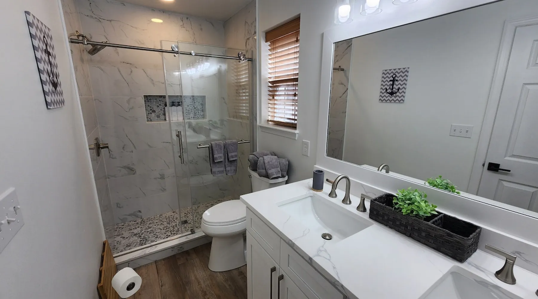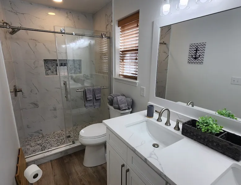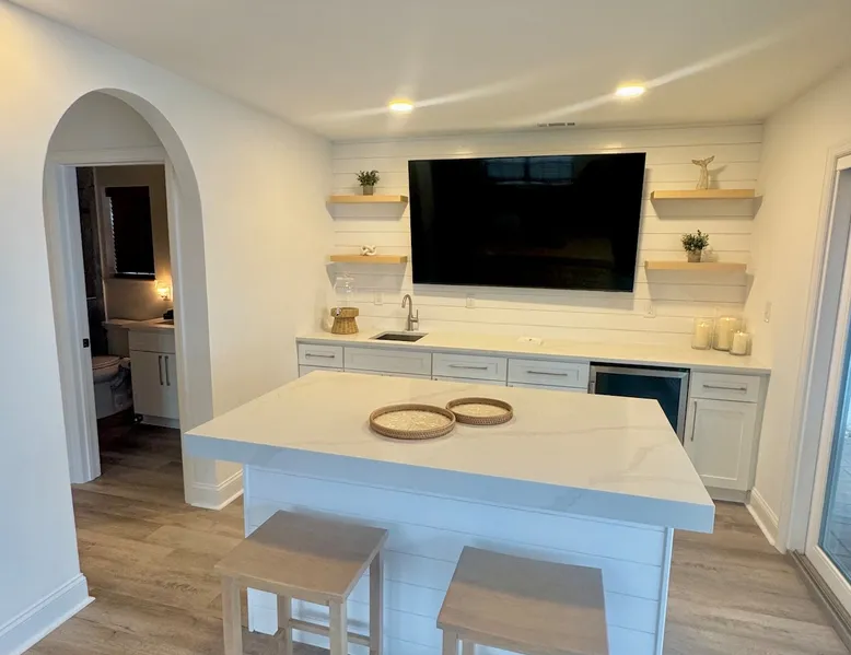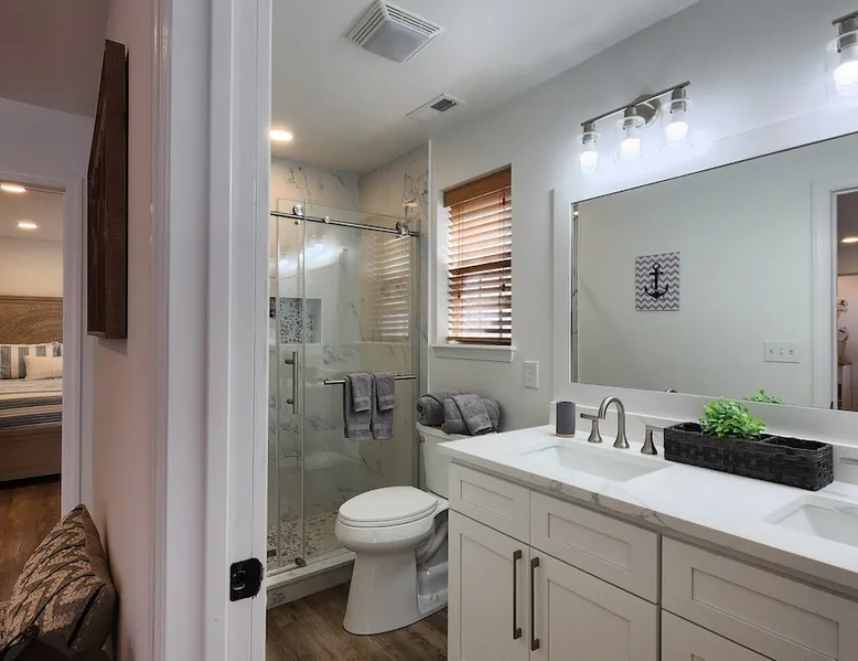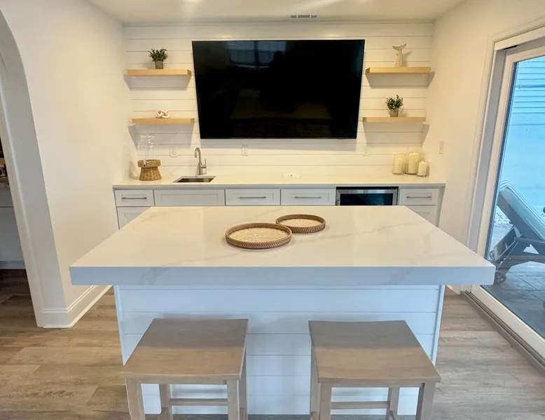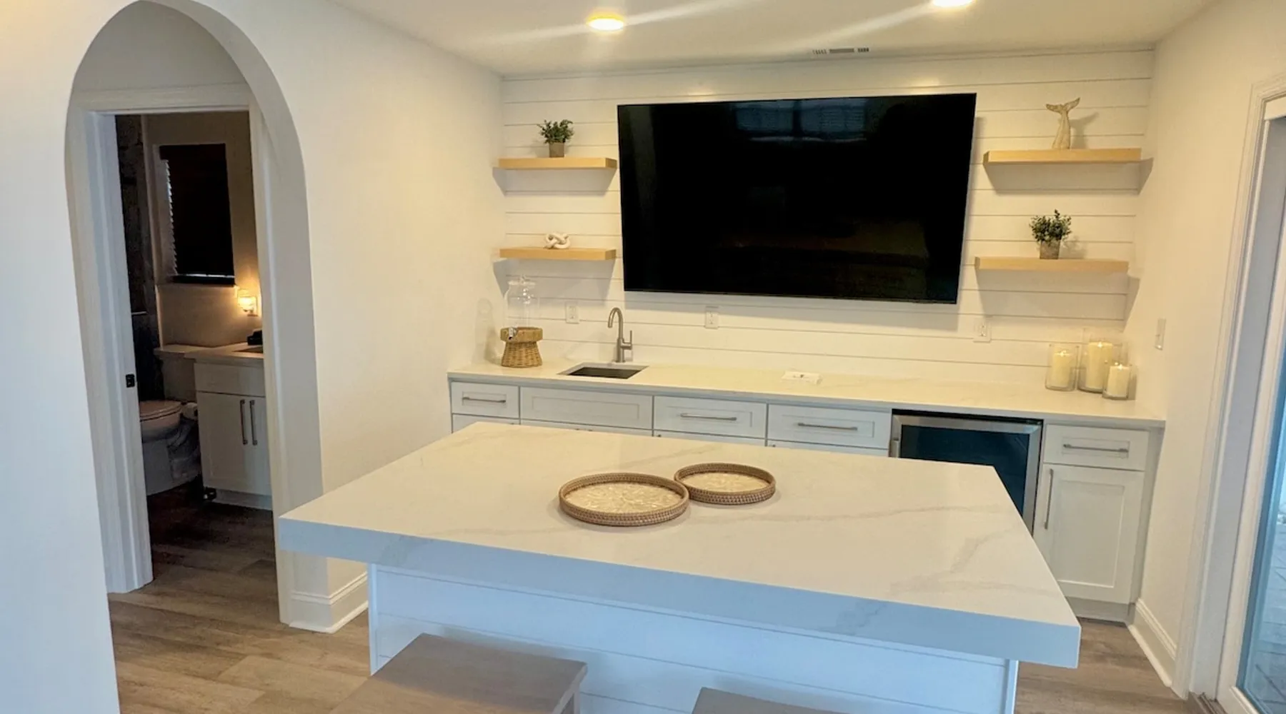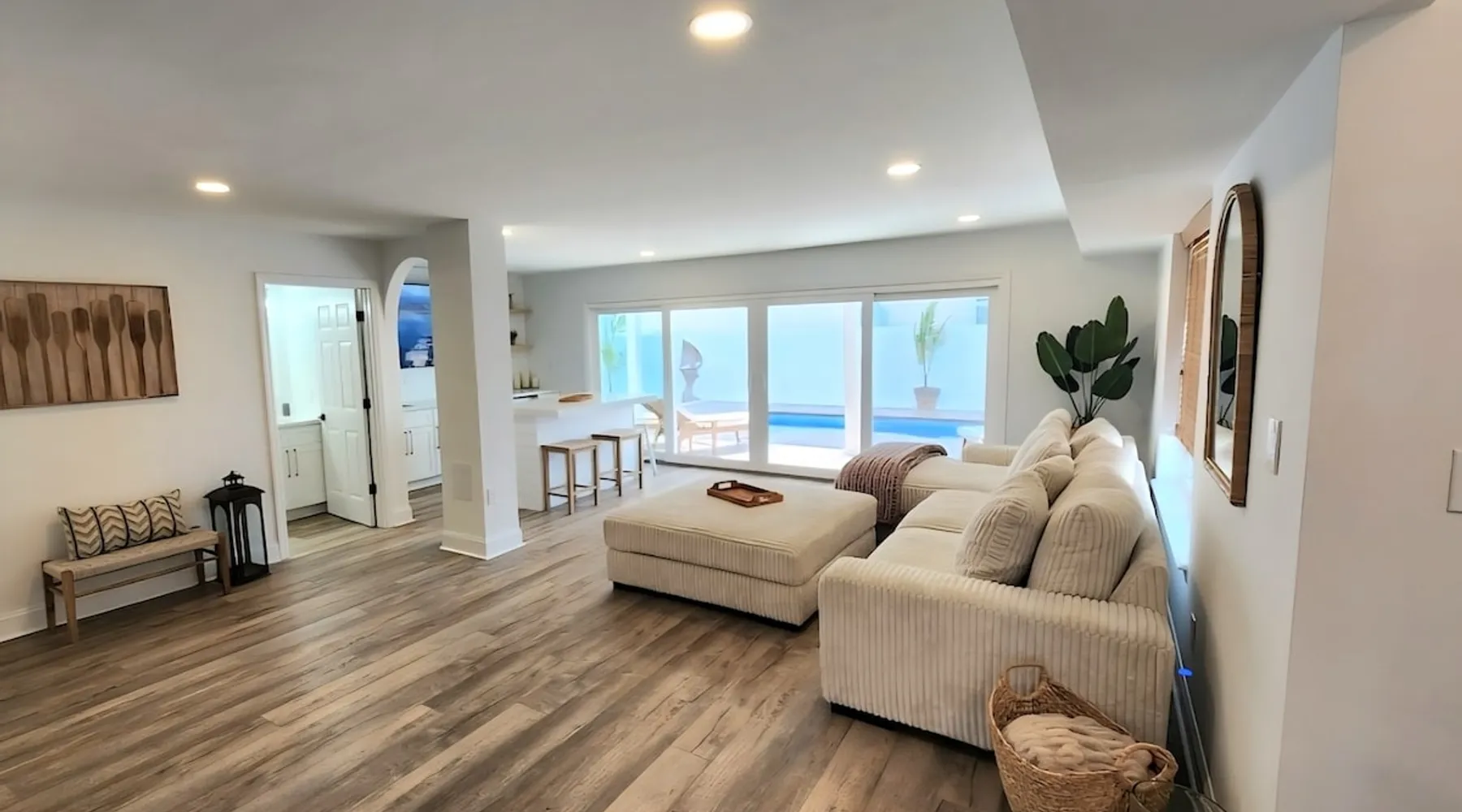 Escape to coastal luxury in this stunning 5BR, 3.5BA Brigantine beach home! Just a short stroll to the sand, enjoy a private in-ground pool, outdoor shower, 4 breezy balconies, and a spacious patio perfect for sunbathing, grilling, or gathering with friends. With spacious living areas, modern amenities, and a 2-car driveway, this home is the ultimate retreat for families or groups seeking the perfect blend of comfort and seaside adventure. Book your stay now & make unforgettable memories! The space Welcome to your dream beach getaway in beautiful Brigantine, NJ! This spacious and stylish home is designed for comfort, relaxation, and fun. Perfect for families or groups looking to unwind by the ocean! You must be 25 or over to book this property. PROPERTY LAYOUT 1ST LEVEL: - 2 bedrooms (1 twin bed with twin trundle and 1 full bed) - 1 newly renovated full bathroom with a stand up shower and double vanity - Indoor lounge area with a wet bar, 2 TV's and comfortable seating overlooking the pool and patio - Access to the pool through beautiful full glass sliders 2ND LEVEL: - Spacious and comfortable living room with a TV and sectional sofa - Dining table with seating for 10 - Full Kitchen with stainless steel appliances, basic kitchenware, dish ware, flatware, coffee maker, kitchen island with seating and a TV - Laundry Room - Half Bathroom 3RD LEVEL: - 3 beautifully appointed bedrooms (which includes the master suite with a king bed, and 3 other full beds) - 1 full bathroom in the hallway accessible by all bedrooms - 1 full bathroom in the master suite BEDROOM DESCRIPTIONS AND SLEEPING ARRANGEMENTS: BEDROOM 1 - King bed w/ en suite full bath, Smart TV, Balcony Access (3rd floor) BEDROOM 2 - Two Full beds, Smart TV, Balcony Access (3rd floor) BEDROOM 3 - Full bed, Smart TV, Balcony Access (3rd floor) BEDROOM 4- Twin bed w/ Twin trundle, Smart TV (1st level) BEDROOM 5- Full bed, Smart TV (1st level) BATHROOM LOCATIONS: -There are 3 full bathrooms- 1 on the lower level, 1 in the master bedroom suite, 1 in the top floor hallway -There is a half bathroom off of the kitchen. OUTDOOR SPACES/BEACH ACCESS: -Back yard patio with seating and a private in-ground pool -The In-ground pool is open from Memorial Day to Labor Day -Children must be monitored at all times. -There is no smoking permitted on the patio or around the pool. -Usage of the pool is at the guests own risk. -Propane Grill- guests are responsible for cleaning the grill after use. There are propane tanks that guests may use, but if they run out guests can refill. -Outdoor shower on the side of the house -4 outdoor balconies provide the perfect setting for morning coffee or evening cocktails -Pool/Beach towels are provided -Beach tags are provided. Any lost/missing beach tags that are not returned will result in a $50 fee per tag. -There are beach chairs, boogie boards, and bikes for the guests to use at their own risk. -5 minute walk to the Beach Access point at 38th Street and Ocean Avenue OTHER AMENITIES: -The home is also equipped wifi, several TV's, beverage fridge, Keurig coffee maker, an iron, ironing board, hair dryer, and much more! -The house has central forced air for heating and cooling with separate thermostats on level 1 and level 3. -There is parking for 2 vehicles in the driveway BOOK WITH US and unlock discounts and special offers exclusive to Cozy Cohost guests. Take advantage of all that the area has to offer and enjoy savings at top local spots including famous restaurants, night clubs, spas, coffee shops, distilleries, breweries, boat tours, bike rentals, mini golf, and more... Guest access PLEASE NOTE: -You must be 25 or over to reserve this property. -The living rooms has a non operational fireplace, it is decorative and cannot be used. -Please be respectful to the neighbors and the surrounding homes. Keep noise down and do not create any disturbances. Do not block entrances, garages or driveways. -Brigantine has a noise ordinance of 10pm-8am. -There are no parties, events or large gatherings permitted. -Please review all house rules, failure to comply can result in cancellation of reservation with no refund. ACCESS & ENTRY: -There is keyless entry. Your host will provide you with the door code approximately one hour prior to check in the day of your trip. -Guests will have access the entire home. Which includes the driveway, private pool and private patio. -This property has stairs. There are stairs to the 2nd and 3rd levels. -Please note that the check in time is 4:00 PM. The check-out time is promptly by 11:00 AM. Failure to check out by this time may result in a $100 fee per hour. We appreciate your cooperation in ensuring a smooth transition for our next guests. Thank you for your understanding! PARKING: -Guests may use the driveway in the front of the home that can fit 2 vehicles. ADDITIONAL PARKING: -You can on street park on the street where available. -Please be courteous to the neighbors when parking, do not block driveways or sidewalks. -Guests are responsible for city street parking compliance; read & follow signage to avoid parking tickets. -We are not responsible for parking tickets due to negligence. MAIL: -Please do not ship items to the property. -If there is something of priority that you need shipped please reach out to us directly for alternative options. -We are not responsible for any items shipped to the property. ENVIRONMENTAL NOTES: -Property located in tourist beach town environment; potential for noise from cars or foot traffic. SECURITY: -The home is protected by exterior ring camera security at the front and back of the property. Other things to note HONESTY & EXPECTATIONS: At "The Brigantine Beach House", we want our guests to have a clear understanding of the distinctions between vacation rentals and hotels. While we diligently maintain our properties, wear and tear are inherent aspects of vacation rentals. Although we address issues promptly, the high volume of guests may result in occa