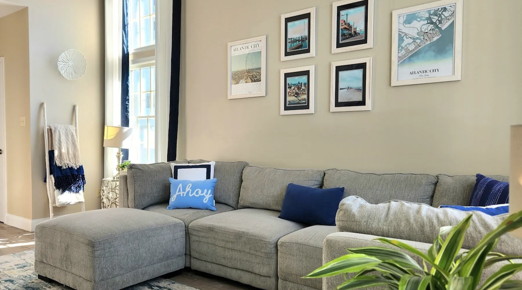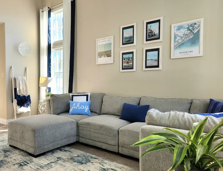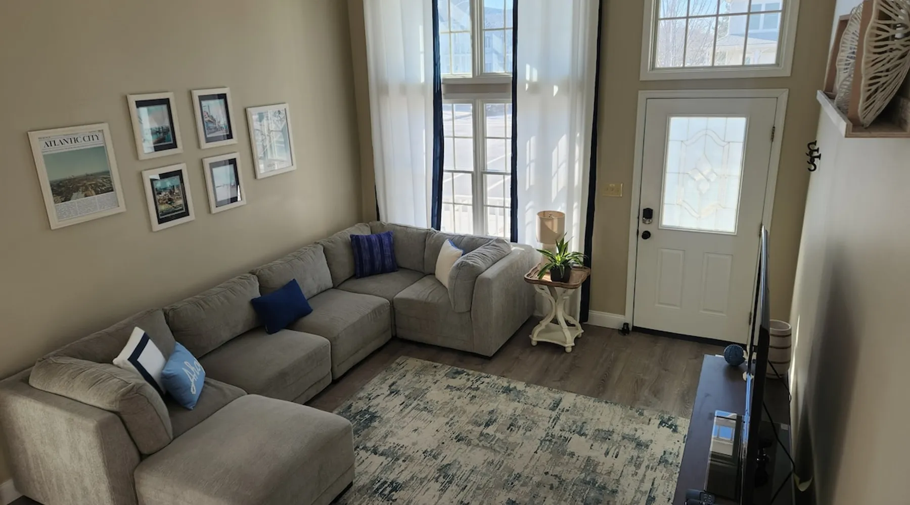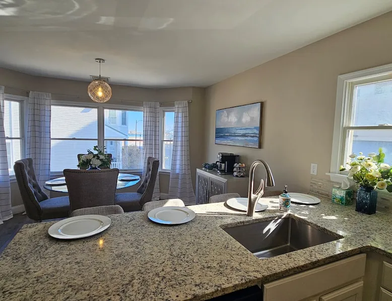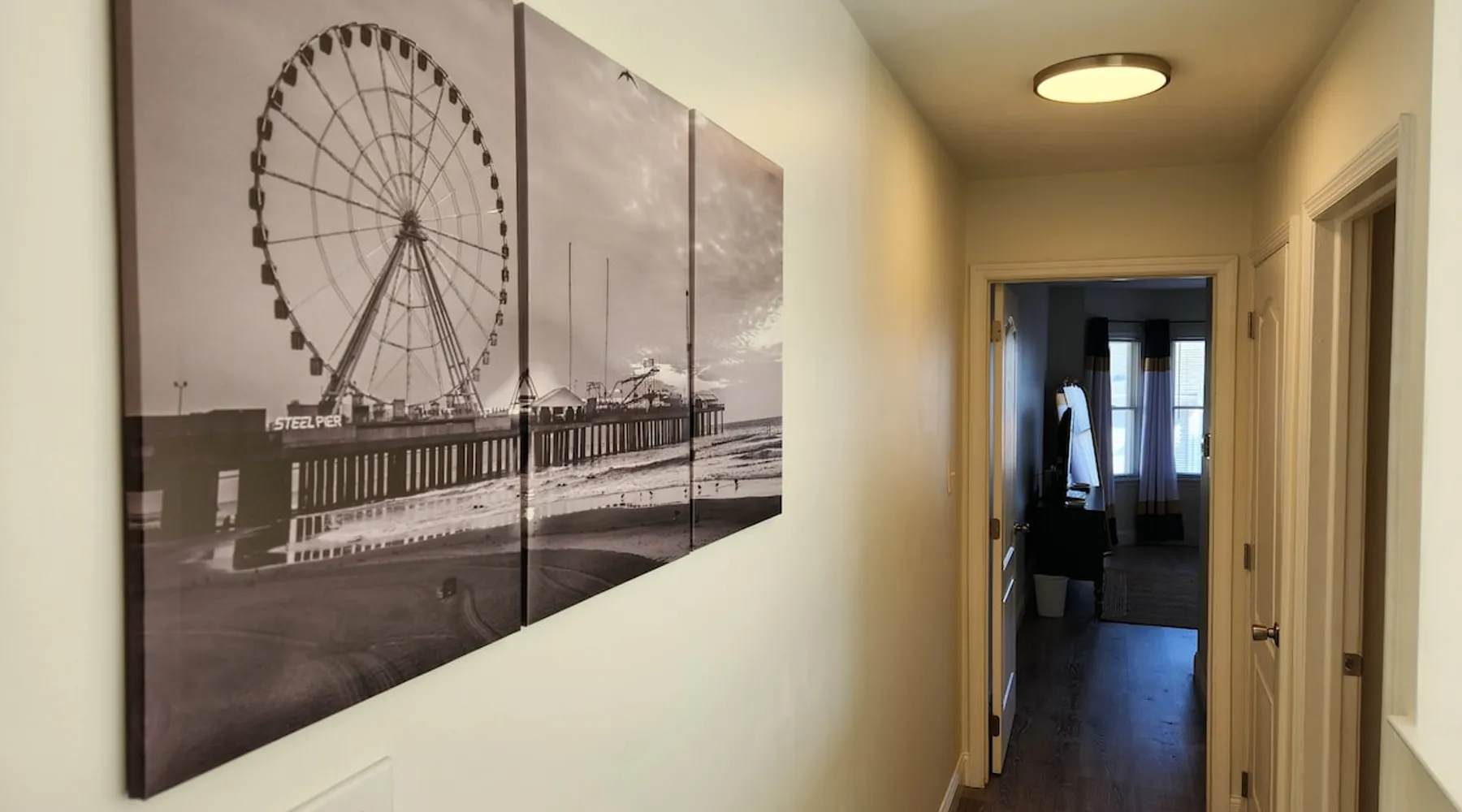 Located in the Inlet area of Atlantic City, this home is a short walk to the boardwalk & near Caspian Avenue Beach! Close to Gardner's Basin, and just minutes to all AC has to offer! Enjoy this tasteful, warm & inviting home away from home, and breathe in the salty ocean air from the front porch. This 3 bedroom, 2.5 bath home has a driveway, great amenities and will provide you with everything you need for a stay full of comfort, peace, sun and pleasure! The space Located in the Inlet neighborhood of Atlantic City, a very short walk to the boardwalk and inlet beach which overlooks the nearing town of Brigantine, close to the beach, a few blocks from the Historic Gardner’s Basin, North Beach Mini Golf, the Absecon Lighthouse and just a few minute drive to the the casinos and all the action that Atlantic City has to offer! The home has been freshly designed with tasteful décor to make you really set into a relaxing beach “getaway mode”. With beautiful details and an array of natural light, this space is a perfect location for a family or group to soak up all the best that Atlantic City has to offer. LIVING ROOM: The main level has a great size living room with a large smart TV (There is no cable for the TV's, only streaming apps), a comfortable sectional couch and an arm chair. Included in the main living space is a half bathroom. KITCHEN: The kitchen has all the appliances and amenities needed to prepare a meal. There is a dining table and counter bar stools for additional seating. There is a laundry room in the hallway leading to the kitchen with a washer and dryer. SLEEPING ARRANGEMENTS: -The top floor has 3 bedrooms and 2 full baths. -Each bedroom is tastefully designed and includes clothing storage closets/dresser and cozy bed linens. -Each bedroom has a Smart TV which has streaming apps (no cable) for viewing pleasure. -There is a queen air mattress for additional sleeping. BEDROOM 1- 1 King Sized bed and a Smart TV, ensuite full bathroom BEDROOM 2 - 1 Queen Sized bed and a Smart TV. BEDROOM 3- 1 Queen Sized bed, a Twin futon, and a Smart TV. BATHROOMS: - 1 Half Bath off of the Living Room - 1 Full Bath in the upstairs Hallway with tub/shower - 1 Full Bath in the Master Bedroom ensuite with stand up shower AMENITIES: The home is also equipped with Wifi, a combo drip/keurig coffee machine, board games, an iron and ironing board, a hair dryer, an outdoor shower and much more! BOOK WITH US and unlock discounts and special offers exclusive to Cozy Cohost guests. Take advantage of all that Atlantic City has to offer and enjoy savings at top local spots including famous restaurants, night clubs, spas, coffee shops, distilleries, breweries, boat tours, bike rentals, mini golf, and more... Guest access ACCESS & ENTRY: -Guests have access to the entire home during their stay. -This is an attached property, so there is another attached residence to the left. -Please note that there are stairs to enter the home in the front, stairs to enter from the garage, stairs to the second level kitchen/bathroom and stairs to the top floor bedrooms. -Please be respectful to the neighbors and the surrounding homes and businesses. -Please note that check-out time is promptly at 11:00 AM. Failure to check out by this time may result in a $100 fee per hour. We appreciate your cooperation in ensuring a smooth transition for our next guests. Thank you for your understanding! KEYLESS ENTRY: -Your host will provide you with the door code approximately one hour prior to check in the day of your trip. PARKING: -There is a driveway at this property for 1 vehicle at the back of the home. -There is also free street parking in front of the home where available. -The garage cannot be used for parking, and you can not park on the street in the back of the house. -Please be advised that since the property is close to the beach, there may be a lot of beachgoers on the block and within the vicinity at times. -Guests are responsible for city street parking compliance; read & follow signage to avoid parking tickets. -We are not responsible for parking tickets due to negligence. MAIL: -Do not send packages to the property via mail as we do not have access to the locked street mailboxes for the property. -If there is something of priority that you need shipped please reach out to us directly for alternative options. -We are not responsible for any items shipped to the property. ENVIRONMENTAL NOTES: -Property located in a city environment; potential for noise from cars or foot traffic. SECURITY: -The home is protected by exterior ring camera security. Other things to note HONESTY & EXPECTATIONS: At "Harbor Grace", we want our guests to have a clear understanding of the distinctions between vacation rentals and hotels. While we diligently maintain our properties, wear and tear are inherent aspects of vacation rentals. Although we address issues promptly, the high volume of guests may result in occasional delays between stays. Any significant damage or serious concerns are prioritized and resolved before a guest's check-in, provided we are made aware of the issue. CLEANING: Our dedicated cleaning team meticulously sanitizes and cleans each home. Unlike standard hotel rooms, homes entail a more detailed cleaning process due to their larger size. Despite our team's efforts to ensure optimal cleanliness, minor oversights may occur. For substantial errors, we are committed to rectifying the situation promptly. While we take pride in our cleaning standards, we ask for understanding that, as in any human endeavor, perfection is not always attainable, especially when minor details have no direct impact on your stay. HOUSEHOLD ITEMS: As private residences, it's important to recognize that household items may break or require repairs during your stay. While we understand the inconvenience this may pose to our guests, it's equally disruptive for us. Appliances such as water tanks, HVAC systems, dishwashers, and refrigerators may exper