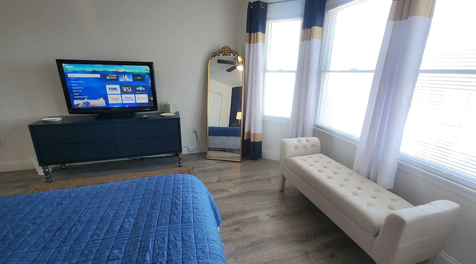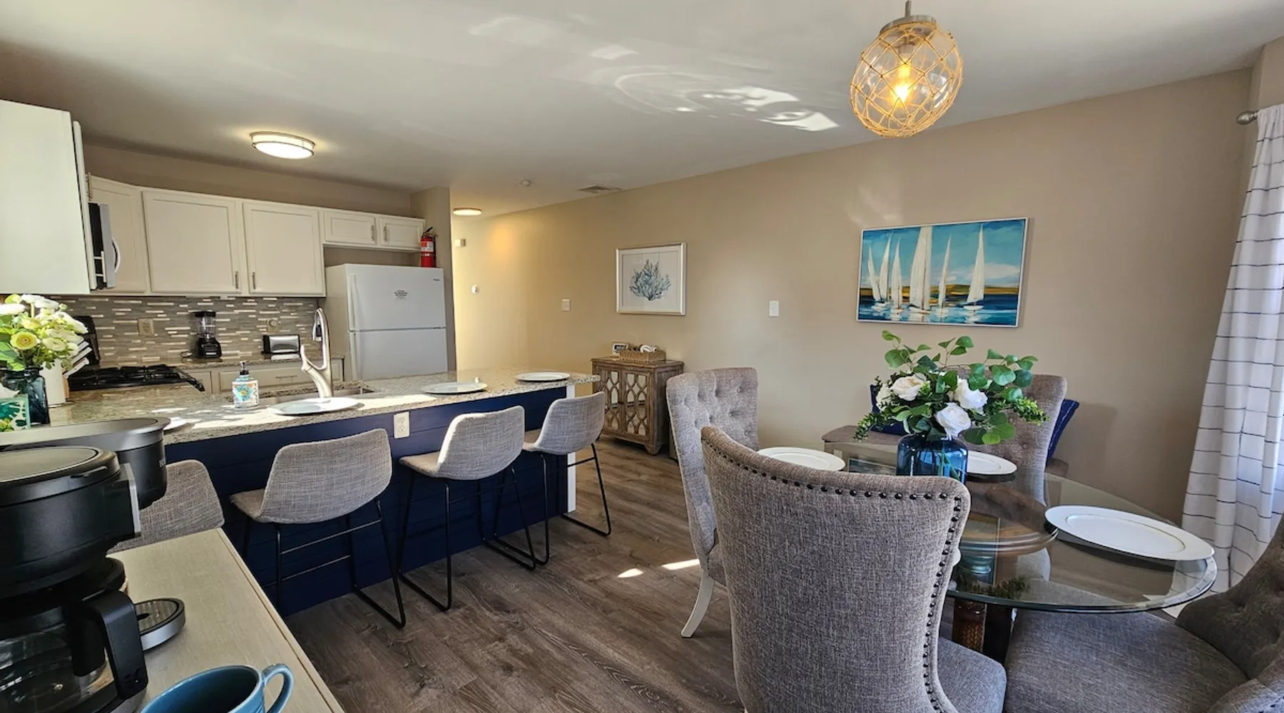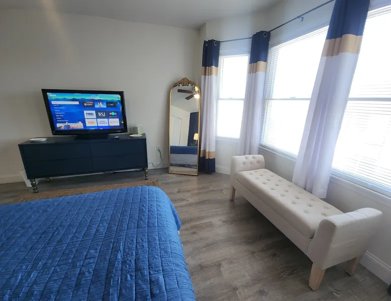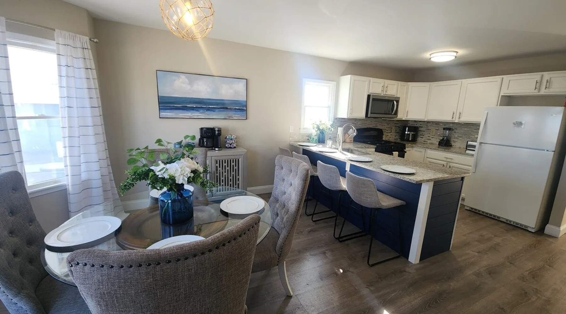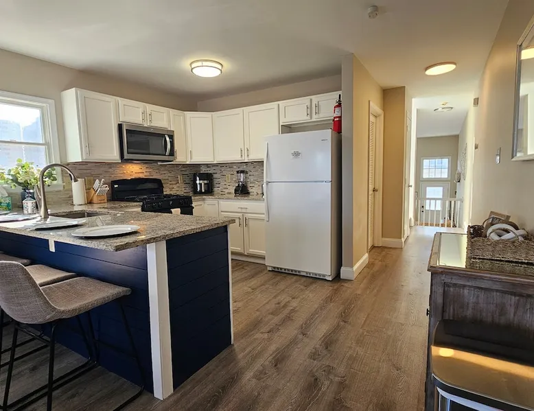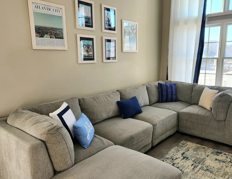 Located in the Inlet area of Atlantic City, this home is a short walk to the boardwalk & near Caspian Avenue Beach! Close to Gardner's Basin, and just minutes to all AC has to offer! Enjoy this tasteful, warm & inviting home away from home, and breathe in the salty ocean air from the front porch. This 3 bedroom, 2.5 bath home has a driveway, great amenities and will provide you with everything you need for a stay full of comfort, peace, sun and pleasure! The space Located in the Inlet neighborhood of Atlantic City, a very short walk to the boardwalk and inlet beach which overlooks the nearing town of Brigantine, close to the beach, a few blocks from the Historic Gardner’s Basin, North Beach Mini Golf, the Absecon Lighthouse and just a few minute drive to the the casinos and all the action that Atlantic City has to offer! The home has been freshly designed with tasteful décor to make you really set into a relaxing beach “getaway mode”. With beautiful details and an array of natural light, this space is a perfect location for a family or group to soak up all the best that Atlantic City has to offer. LIVING ROOM: The main level has a great size living room with a large smart TV (There is no cable for the TV's, only streaming apps), a comfortable sectional couch and an arm chair. Included in the main living space is a half bathroom. KITCHEN: The kitchen has all the appliances and amenities needed to prepare a meal. There is a dining table and counter bar stools for additional seating. There is a laundry room in the hallway leading to the kitchen with a washer and dryer. SLEEPING ARRANGEMENTS: -The top floor has 3 bedrooms and 2 full baths. -Each bedroom is tastefully designed and includes clothing storage closets/dresser and cozy bed linens. -Each bedroom has a Smart TV which has streaming apps (no cable) for viewing pleasure. -There is a queen air mattress for additional sleeping. BEDROOM 1- 1 King Sized bed and a Smart TV, ensuite full bathroom BEDROOM 2 - 1 Queen Sized bed and a Smart TV. BEDROOM 3- 1 Queen Sized bed, a Twin futon, and a Smart TV. BATHROOMS: - 1 Half Bath off of the Living Room - 1 Full Bath in the upstairs Hallway with tub/shower - 1 Full Bath in the Master Bedroom ensuite with stand up shower AMENITIES: The home is also equipped with Wifi, a combo drip/keurig coffee machine, board games, an iron and ironing board, a hair dryer, an outdoor shower and much more! BOOK WITH US and unlock discounts and special offers exclusive to Cozy Cohost guests. Take advantage of all that Atlantic City has to offer and enjoy savings at top local spots including famous restaurants, night clubs, spas, coffee shops, distilleries, breweries, boat tours, bike rentals, mini golf, and more... Guest access ACCESS & ENTRY: -Guests have access to the entire home during their stay. -This is an attached property, so there is another attached residence to the left. -Please note that there are stairs to enter the home in the front, stairs to enter from the garage, stairs to the second level kitchen/bathroom and stairs to the top floor bedrooms. -Please be respectful to the neighbors and the surrounding homes and businesses. -Please note that check-out time is promptly at 11:00 AM. Failure to check out by this time may result in a $100 fee per hour. We appreciate your cooperation in ensuring a smooth transition for our next guests. Thank you for your understanding! KEYLESS ENTRY: -Your host will provide you with the door code approximately one hour prior to check in the day of your trip. PARKING: -There is a driveway at this property for 1 vehicle at the back of the home. -There is also free street parking in front of the home where available. -The garage cannot be used for parking, and you can not park on the street in the back of the house. -Please be advised that since the property is close to the beach, there may be a lot of beachgoers on the block and within the vicinity at times. -Guests are responsible for city street parking compliance; read & follow signage to avoid parking tickets. -We are not responsible for parking tickets due to negligence. MAIL: -Do not send packages to the property via mail as we do not have access to the locked street mailboxes for the property. -If there is something of priority that you need shipped please reach out to us directly for alternative options. -We are not responsible for any items shipped to the property. ENVIRONMENTAL NOTES: -Property located in a city environment; potential for noise from cars or foot traffic. SECURITY: -The home is protected by exterior ring camera security. Other things to note HONESTY & EXPECTATIONS: At "Harbor Grace", we want our guests to have a clear understanding of the distinctions between vacation rentals and hotels. While we diligently maintain our properties, wear and tear are inherent aspects of vacation rentals. Although we address issues promptly, the high volume of guests may result in occasional delays between stays. Any significant damage or serious concerns are prioritized and resolved before a guest's check-in, provided we are made aware of the issue. CLEANING: Our dedicated cleaning team meticulously sanitizes and cleans each home. Unlike standard hotel rooms, homes entail a more detailed cleaning process due to their larger size. Despite our team's efforts to ensure optimal cleanliness, minor oversights may occur. For substantial errors, we are committed to rectifying the situation promptly. While we take pride in our cleaning standards, we ask for understanding that, as in any human endeavor, perfection is not always attainable, especially when minor details have no direct impact on your stay. HOUSEHOLD ITEMS: As private residences, it's important to recognize that household items may break or require repairs during your stay. While we understand the inconvenience this may pose to our guests, it's equally disruptive for us. Appliances such as water tanks, HVAC systems, dishwashers, and refrigerators may exper