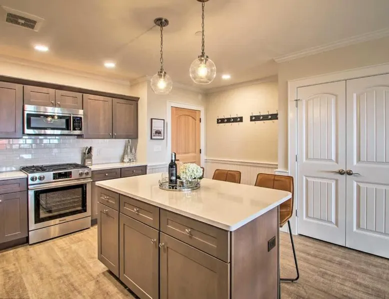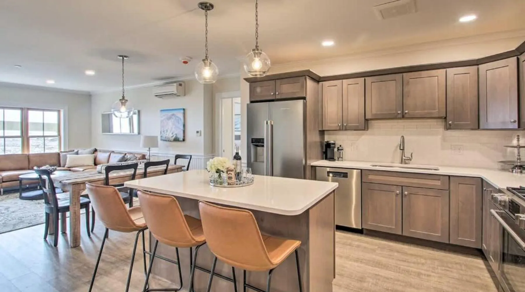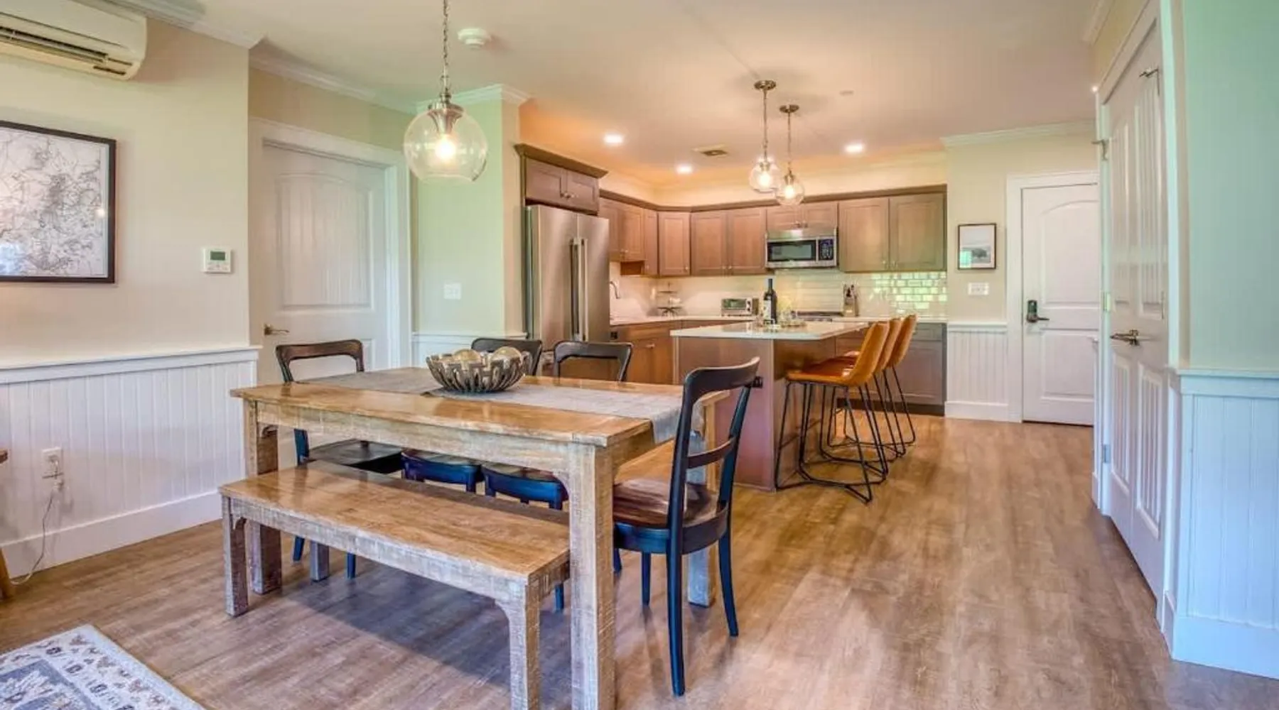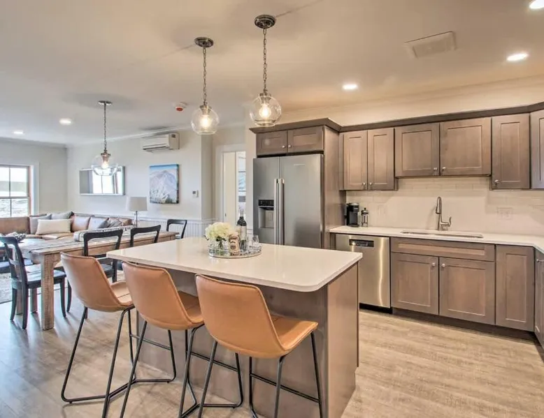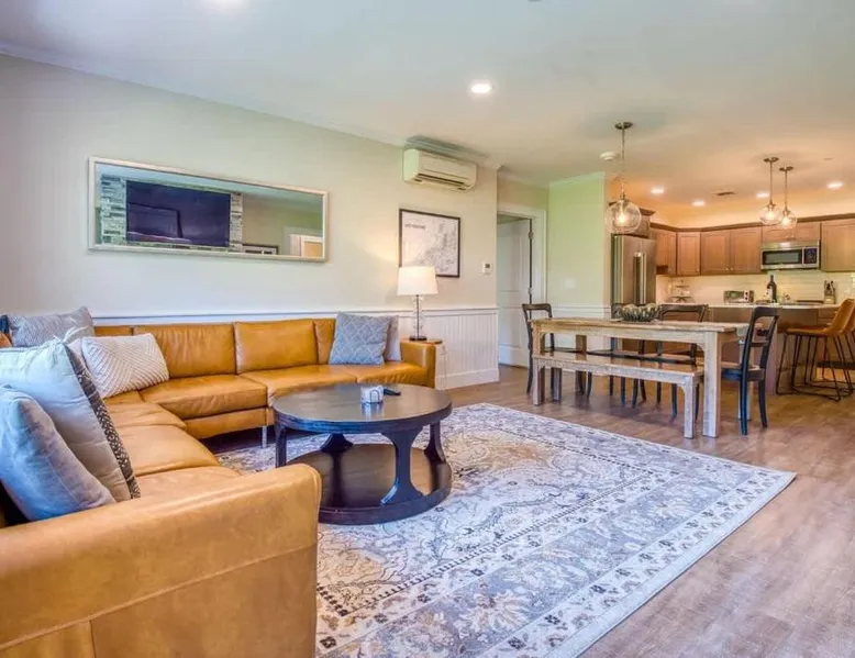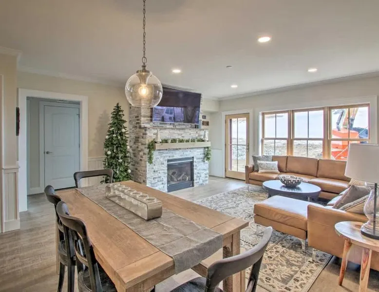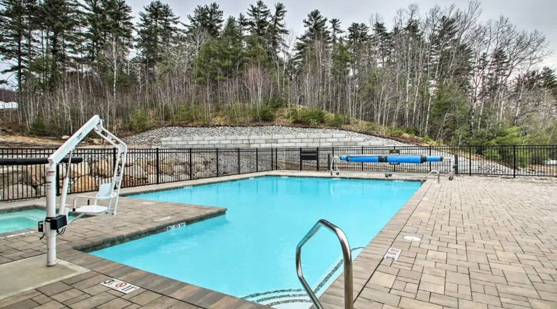 Spacious Accommodations: True Upscale Ski In & Out Condo with Pool & Hot Tub in Conway offers a spacious holiday home with three bedrooms and two bathrooms. The property features a fully equipped kitchen, dining area, and comfortable living spaces. Leisure Facilities: Guests can enjoy an outdoor swimming pool, hot tub, fitness center, and a beautifully maintained garden. Free WiFi is available throughout the property, ensuring connectivity for all visitors. Convenient Amenities: The condo includes air-conditioning, a washing machine, and a fully equipped kitchen. Additional amenities include a fireplace, barbecue, and a work desk, catering to all guest needs. Local Attractions: Mount Meander is a 19-minute walk away, while Conway Scenic Railroad lies 1.2 mi from the property. Other nearby attractions include Story Land Amusement Park (6.8 mi) and White Mountain National Forest (13 mi). Winter sports enthusiasts will appreciate the nearby winter sports opportunities. This apartment's special features are the hot tub and the fireplace. Guests will find a stovetop, a refrigerator, a dishwasher and kitchenware in the well-equipped kitchen. The apartment also has a barbecue. The spacious air-conditioned apartment offers a TV with streaming services, a washing machine, a private entrance, a tea and coffee maker as well as mountain views. The unit offers 6 beds and 2 futons.