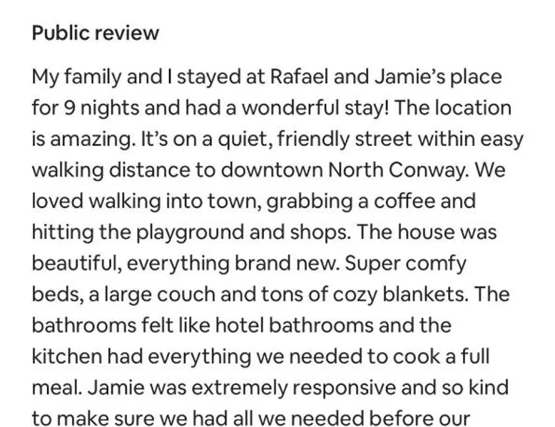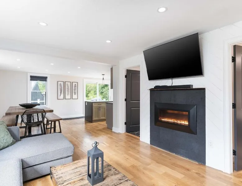 Spacious Holiday Home in Conway: All New Retreat Walk to Village, Fire Pit, WiFi offers a spacious, recently renovated holiday home in Conway. Guests enjoy a sun terrace, garden, and free WiFi throughout the property. Modern Amenities: The property features air-conditioning, a fully equipped kitchen, washing machine, and TV. Additional facilities include a private check-in and check-out service, outdoor fireplace, indoor and outdoor play areas, laundry service, outdoor seating, picnic area, full-day security, express check-in and check-out, luggage storage, and ski storage. Local Attractions: Mount Meander is an 8-minute walk away, Conway Scenic Railroad less than 0.6 mi, and Banana Village Mini Golf 1.2 mi from the property. Other nearby attractions include Kahuna Laguna (1.2 mi), Story Land Amusement Park (6.8 mi), White Mountain National Forest (13 mi), Mount Washington (28 mi), Cathedral Ledge (3.7 mi), and Echo Lake (Cathedral Ledge State Park) (3.7 mi). Activities and Surroundings: Guests can enjoy fishing, skiing, and hiking in the surrounding area. Portland International Jetport is 58 mi away, providing convenient travel options. The holiday home's kitchen is available for cooking and storing food. The spacious holiday home offers air conditioning, a washing machine, heating, a flat-screen TV, as well as garden views. The unit has 1 bed.