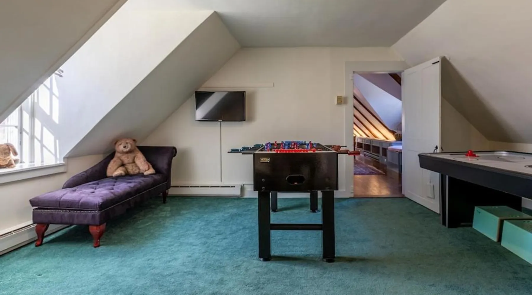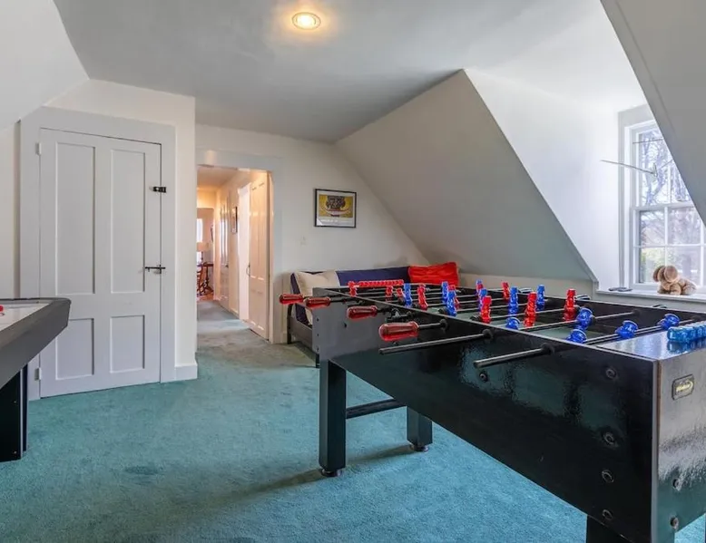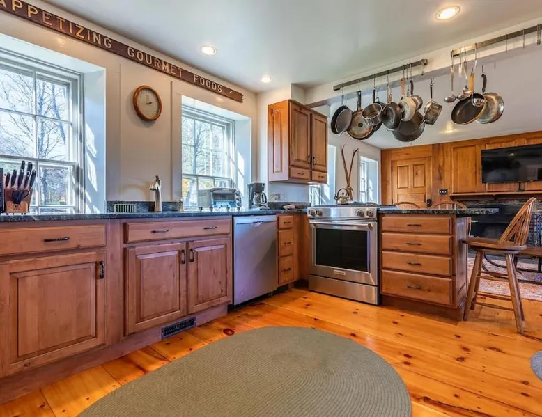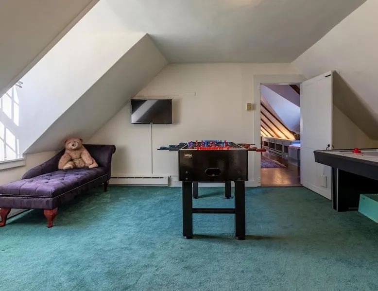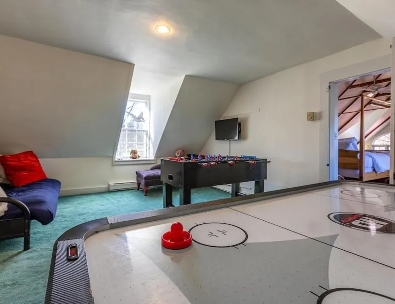 Spacious Accommodations: Beautiful Historic 4-Season Country Estate in Okemo Valley offers a spacious holiday home in Cavendish. The property features five bedrooms and three bathrooms, ensuring ample space for all guests. Outdoor Amenities: Guests can enjoy a garden, terrace, and bar. The terrace provides a perfect spot for relaxation, while the bar offers a cozy atmosphere for socializing. An outdoor fireplace and outdoor dining area enhance the outdoor experience. Modern Facilities: The property includes a games room, indoor play area, and family rooms. Free WiFi is available throughout the estate, ensuring connectivity for all guests. Local Attractions: Located 25 mi from Rutland State Airport, the estate is close to Mount Tom (26 mi), Gifford Woods State Park (30 mi), and Quechee Gorge (24 mi). Cycling enthusiasts can explore the surrounding area with ease. Guests will have a special experience as the holiday home features a fireplace. Guests will find a stovetop, a refrigerator, a dishwasher and kitchenware in the well-equipped kitchen. The holiday home also offers a barbecue. The spacious holiday home provides a flat-screen TV with cable channels, a washing machine, a private entrance, a tea and coffee maker as well as garden views. The unit offers 5 beds.