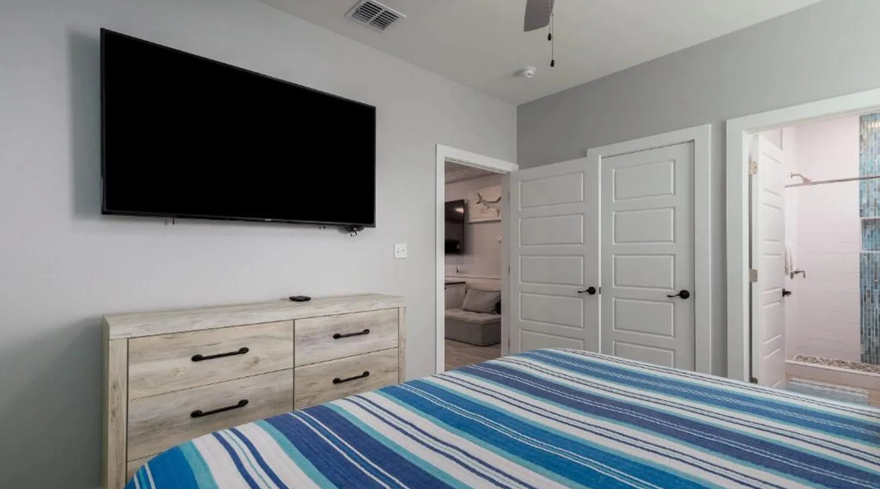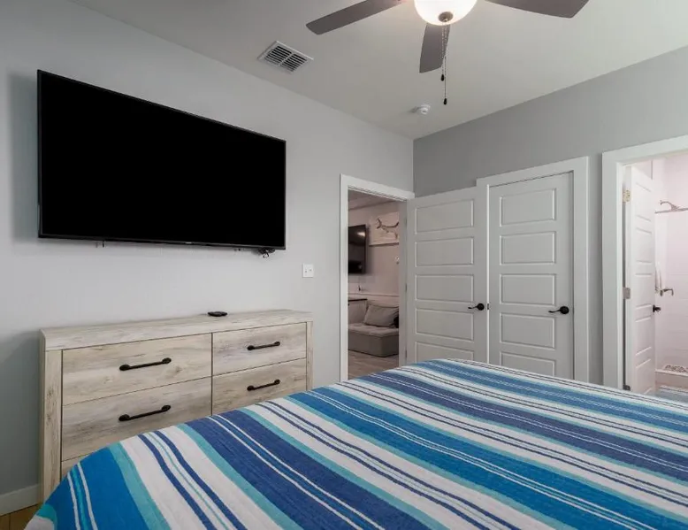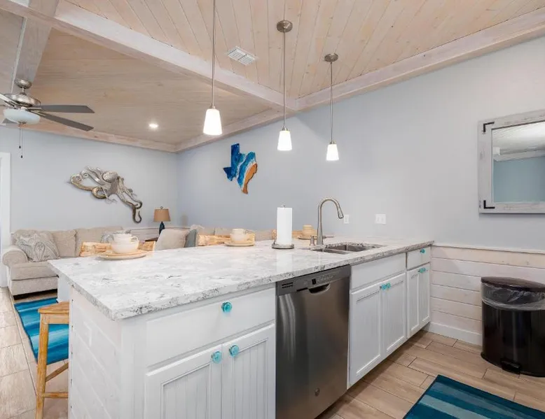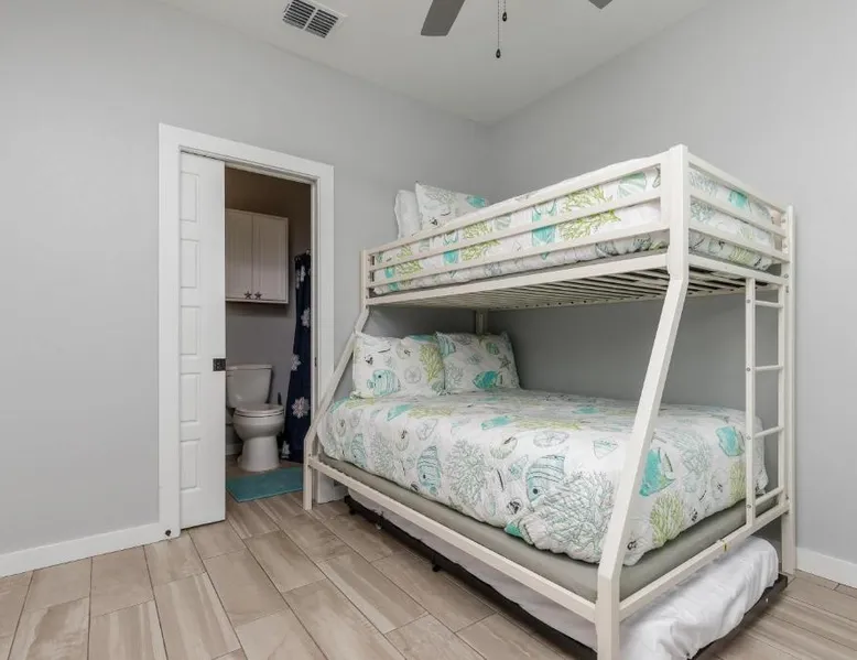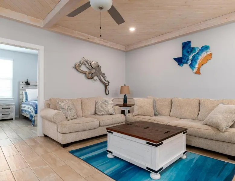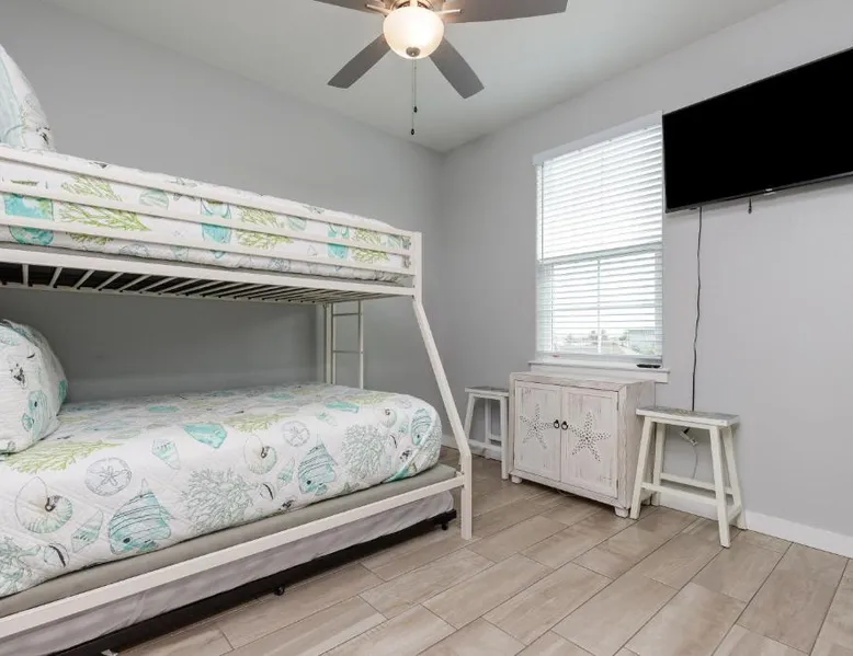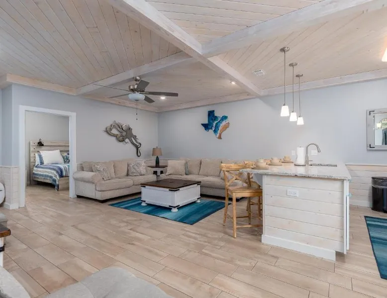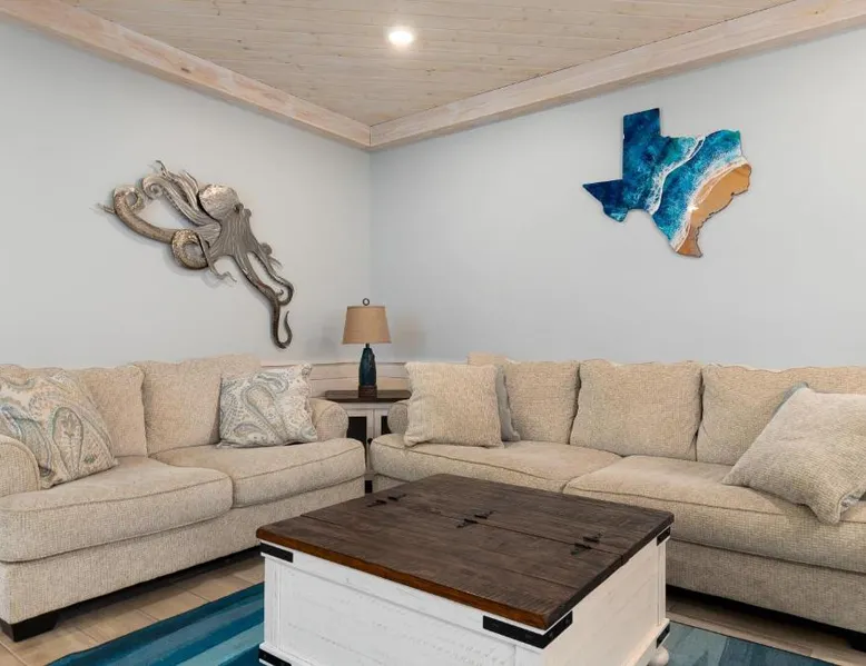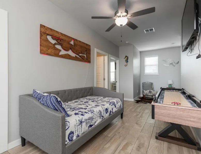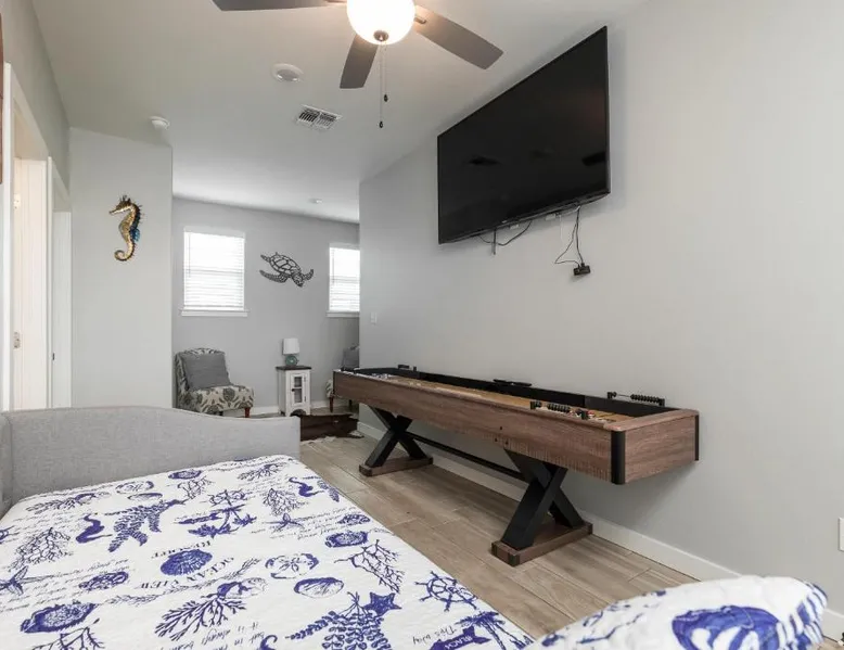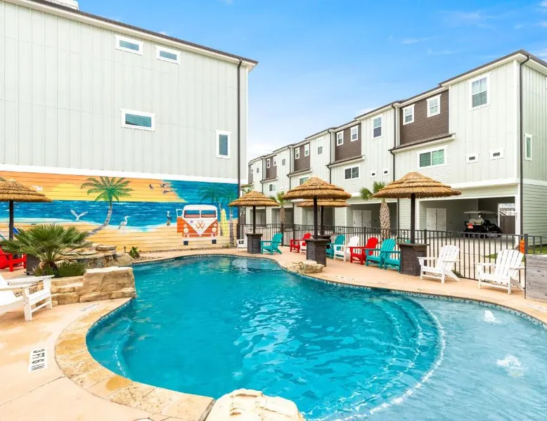 Spacious Accommodations: Modern Comfort 3 Bedroom Pets in Port Aransas offers a spacious holiday home with three bedrooms and three bathrooms. The living room provides a comfortable space for relaxation. Outdoor Amenities: Guests can enjoy an outdoor swimming pool and a patio area. Free WiFi is available throughout the property, ensuring connectivity during the stay. Convenient Facilities: The holiday home includes air-conditioning, a washing machine, and a fully equipped kitchen with a barbecue. Additional amenities include a dishwasher, microwave, and TV. Nearby Attractions: Port Aransas Beach is a 13-minute walk away, while Port Aransas Art Center lies 1.2 mi from the property. Corpus Christi International Airport is 37 mi distant. Featuring a private entrance, this spacious apartment also consists of 1 living room, 3 separate bedrooms and 3 bathrooms with a hairdryer. Guests will find a stovetop, a refrigerator, a dishwasher and kitchenware in the well-fitted kitchen. The apartment also provides guests with a barbecue. The air-conditioned apartment provides a TV, a washing machine, a tea and coffee maker, tumble dryer as well as city views. The unit offers 5 beds.