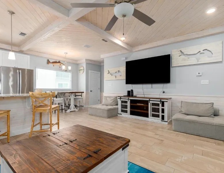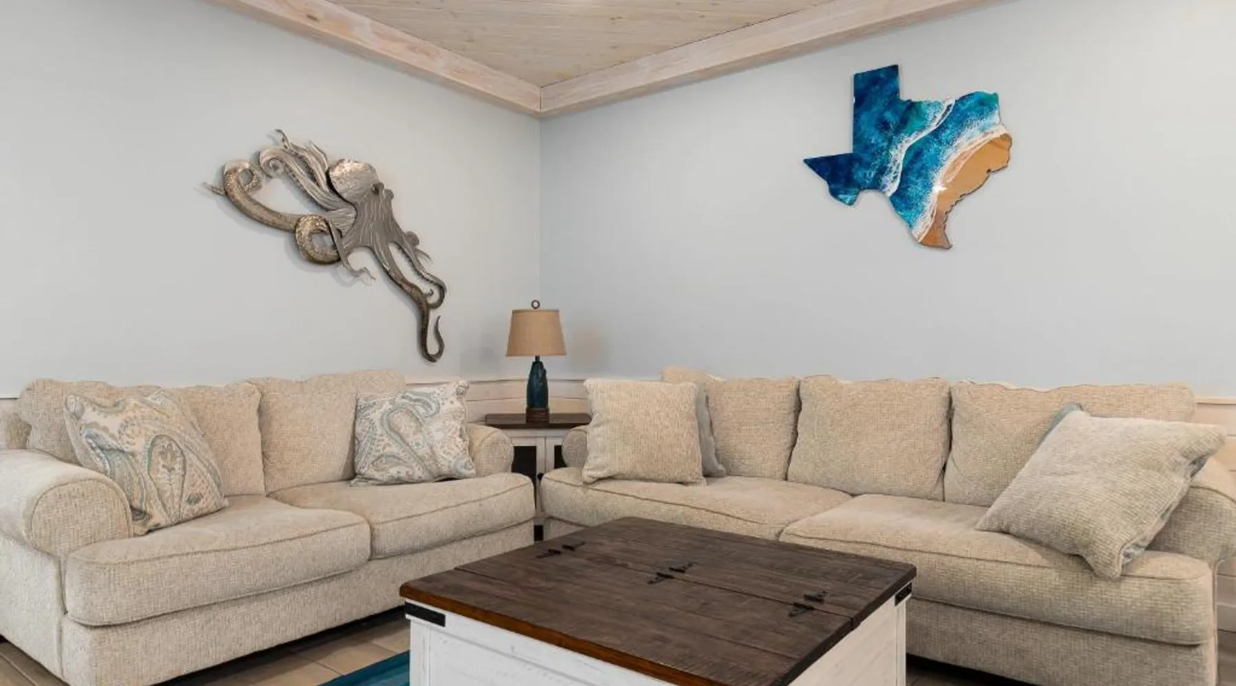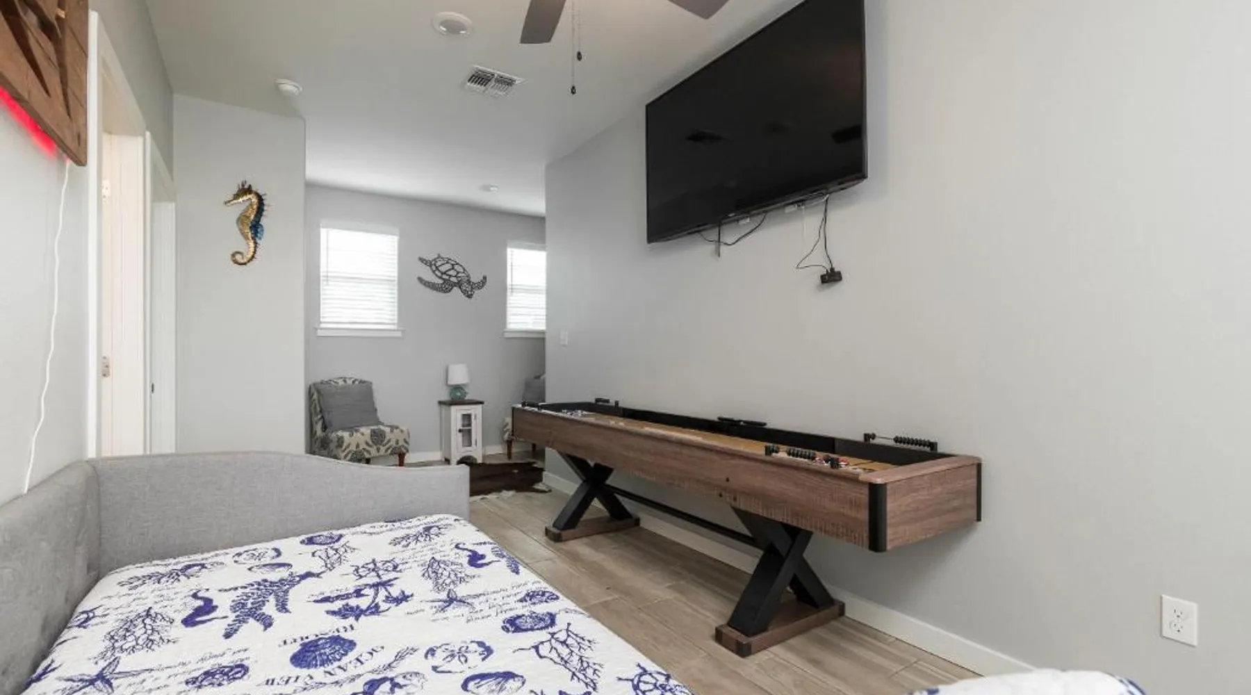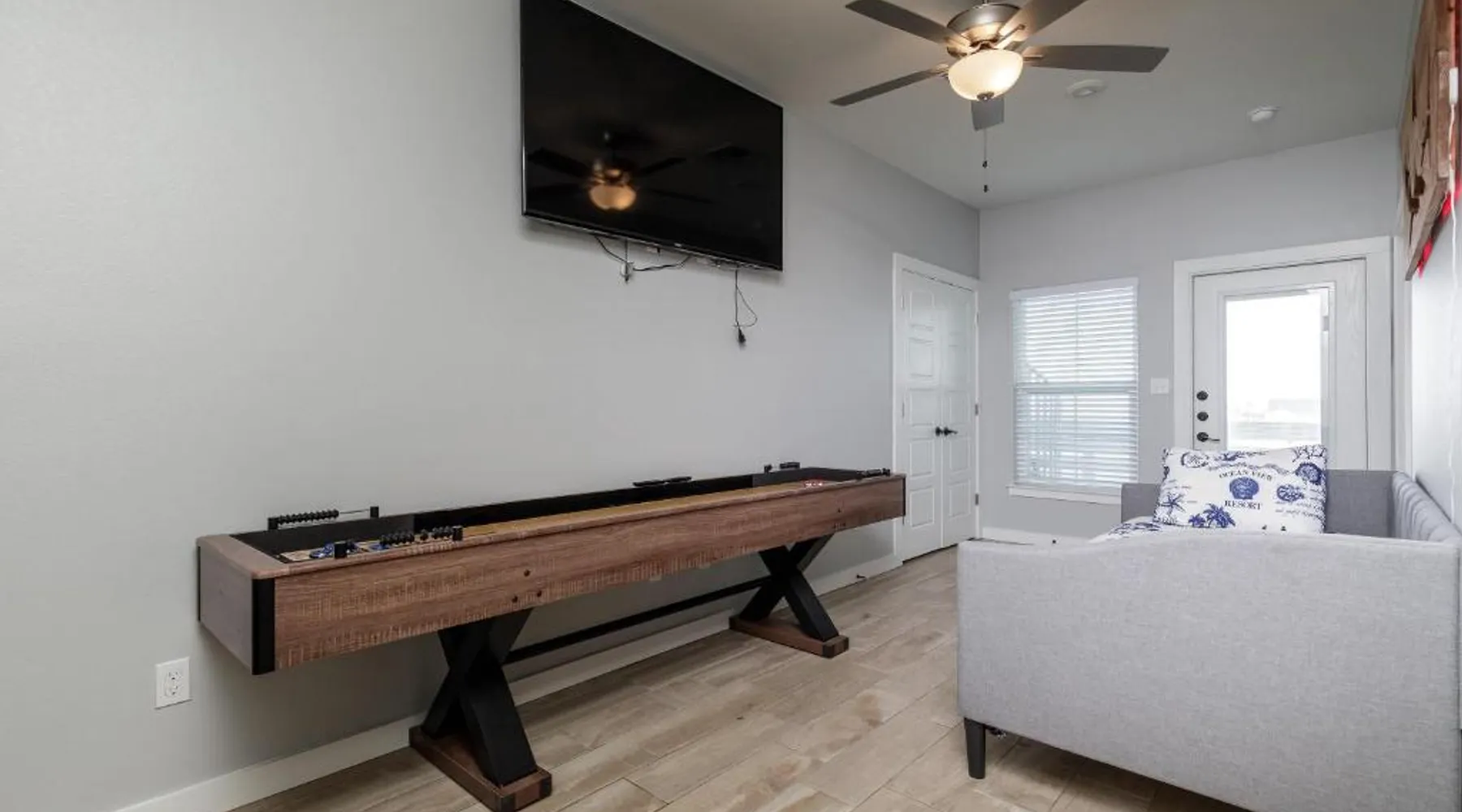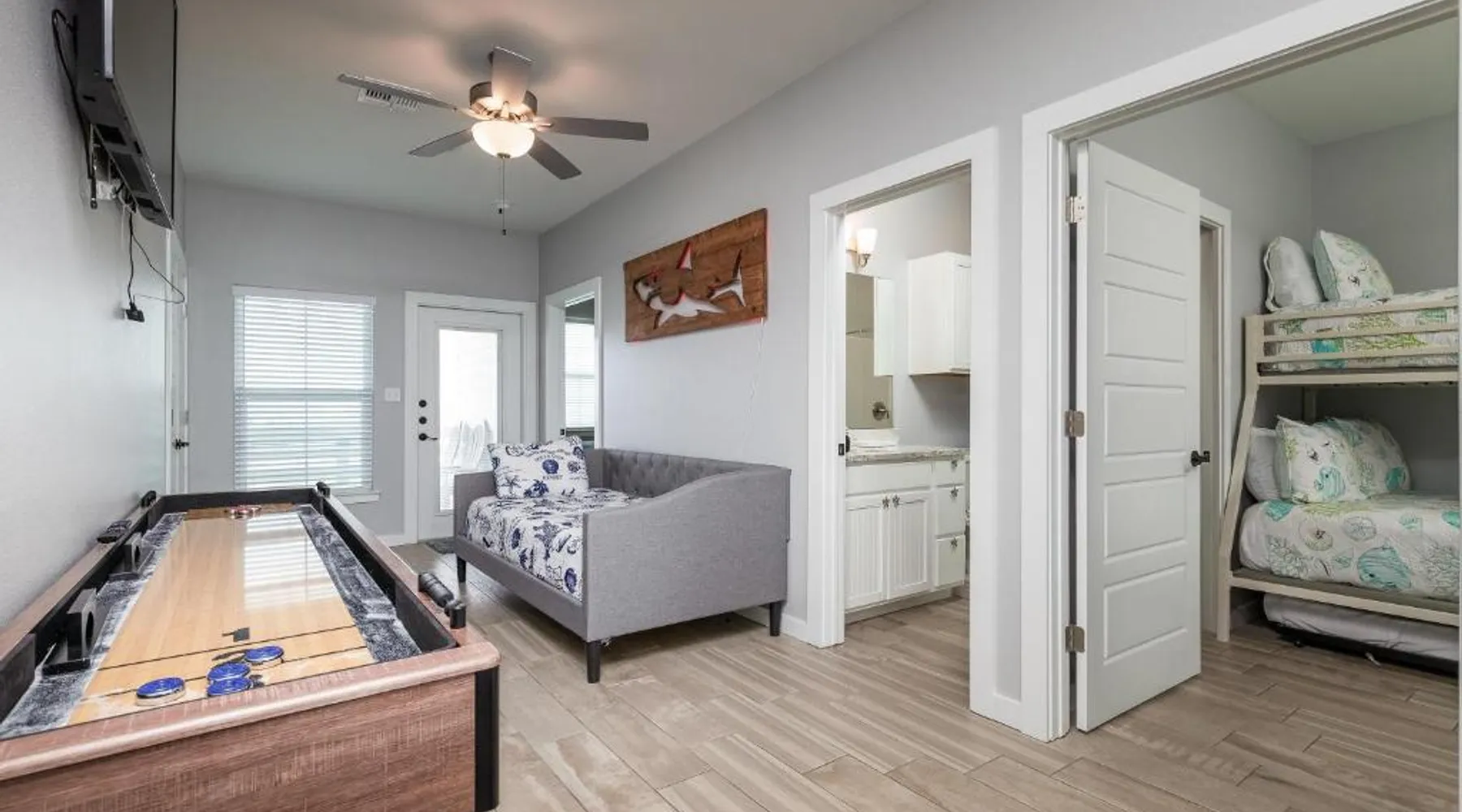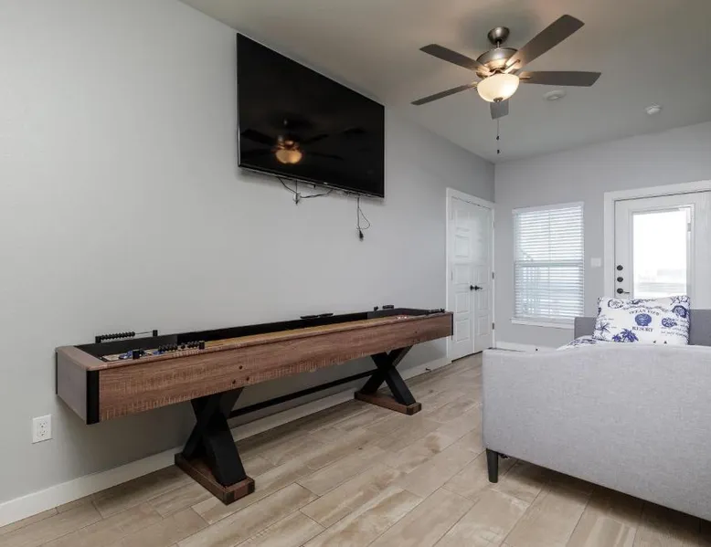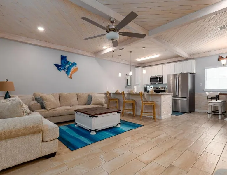 Spacious Accommodations: Modern Comfort 3 Bedroom Pets in Port Aransas offers a spacious holiday home with three bedrooms and three bathrooms. The living room provides a comfortable space for relaxation. Outdoor Amenities: Guests can enjoy an outdoor swimming pool and a patio area. Free WiFi is available throughout the property, ensuring connectivity during the stay. Convenient Facilities: The holiday home includes air-conditioning, a washing machine, and a fully equipped kitchen with a barbecue. Additional amenities include a dishwasher, microwave, and TV. Nearby Attractions: Port Aransas Beach is a 13-minute walk away, while Port Aransas Art Center lies 1.2 mi from the property. Corpus Christi International Airport is 37 mi distant. Featuring a private entrance, this spacious apartment also consists of 1 living room, 3 separate bedrooms and 3 bathrooms with a hairdryer. Guests will find a stovetop, a refrigerator, a dishwasher and kitchenware in the well-fitted kitchen. The apartment also provides guests with a barbecue. The air-conditioned apartment provides a TV, a washing machine, a tea and coffee maker, tumble dryer as well as city views. The unit offers 5 beds.