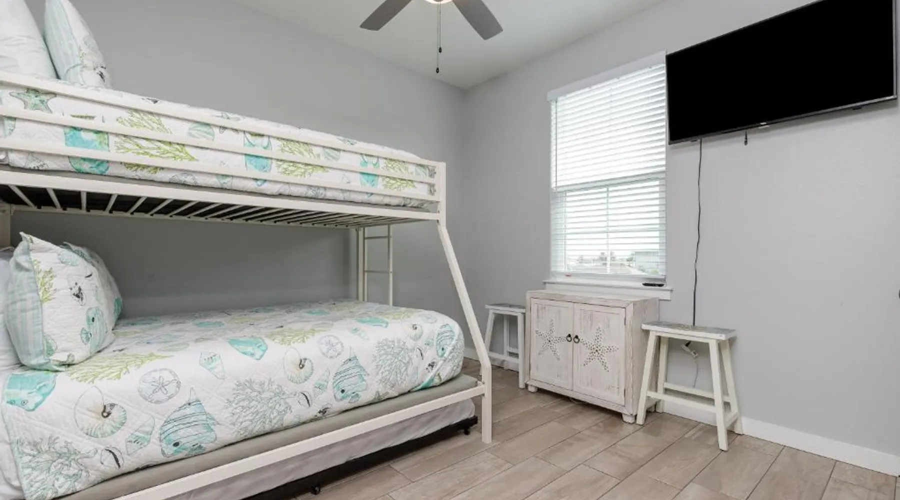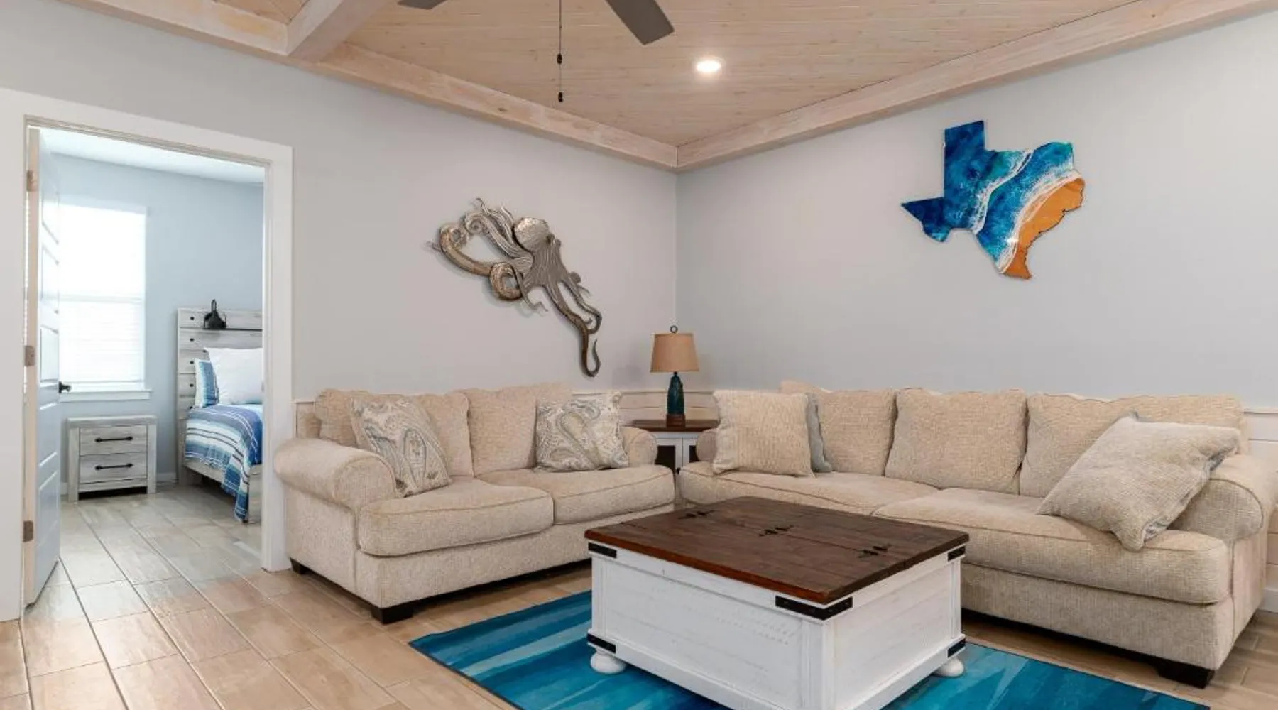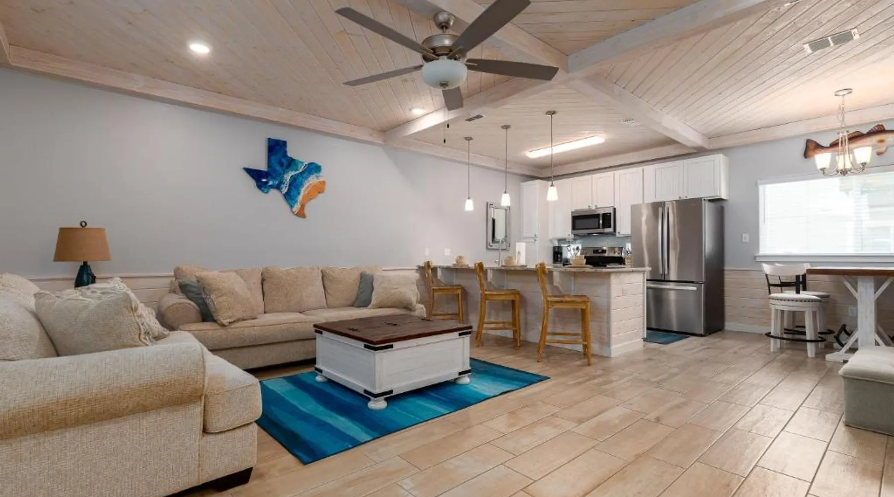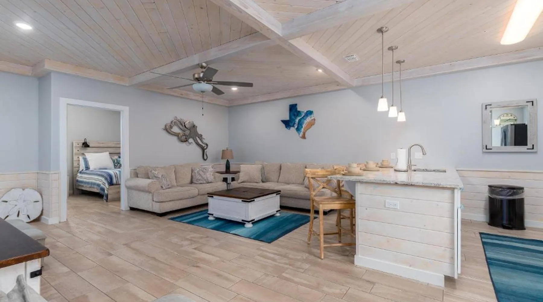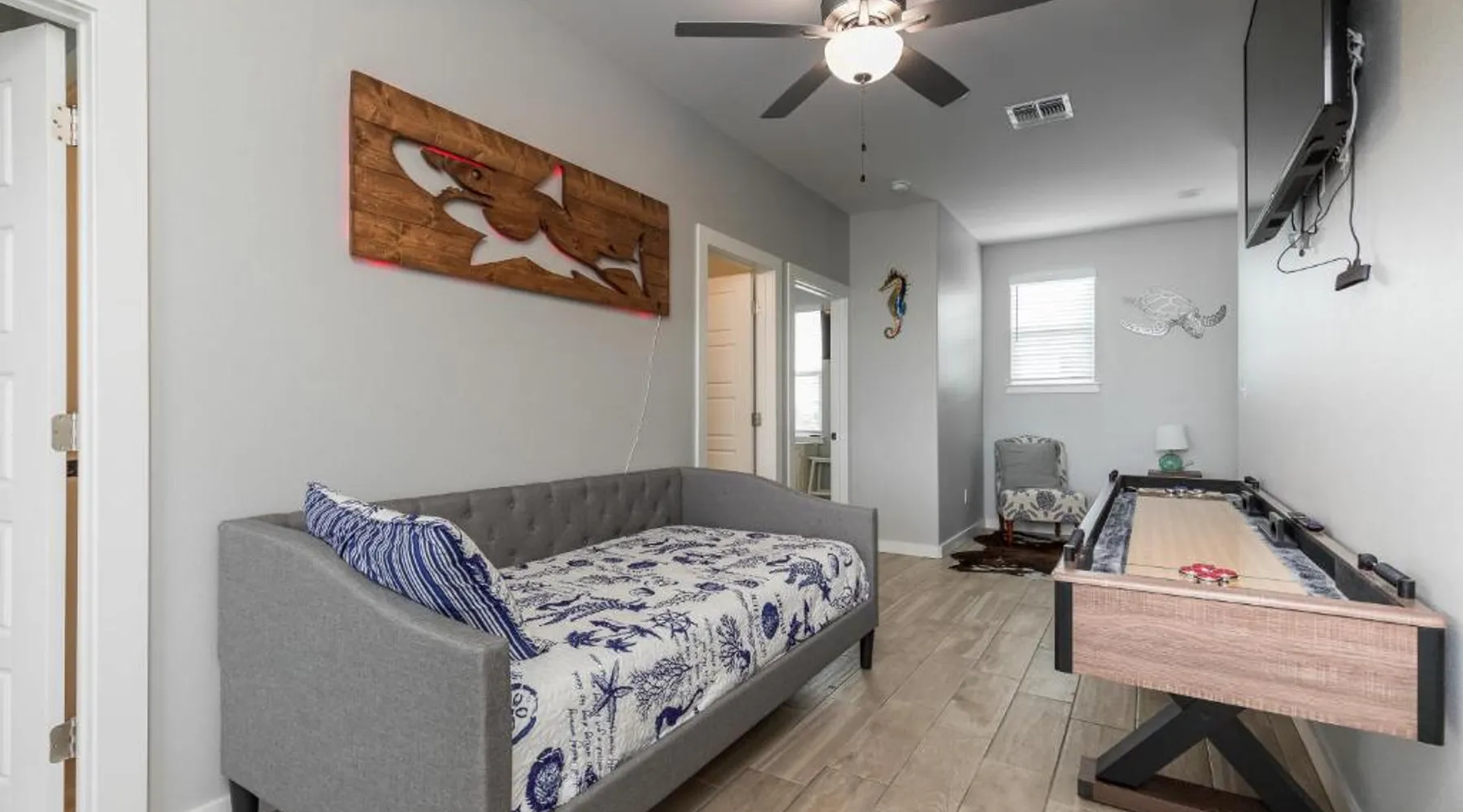 Spacious Accommodations: Modern Comfort 3 Bedroom Pets in Port Aransas offers a spacious holiday home with three bedrooms and three bathrooms. The living room provides a comfortable space for relaxation. Outdoor Amenities: Guests can enjoy an outdoor swimming pool and a patio area. Free WiFi is available throughout the property, ensuring connectivity during the stay. Convenient Facilities: The holiday home includes air-conditioning, a washing machine, and a fully equipped kitchen with a barbecue. Additional amenities include a dishwasher, microwave, and TV. Nearby Attractions: Port Aransas Beach is a 13-minute walk away, while Port Aransas Art Center lies 1.2 mi from the property. Corpus Christi International Airport is 37 mi distant. Featuring a private entrance, this spacious apartment also consists of 1 living room, 3 separate bedrooms and 3 bathrooms with a hairdryer. Guests will find a stovetop, a refrigerator, a dishwasher and kitchenware in the well-fitted kitchen. The apartment also provides guests with a barbecue. The air-conditioned apartment provides a TV, a washing machine, a tea and coffee maker, tumble dryer as well as city views. The unit offers 5 beds.