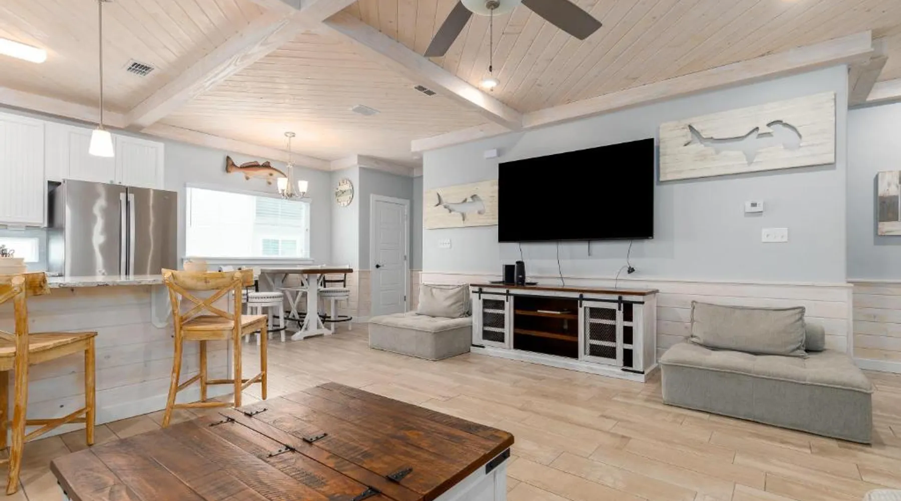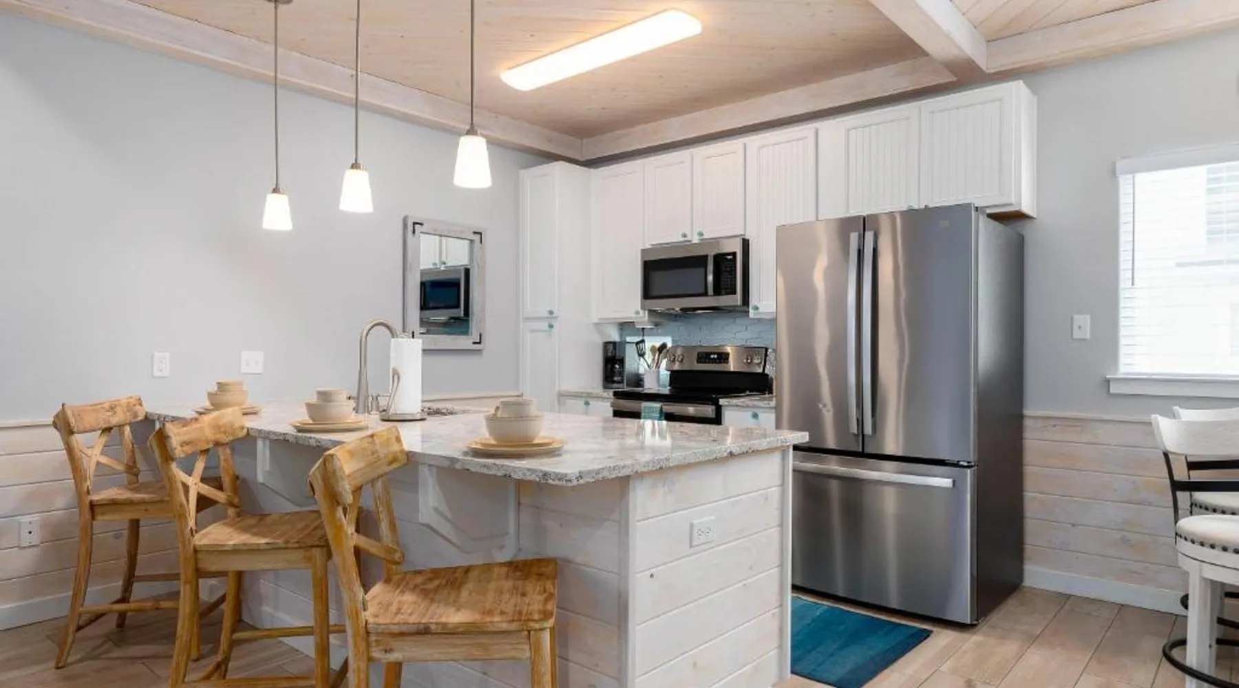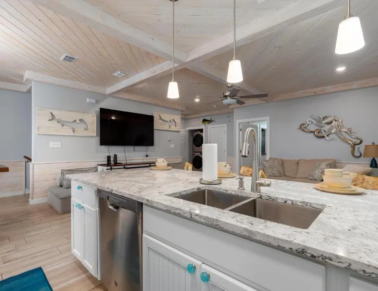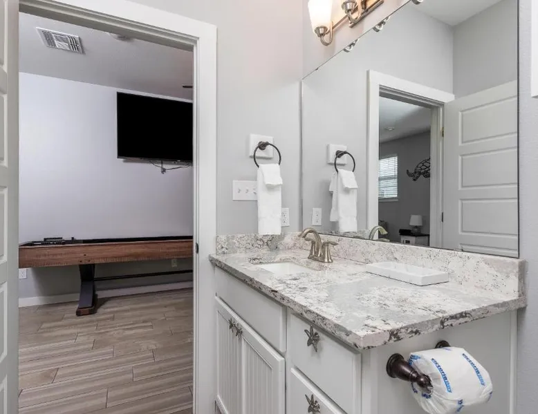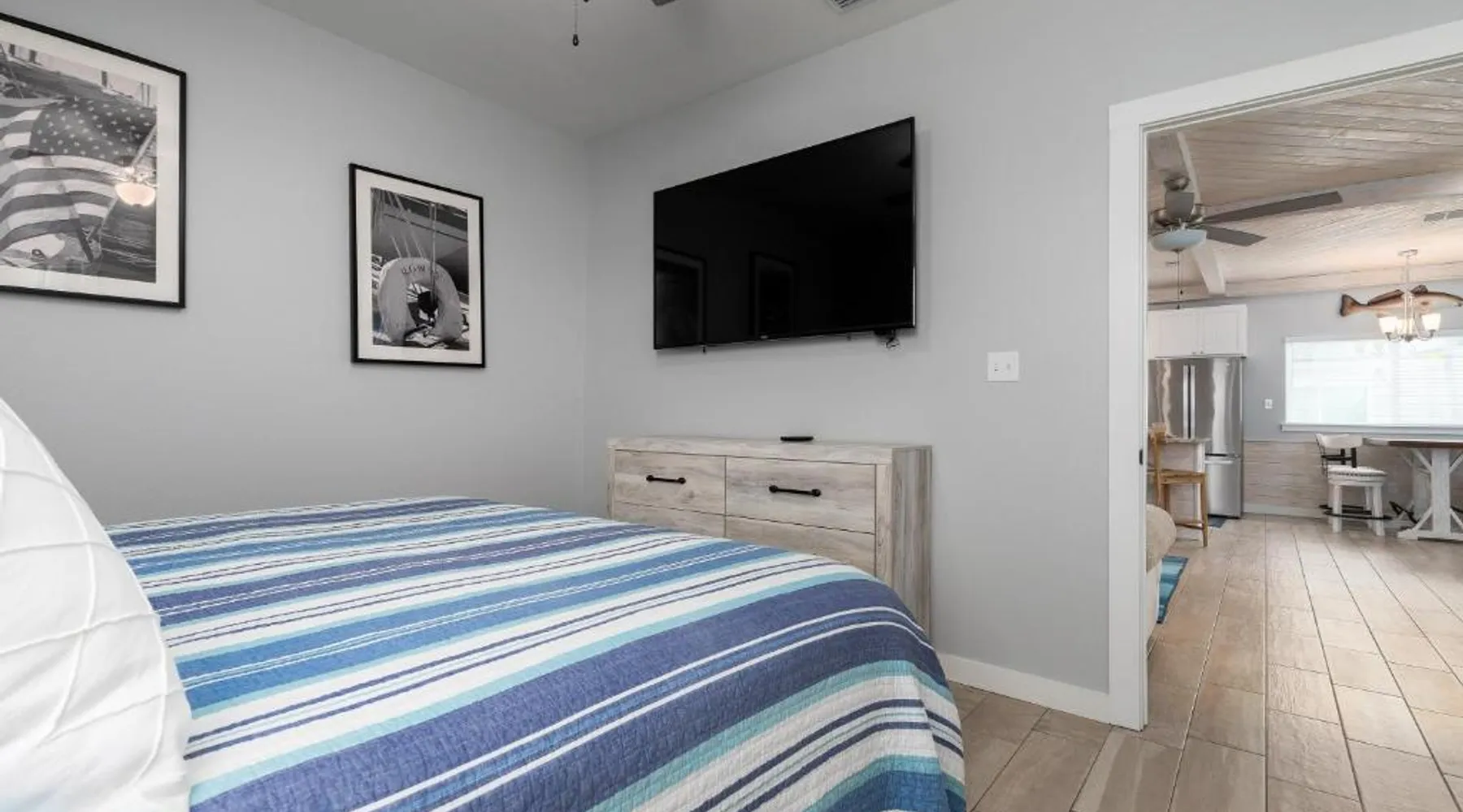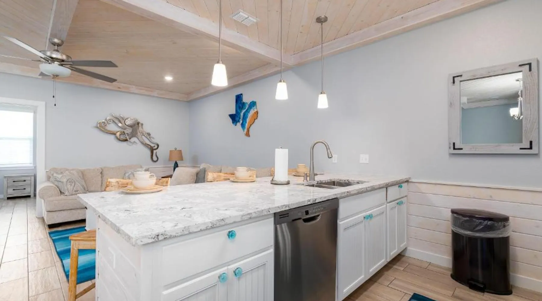 Spacious Accommodations: Modern Comfort 3 Bedroom Pets in Port Aransas offers a spacious holiday home with three bedrooms and three bathrooms. The living room provides a comfortable space for relaxation. Outdoor Amenities: Guests can enjoy an outdoor swimming pool and a patio area. Free WiFi is available throughout the property, ensuring connectivity during the stay. Convenient Facilities: The holiday home includes air-conditioning, a washing machine, and a fully equipped kitchen with a barbecue. Additional amenities include a dishwasher, microwave, and TV. Nearby Attractions: Port Aransas Beach is a 13-minute walk away, while Port Aransas Art Center lies 1.2 mi from the property. Corpus Christi International Airport is 37 mi distant. Featuring a private entrance, this spacious apartment also consists of 1 living room, 3 separate bedrooms and 3 bathrooms with a hairdryer. Guests will find a stovetop, a refrigerator, a dishwasher and kitchenware in the well-fitted kitchen. The apartment also provides guests with a barbecue. The air-conditioned apartment provides a TV, a washing machine, a tea and coffee maker, tumble dryer as well as city views. The unit offers 5 beds.