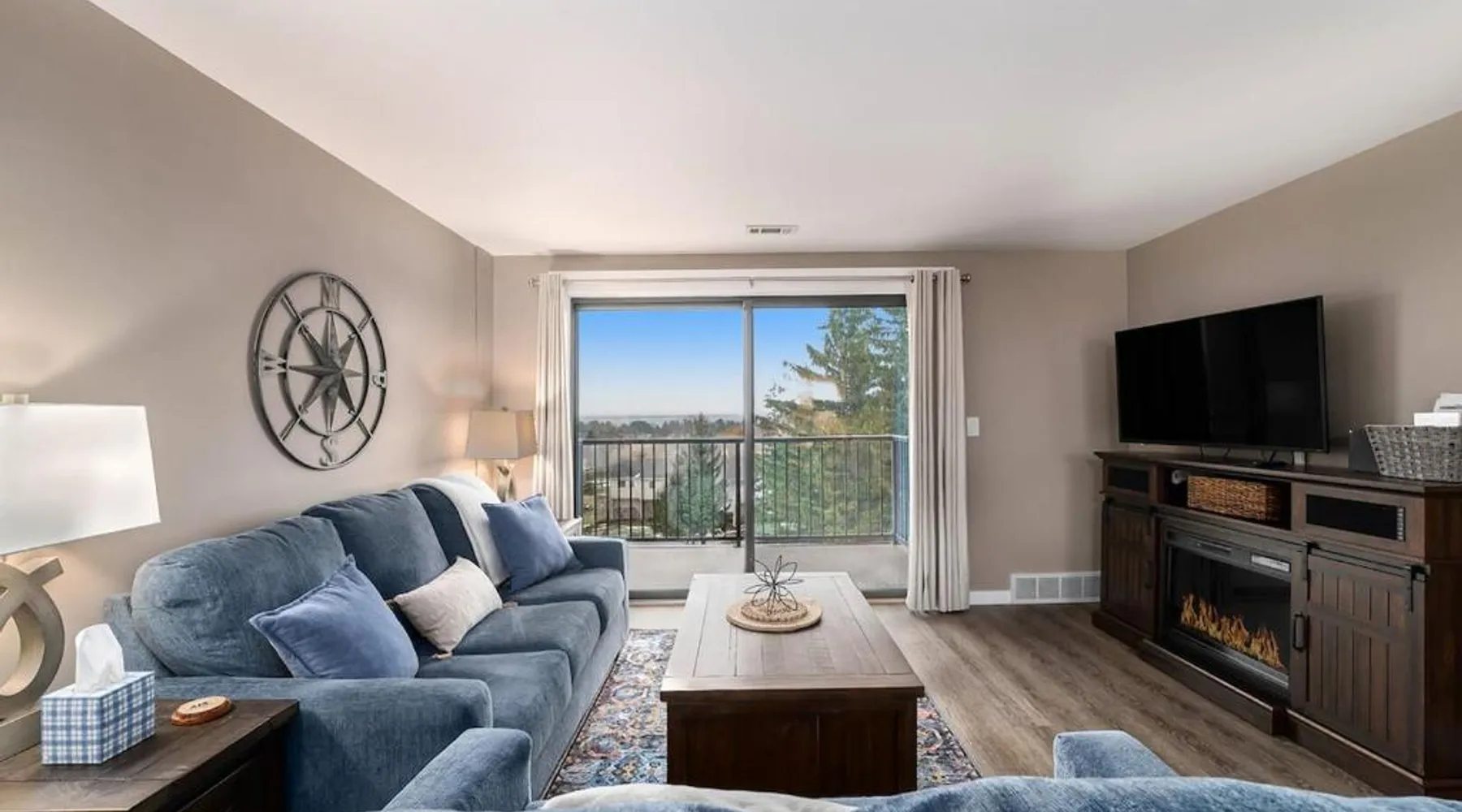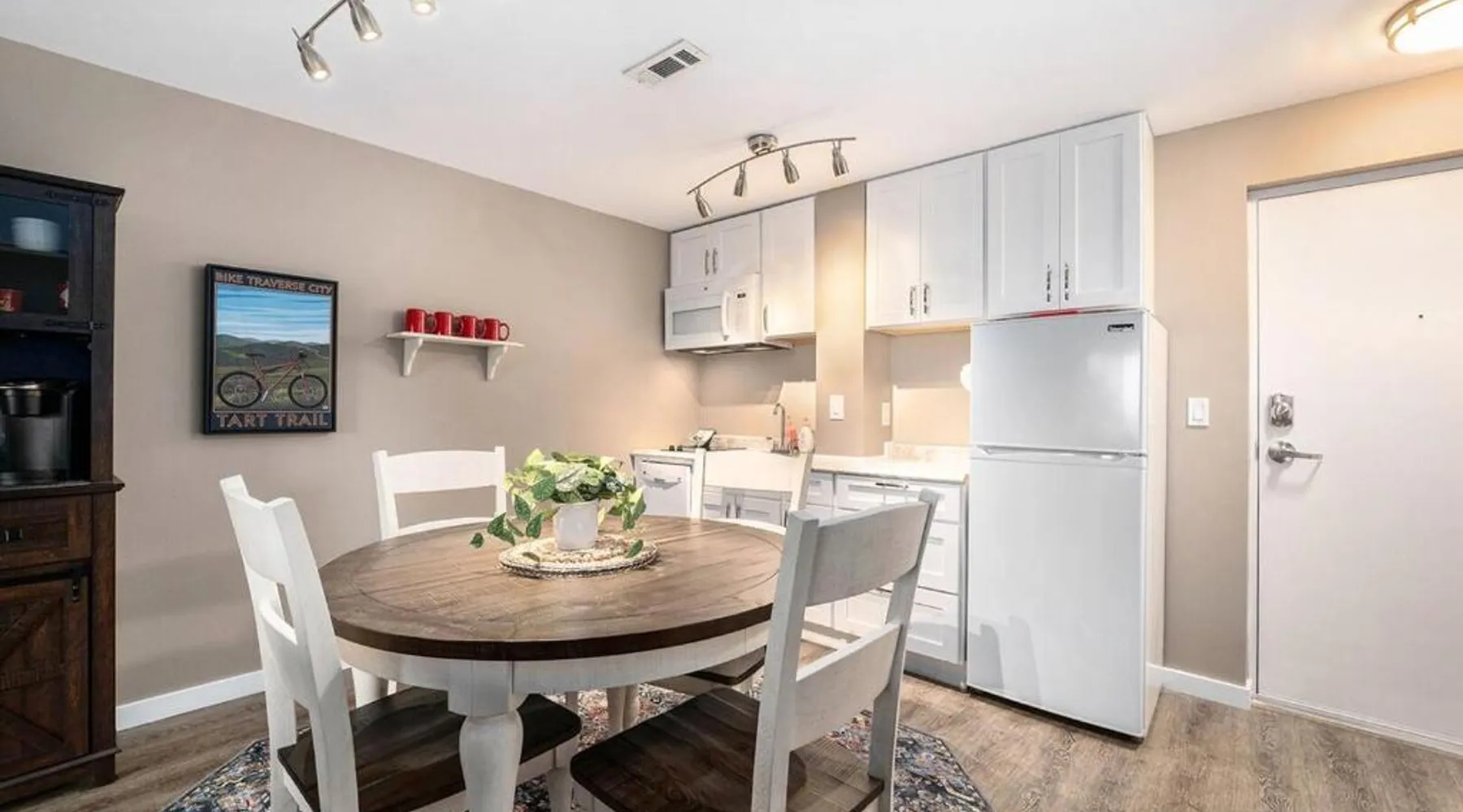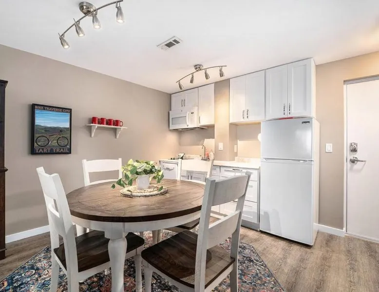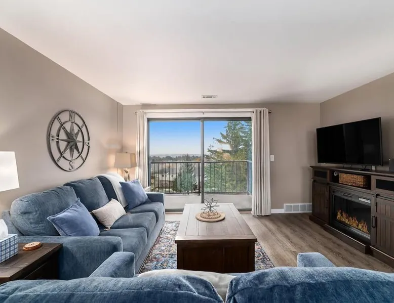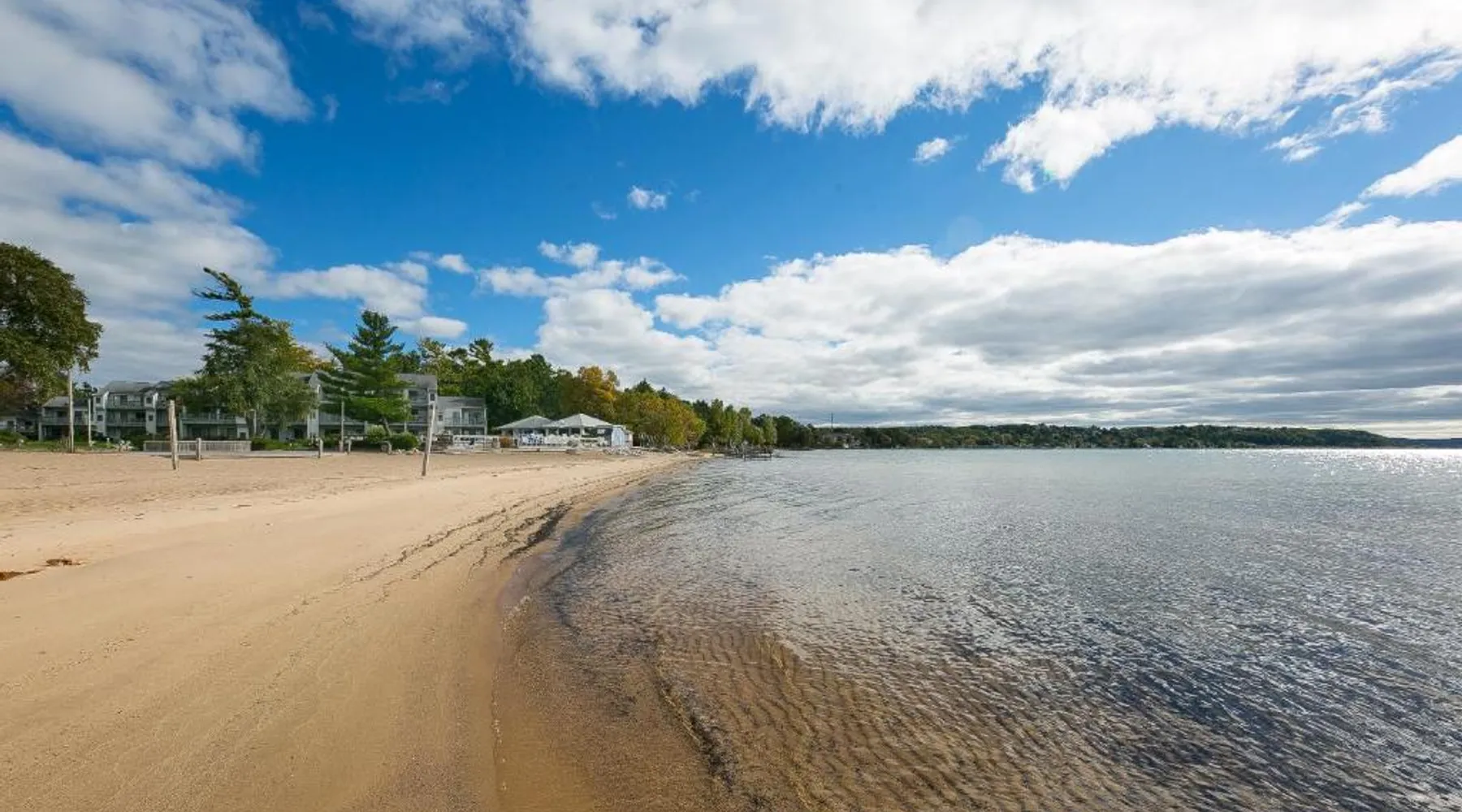 Beautiful Lake Views: Beautiful Lake View Golf Course Condo in Williamsburg offers stunning lake views and direct beachfront access. Guests can relax on the sun terrace or in the garden, enjoying the serene surroundings. Comfortable Accommodations: The apartment features one bedroom, a living room, and a fully equipped kitchen. Amenities include air-conditioning, a balcony, and a private beach area. Free on-site parking is available for guests' convenience. Leisure Facilities: Guests can unwind at the spa facilities or take a dip in the private beach area. The property also includes a private check-in and check-out service, a elevator, and a concierge service. Local Attractions: Located 6.2 mi from Cherry Capital Airport, the condo is close to Dennos Museum Center (6.8 mi) and Clinch Park (8.7 mi). Other nearby points of interest include Great Wolf Lodge Traverse City (11 mi) and Mission Point Lighthouse (25 mi). This air-conditioned apartment is consisted of of 1 living room, 1 separate bedroom and 1 bathroom with a bath. The well-fitted kitchen features a stovetop, a refrigerator, a dishwasher and kitchenware. The apartment has a tea and coffee maker, heating, as well as a balcony with garden views. The unit offers 3 beds.