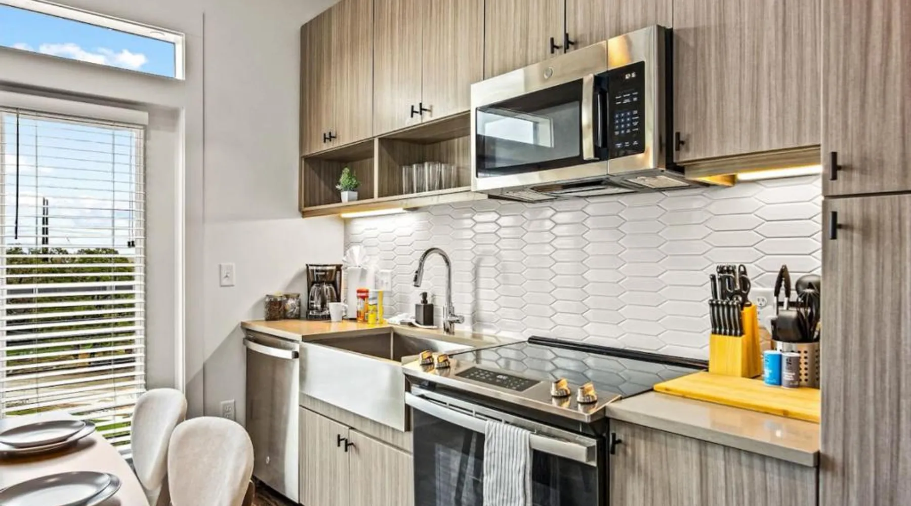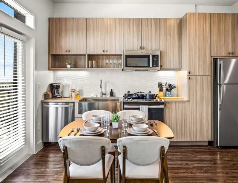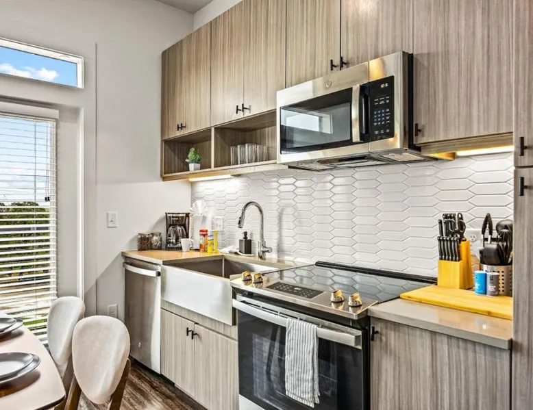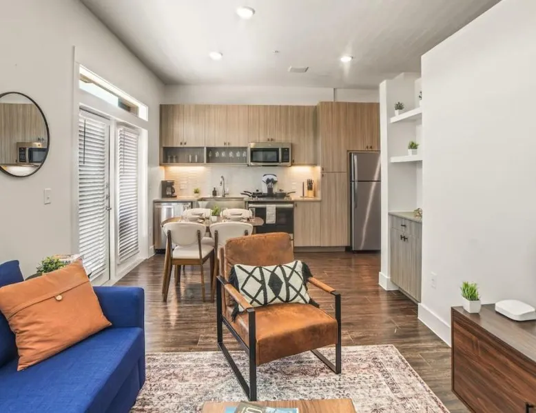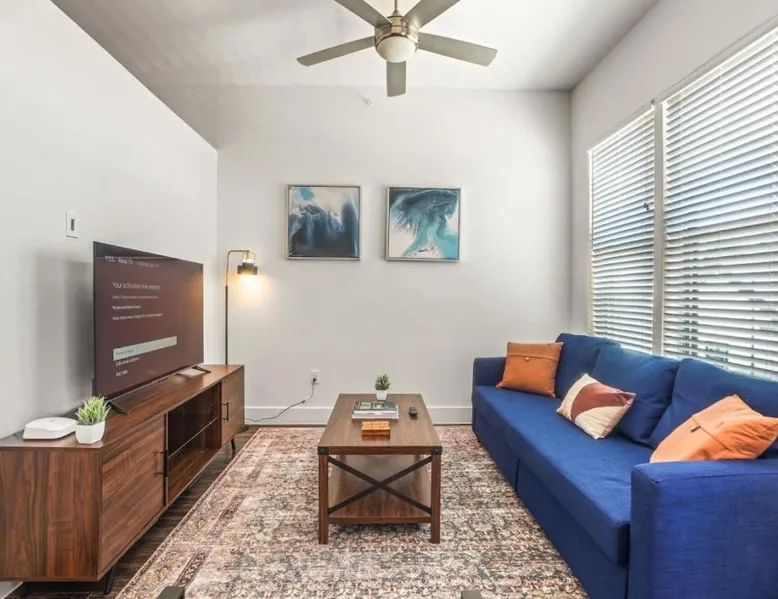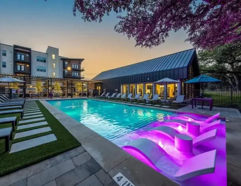 Spacious Accommodations: Luxurious New Unit Studio 1Ba Pool, Golf Sim in Austin offers a spacious apartment with one bedroom and one bathroom. The ground-floor unit features a private pool, balcony, and a fully equipped kitchen. Modern Amenities: Guests enjoy free WiFi, air-conditioning, and a fitness center. Additional amenities include a washing machine, work desk, and free toiletries. The property is equipped with a elevator for easy access. Convenient Location: Located 13 mi from Austin-Bergstrom International Airport, the apartment is close to attractions such as the Capitol Building (9.9 mi) and the University of Texas (11 mi). Reception staff speak English. The private pool is the special feature of this apartment. The spacious apartment features 1 bedroom and 1 bathroom with a bath and free toiletries. Guests will find a stovetop, a refrigerator, a dishwasher and kitchenware in the fully equipped kitchen. The apartment also provides guests with a barbecue. This apartment has air conditioning, a washing machine, a TV and a balcony. The unit offers 2 beds.