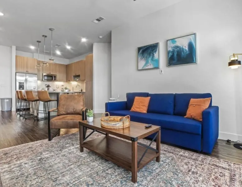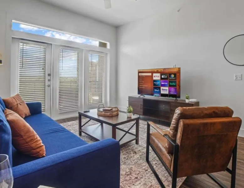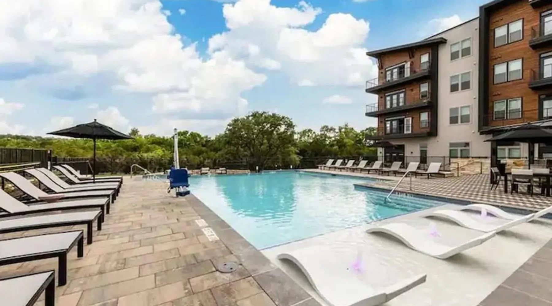 Spacious Accommodations: Luxurious New Unit 2Bd2B Pool, Golf Sim in Austin offers a spacious apartment with two bedrooms and one bathroom. The ground-floor unit features a private pool, balcony, and a fully equipped kitchen. Modern Amenities: Guests enjoy free WiFi, air-conditioning, and a fitness center. Additional amenities include a washing machine, work desk, and free toiletries. The property is equipped with a elevator for easy access. Convenient Location: Located 13 mi from Austin-Bergstrom International Airport, the apartment is close to attractions such as the Capitol Building (9.9 mi) and Umlauf Sculpture Garden and Museum (8.1 mi). Reception staff speak English. This apartment features a private pool. The spacious apartment has 2 bedrooms and 1 bathroom with a bath and free toiletries. Guests will find a stovetop, a refrigerator, a dishwasher and kitchenware in the kitchen. The apartment also comes with a barbecue. Boasting a balcony, this apartment also features air conditioning, a washing machine and a TV. The unit has 6 beds.