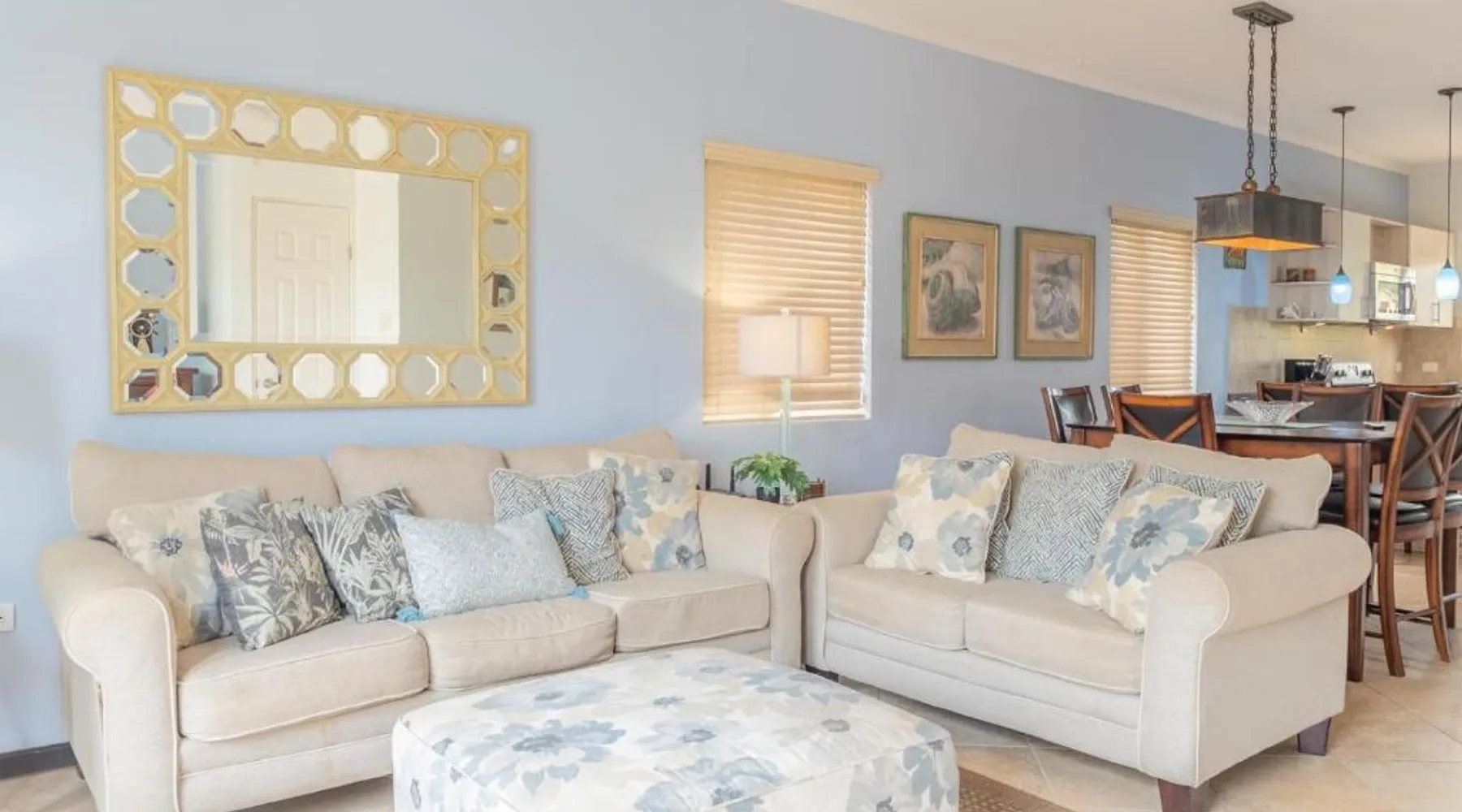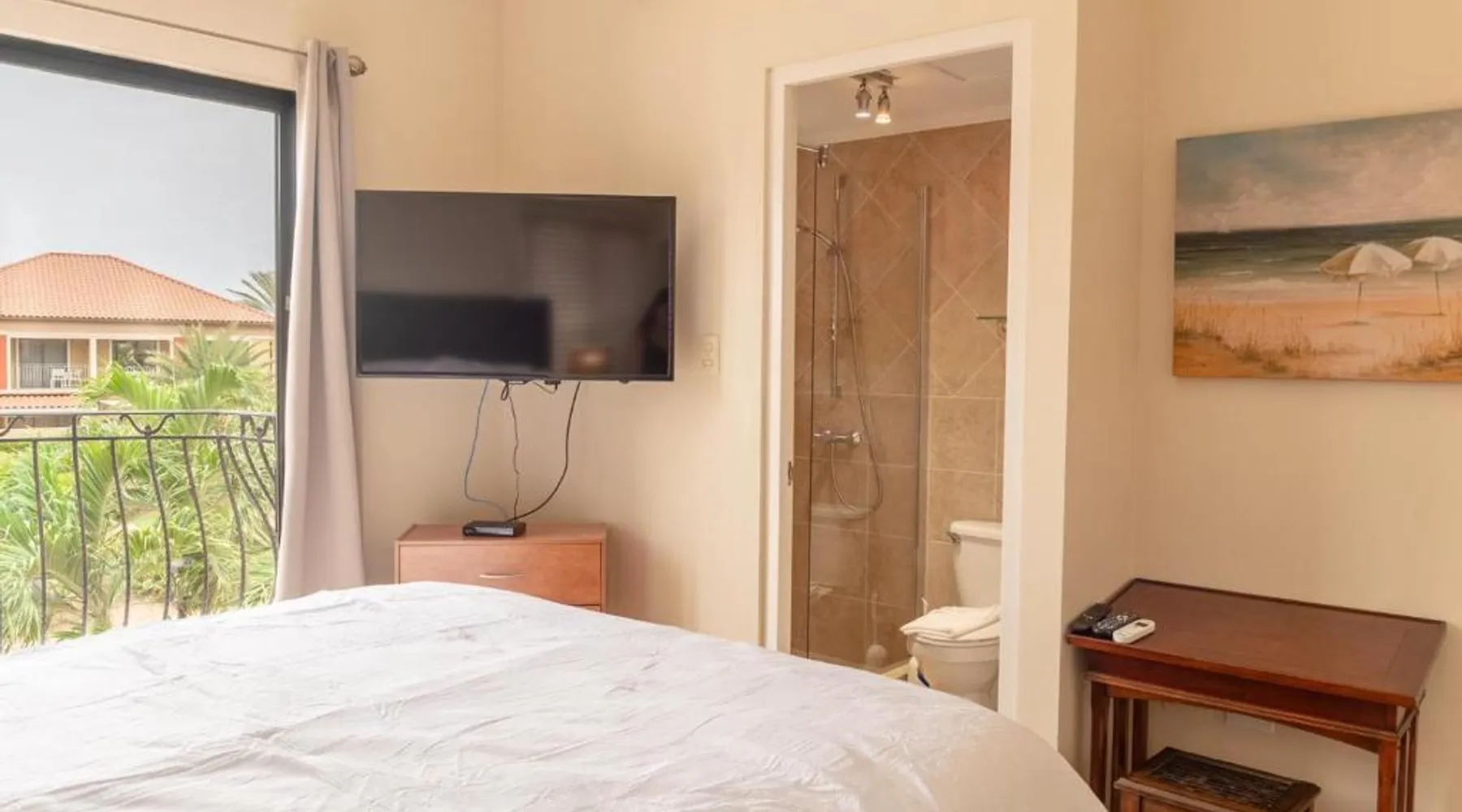 Beachfront Location: Indescribable town house with jacuzzi in Gold Coast Aruba offers direct beachfront access. Guests enjoy stunning sea views and easy beach access. Spacious Accommodations: The holiday home features two bedrooms and three bathrooms, ensuring ample space for relaxation. The living room provides a comfortable setting for all guests. Leisure Facilities: The property includes a fitness center, outdoor swimming pool, and a lush garden. Free WiFi is available throughout the property, enhancing the stay experience. Convenient Amenities: Guests benefit from free on-site parking, air-conditioning, a hot tub, and a fully equipped kitchen. Additional amenities include a washing machine, patio, and barbecue. Nearby Attractions: Malmok is a 17-minute walk away, while Tierra del Sol Golf Course lies 2.9 mi from the property. Queen Beatrix International Airport is 6.8 mi distant. Scuba diving opportunities enhance the surrounding area. The private pool and hot tub are the special features of this holiday home. This spacious holiday home features 1 living room, 2 separate bedrooms and 3 bathrooms with a hairdryer and free toiletries. Guests will find a stovetop, a refrigerator, a dishwasher and kitchenware in the well-fitted kitchen. The holiday home also comes with a barbecue. The air-conditioned holiday home features a TV with cable channels, a washing machine, a private entrance, a tea and coffee maker as well as city views. The unit has 3 beds and 1 futon.