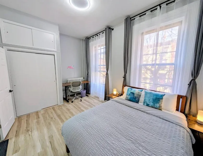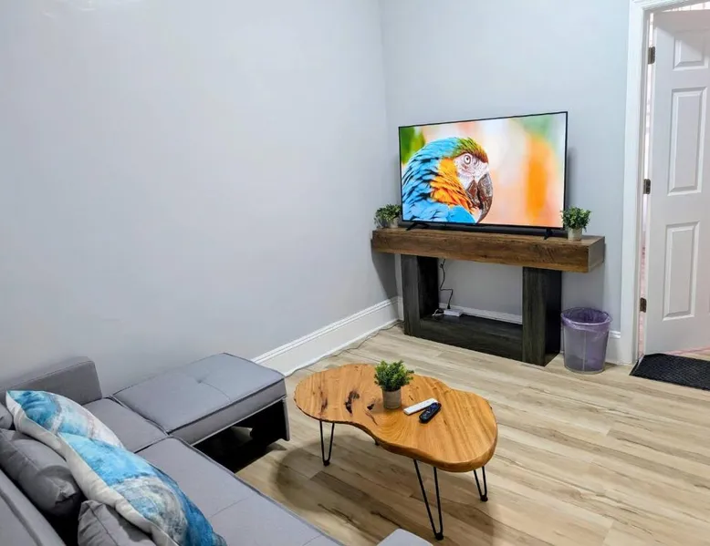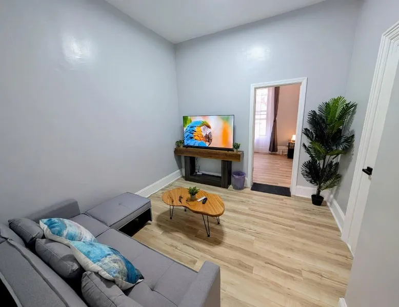 Comfortable Living Space: Central brownstone in Hoboken Dwntn! 15 mins to NY offers a one-bedroom apartment with a living room. The property includes a kitchen, bathroom, and a sofa bed. Modern Amenities: Guests enjoy free WiFi, air-conditioning, a washing machine, and a work desk. Additional features include a games room, soundproofing, and a private entrance. Convenient Location: Located in Hoboken, the apartment is 11 mi from Teterboro Airport. Nearby attractions include Bloomingdale's (3.7 mi), New York University (4.3 mi), and One World Trade Center (4.3 mi). Local Activities: The surrounding area offers an ice-skating rink and boating opportunities. Boasting a private entrance, this air-conditioned apartment includes 1 living room, 1 separate bedroom and 1 bathroom with a bath and a shower. The apartment's kitchen is available for cooking and storing food. The apartment has a washing machine, soundproof walls, tumble dryer as well as a sofa. The unit has 2 beds.