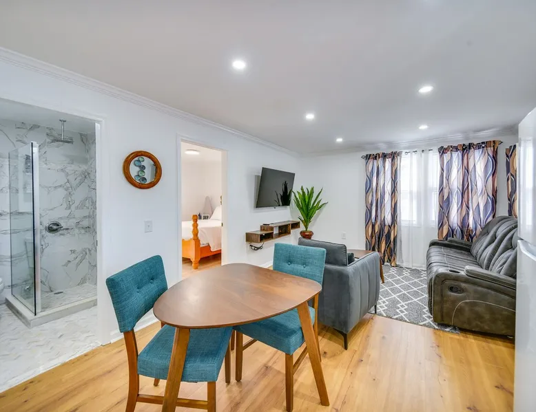 Free WiFi | Walk to Restaurants & Supermarket With an unbeatable location in Norfolk, VA, this 1-bedroom, 1-bath vacation rental is perfect for couples or solo travelers seeking an extended coastal escape! Tee off at the nearby Ocean View Golf Course, unwind on a beach of your choice, explore Norfolk Botanical Garden, or visit vibrant downtown attractions. After your outdoor adventures, return to the modern apartment to prepare a meal in the well-stocked kitchen and watch a movie. The space SLEEPING ARRANGEMENTS - Bedroom: 1 queen bed MAIN FEATURES - Living room w/ Smart TV - 2-person dining table - Shared fenced yard KITCHEN - Stove/oven, refrigerator, microwave - Keurig coffee maker (bring your own coffee), toaster - Dishware/flatware, cooking basics - Trash bags/paper towels GENERAL - Central air conditioning/heat - Linens/towels, hair dryer - Iron/board - Keyless entry FAQ - 2 exterior security cameras (facing out) ACCESSIBILITY - 2-story unit, flight of stairs to access - Bedroom & full bathroom on 2nd floor PARKING - Shared driveway (3 vehicles) ADDT’L ACCOMMODATIONS - An additional 2-bedroom vacation rental unit for 4 guests is available on-site with a separate nightly rate. If you would like to reserve both rentals, please inquire for more information prior to booking Guest access Guests will have access to the entire property Other things to note - No smoking - No pets allowed - No events, parties, or large gatherings - Additional fees and taxes may apply - Photo ID may be required upon check-in ADDITIONAL INFORMATION - This 2-story unit requires a flight of interior stairs to access. The bedroom and full bathroom are located on the 2nd floor - There is another bookable vacation rental on-site; other travelers may be present during your stay - Your safety matters. This property features 2 exterior security cameras: 1 camera is located at the front door facing the front entrance, and 1 camera is located on the back of the property facing the backyard. The cameras are outward facing and do not look into interior spaces. The cameras are activated by motion and will record video and sound while guests are in residence