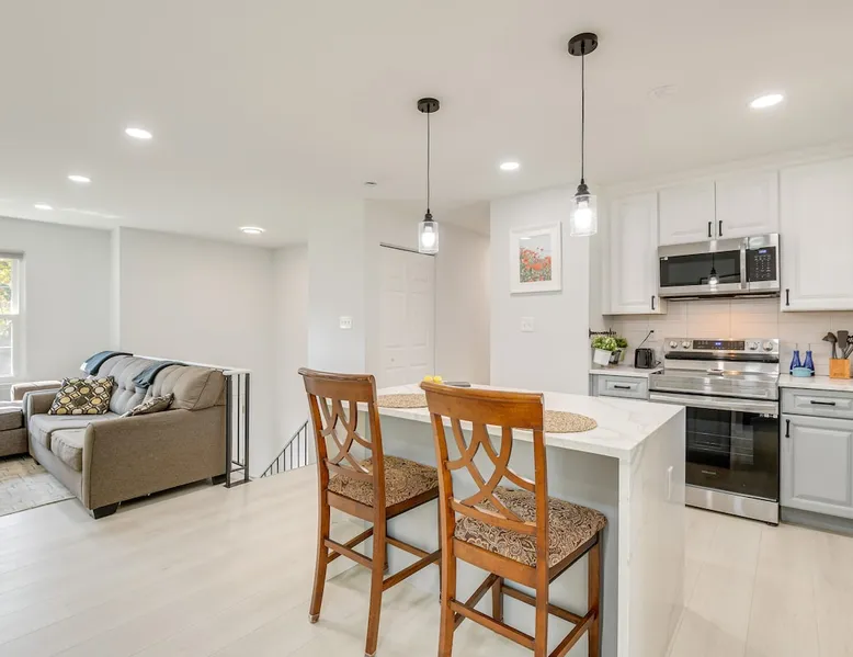 Gas Grill for Cookouts | Multiple Shared Living Spaces | Peaceful Neighborhood Get ready for a fun-filled trip when you book this 4-bedroom, 3-bath vacation rental in Severn. Prepare a home-cooked meal in the kitchen and enjoy watching your favorite shows on the Smart TV. And there's no shortage of nearby fun! Cheer on your favorite baseball team at Camden Yards or get a thrill at Six Flags America. Ready to unwind? Return home for a cookout on the deck. The space STR-00949 SLEEPING ARRANGEMENTS - Bedroom 1: 1 queen bed - Bedroom 2: 1 queen bed - Bedroom 3: 1 queen bed - Bedroom 4: 1 twin bed - Living Room: 1 sleeper sofa INDOOR LIVING - 2 Smart TVs - Video game console - Dining table OUTDOOR LIVING - Deck - Gas grill KITCHEN - Stove/oven, refrigerator, dishwasher - Dishware/flatware, baking & cooking basics - Keurig coffee maker - Microwave, toaster, air fryer, blender - Trash bags & paper towels GENERAL - Free WiFi - Central A/C & heating - Washer/dryer & laundry detergent - Linens/towels & hair dryer FAQ - 2 exterior security cameras (facing out) ACCESSIBILITY - Split-level home, 6 steps to enter - All bedrooms & bathrooms on upper & lower levels PARKING - Left side of driveway (2 vehicles) Guest access Guests will have access to the entire property via keyless entry Other things to note - No smoking - No pets allowed - No events, parties, or large gatherings - Additional fees and taxes may apply - Photo ID may be required upon check-in ADDITIONAL INFORMATION - This split-level home requires 6 steps to enter. Interior stairs are required to access all bedrooms and bathrooms on the upper and lower levels - Your safety matters. This property features 2 exterior security cameras. Camera 1 is located in the front of the home facing the front yard, and camera 2 is located at the back of the home facing the back yard. The cameras do not look into any interior spaces. The cameras record video and sound continuously Registration details 000949